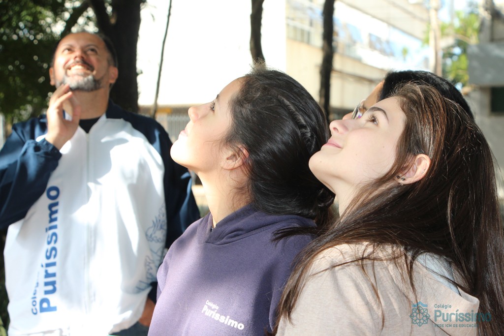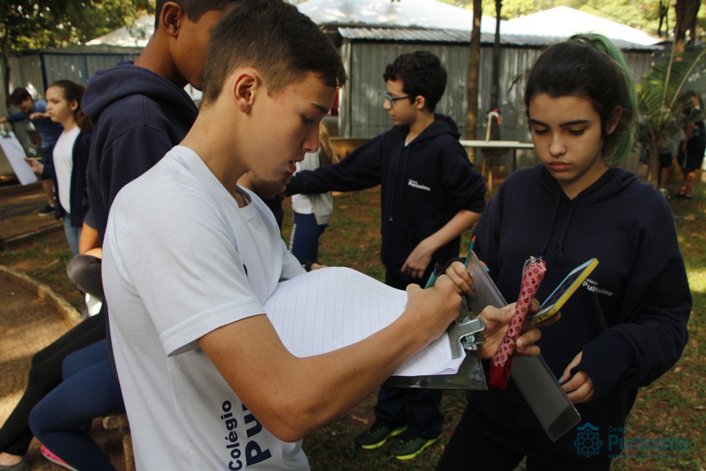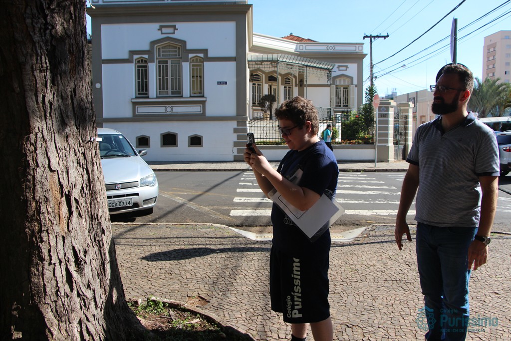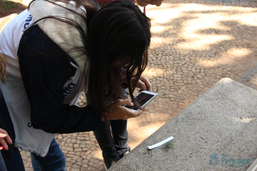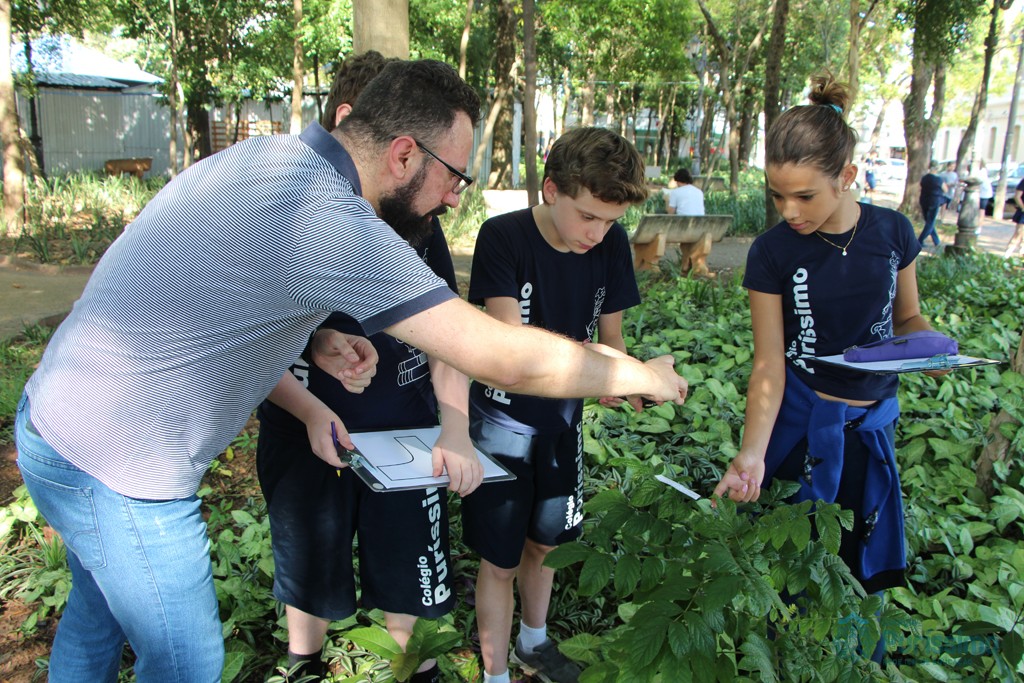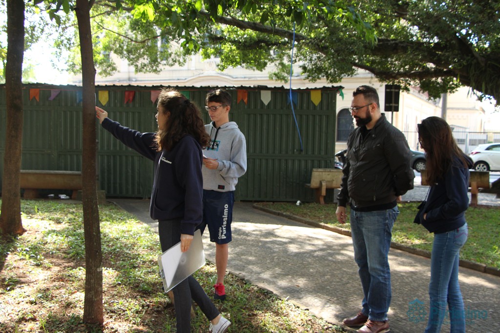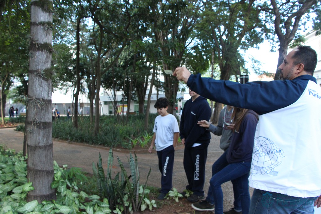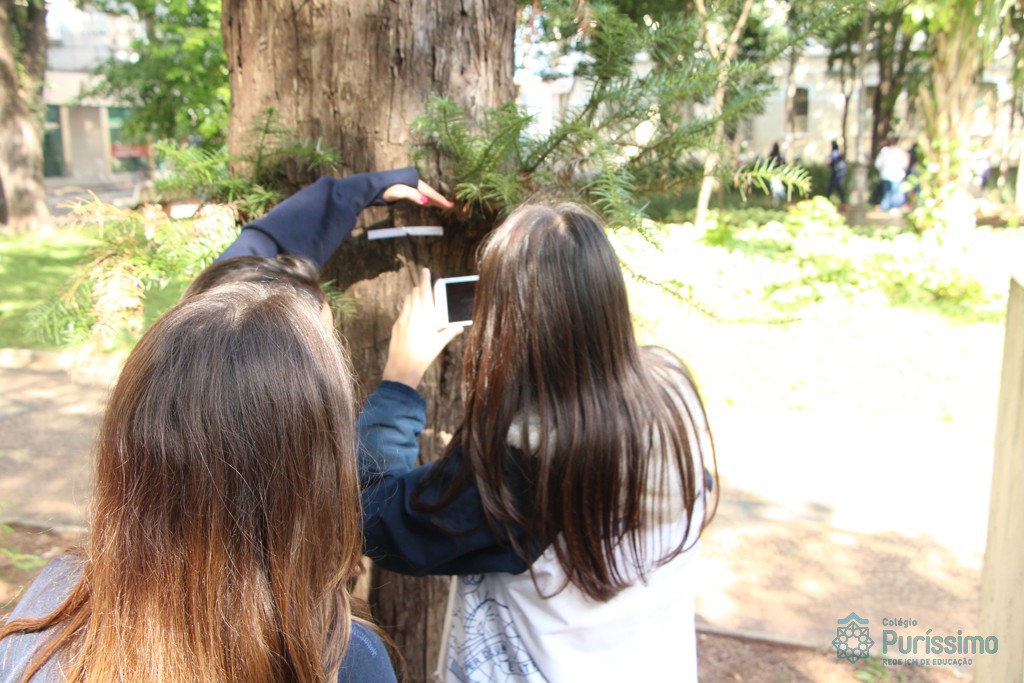 Na citada etapa, os alunos acompanhados do Prof. de Ciências -Vagner T. P. de Oliveira e da coordenação coletaram informações das espécies utilizando um aplicativo de identificação de plantas (PL@net).