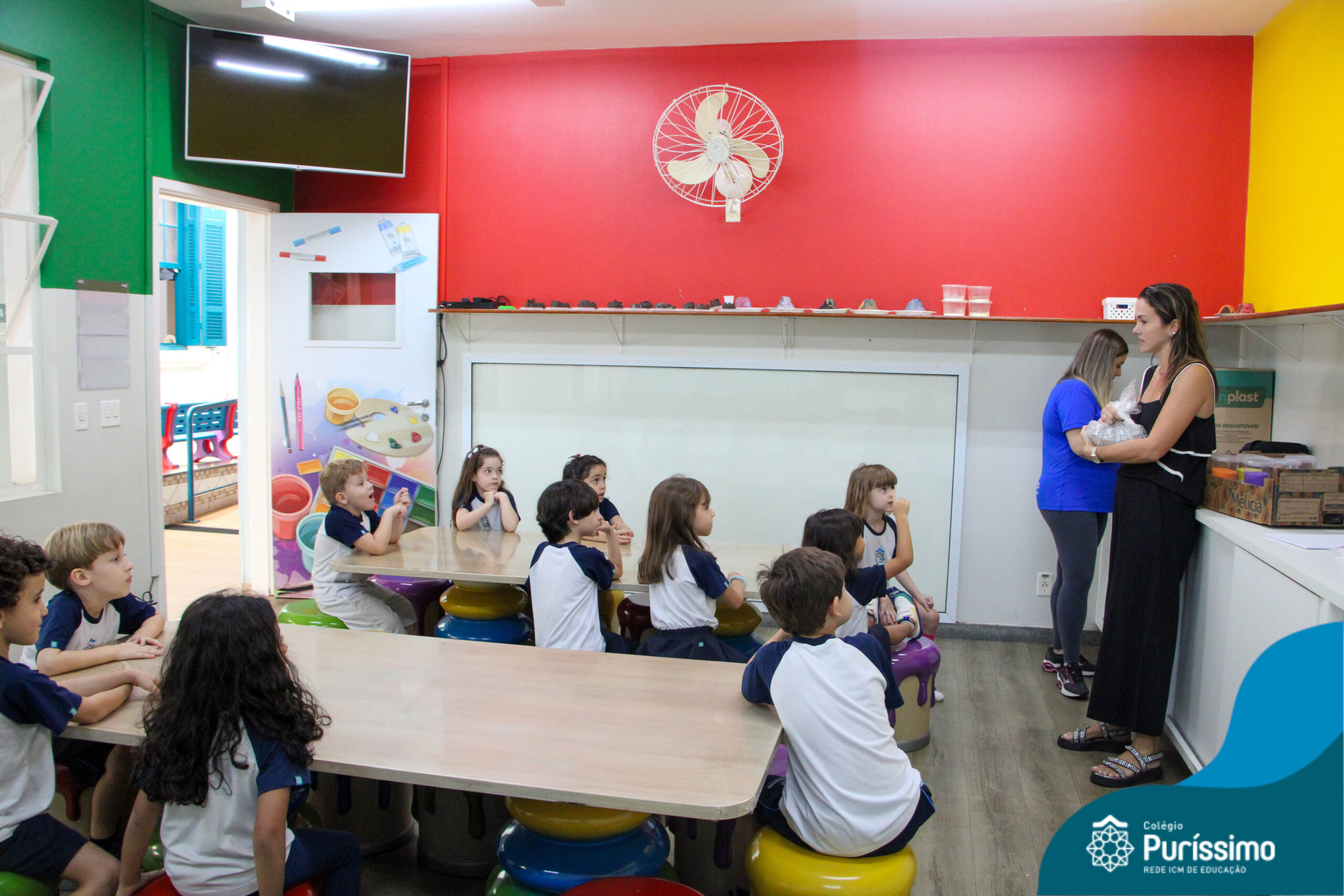 Na última semana, as crianças do Pré 2B receberam a visita das mães Renata, Raquel, Andressa e Amélia, dos alunos Rafaella, Bianca, Heloísa e José Pedro.