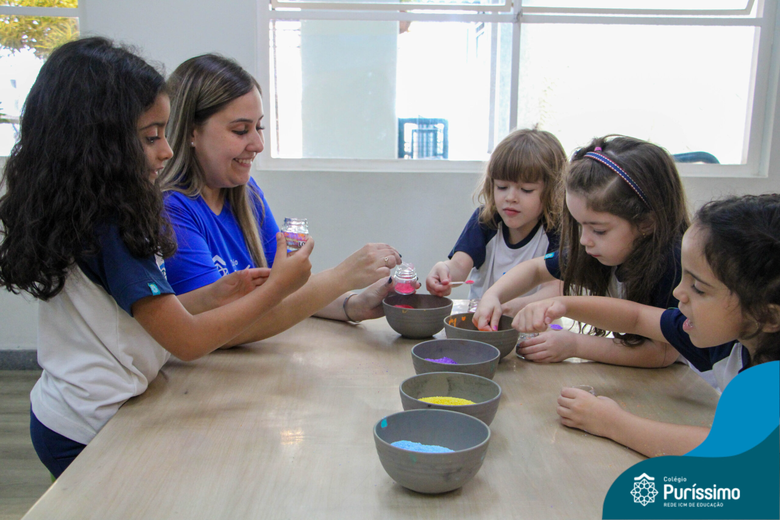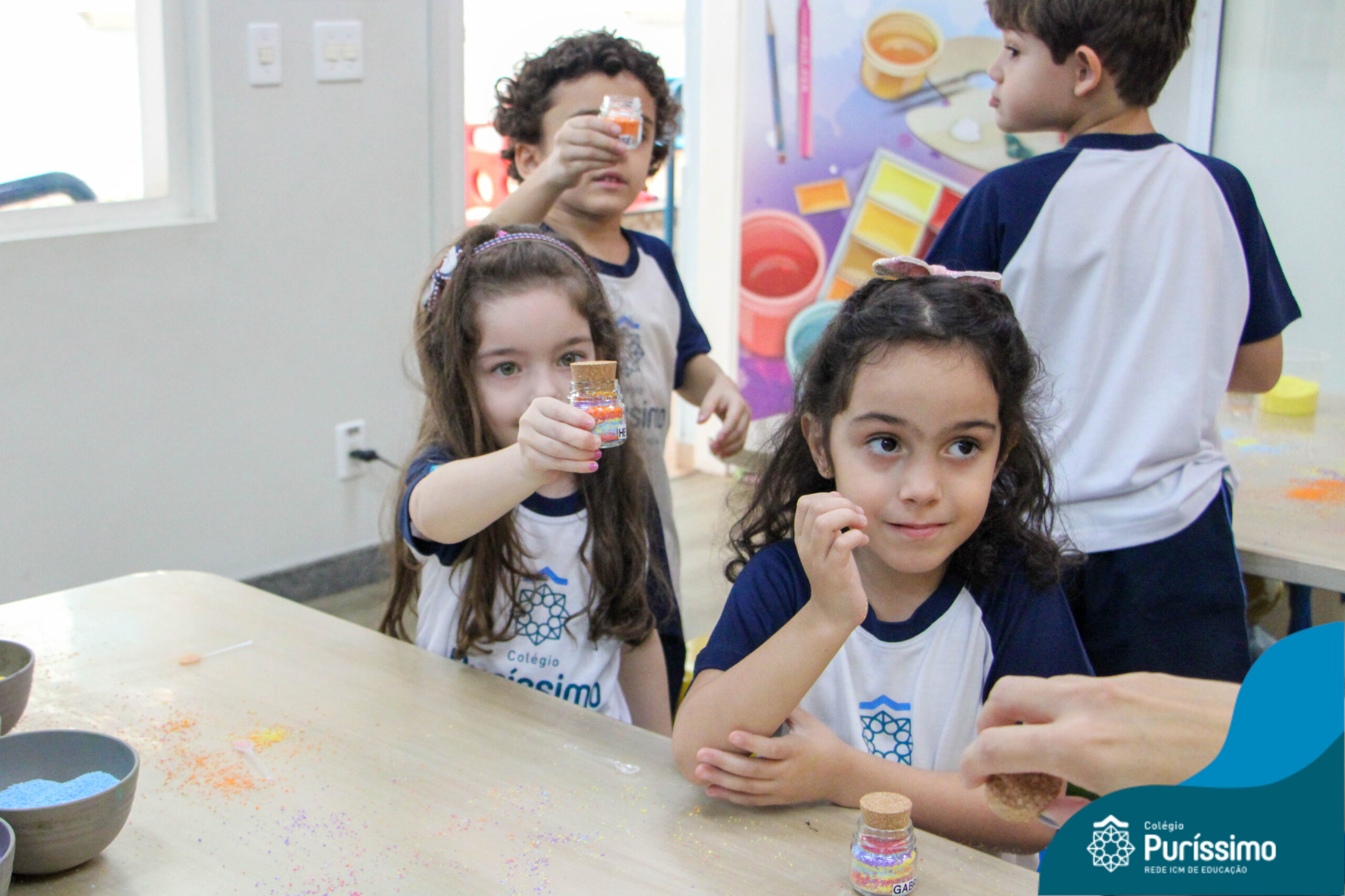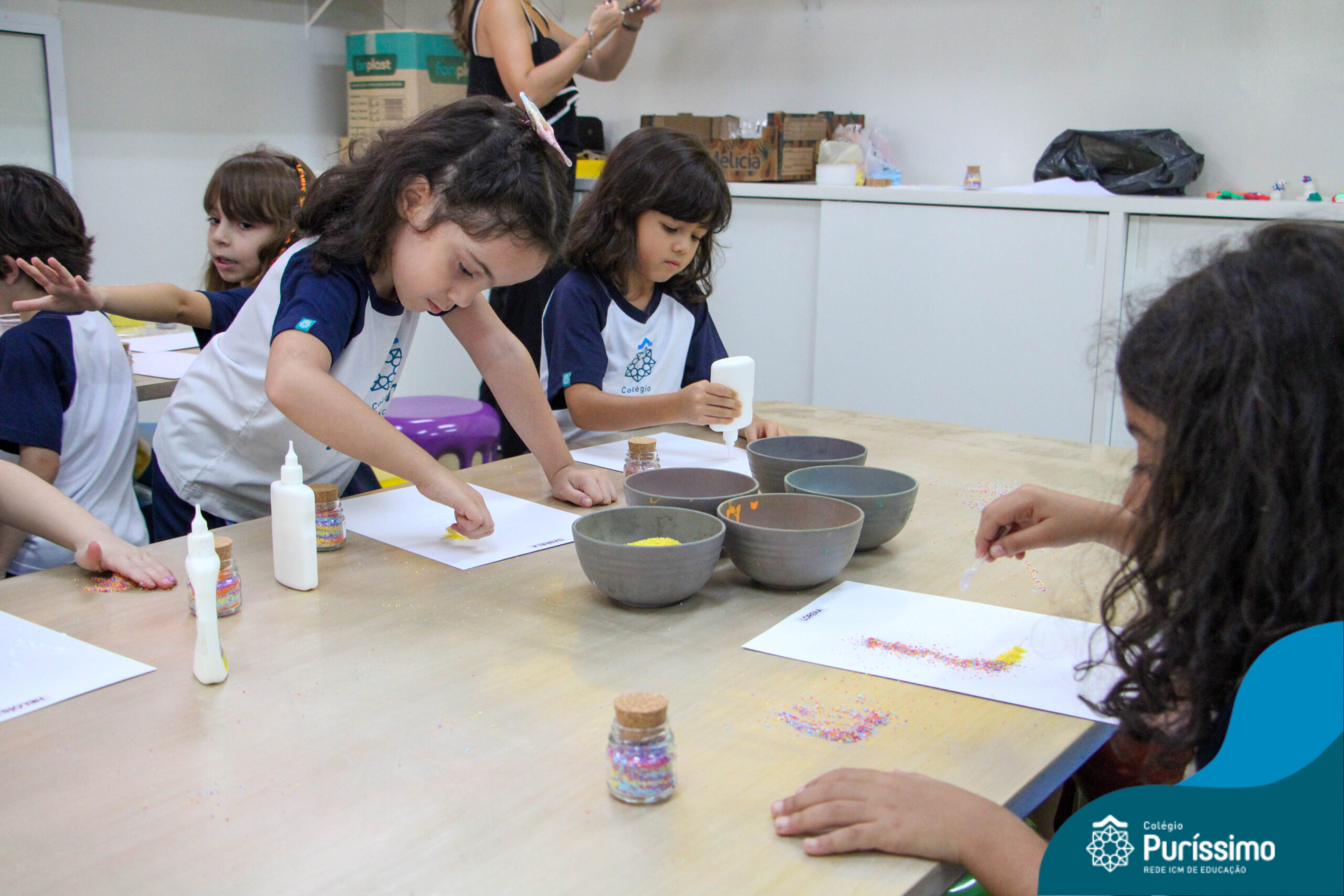 Todos tiveram a oportunidade de aprender sobre os Direitos da Criança e do Adolescente, a fazer uma arte de biscuit, um potinho com areia colorida e ainda de ouvir uma linda história.