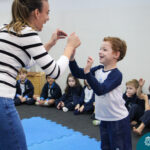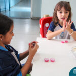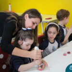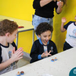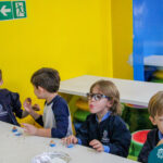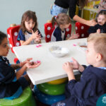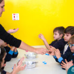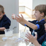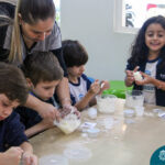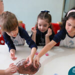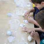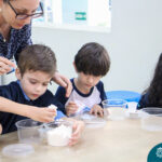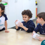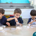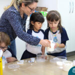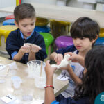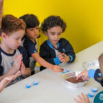 Nessas últimas atividades, os estudantes se divertiram com uma brincadeira utilizando seus próprios sapatos, enrolaram brigadeiros e fizeram uma massinha caseira de amido de milho.