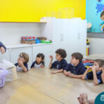 Os alunos do Pré 2B receberam a visita da Carolina, Mariana e Sílvia, mães do Eduardo, Joaquiam A. e Lívia, respectivamente.