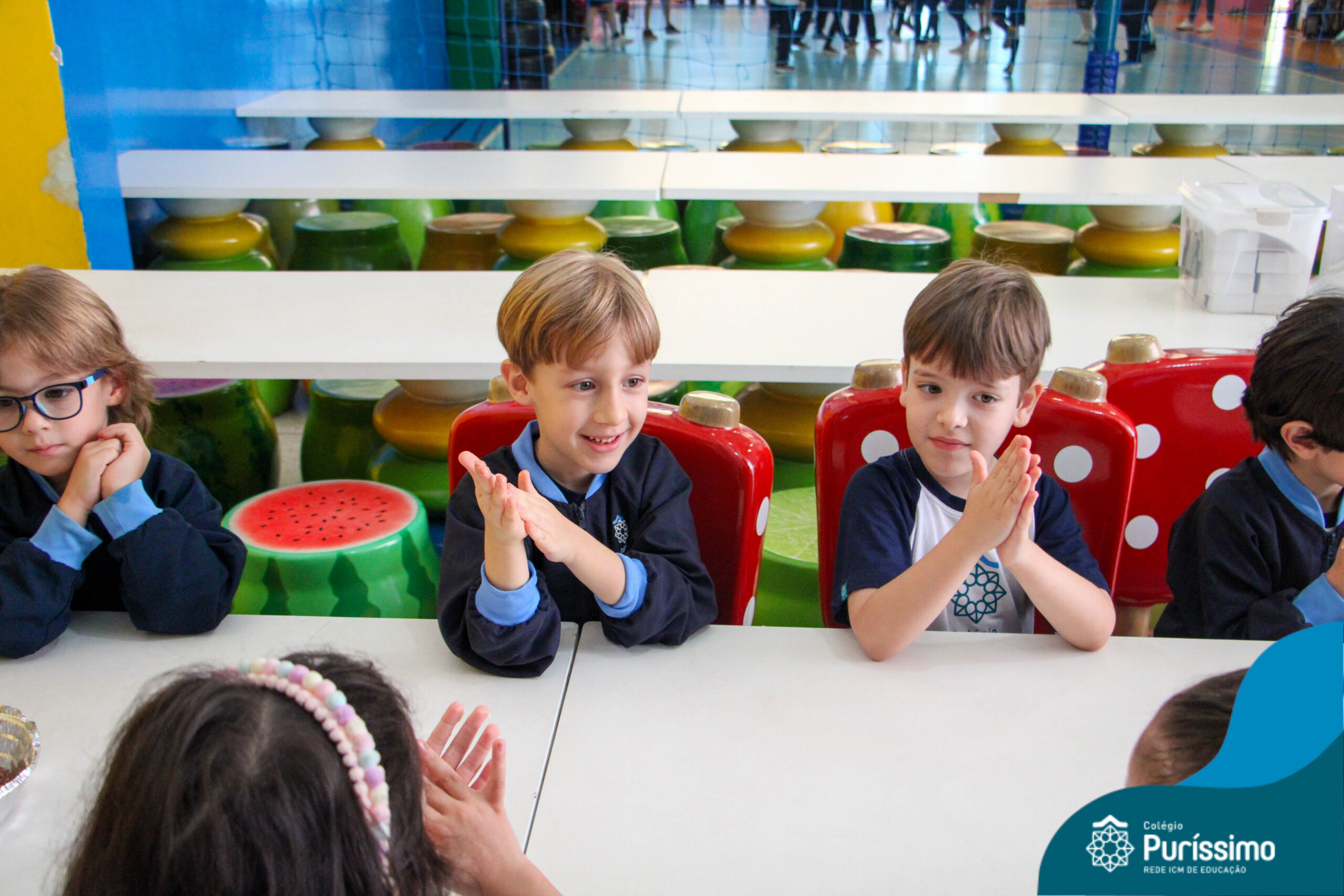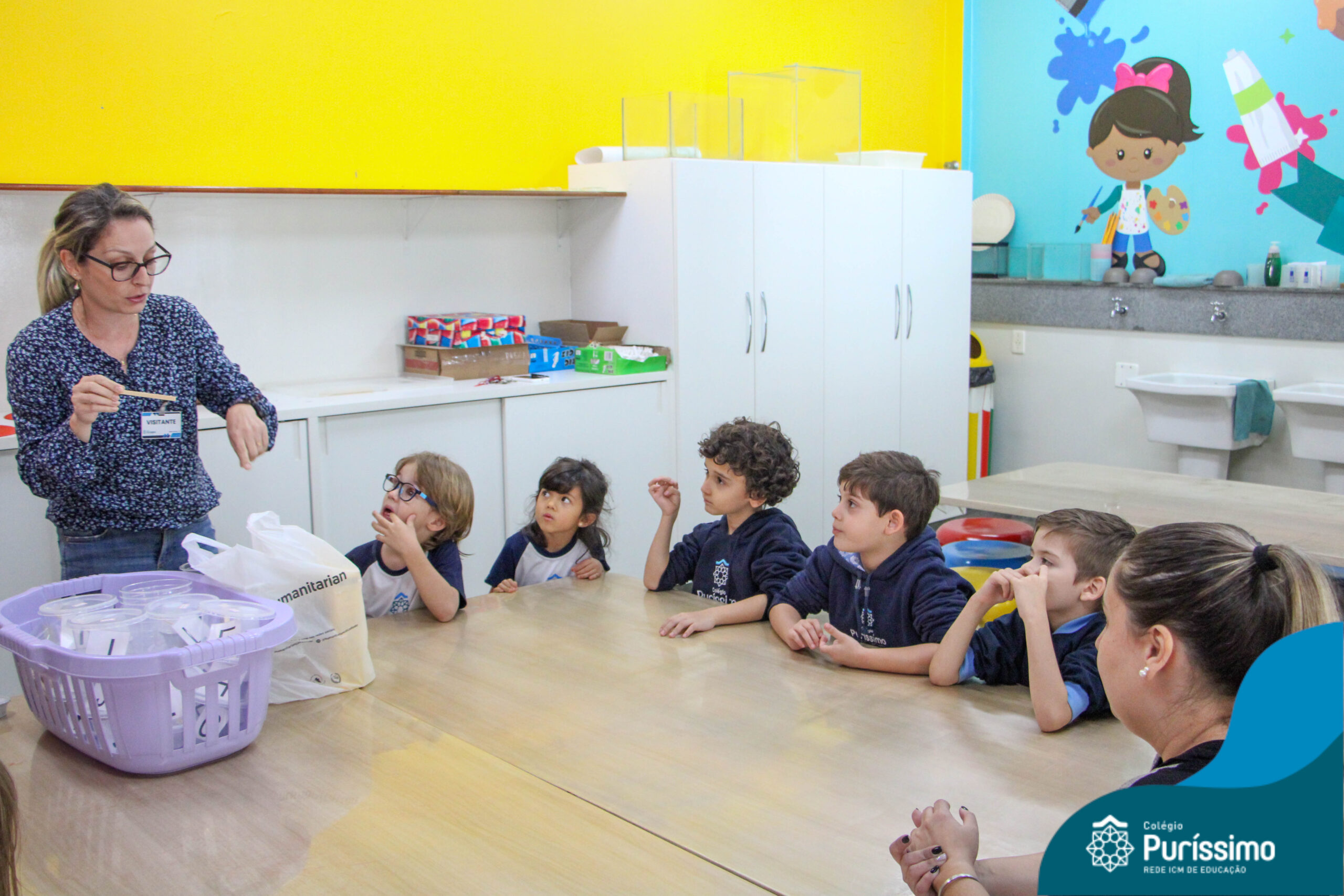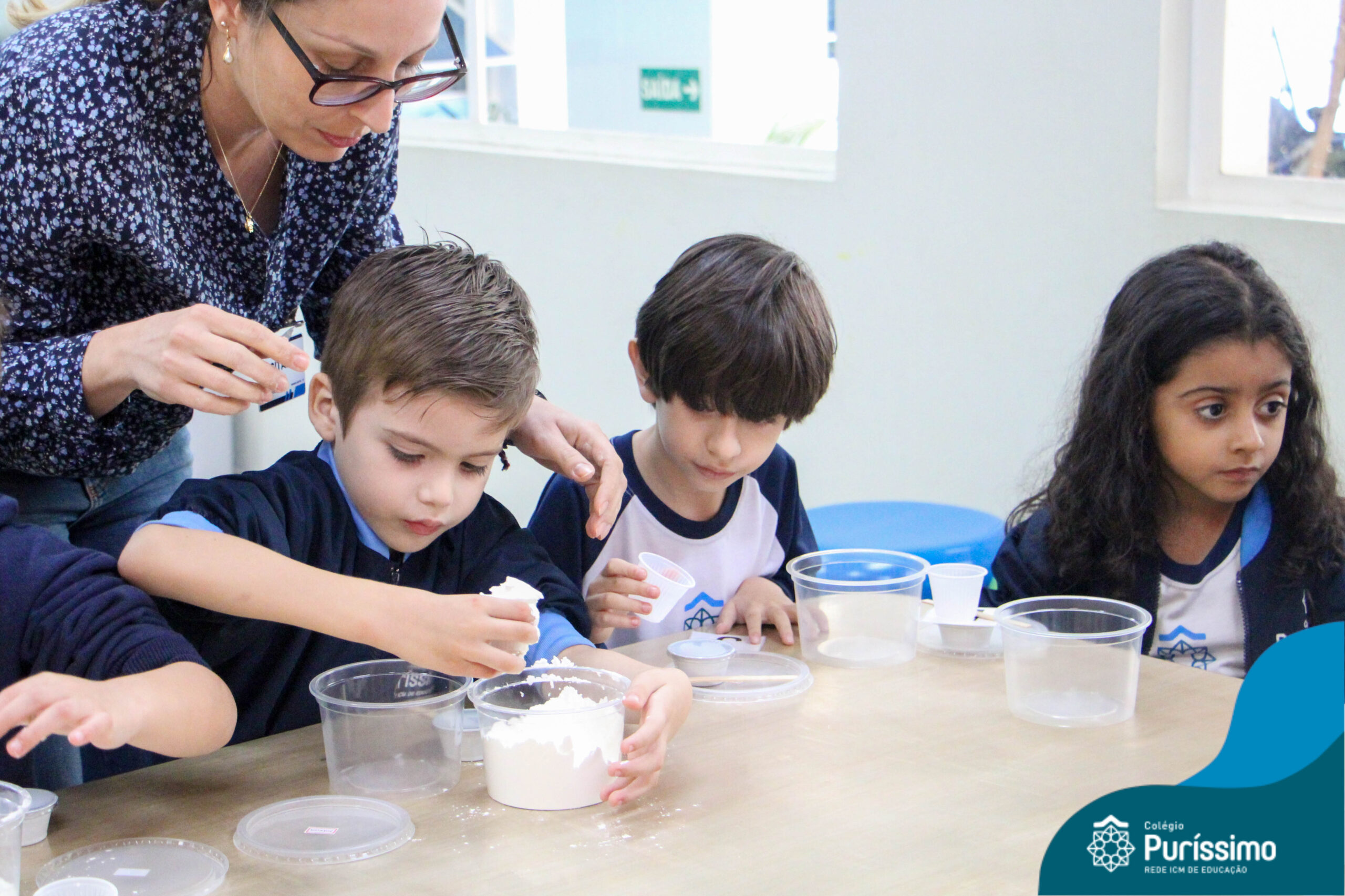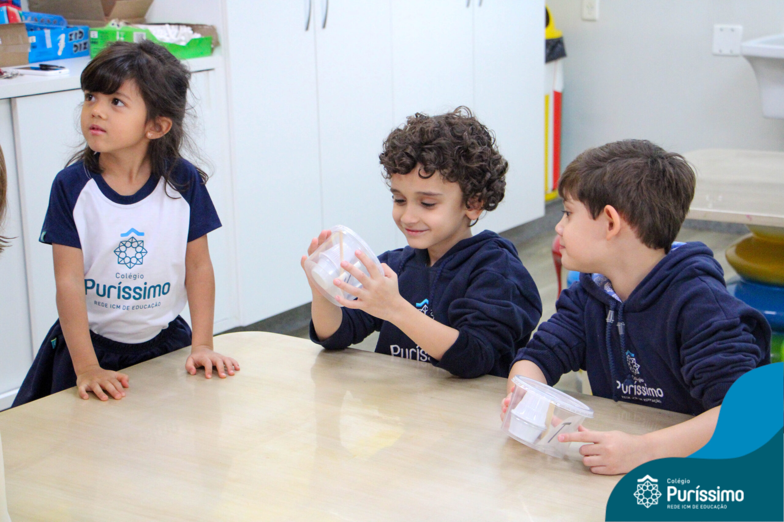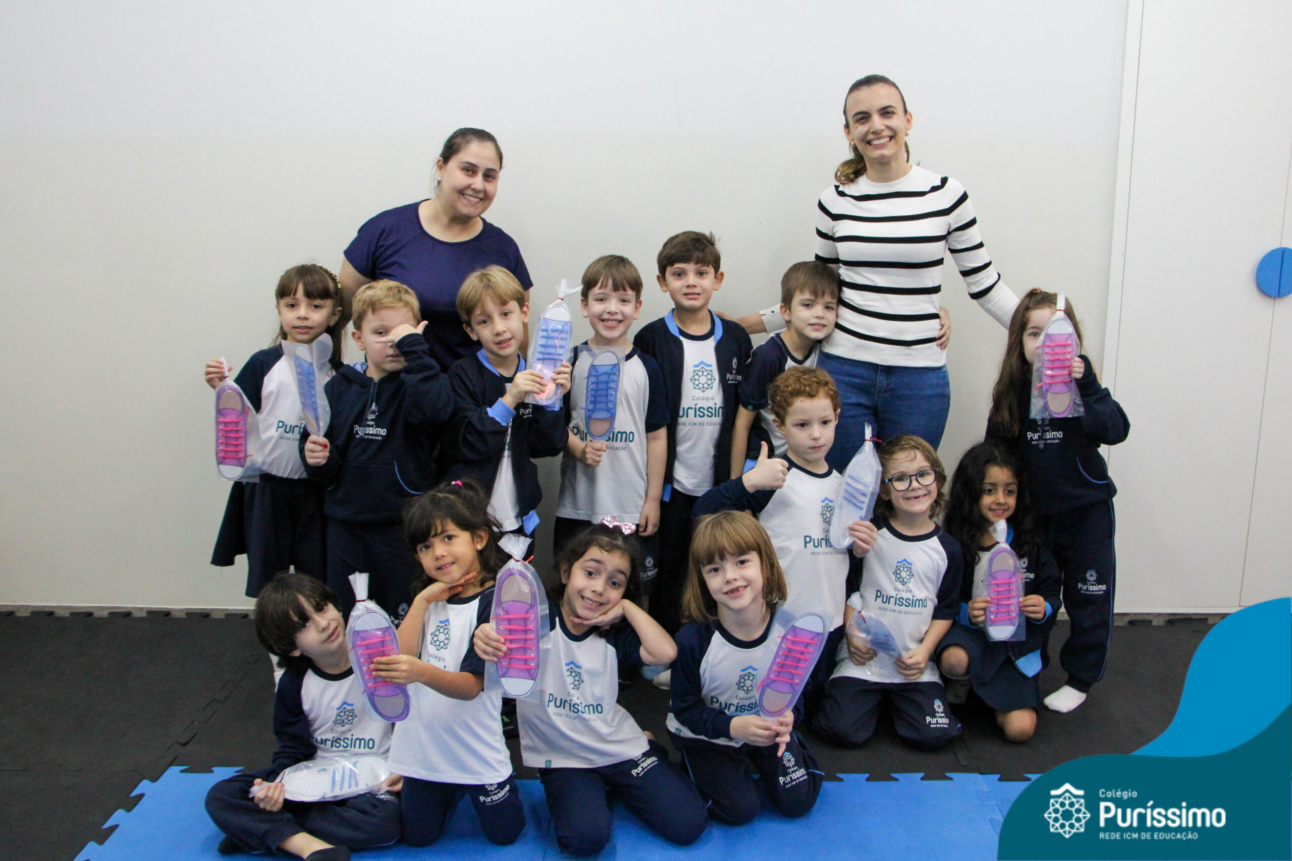 Nessas últimas atividades, os estudantes se divertiram com uma brincadeira utilizando seus próprios sapatos, enrolaram brigadeiros e fizeram uma massinha caseira de amido de milho.