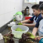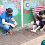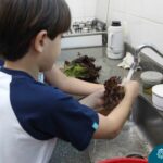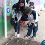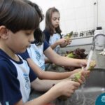 Após todo o ensinamento, os alunos partiram para colocar a mão na massa: eles plantaram e cuidaram do próprio alface para que pudessem desfrutar de um lanche super saudável nos últimos dias de aula.