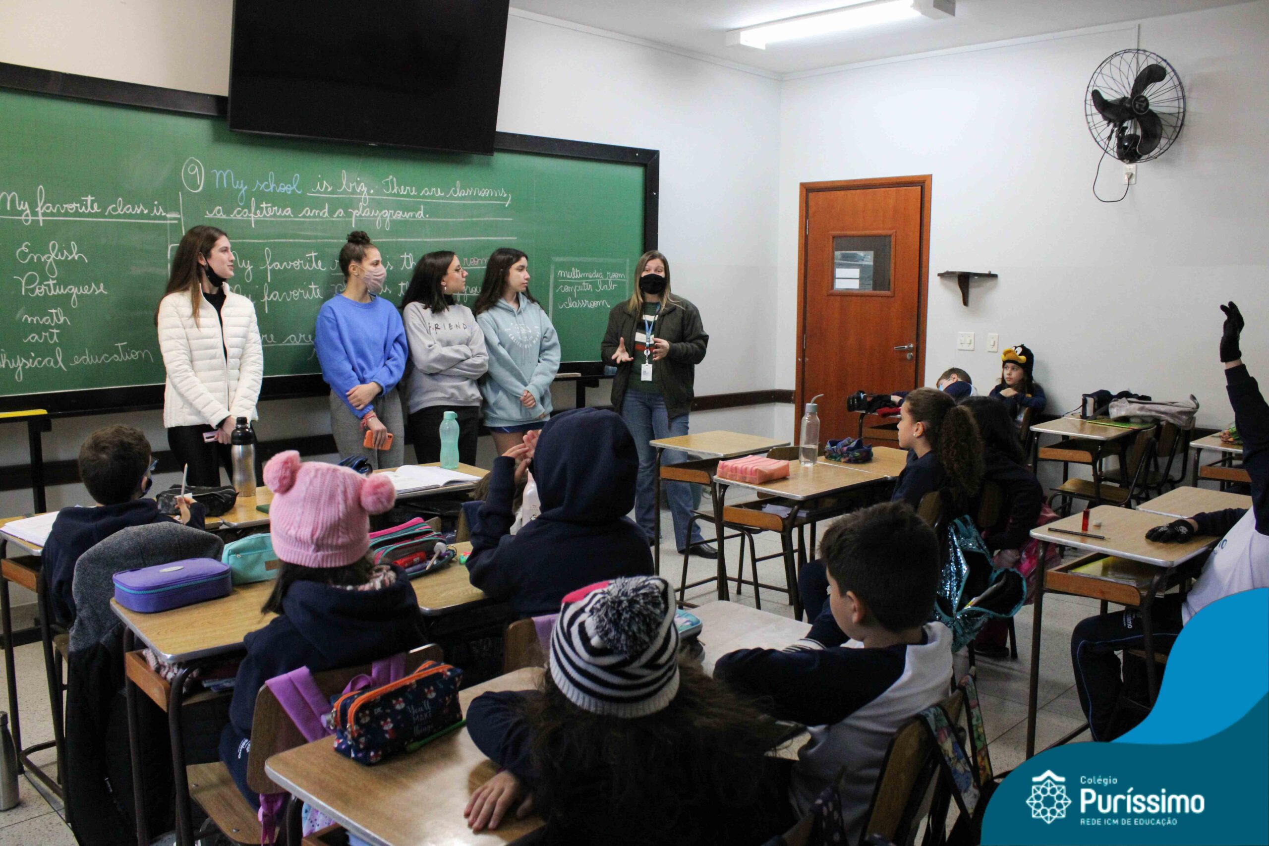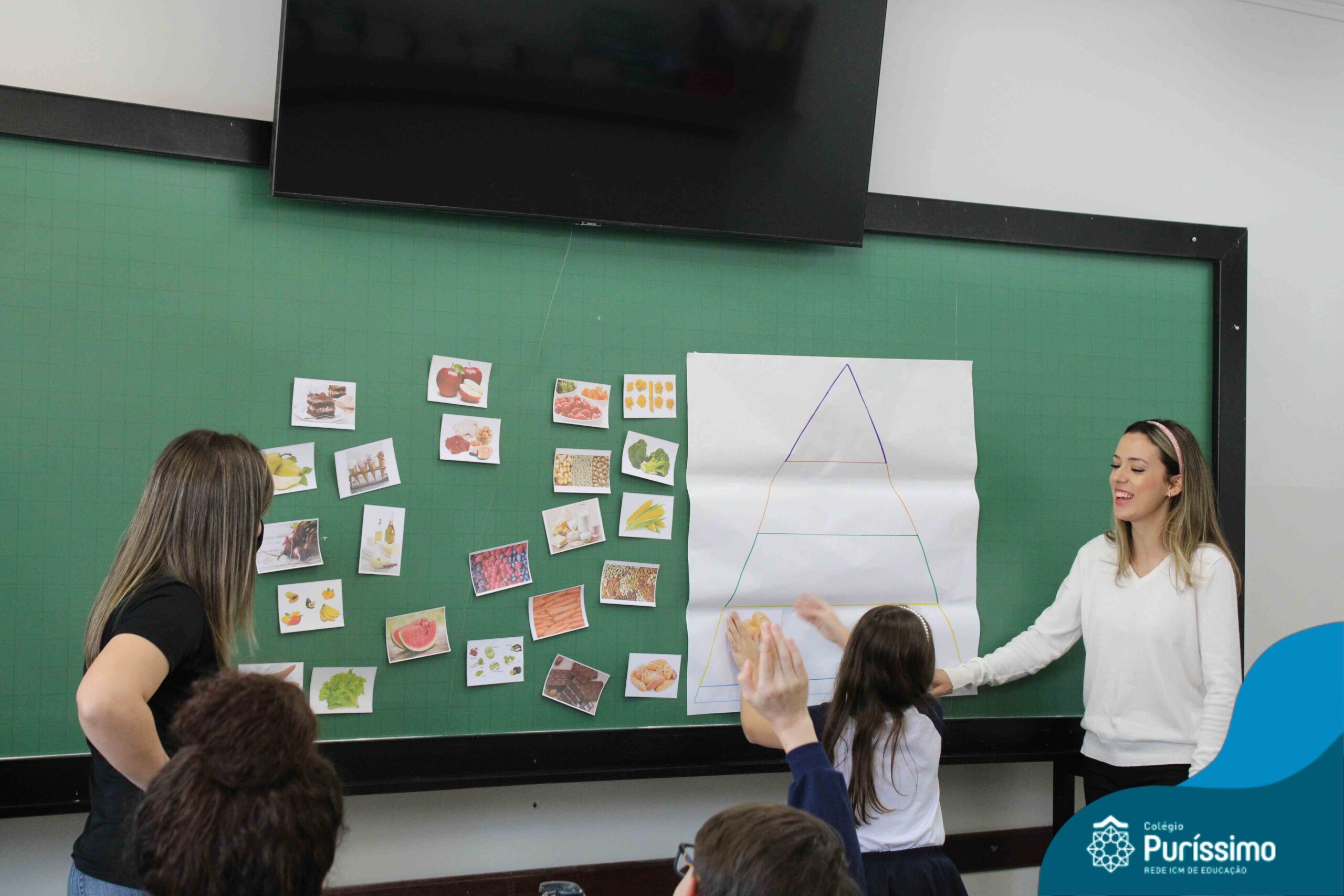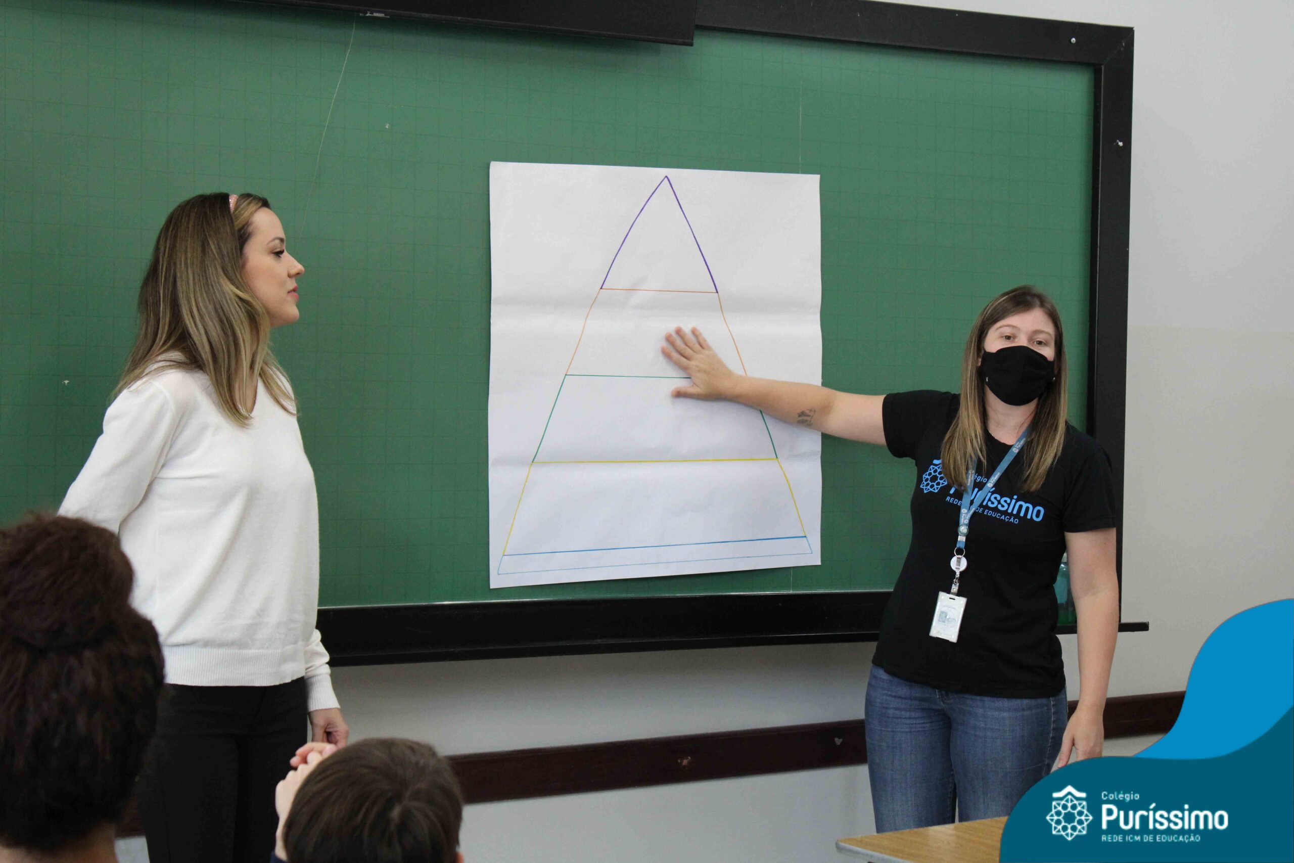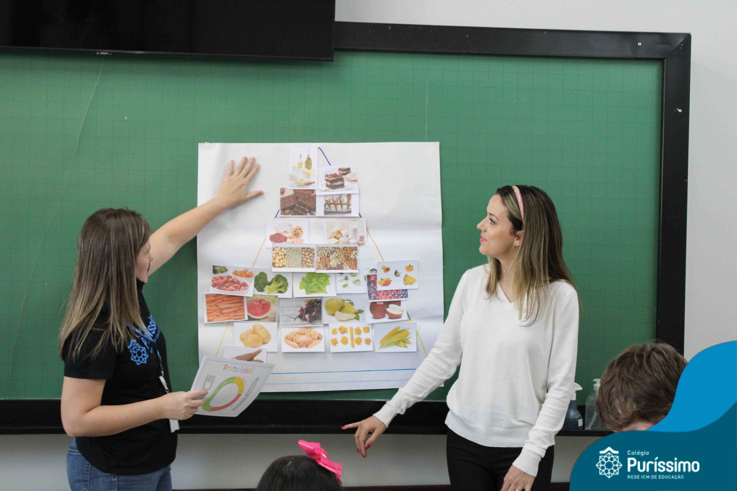 Foram dois meses nos quais os alunos tiveram a oportunidade de conversar com as alunas do 1º ano do Ensino Médio sobre conscientização ambiental – assunto relacionado ao Itinerário Informativo do Novo Ensino Médio – e ter um bate-papo com a Nutricionista Jessica Bonifacio – mãe de aluna – sobre alimentação saudável e pirâmide alimentar.