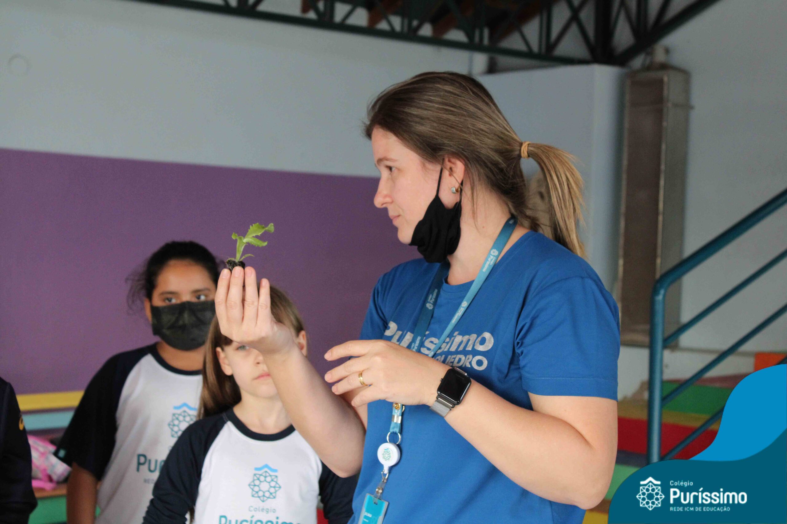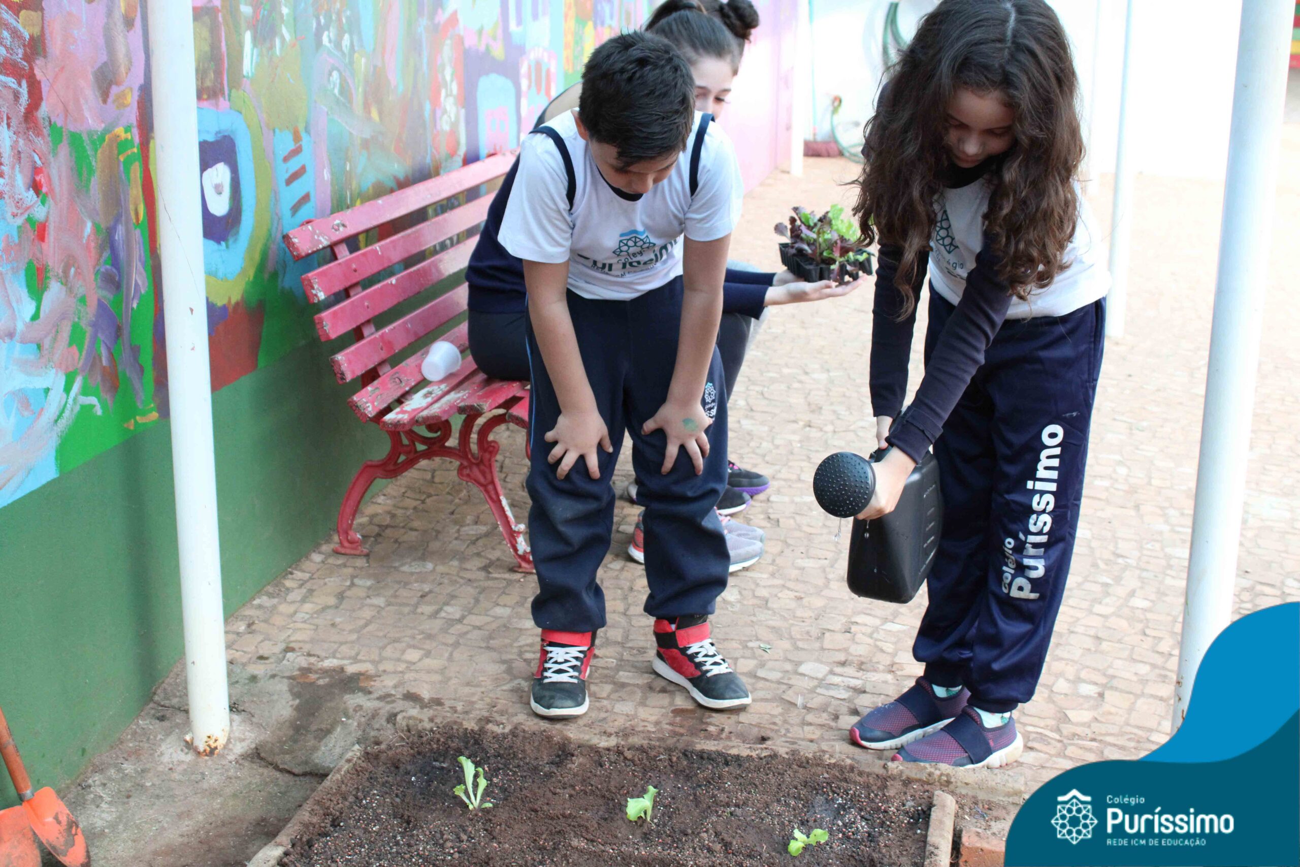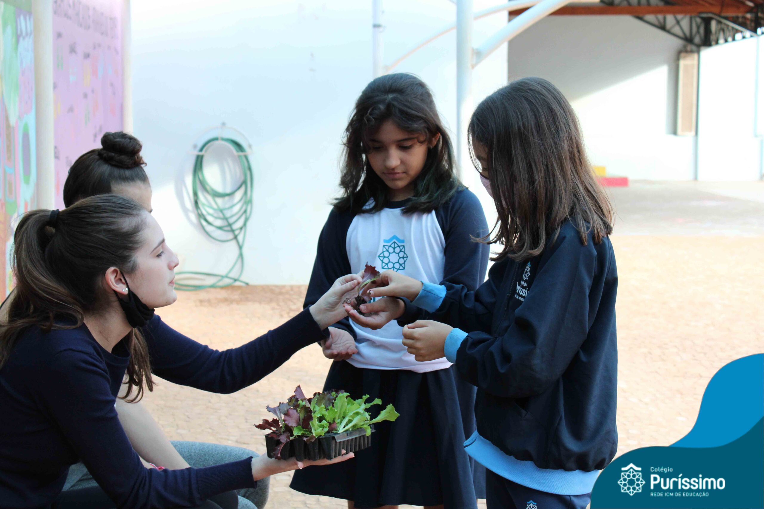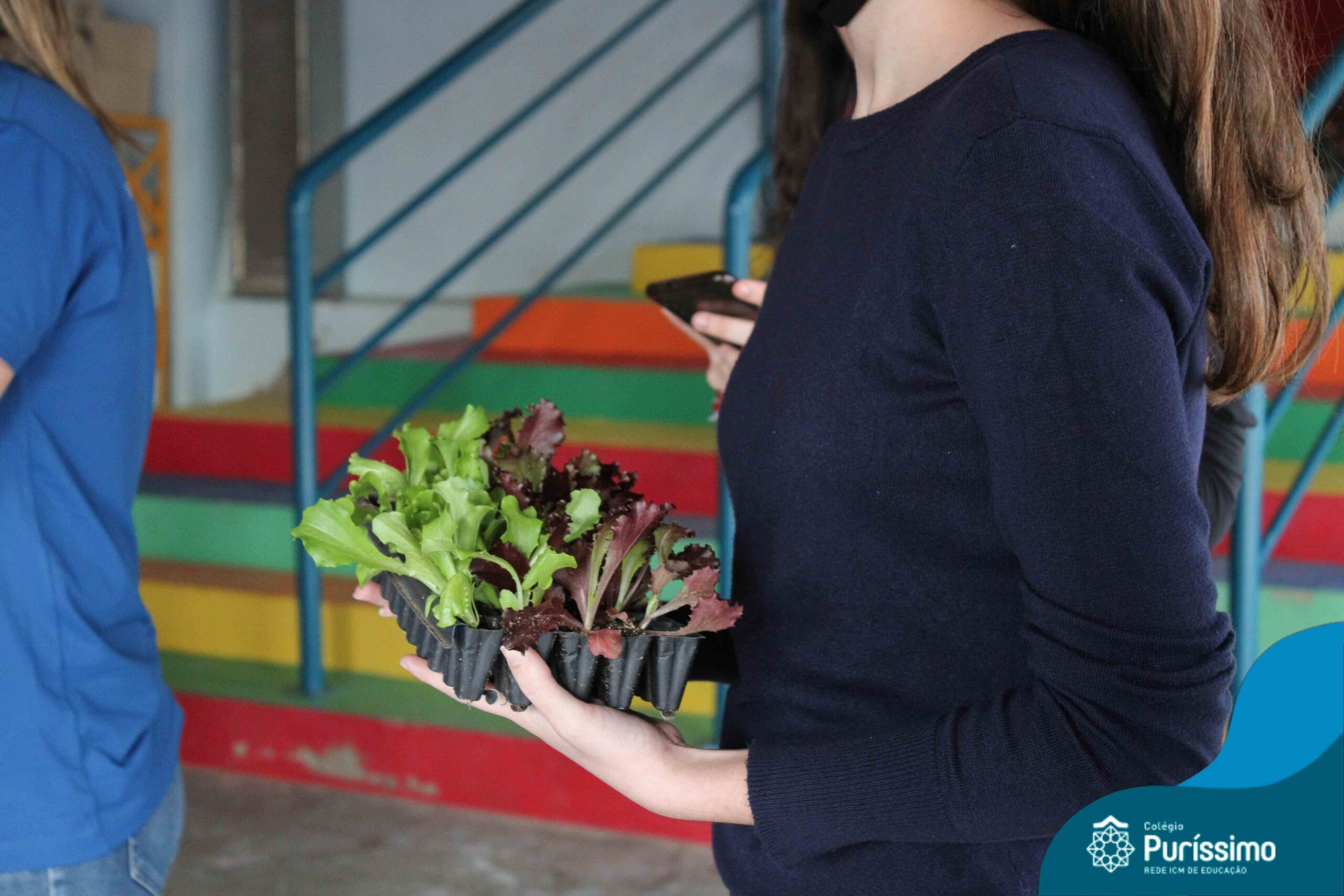 Após todo o ensinamento, os alunos partiram para colocar a mão na massa: eles plantaram e cuidaram do próprio alface para que pudessem desfrutar de um lanche super saudável nos últimos dias de aula.