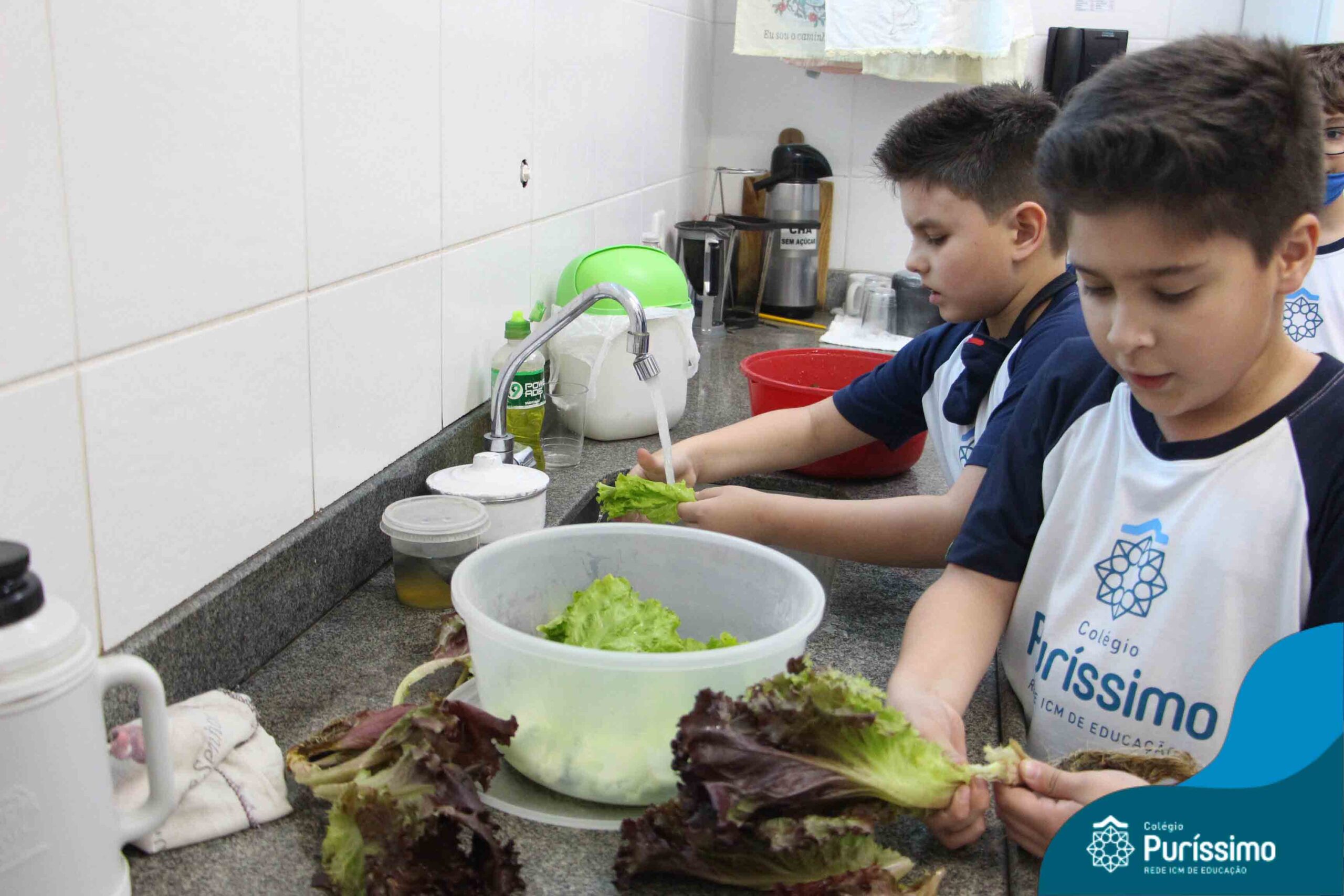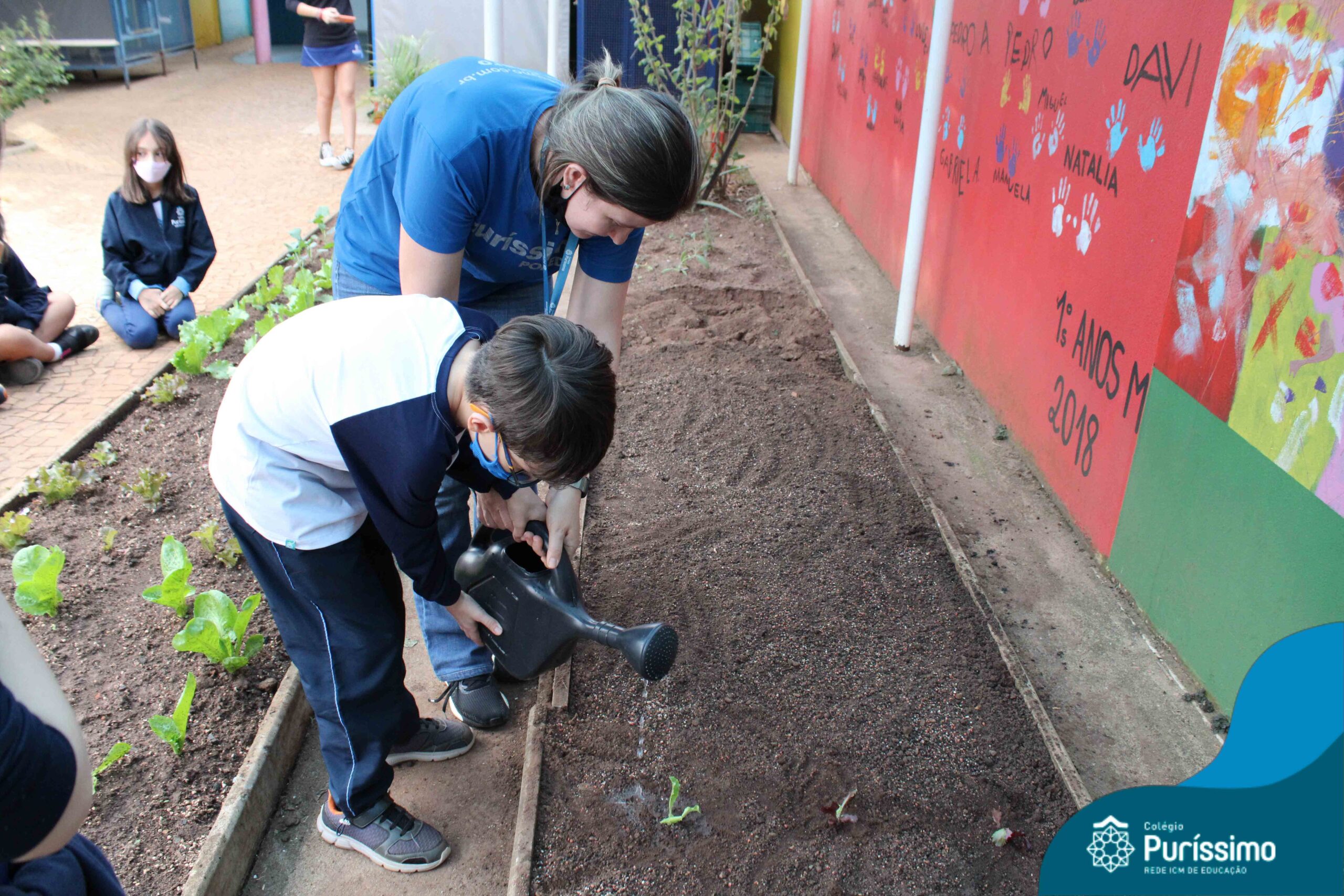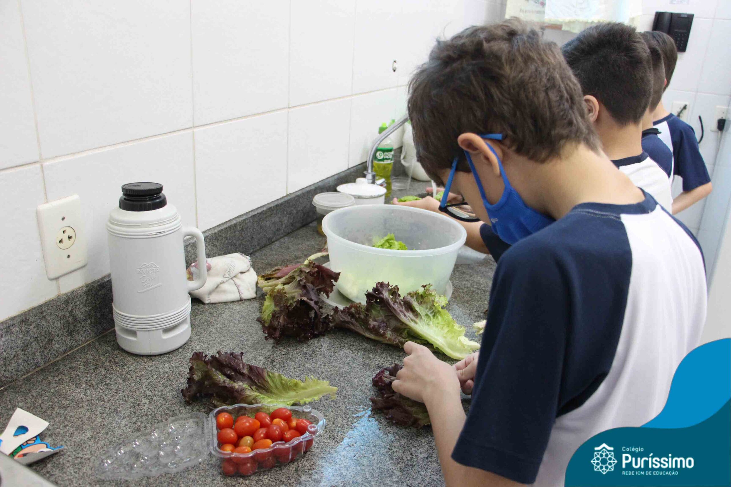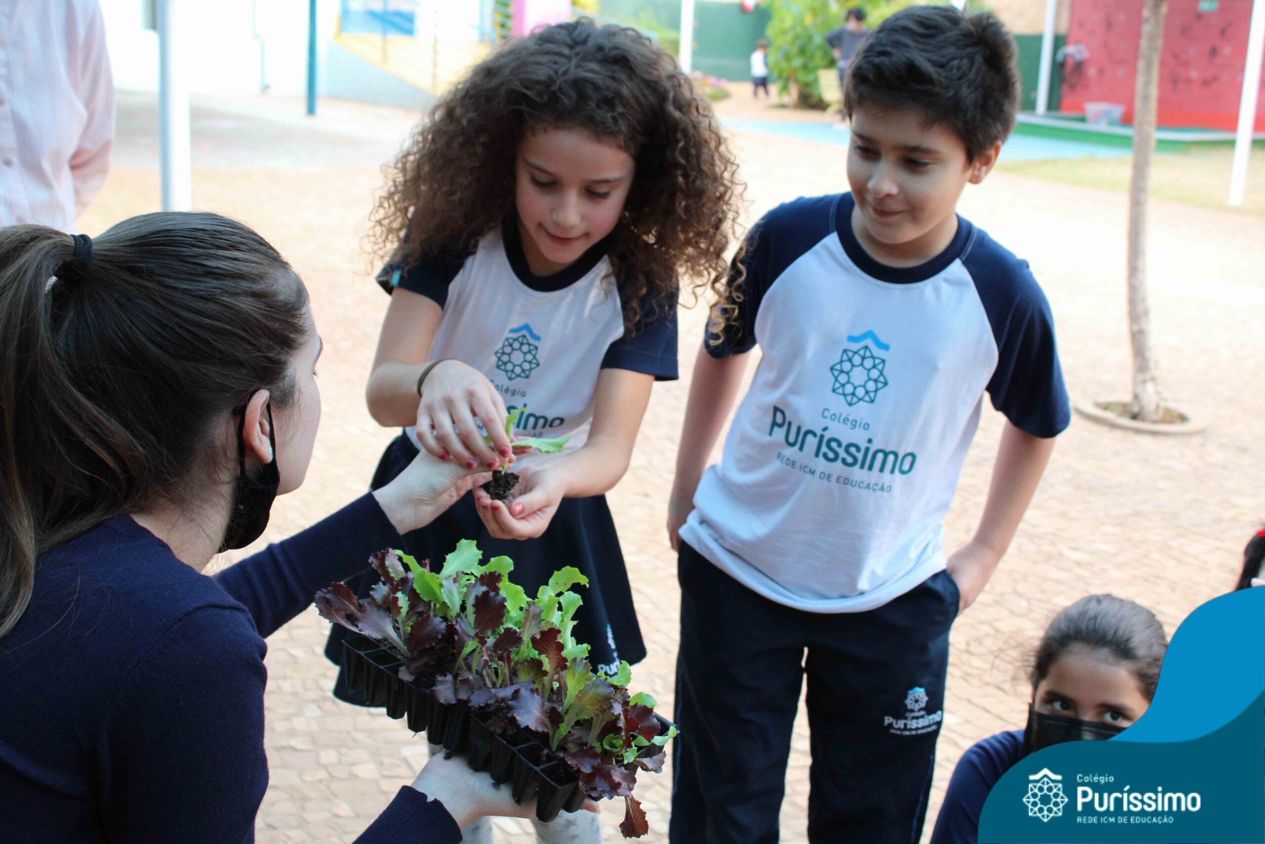 Após todo o ensinamento, os alunos partiram para colocar a mão na massa: eles plantaram e cuidaram do próprio alface para que pudessem desfrutar de um lanche super saudável nos últimos dias de aula.
