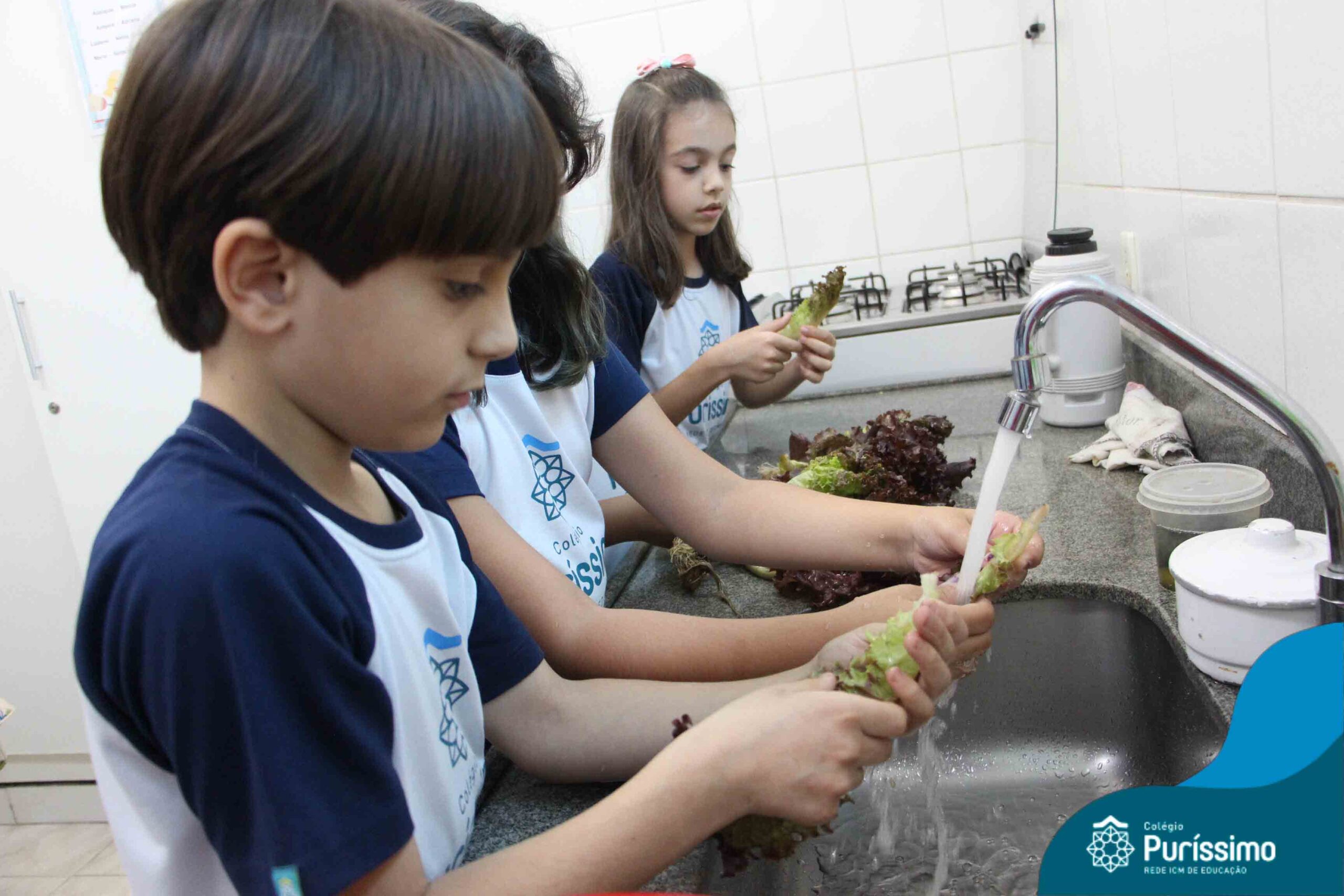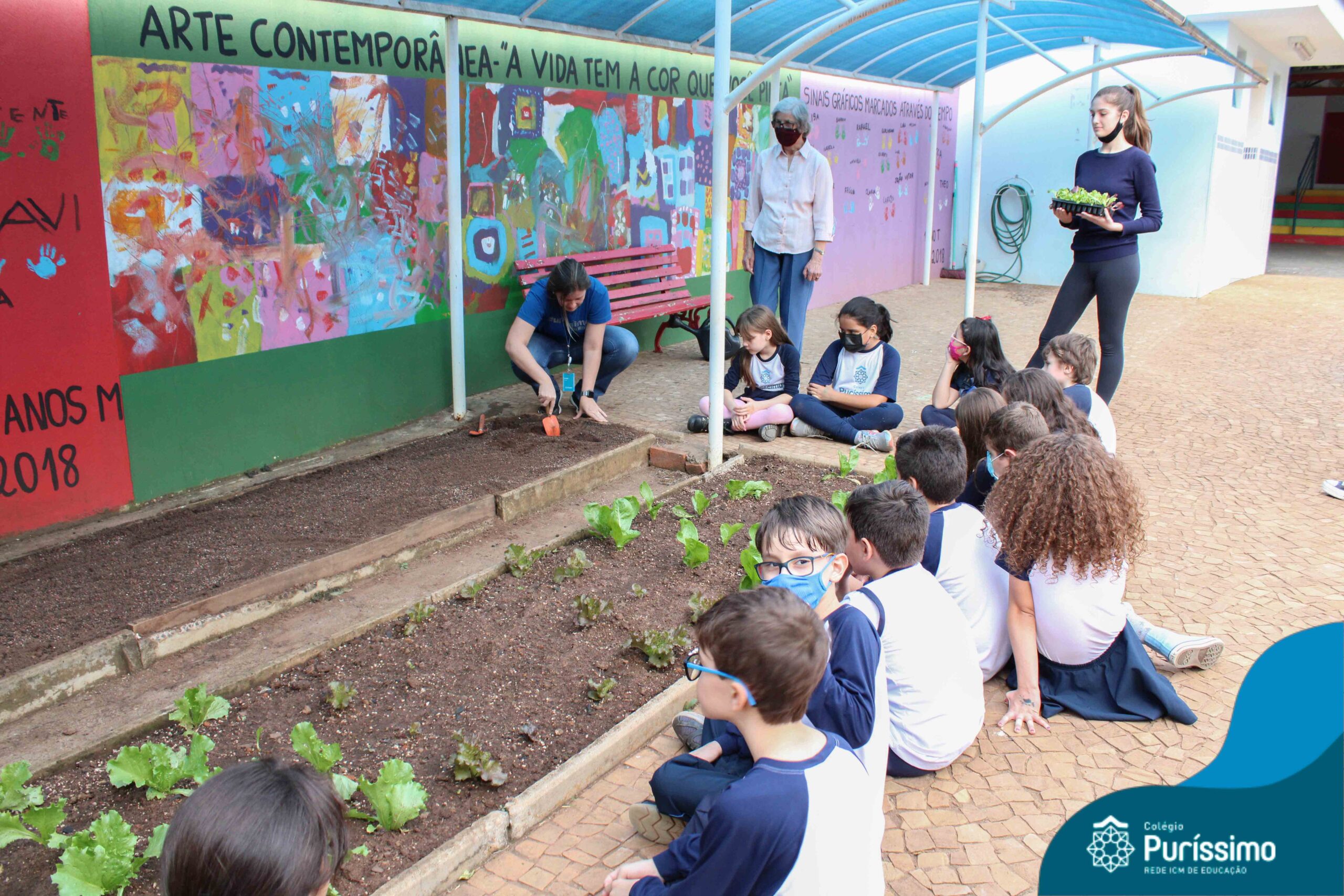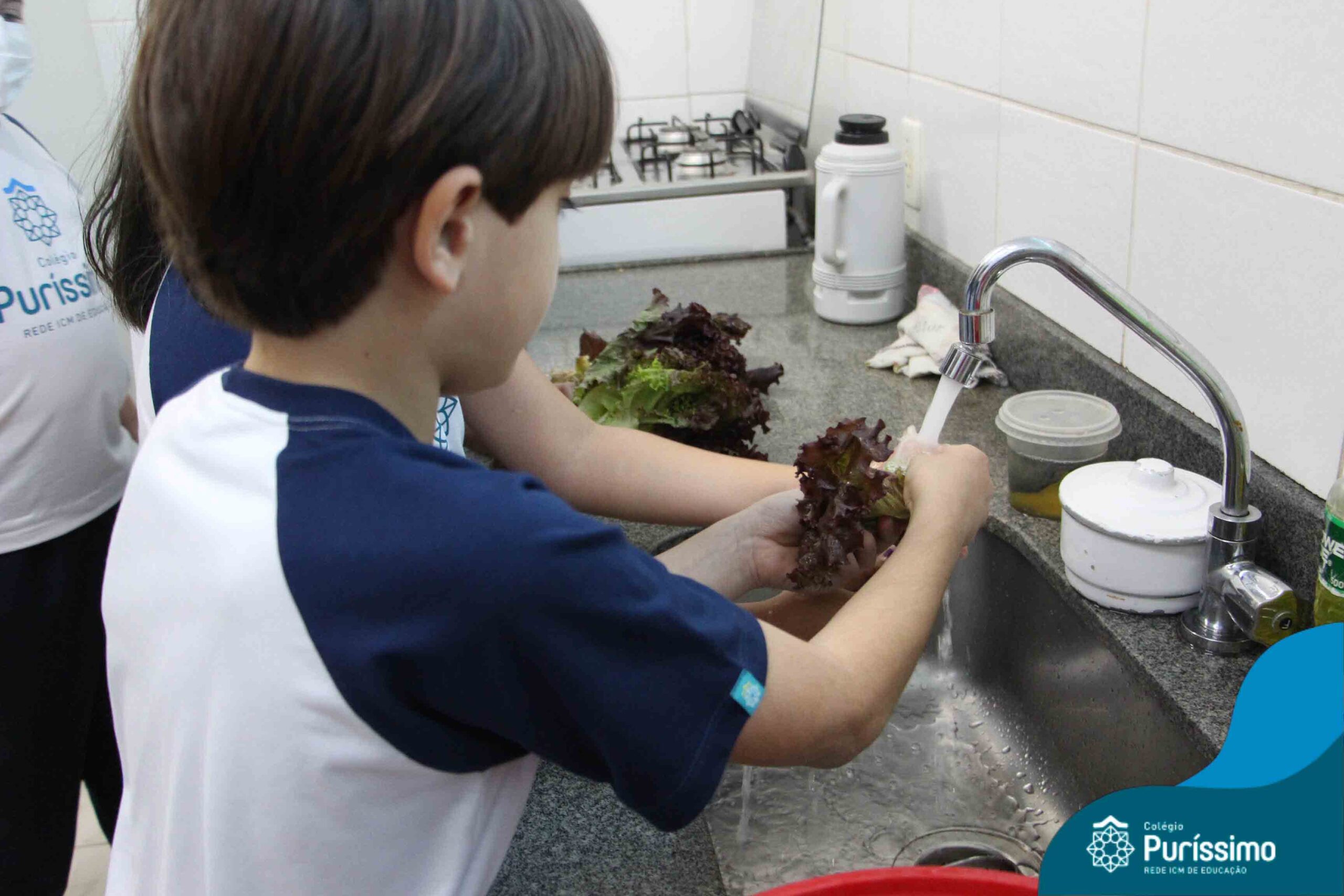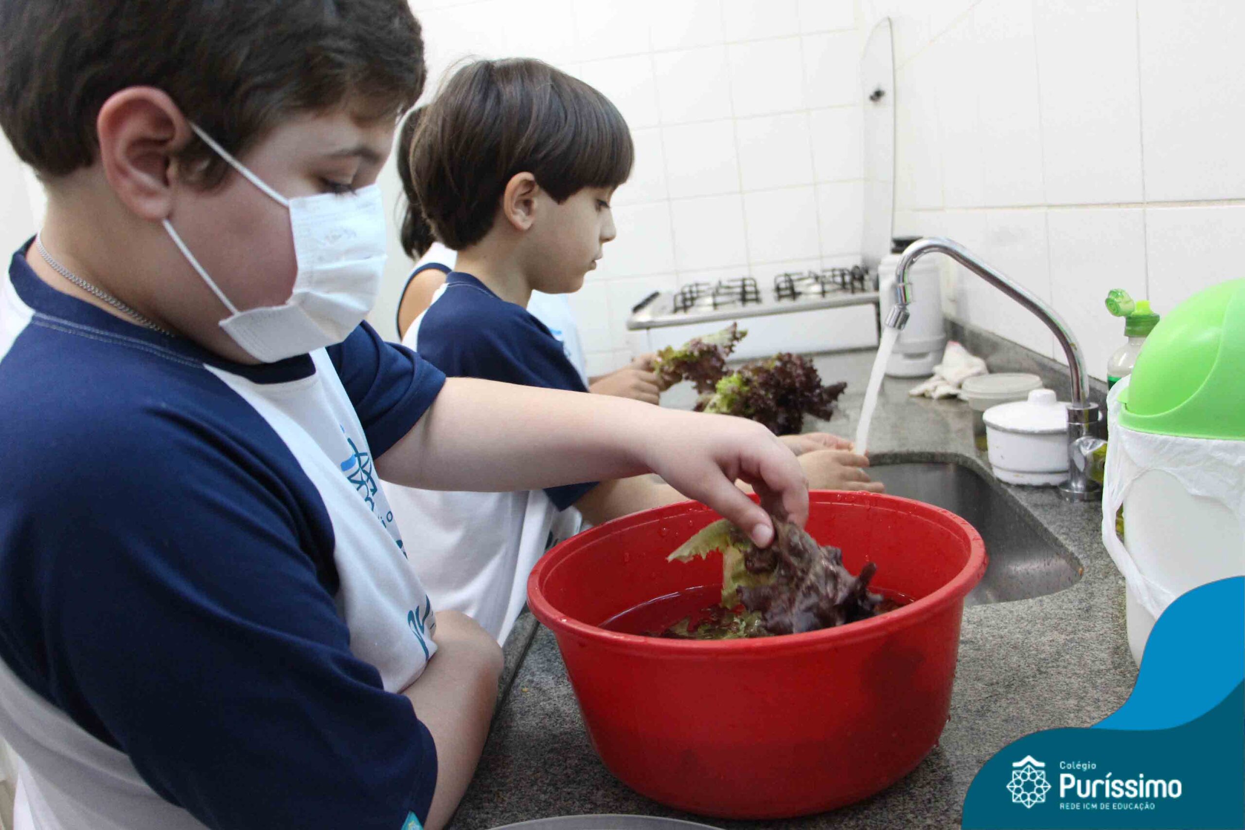 Após todo o ensinamento, os alunos partiram para colocar a mão na massa: eles plantaram e cuidaram do próprio alface para que pudessem desfrutar de um lanche super saudável nos últimos dias de aula.