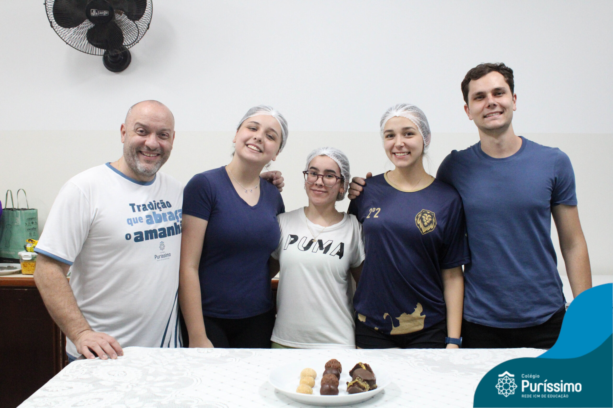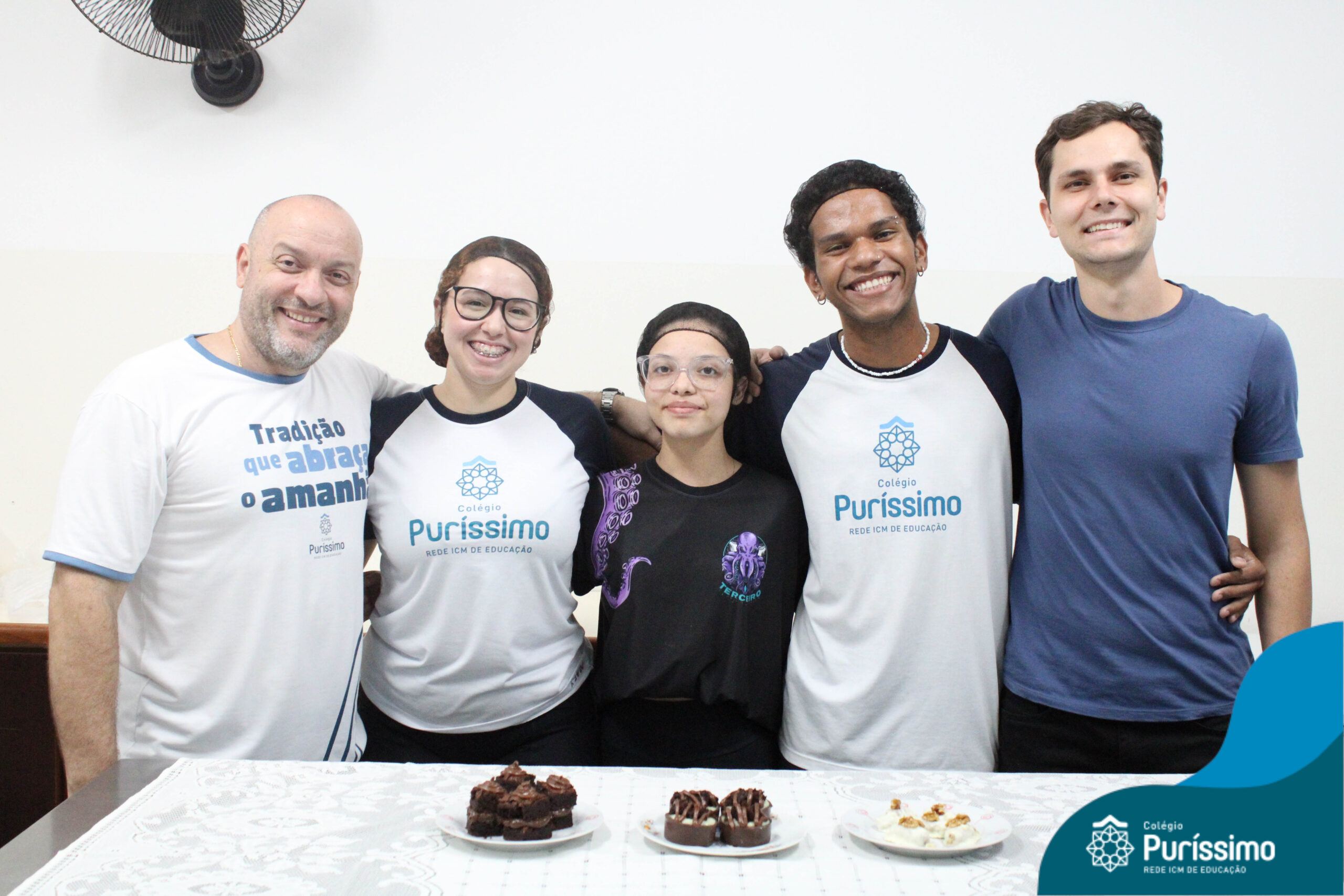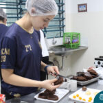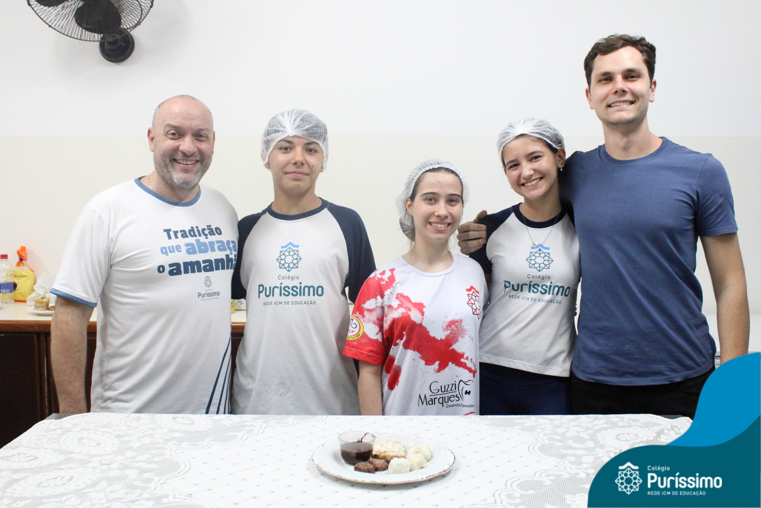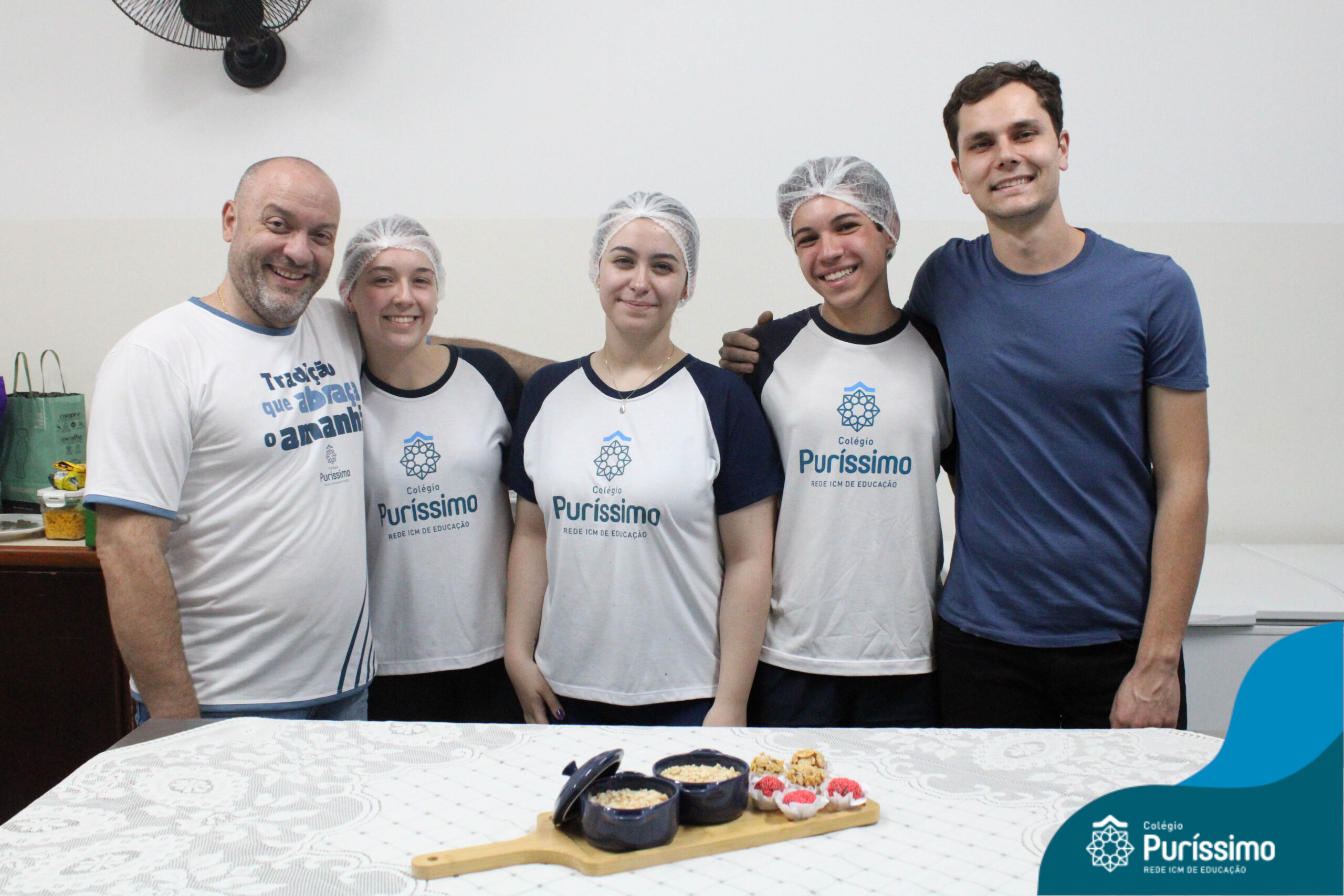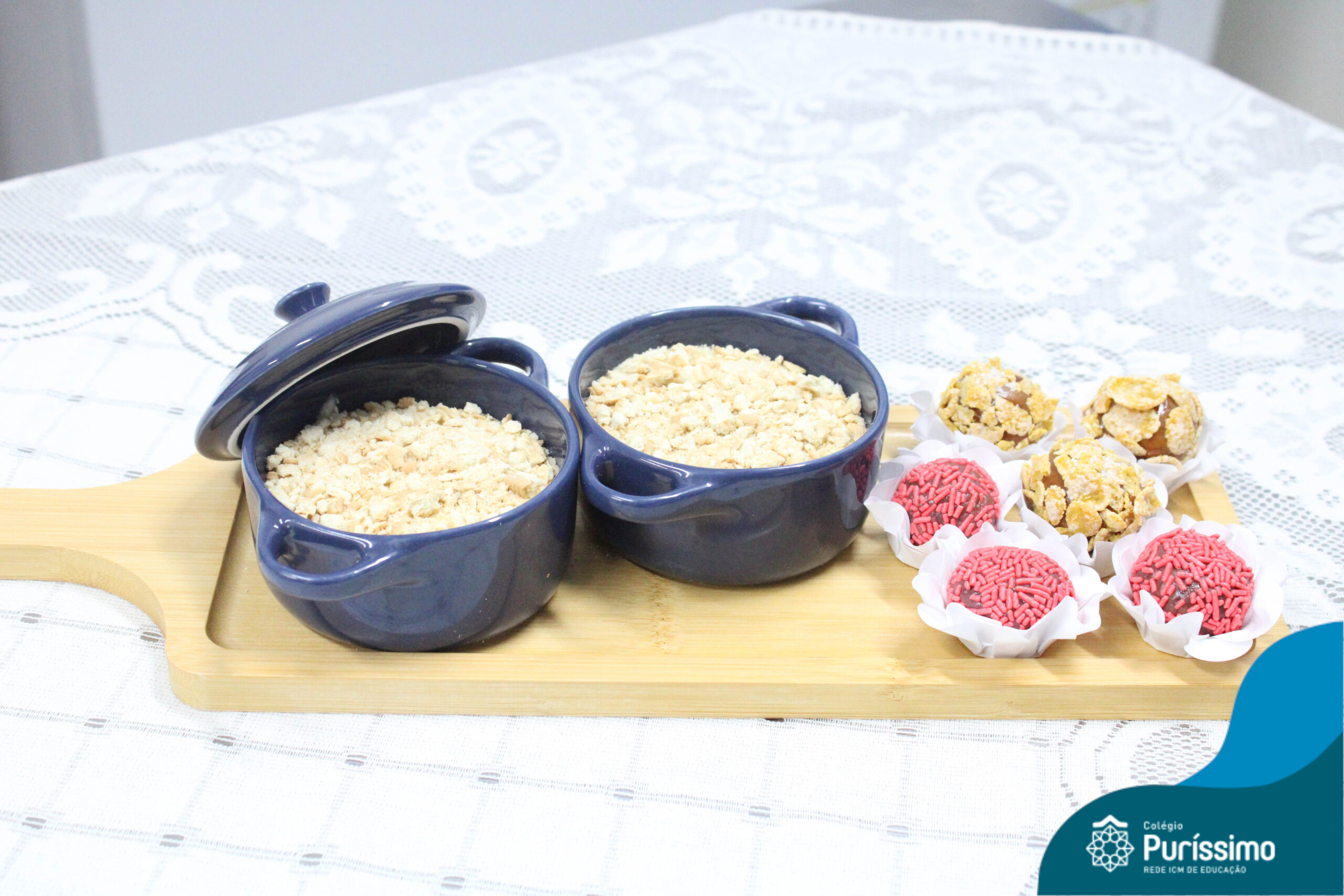 Os estudantes tinham como tema “docinhos de festa” e cada equipe entregou três tipos diferentes de doces para que fossem avaliados pelo chef João e pelo professor Rodrigo, de inglês.