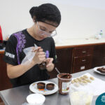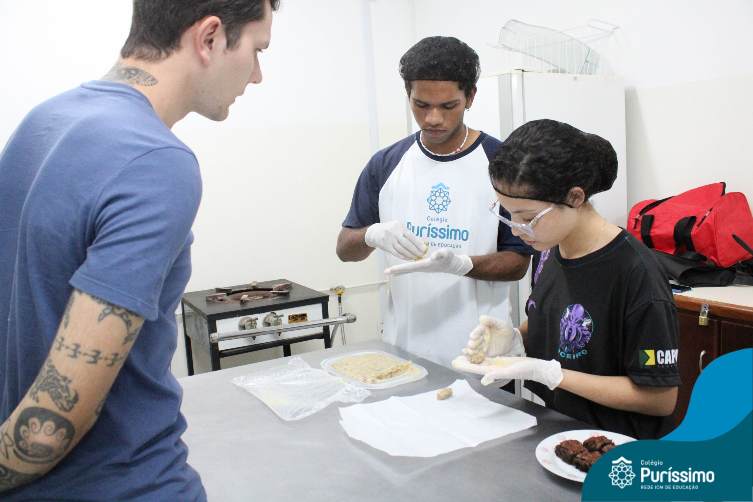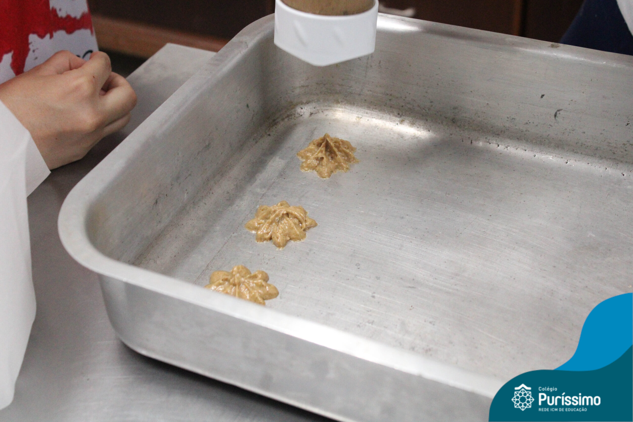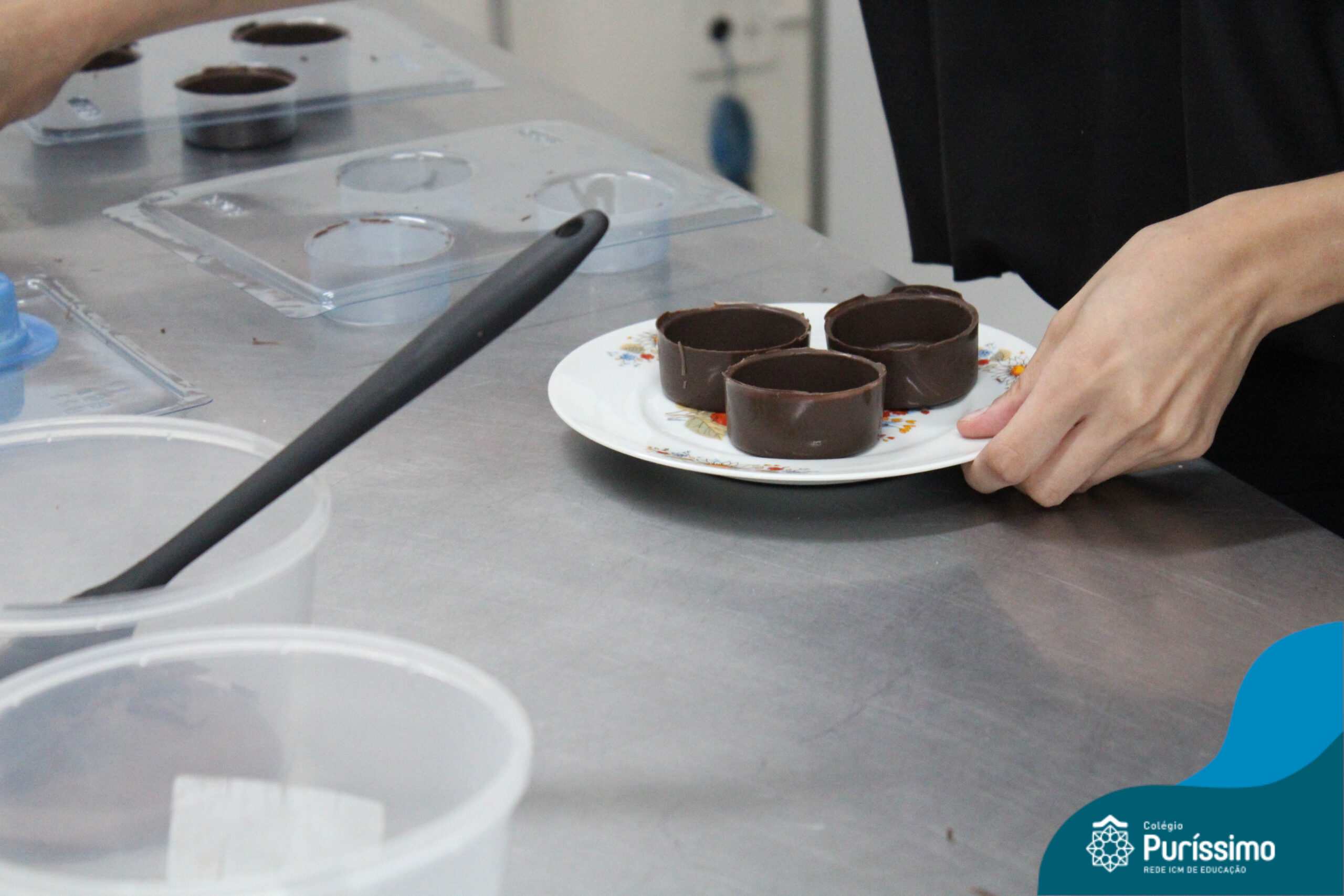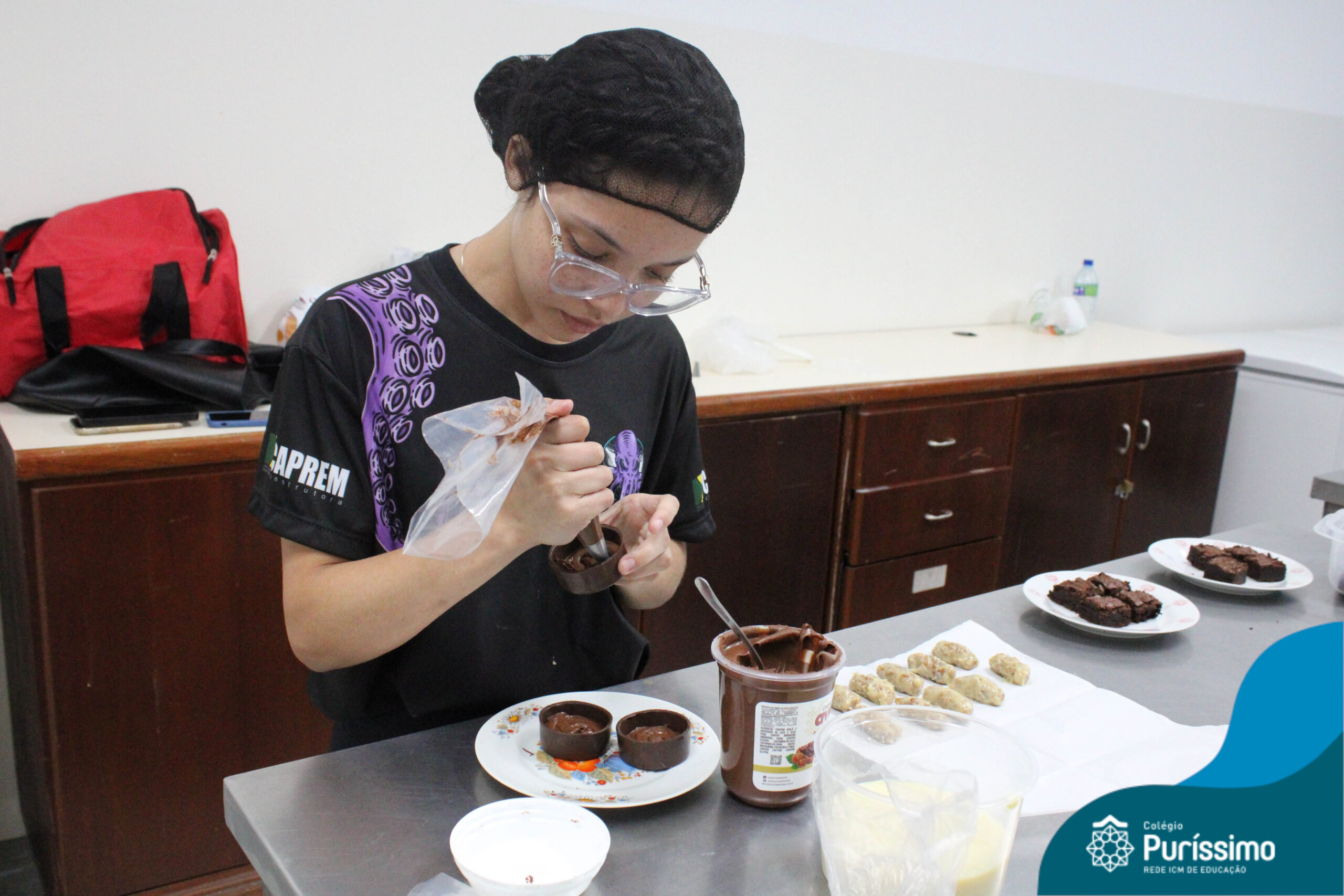 Os estudantes tinham como tema “docinhos de festa” e cada equipe entregou três tipos diferentes de doces para que fossem avaliados pelo chef João e pelo professor Rodrigo, de inglês.