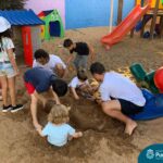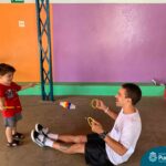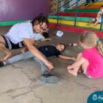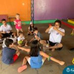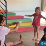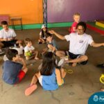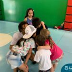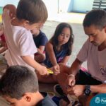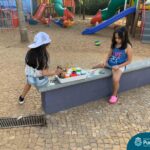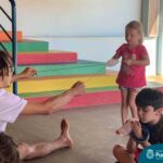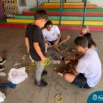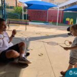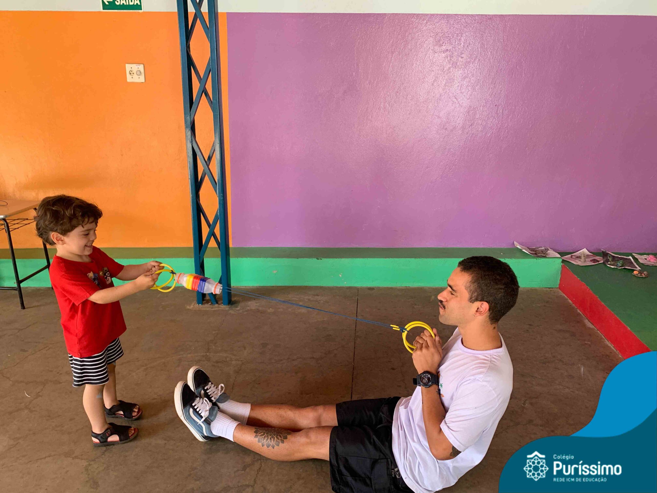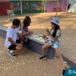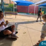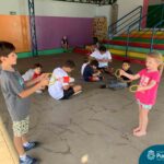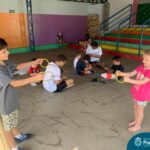 Tivemos jogos como “Pai/Mãe da rua”, “Esconde-Esconde Sardinha” além é claro da OFICINA, onde as crianças aprenderam a fazer um brinquedo “Vai e Vem”!