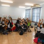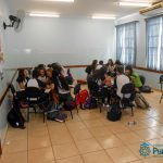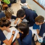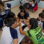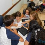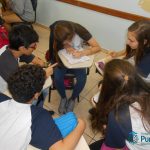 No mês de abril, os alunos dos 8ºs e 9ºs anos realizaram uma atividade relacionada à leitura dos livros paradidáticos propostos como leitura adicional. A atividade foi realizada pela professora Mariana Camolese, que desenvolveu um Quiz literário, no qual os alunos participaram em grupos, respondendo questões sobre o livro como se fosse uma competição, um jogo. As perguntas foram feitas pela professora, a qual determinava um tempo para a resposta, que era escrita pelo grupo. No final, os grupos vencedores foram aqueles que elaboraram respostas mais completas aos desafios propostos, fato que também proporcionou o estímulo à escrita de forma natural.