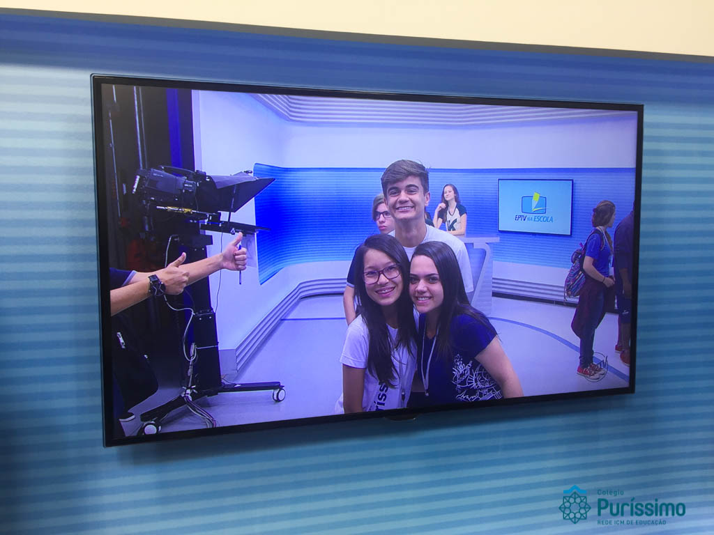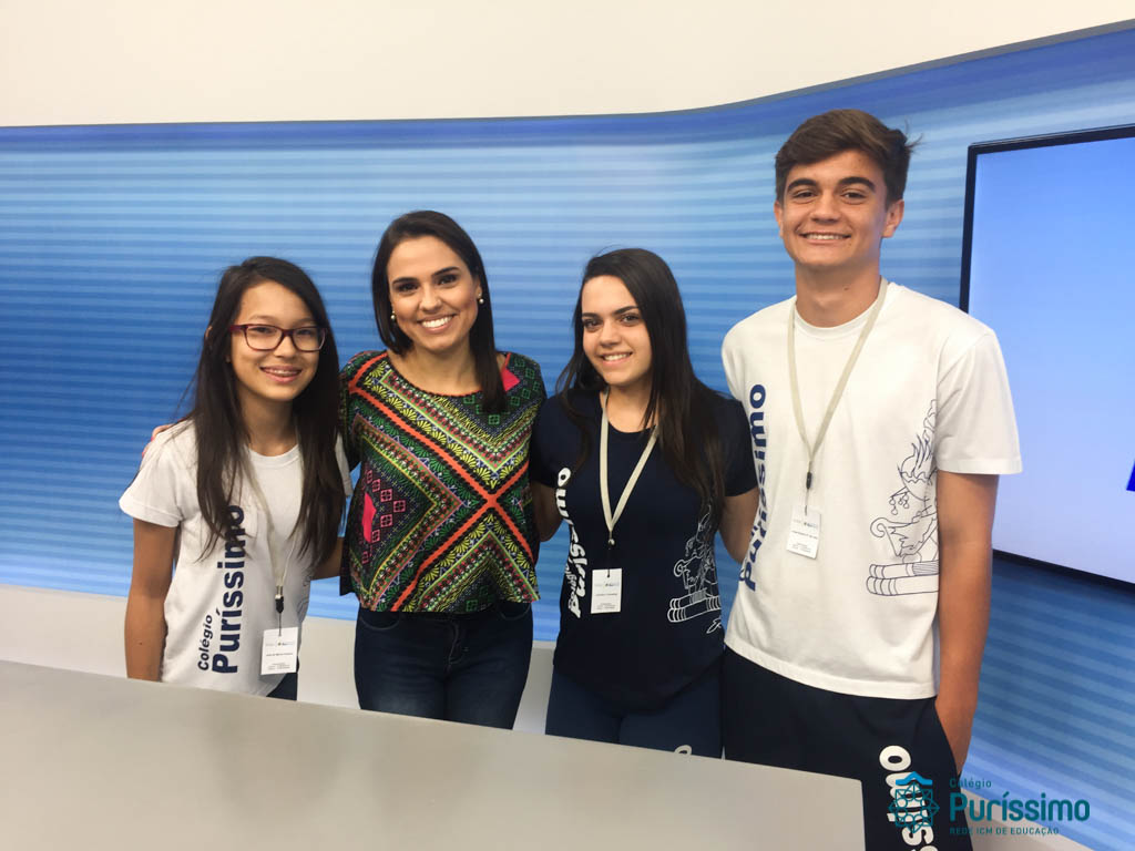 Carolina Coli Gonçalves, aluna do 9º ano do Colégio, é semifinalista do Projeto EPTV na escola, com a redação “A rua mais bela”, que teve orientação da professora de redação do Ensino Fundamental, Patrícia Cury e o tema “Se esta rua, se esta rua fosse minha…” Por quê? Não é? E visitou a emissora na última quinta-feira, 19, junto com outros alunos selecionados da região.