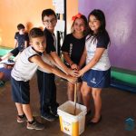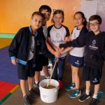 Como parte do trabalho com o livro “o jogo de não jogar”, no qual as crianças estudaram sobre o lixo, reciclagem, reaproveitamento e sustentabilidade, os alunos do 3° ano 3 T, receberam a avó do aluno Matheus, Maria de Lourdes, que ensinou as crianças a transformar óleo de cozinha usado em sabão. Com os 3°s anos 1 e 2 M, a coordenadora Valéria fez o mesmo processo.