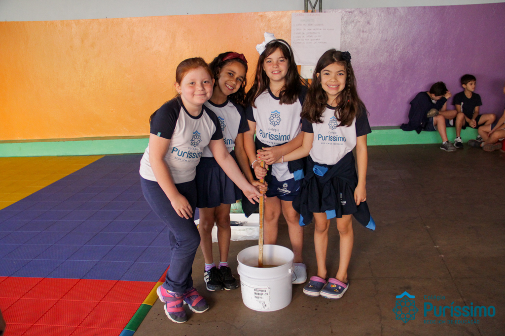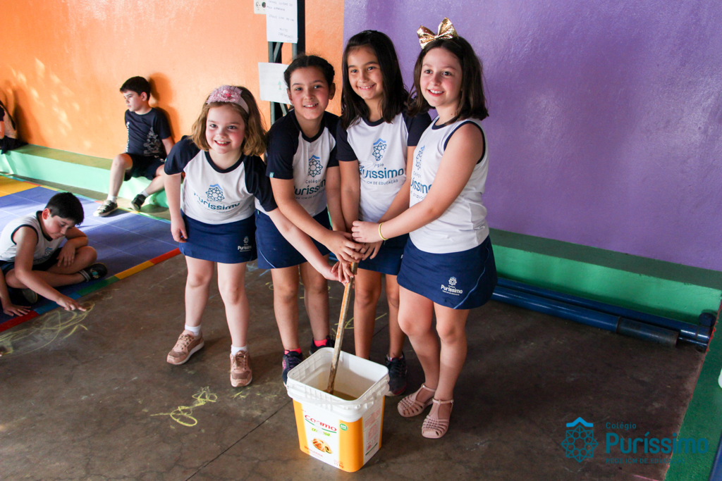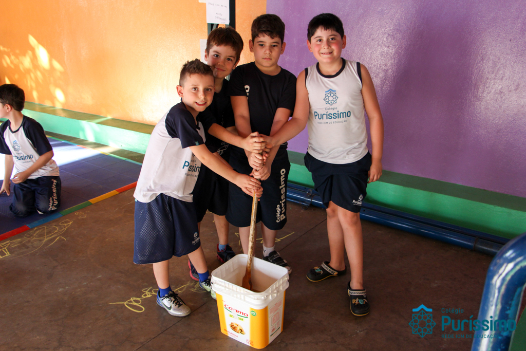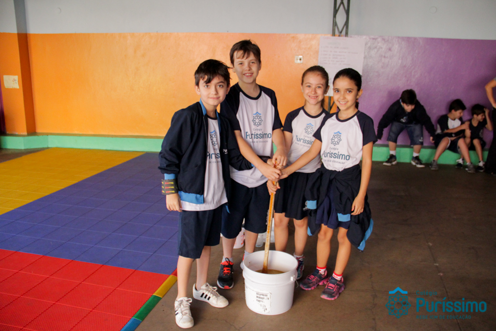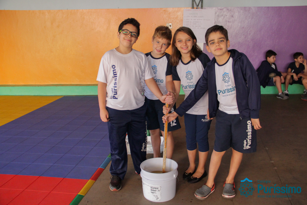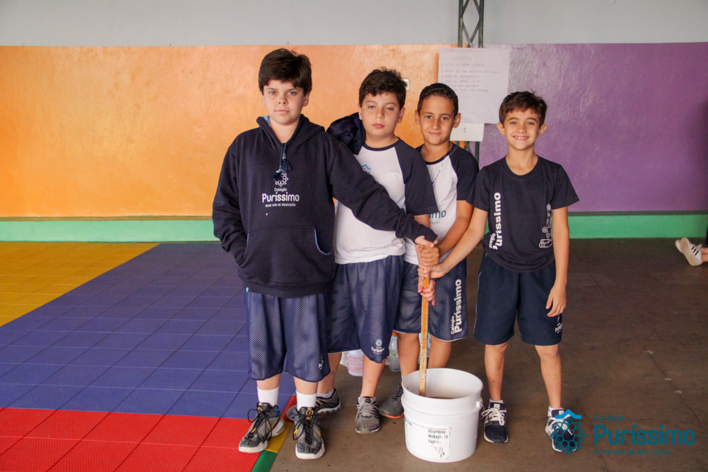 Como parte do trabalho com o livro “o jogo de não jogar”, no qual as crianças estudaram sobre o lixo, reciclagem, reaproveitamento e sustentabilidade, os alunos do 3° ano 3 T, receberam a avó do aluno Matheus, Maria de Lourdes, que ensinou as crianças a transformar óleo de cozinha usado em sabão. Com os 3°s anos 1 e 2 M, a coordenadora Valéria fez o mesmo processo.