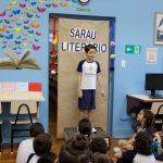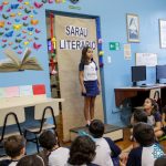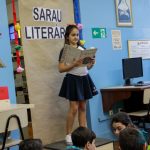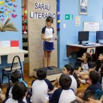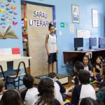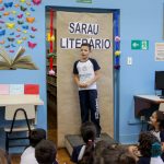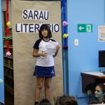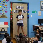 Como os alunos se interessaram em ler uma poesia em voz alta para os colegas, surgiu a ideia de realizar um sarau. As professoras exploraram, então, como declamar um poema e os alunos que se sentiram à vontade, escolheram uma poesia, ensaiaram e declamaram no Sarau Literário dos 4ºs anos. Foi um momento com bastante descontração e conhecimento!