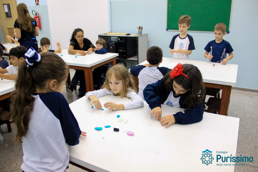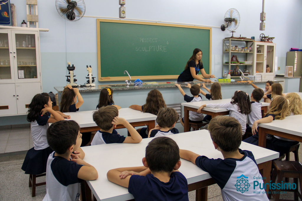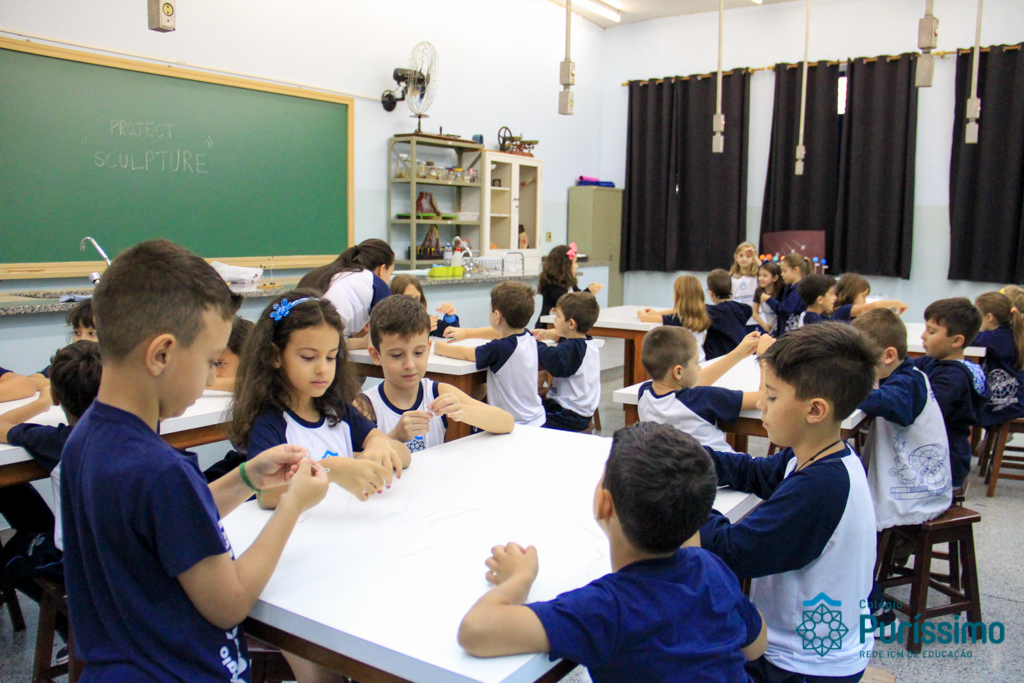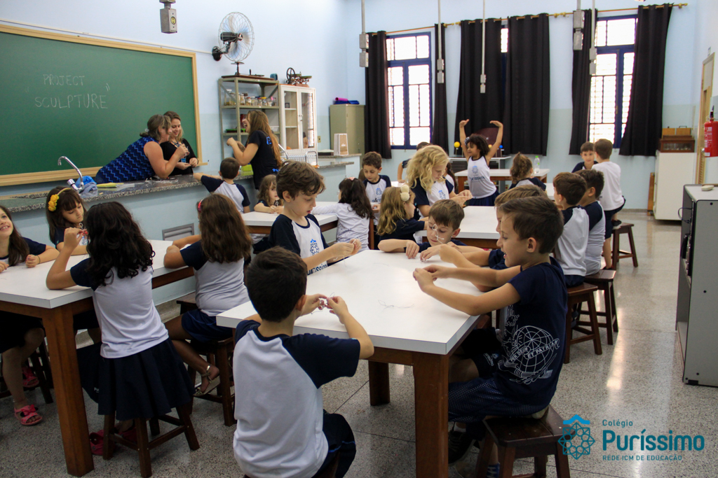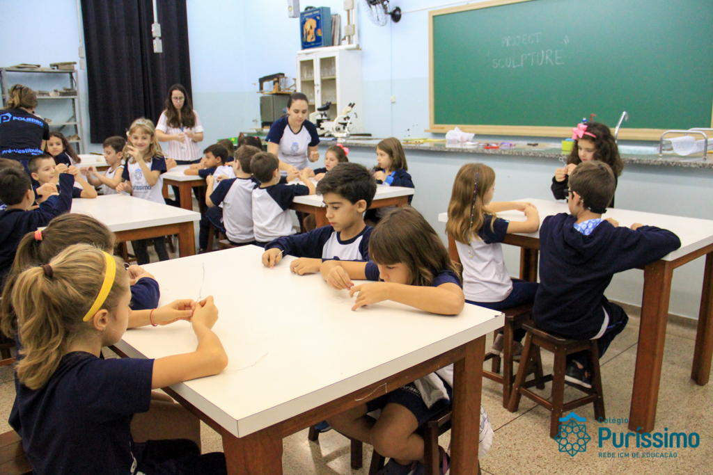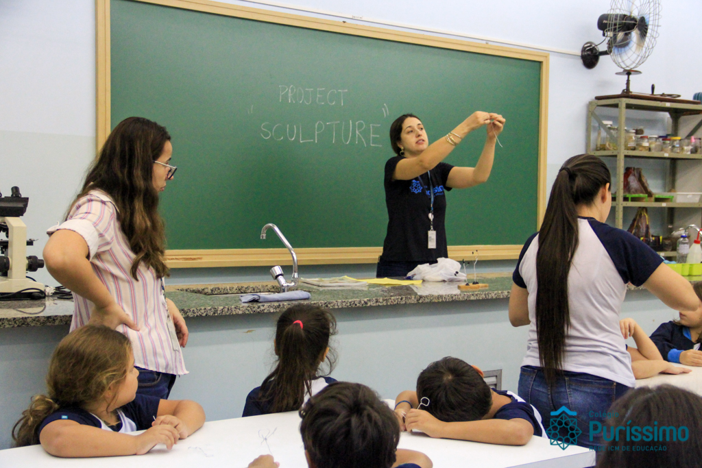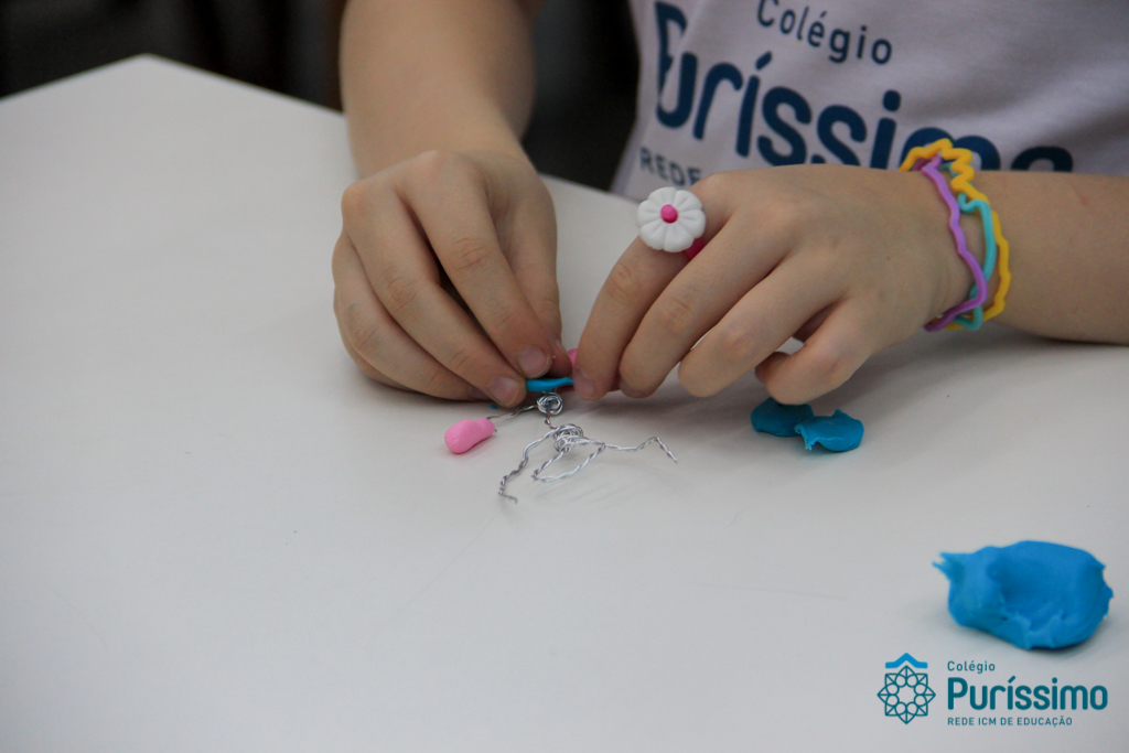 Os alunos dos 2ºs anos do Ensino Fundamental I, da manhã e da tarde, estão estudando sobre os diferentes tipos de expressões artísticas na aula de inglês, desse modo, as crianças desenvolveram uma atividade maker, criando as próprias “sculptures” utilizando arame e biscuit.