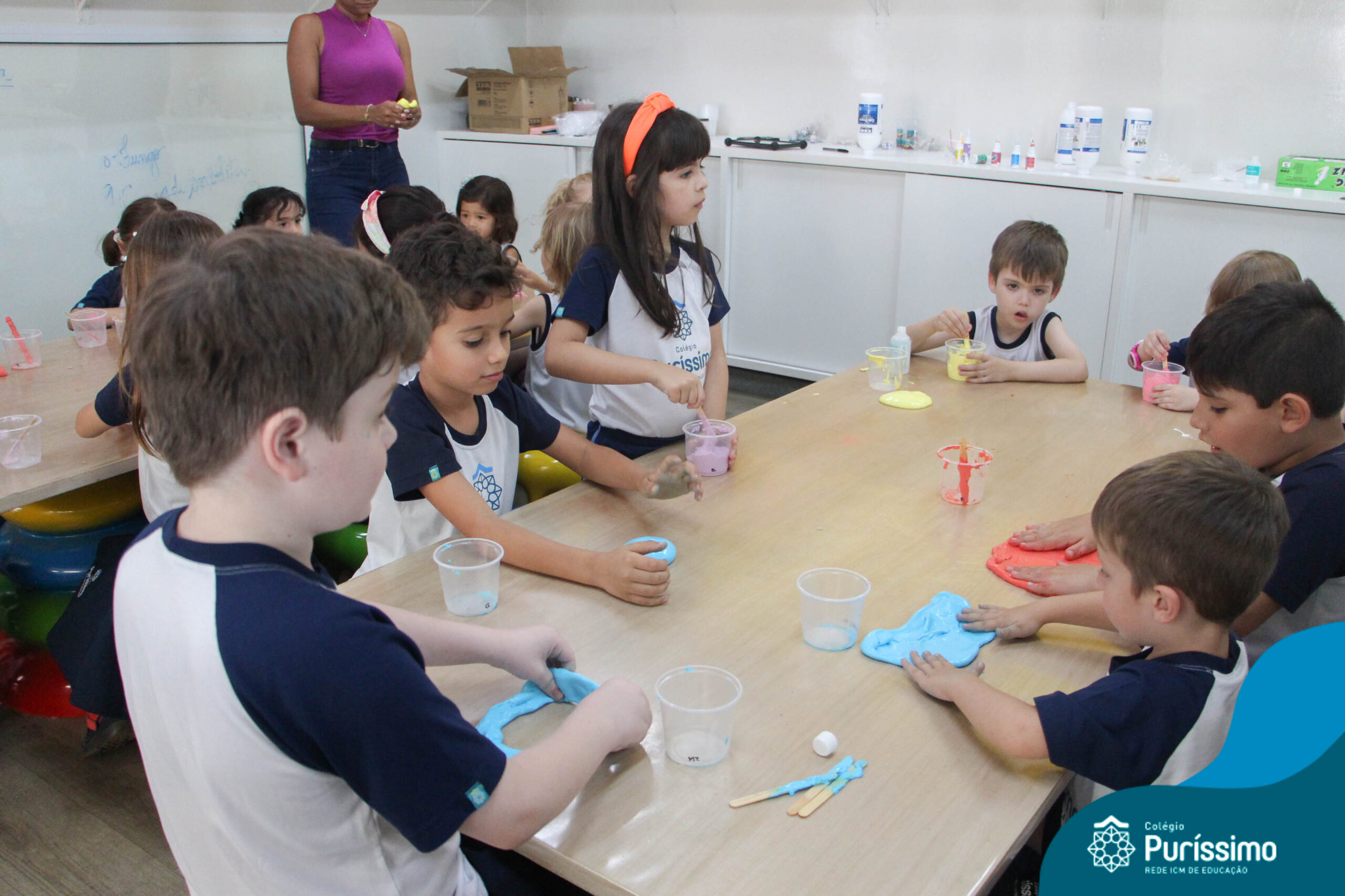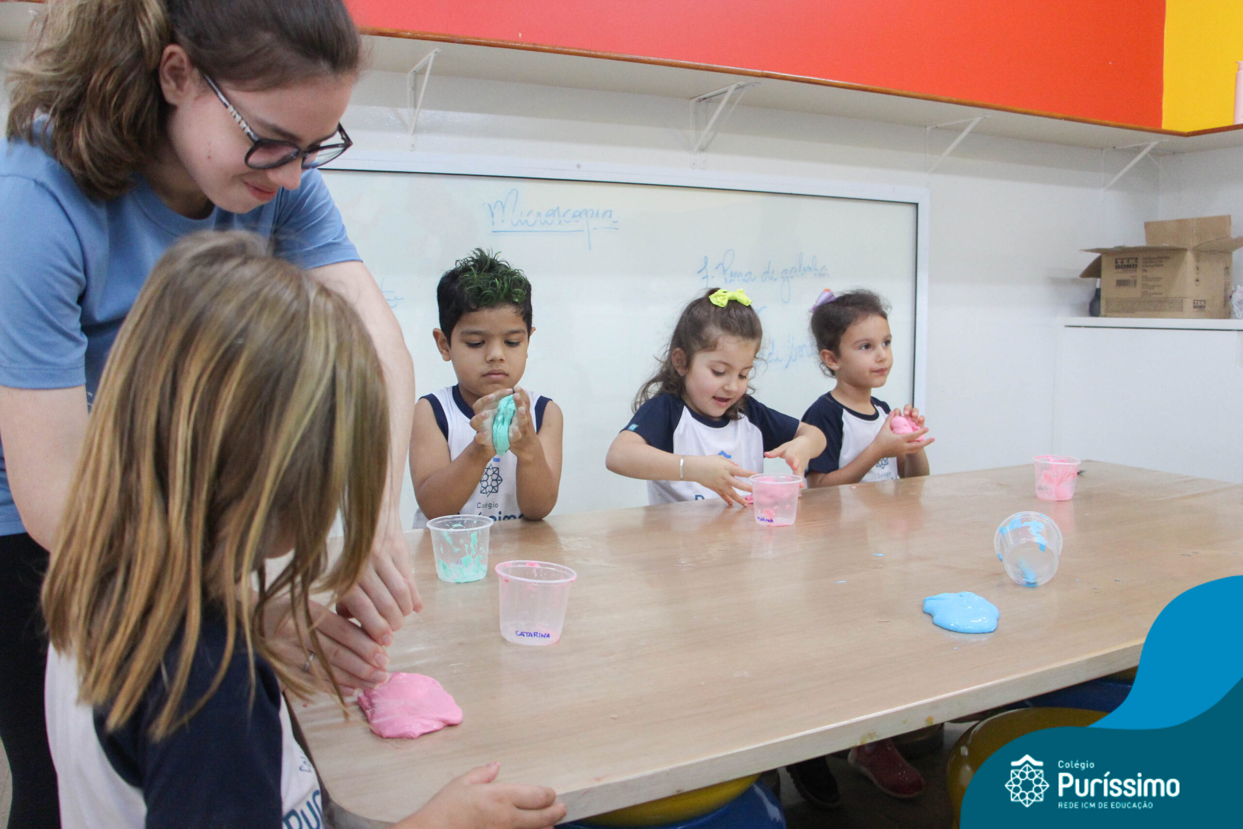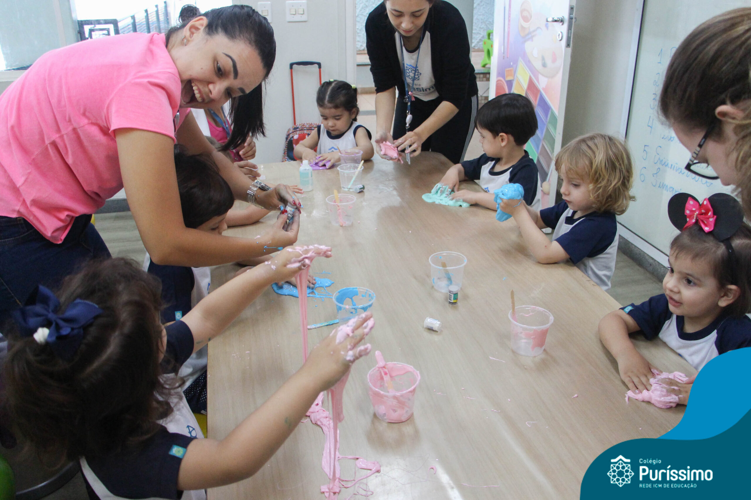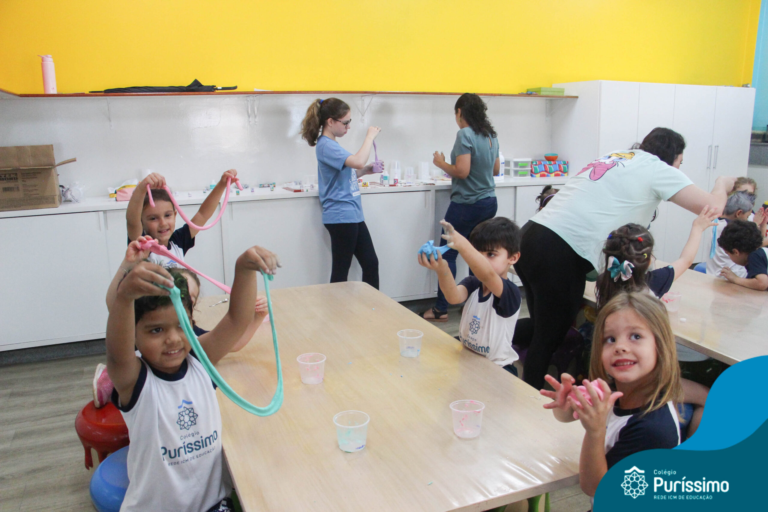 Os alunos do Berçário ao 1º ano aprenderam a fazer SLIME.