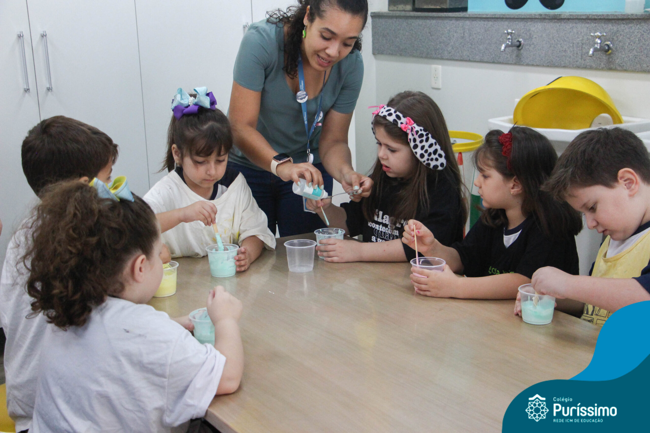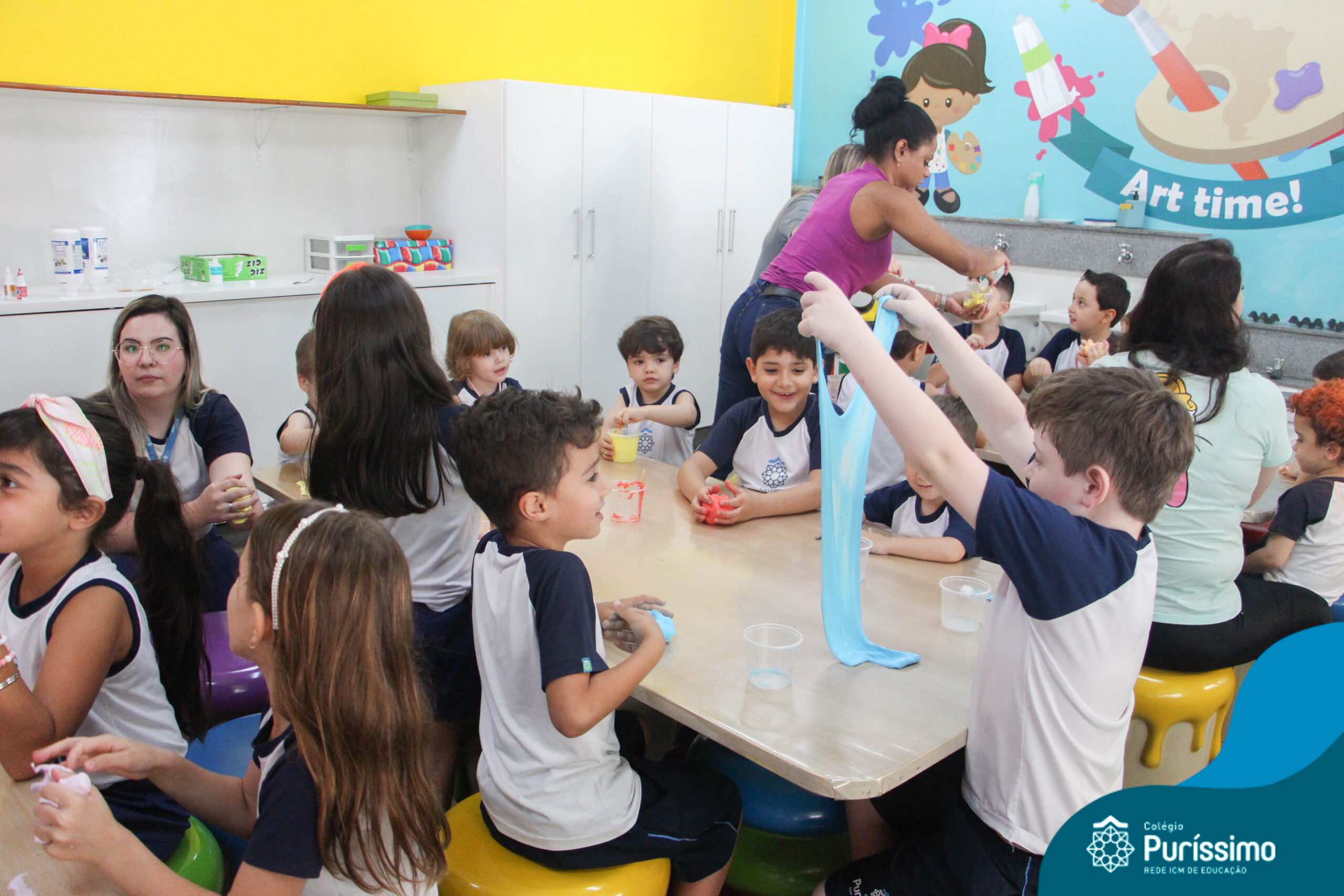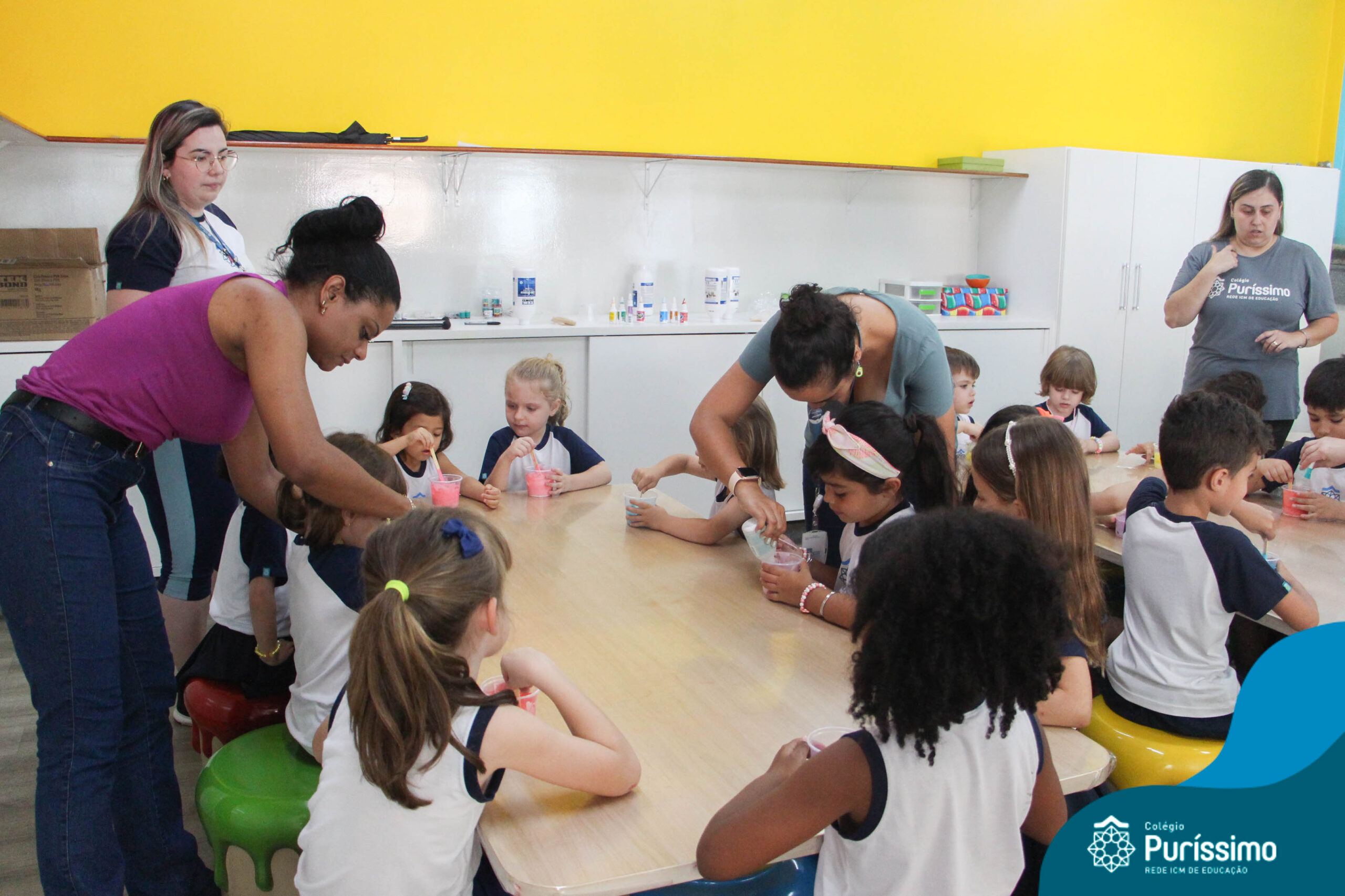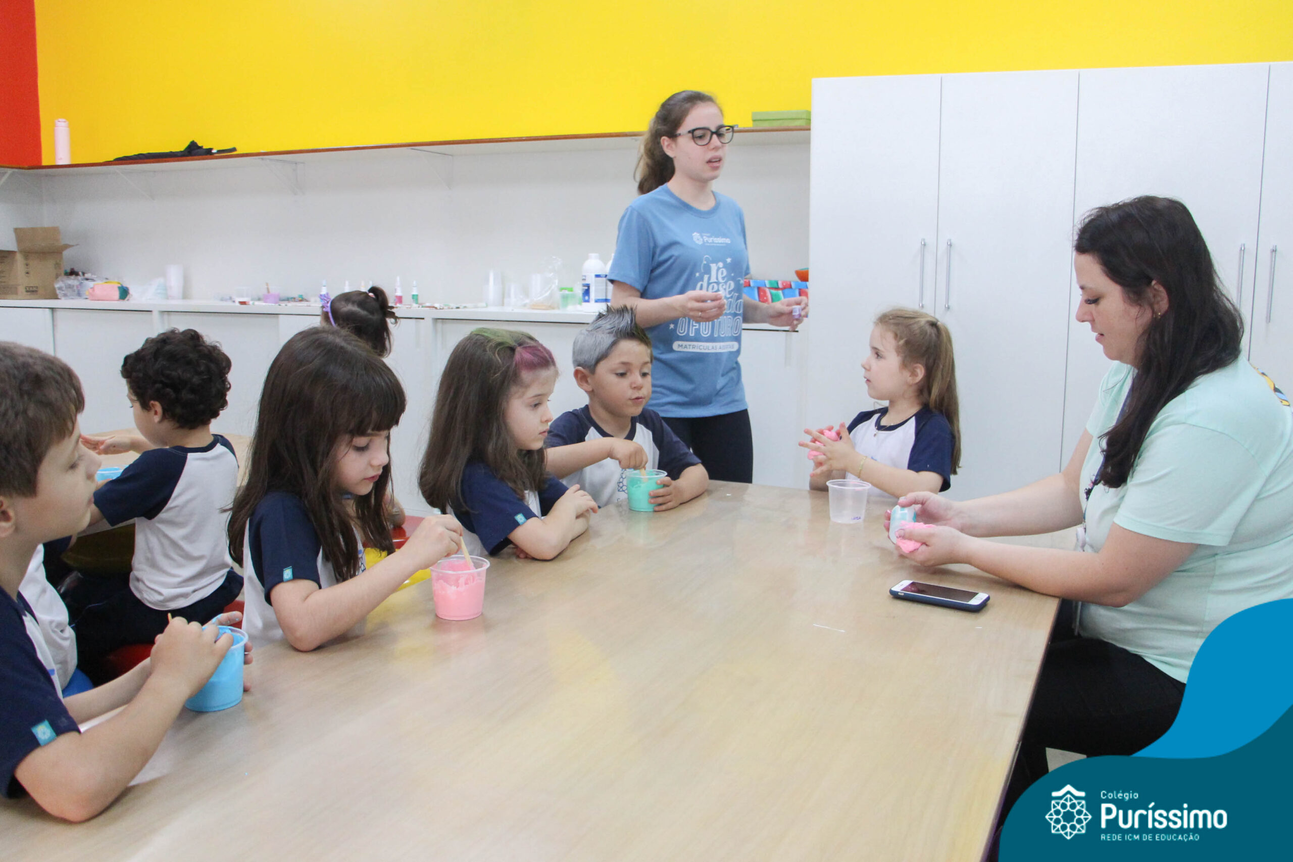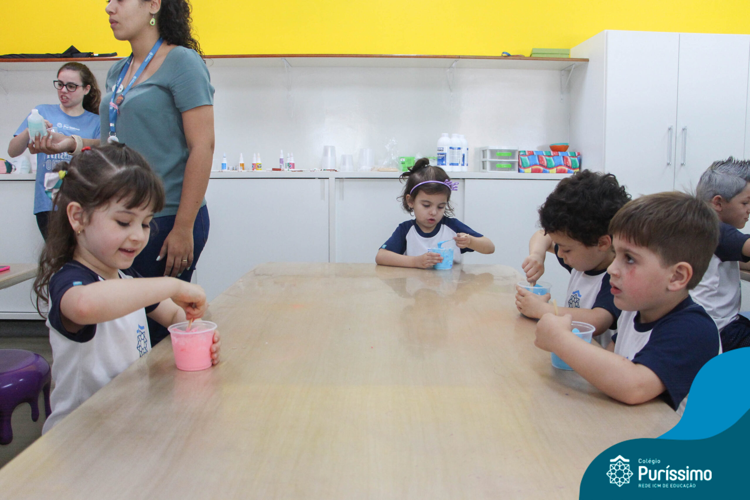 Os alunos do Berçário ao 1º ano aprenderam a fazer SLIME.