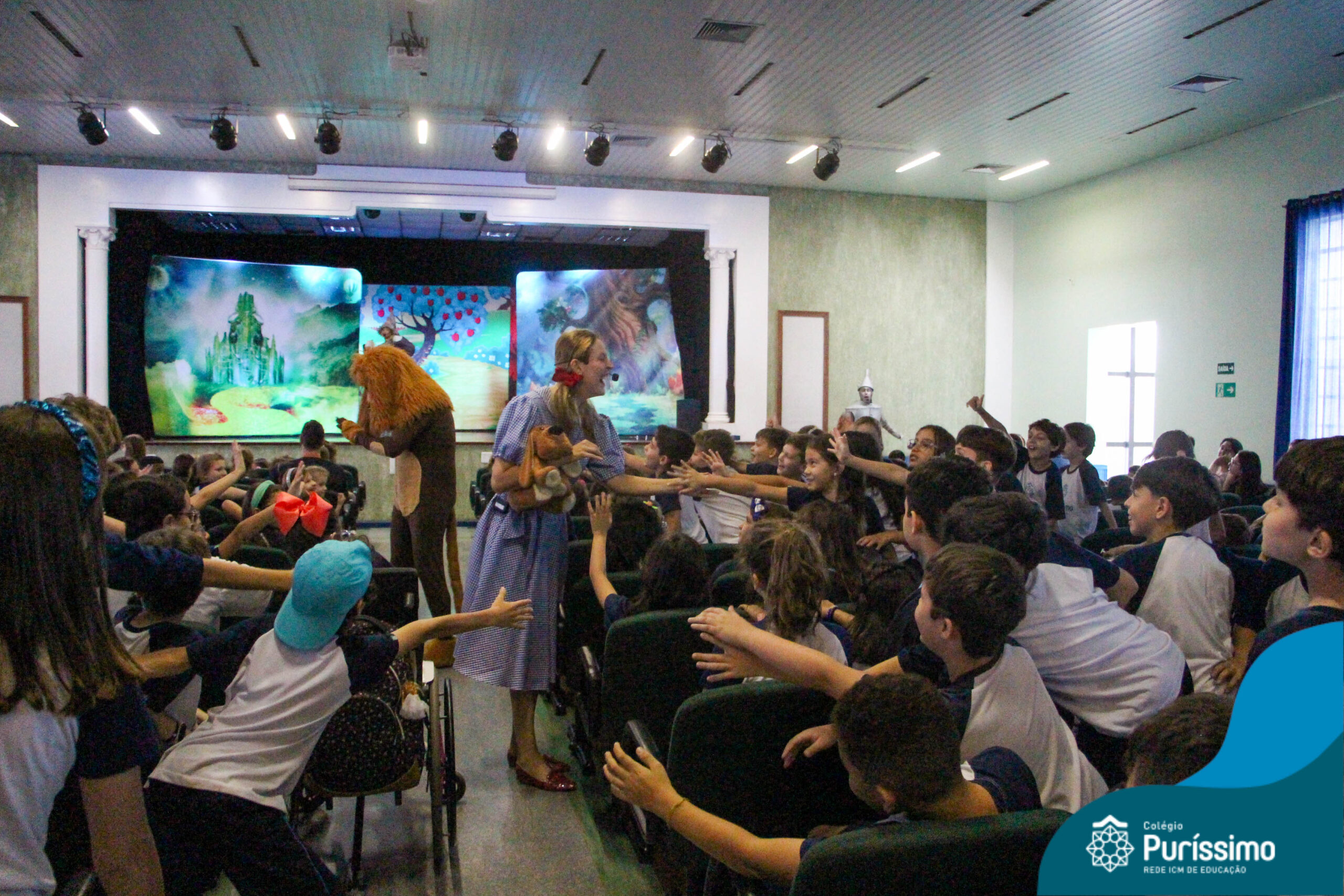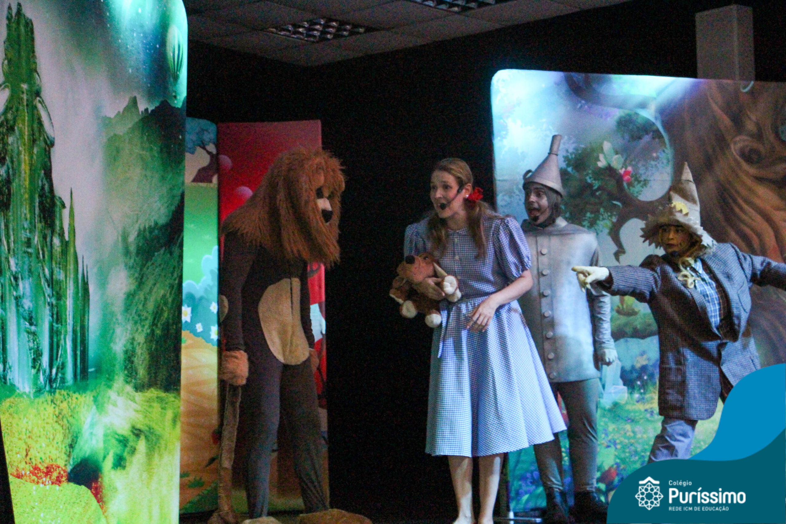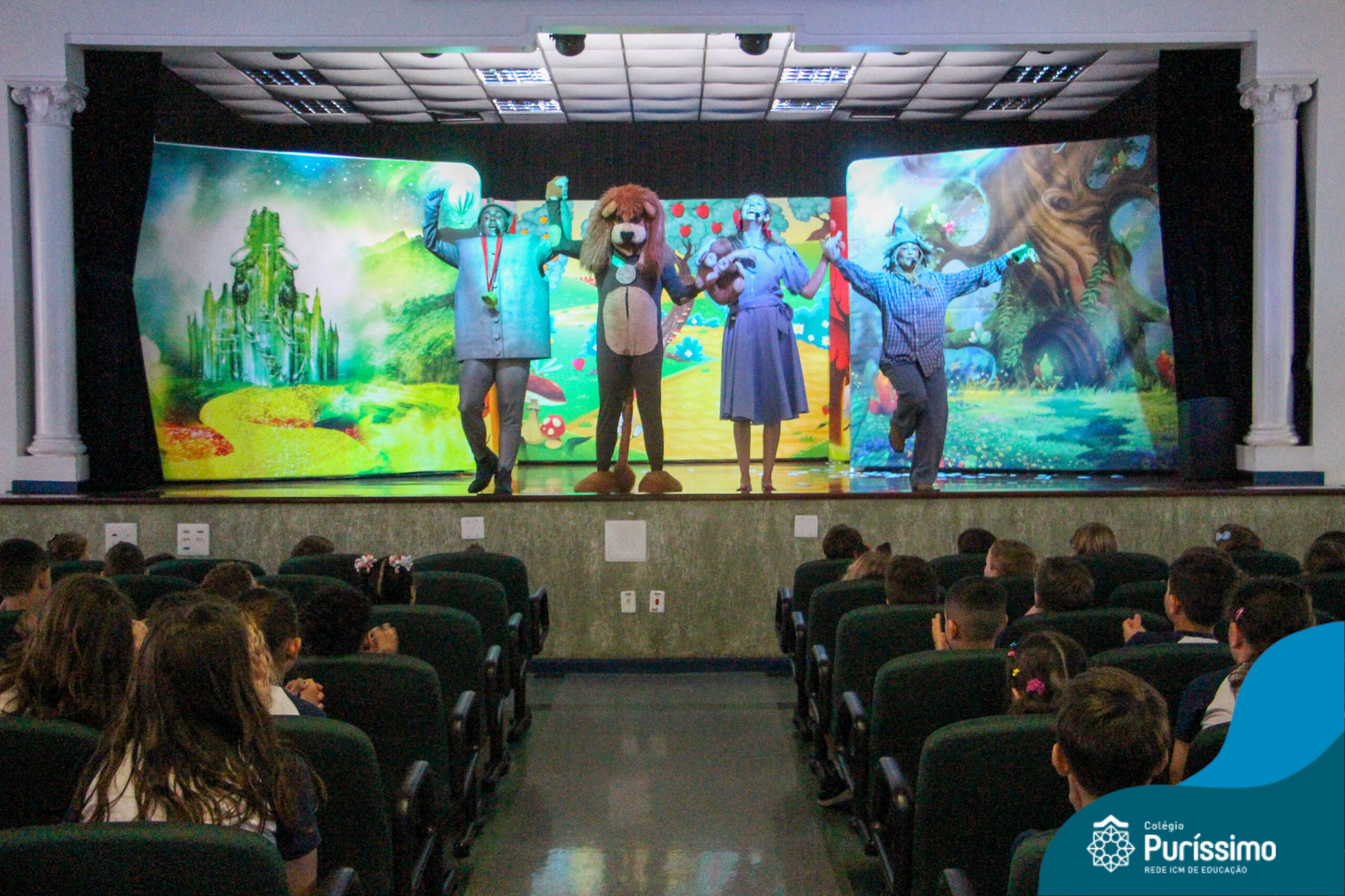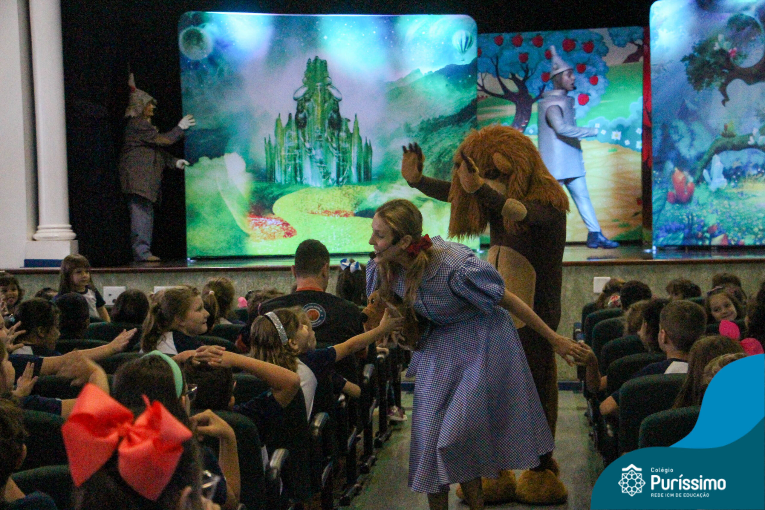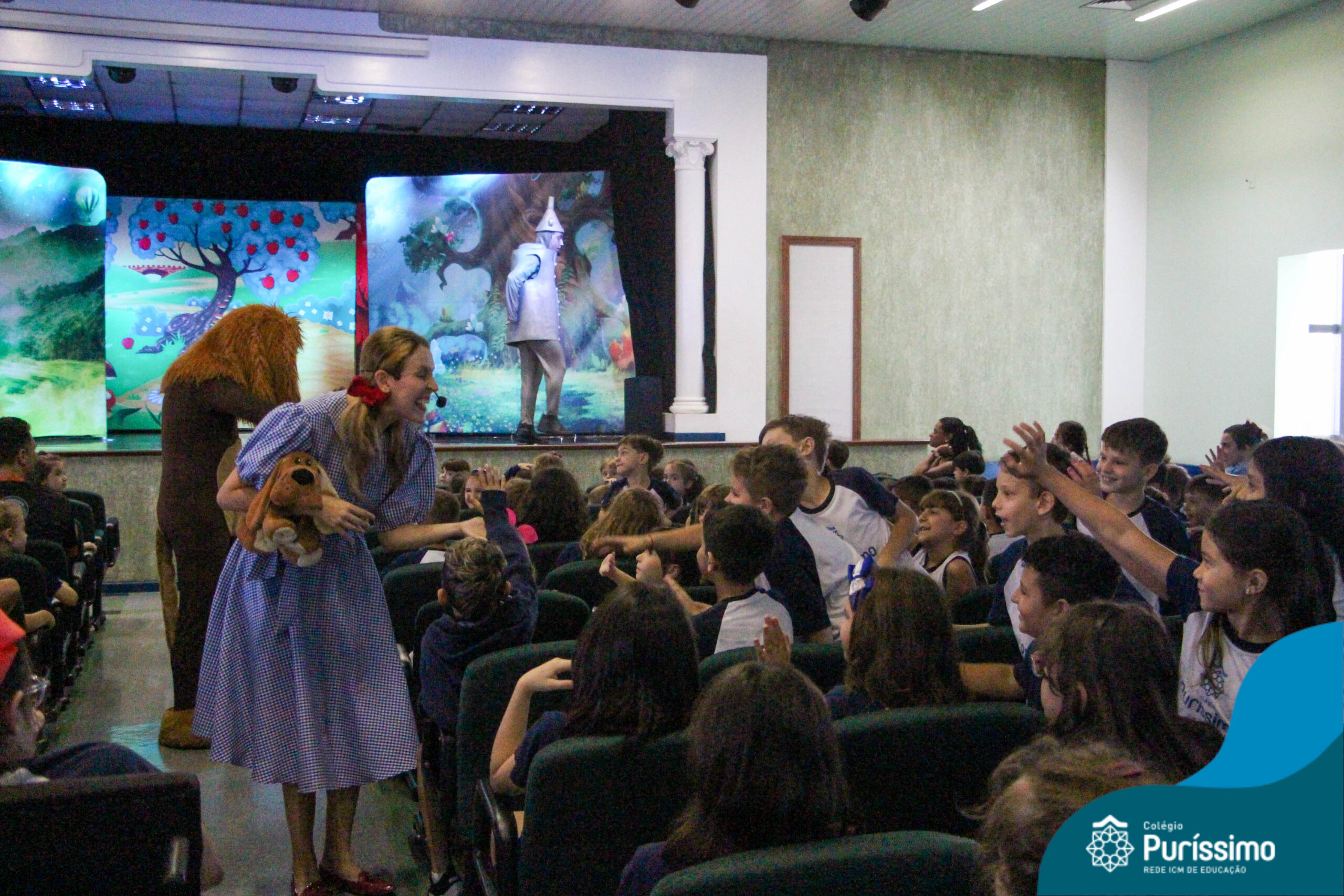 Os estudantes do Maternal 1 ao 5º ano EF tiveram a oportunidade de assistir o espetáculo “O Mágico de Oz” performado pela Cia Arte & Manhas – Tá na hora do Teatro.