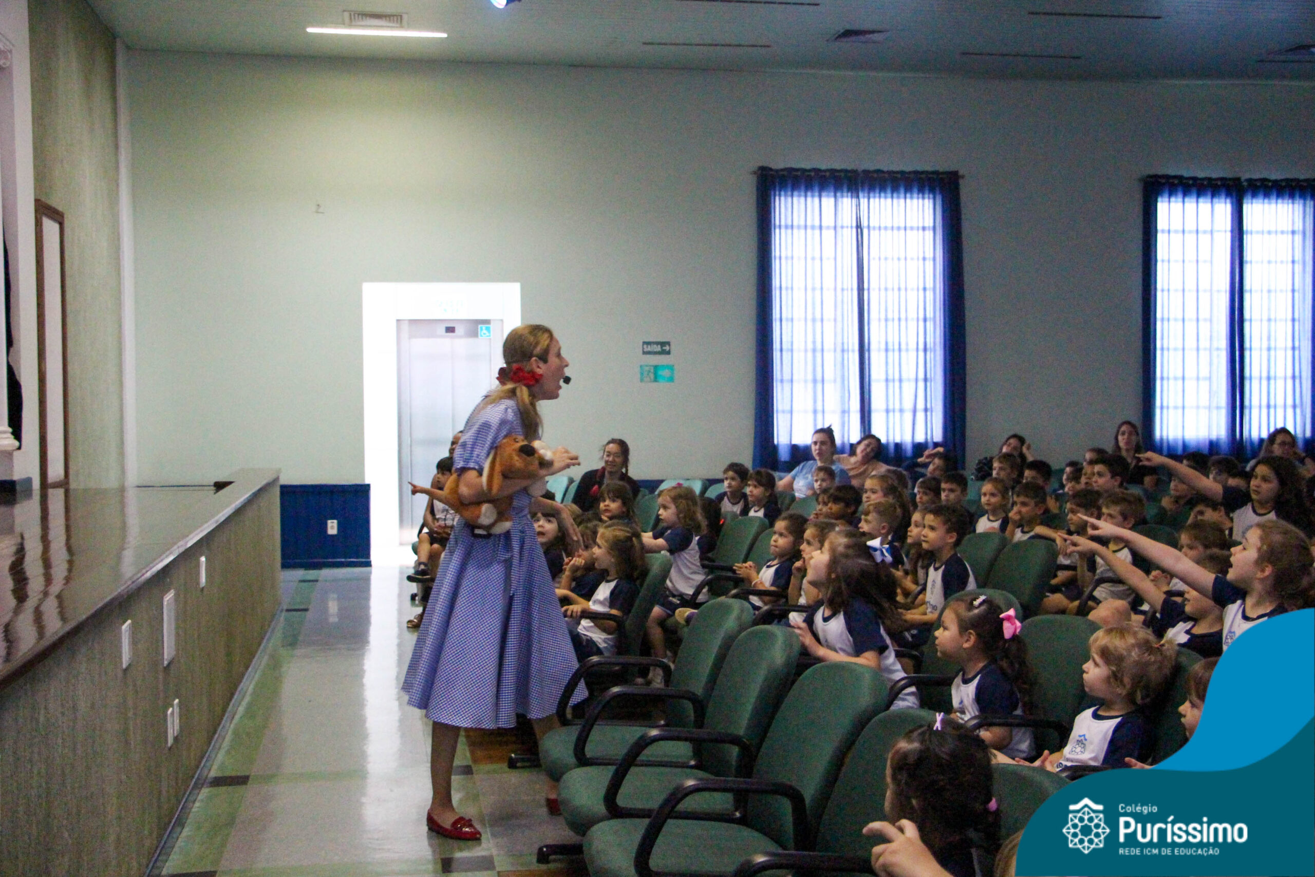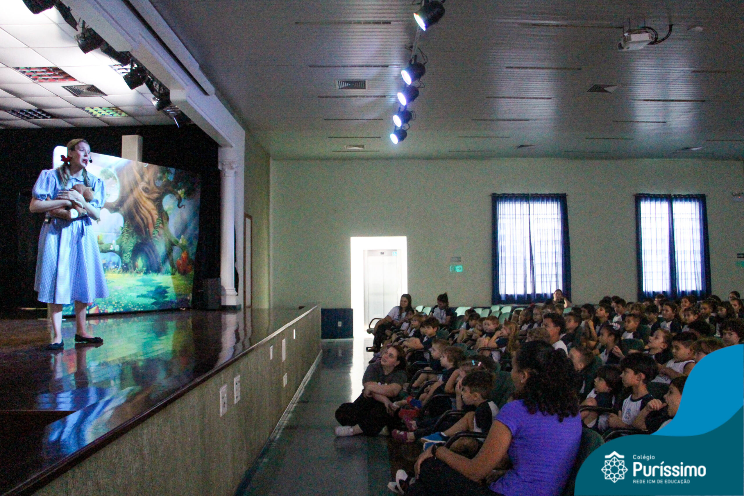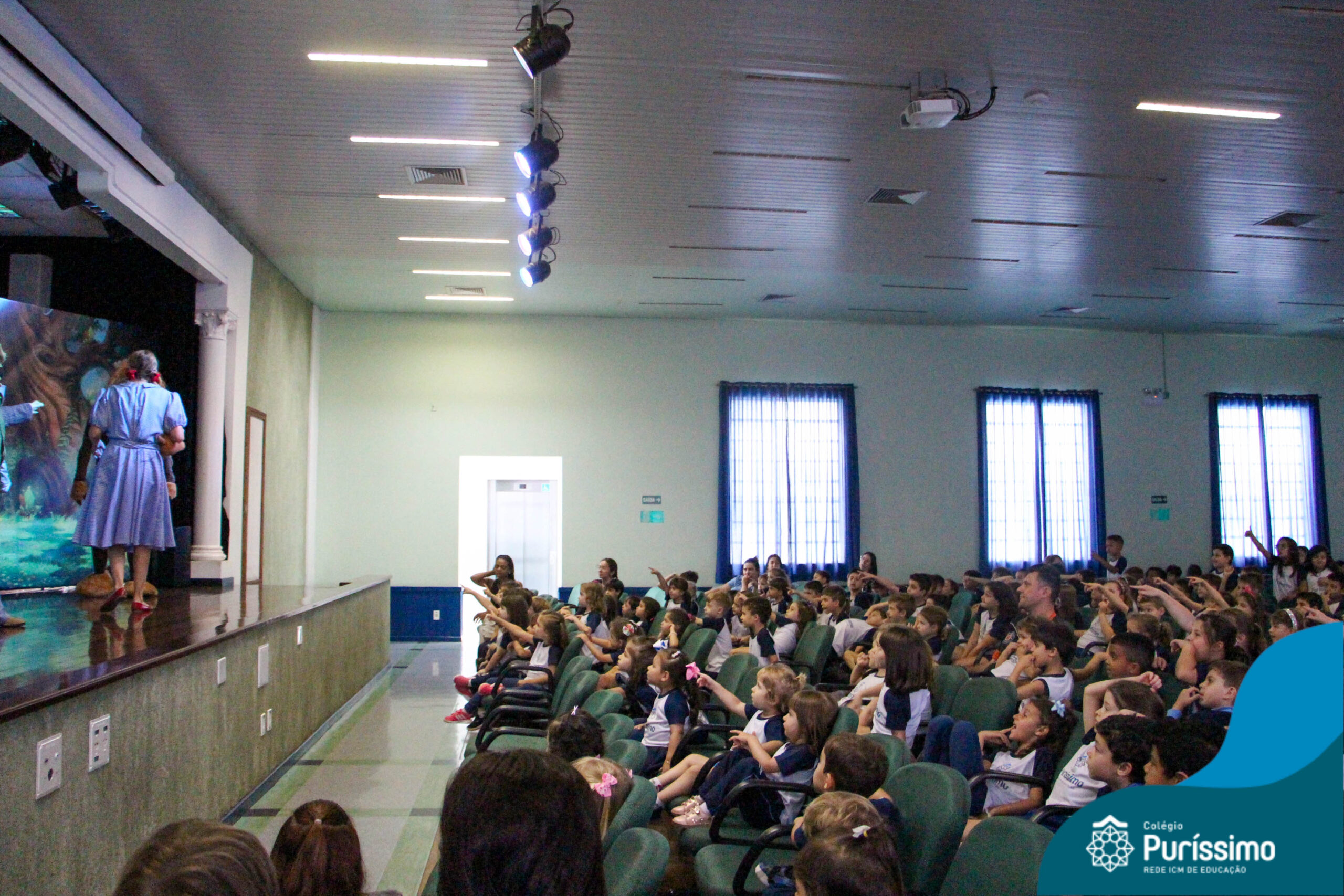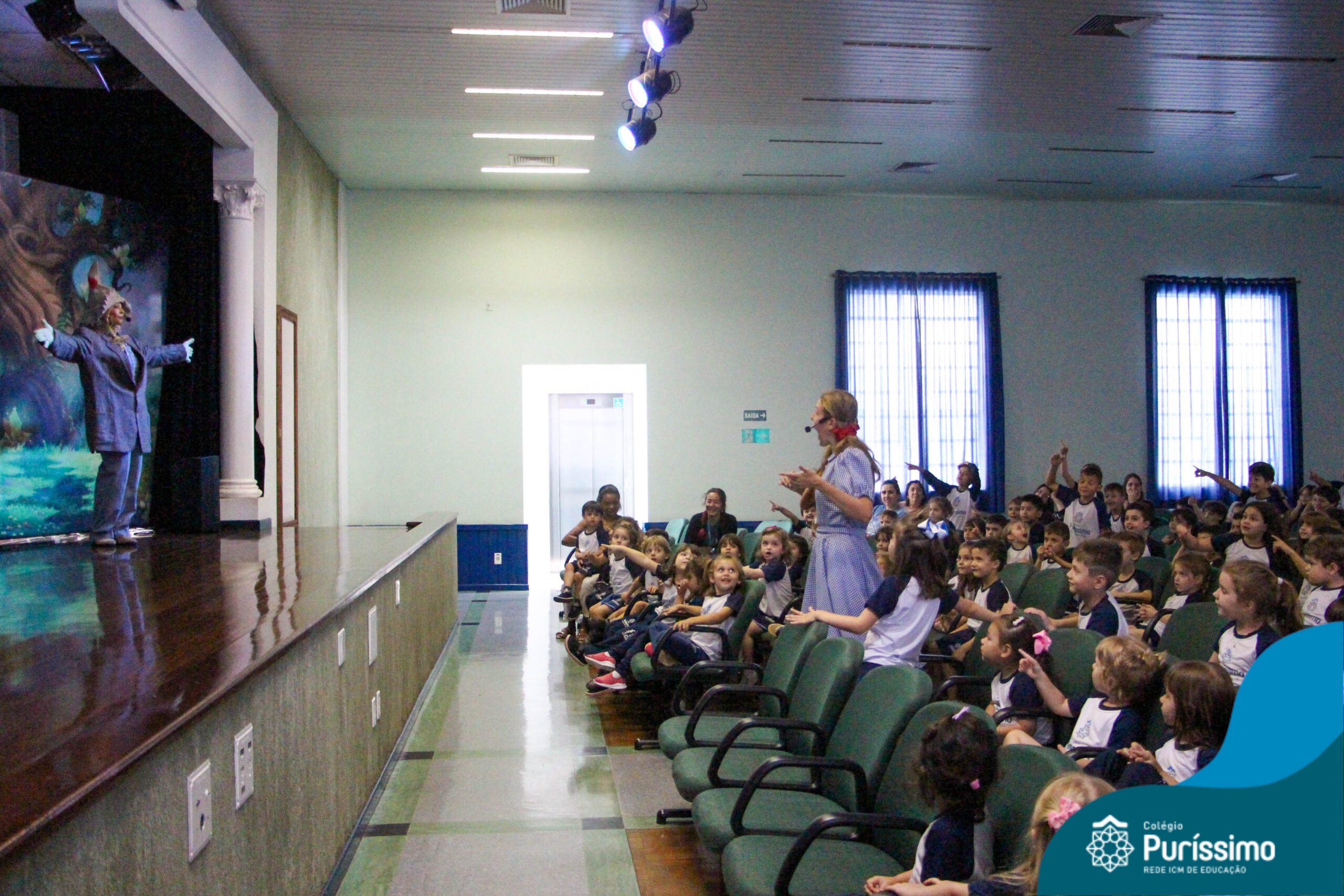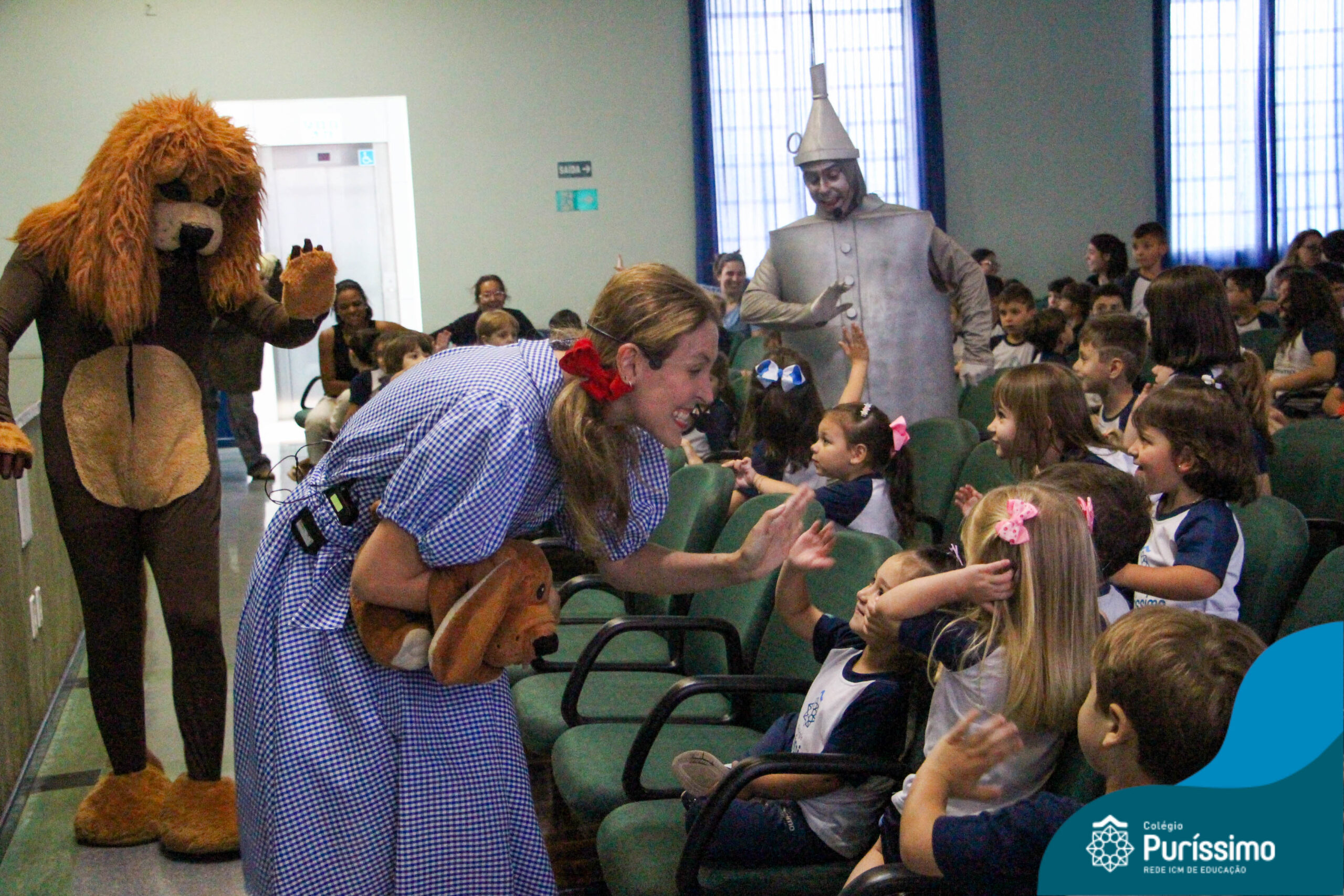 Os estudantes do Maternal 1 ao 5º ano EF tiveram a oportunidade de assistir o espetáculo “O Mágico de Oz” performado pela Cia Arte & Manhas – Tá na hora do Teatro.