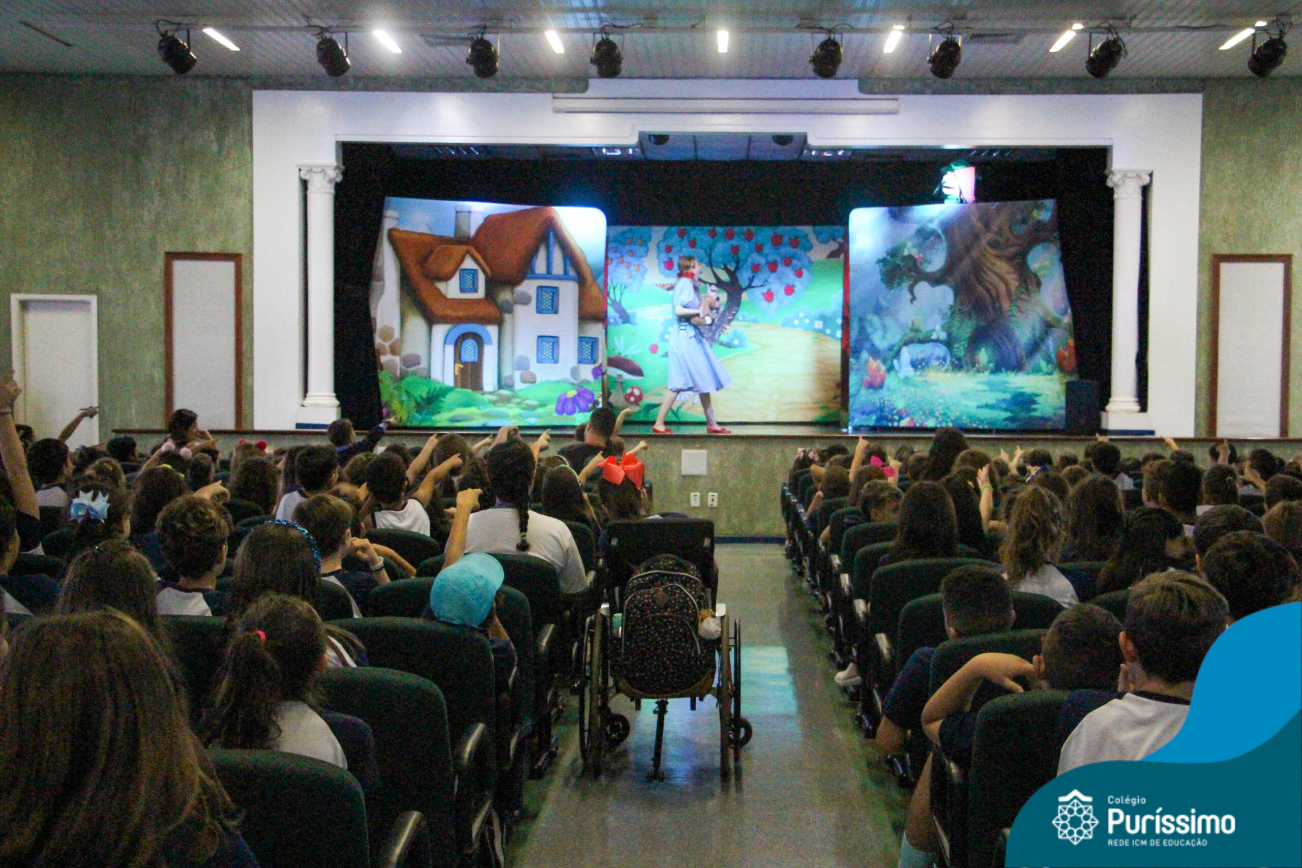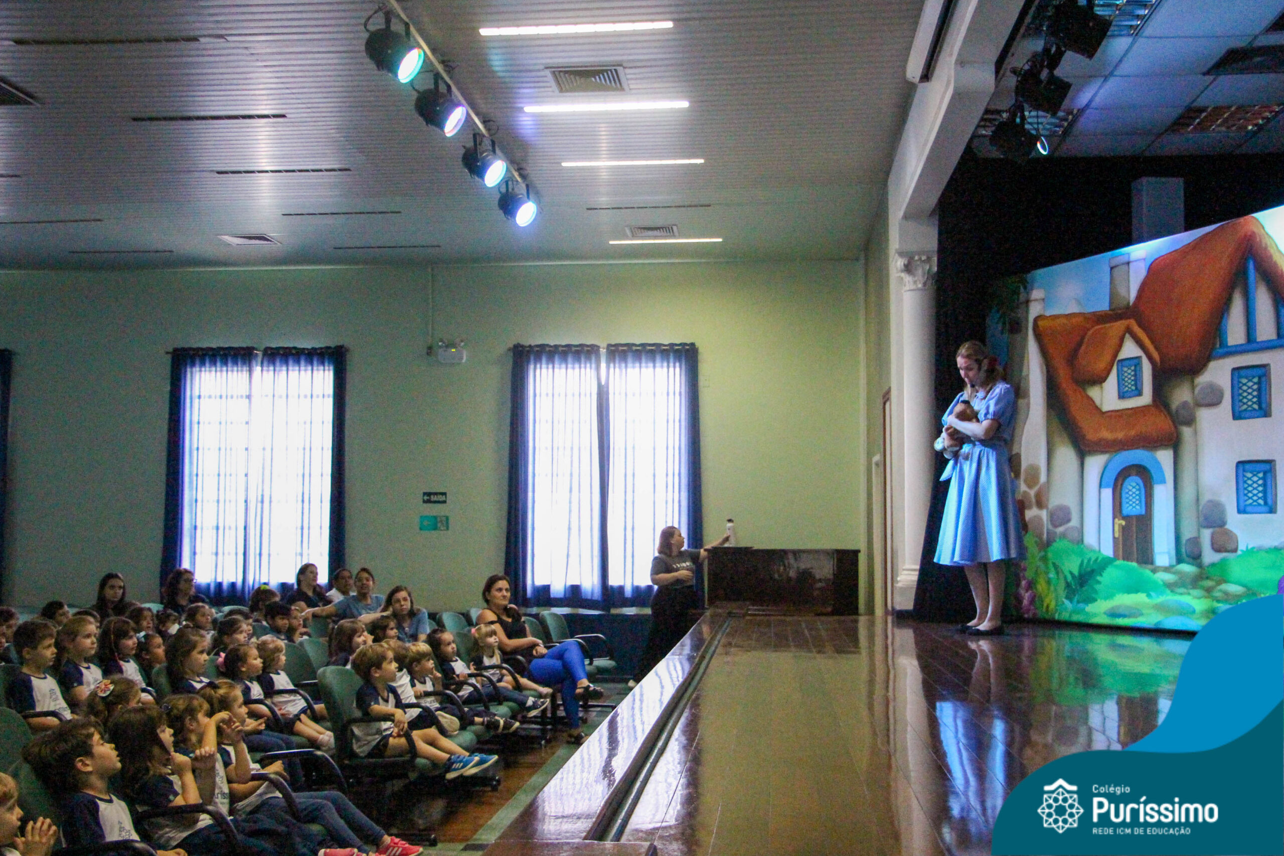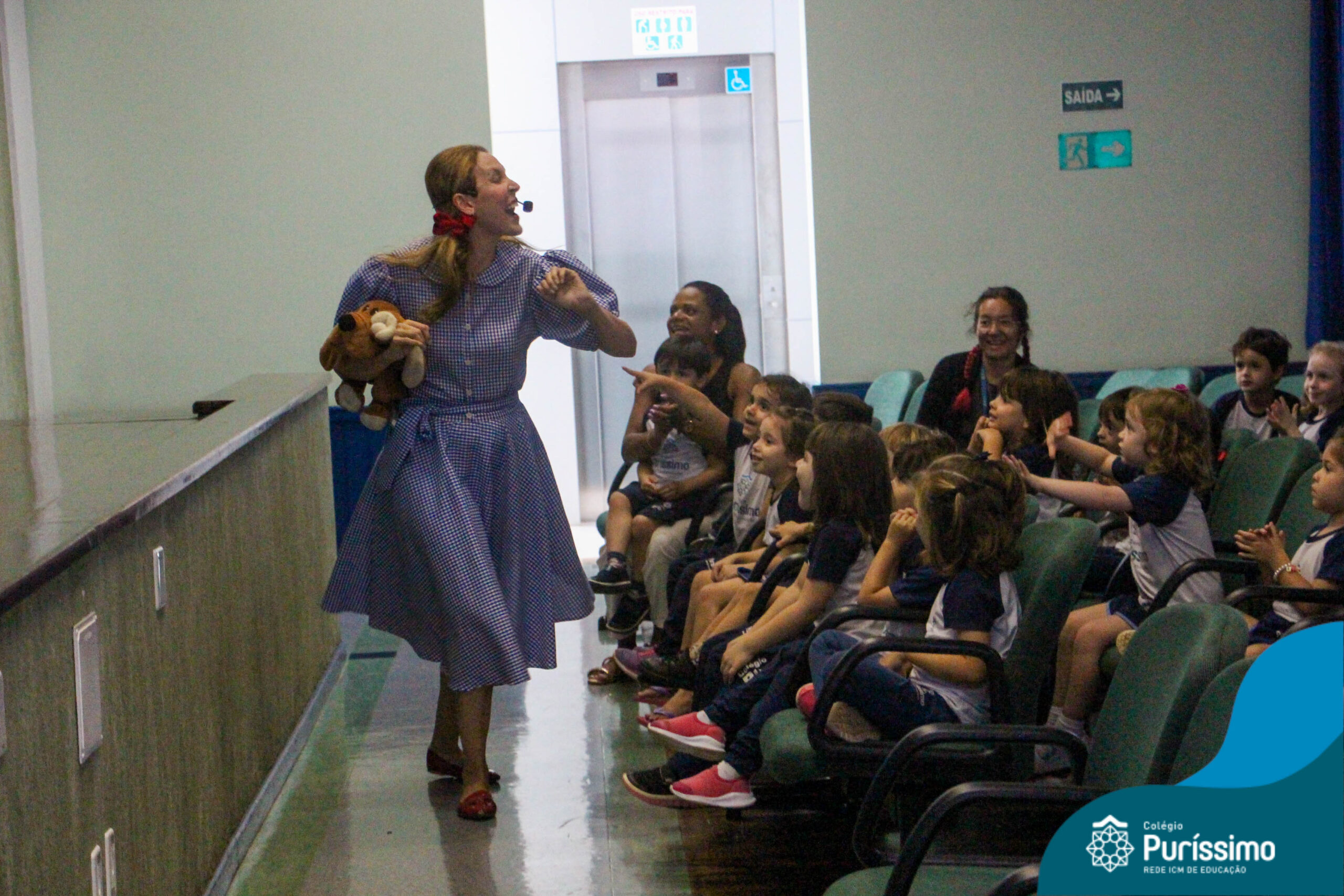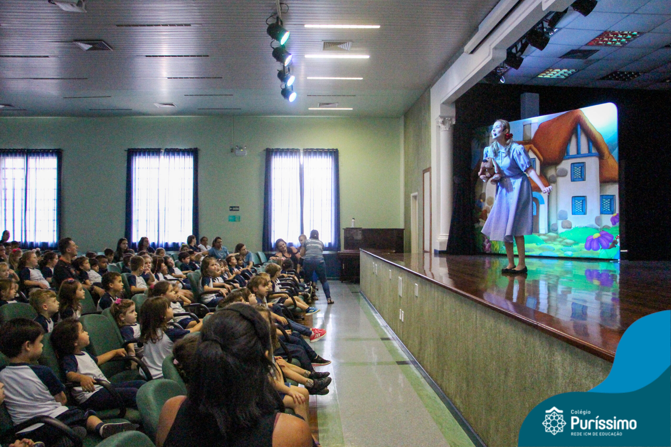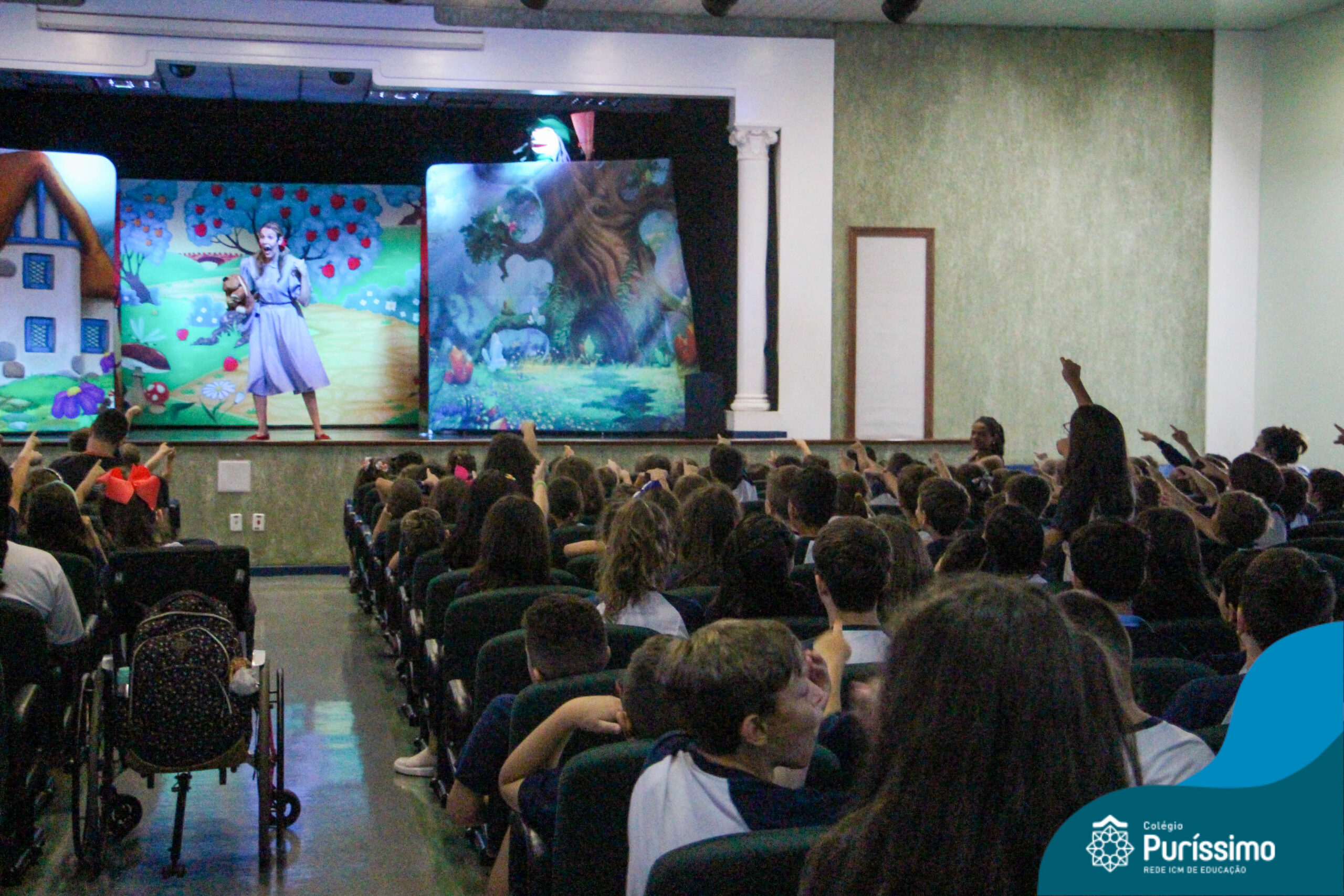 Os estudantes do Maternal 1 ao 5º ano EF tiveram a oportunidade de assistir o espetáculo “O Mágico de Oz” performado pela Cia Arte & Manhas – Tá na hora do Teatro.