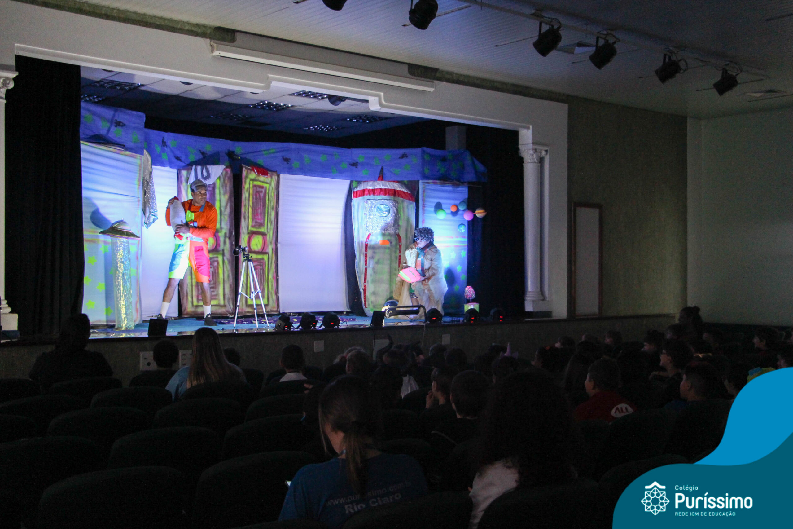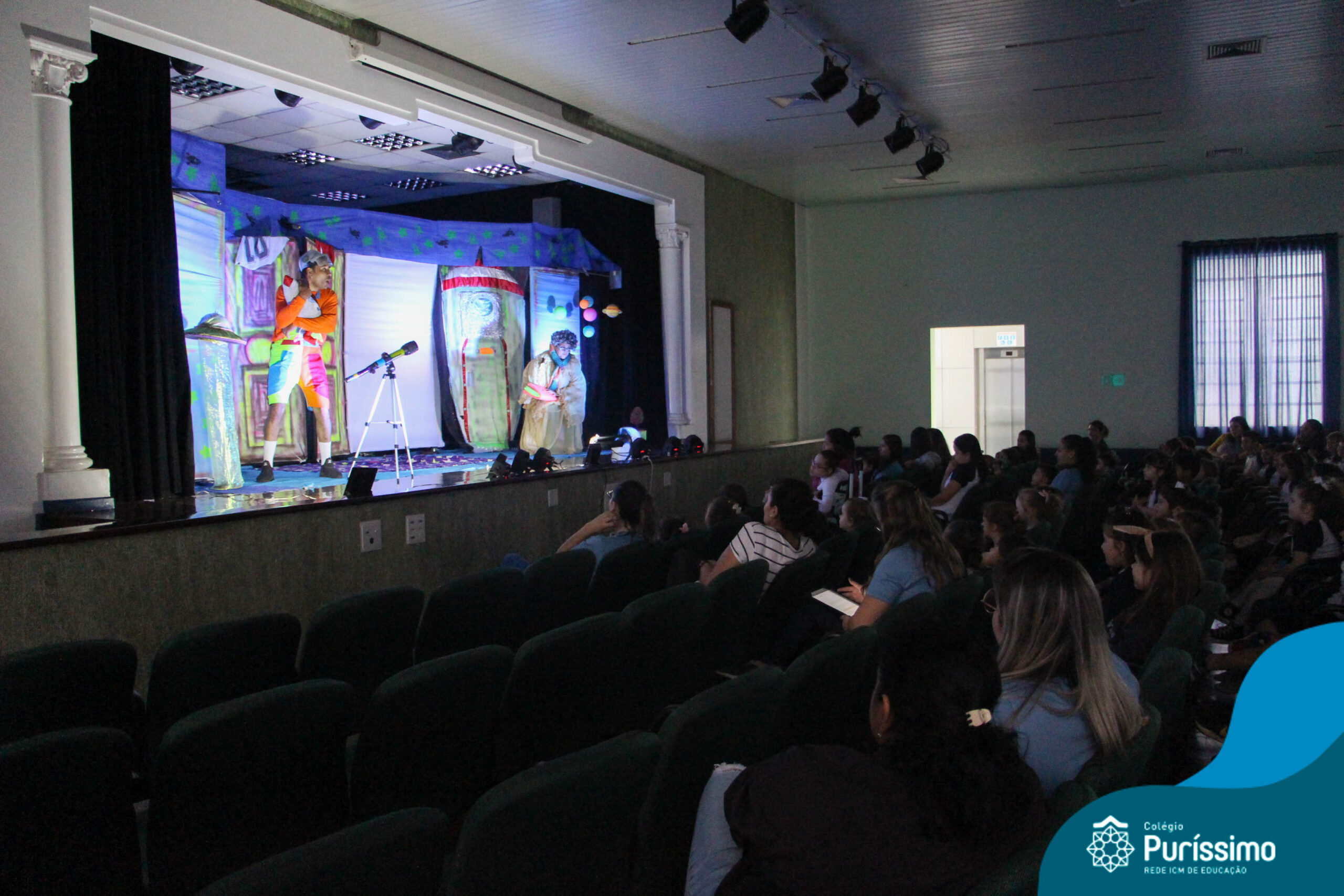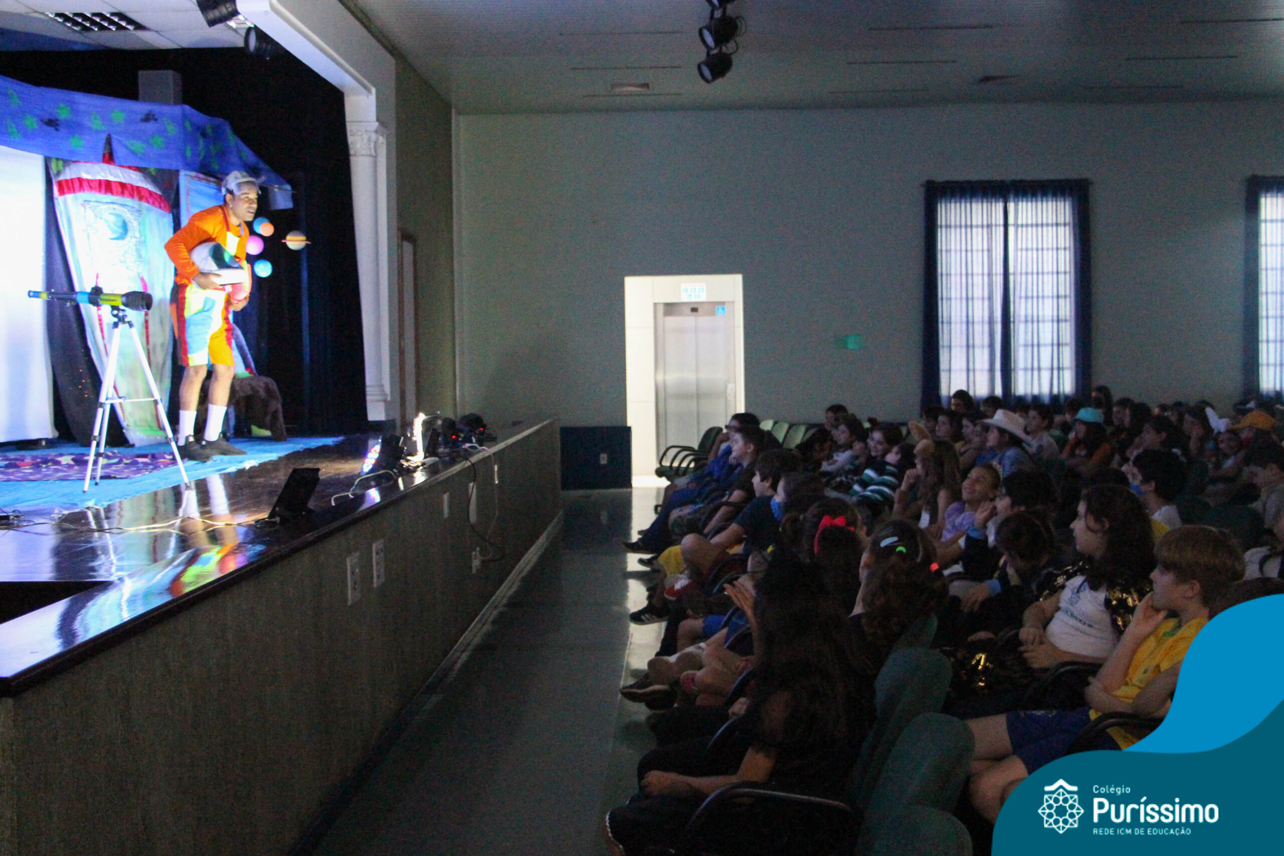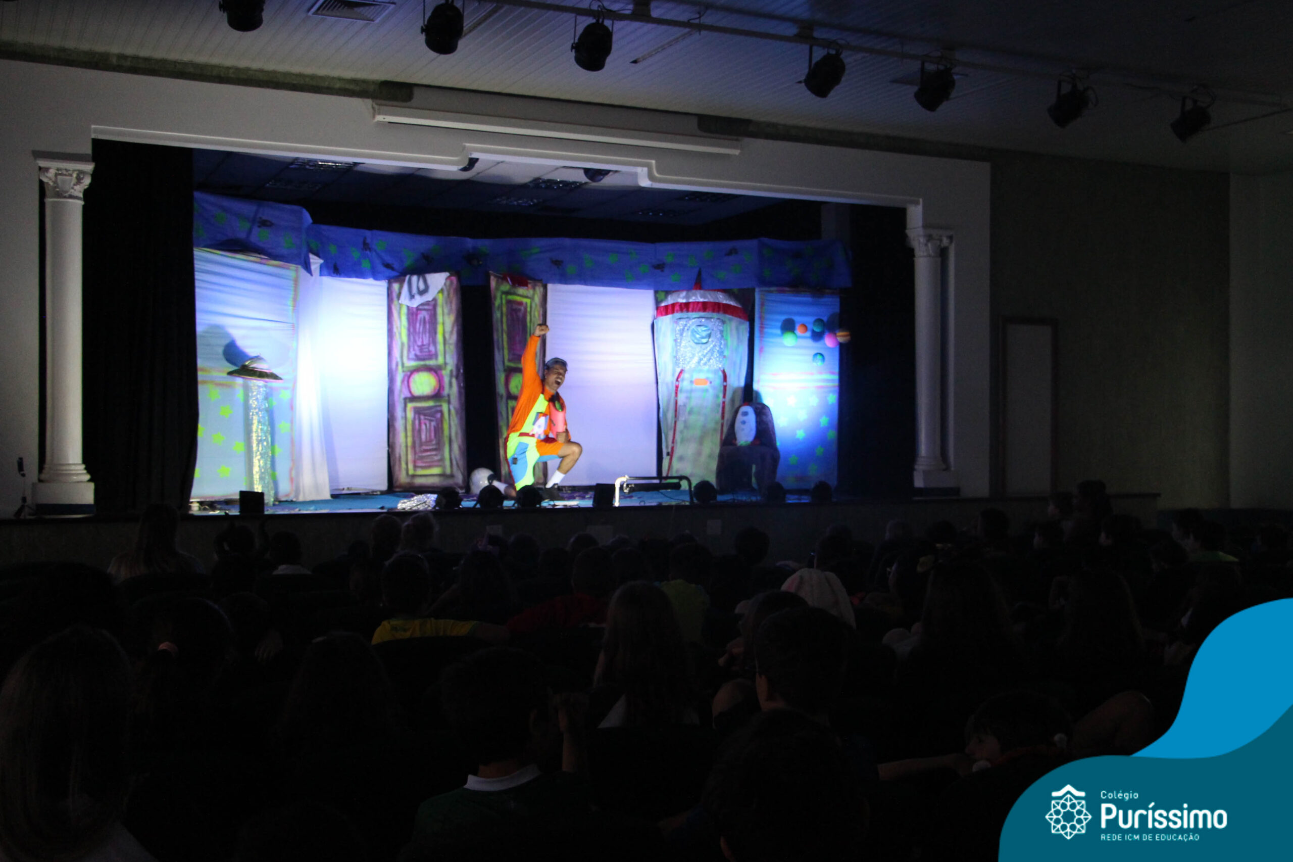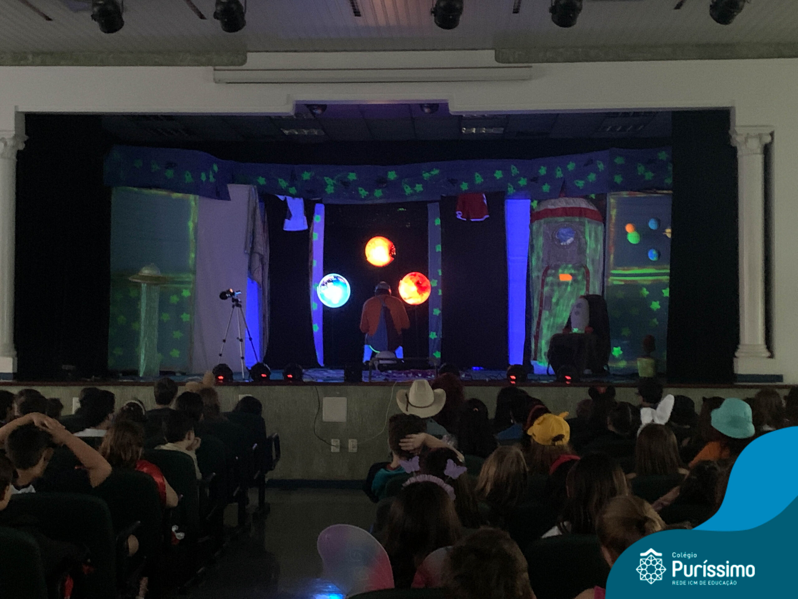 Os alunos do Berçário ao 5º ano puderam se divertir e aprender com a peça “O Menino do Quarto Azul”, que conta a história de um garoto que, ao realizar o seu trabalho escolar, descobre dentro do seu guarda-roupa um UNIVERSO!