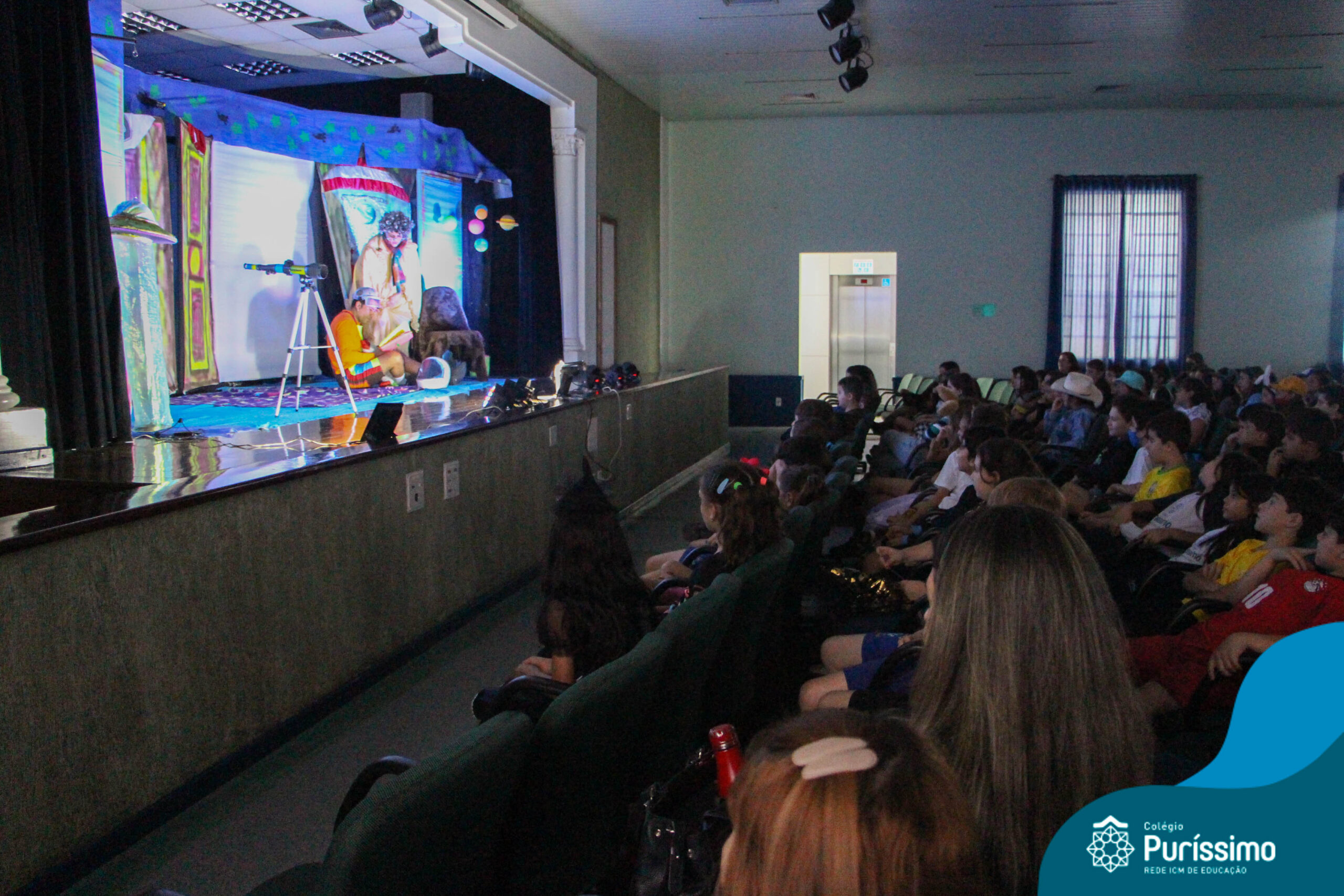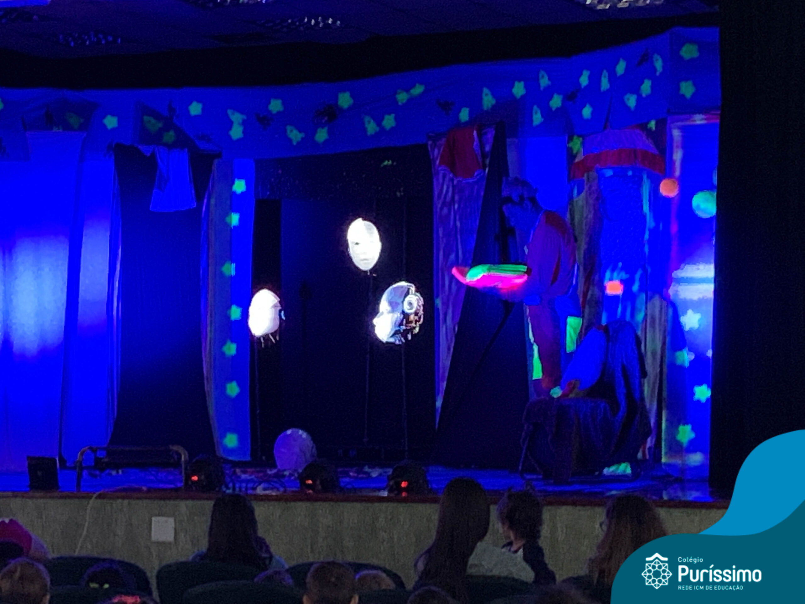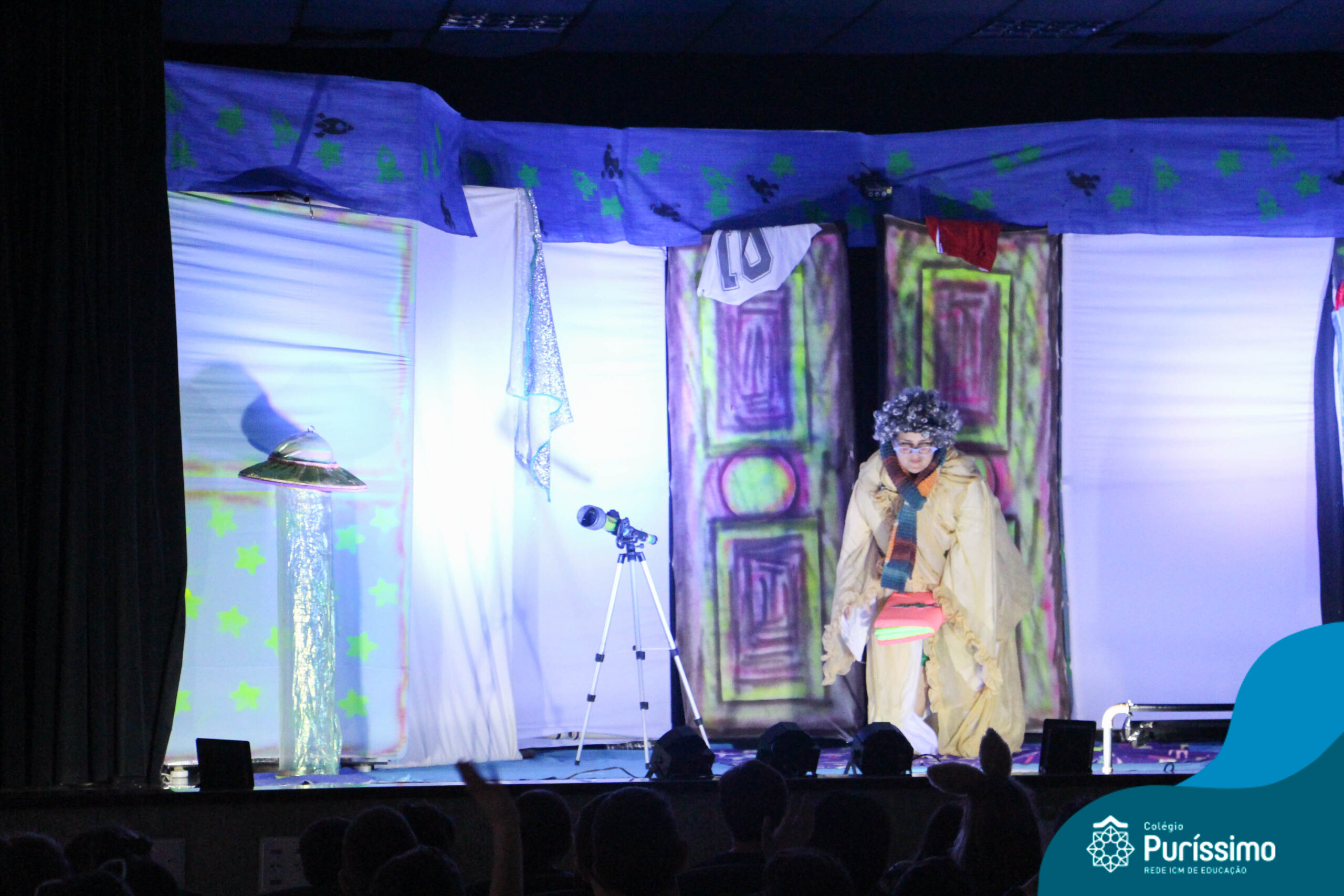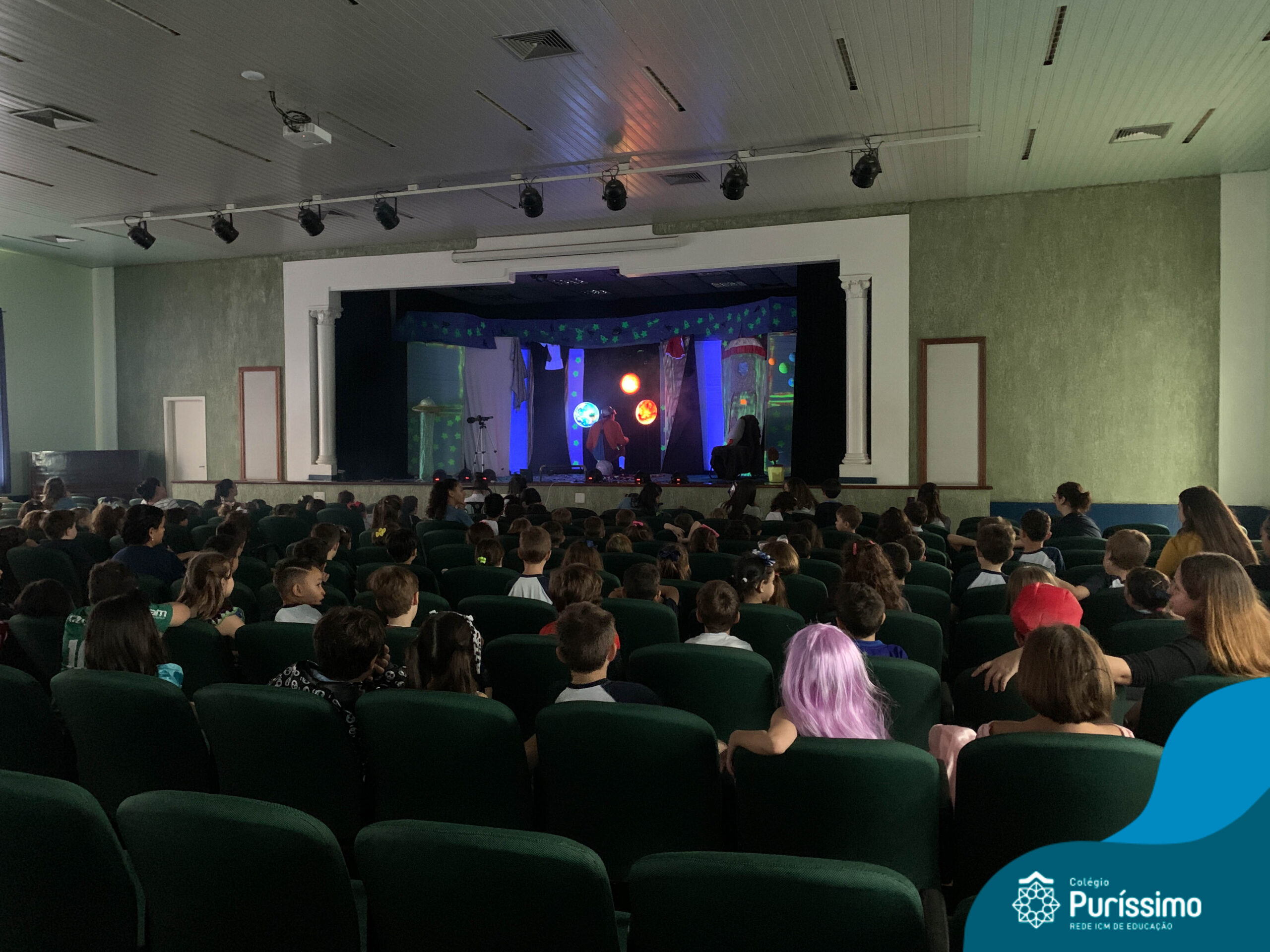 Os alunos do Berçário ao 5º ano puderam se divertir e aprender com a peça “O Menino do Quarto Azul”, que conta a história de um garoto que, ao realizar o seu trabalho escolar, descobre dentro do seu guarda-roupa um UNIVERSO!