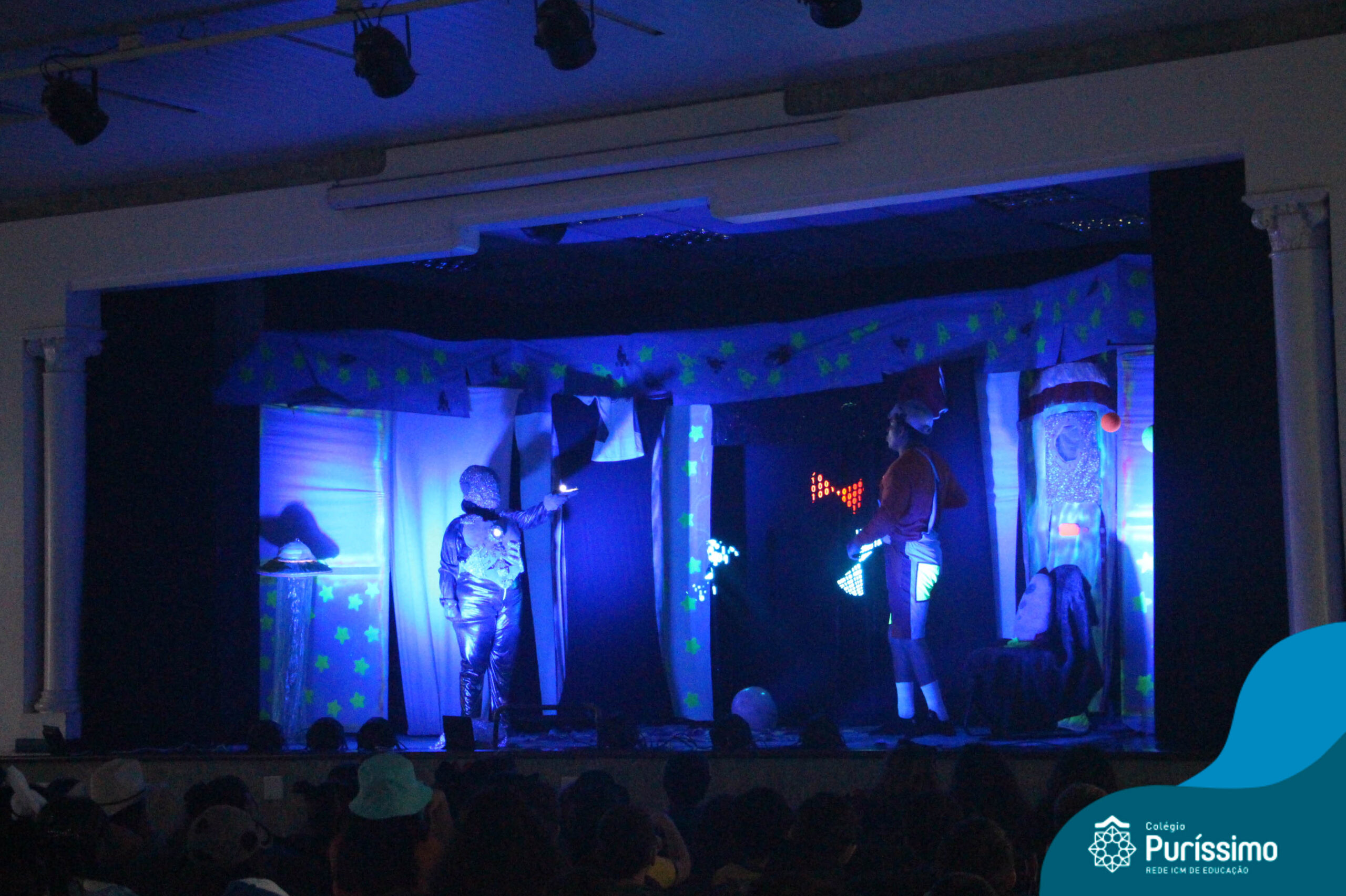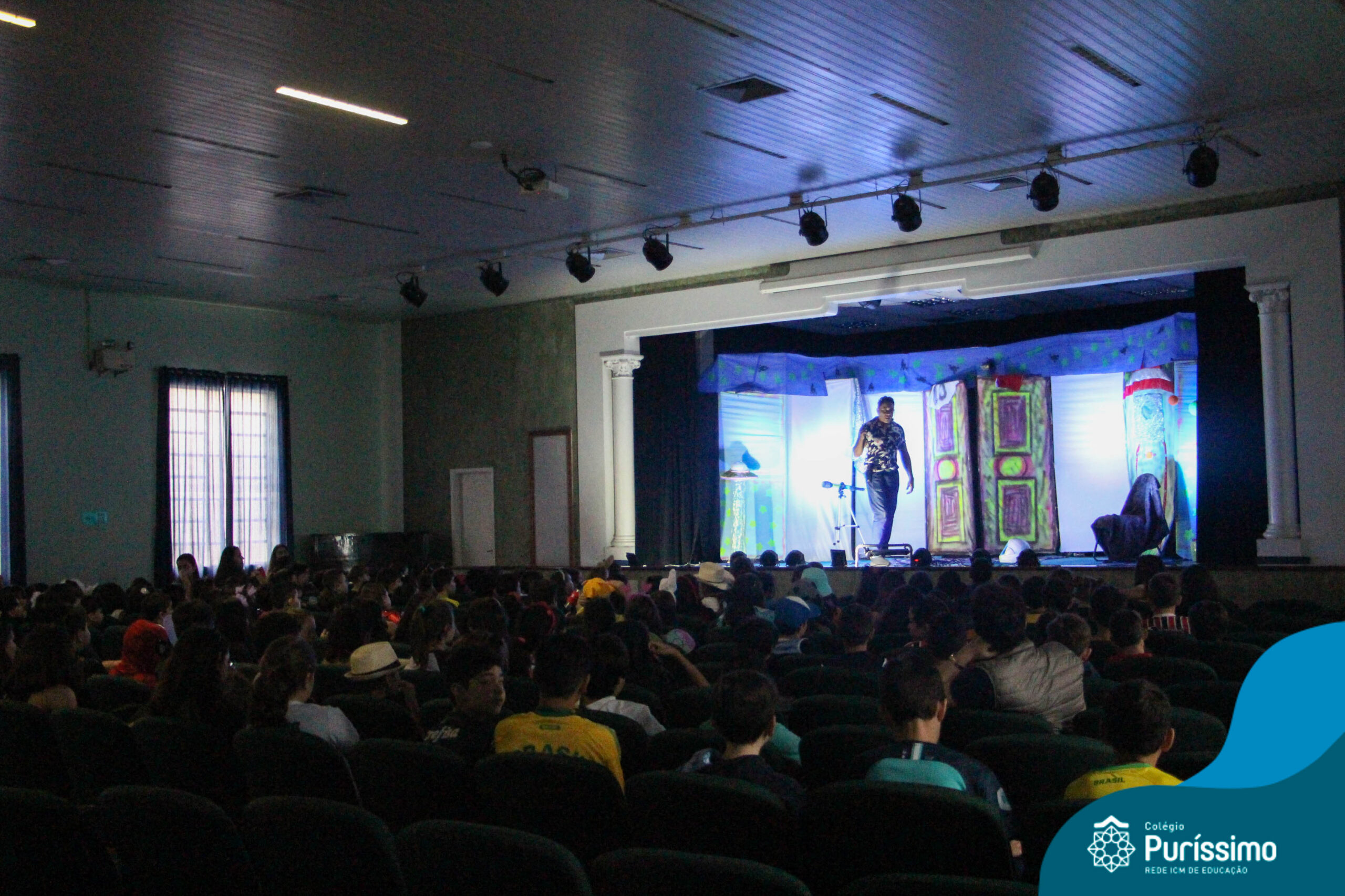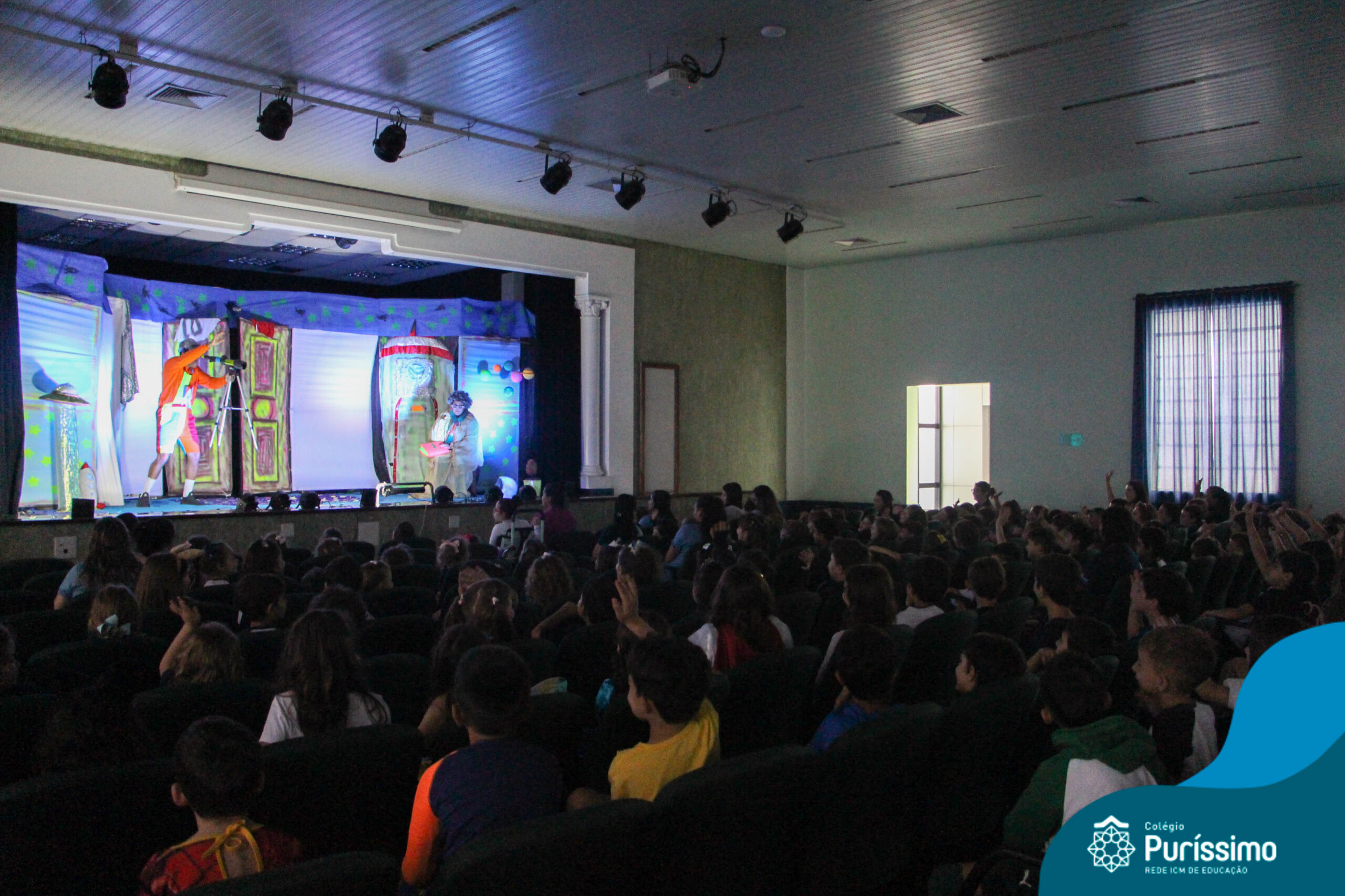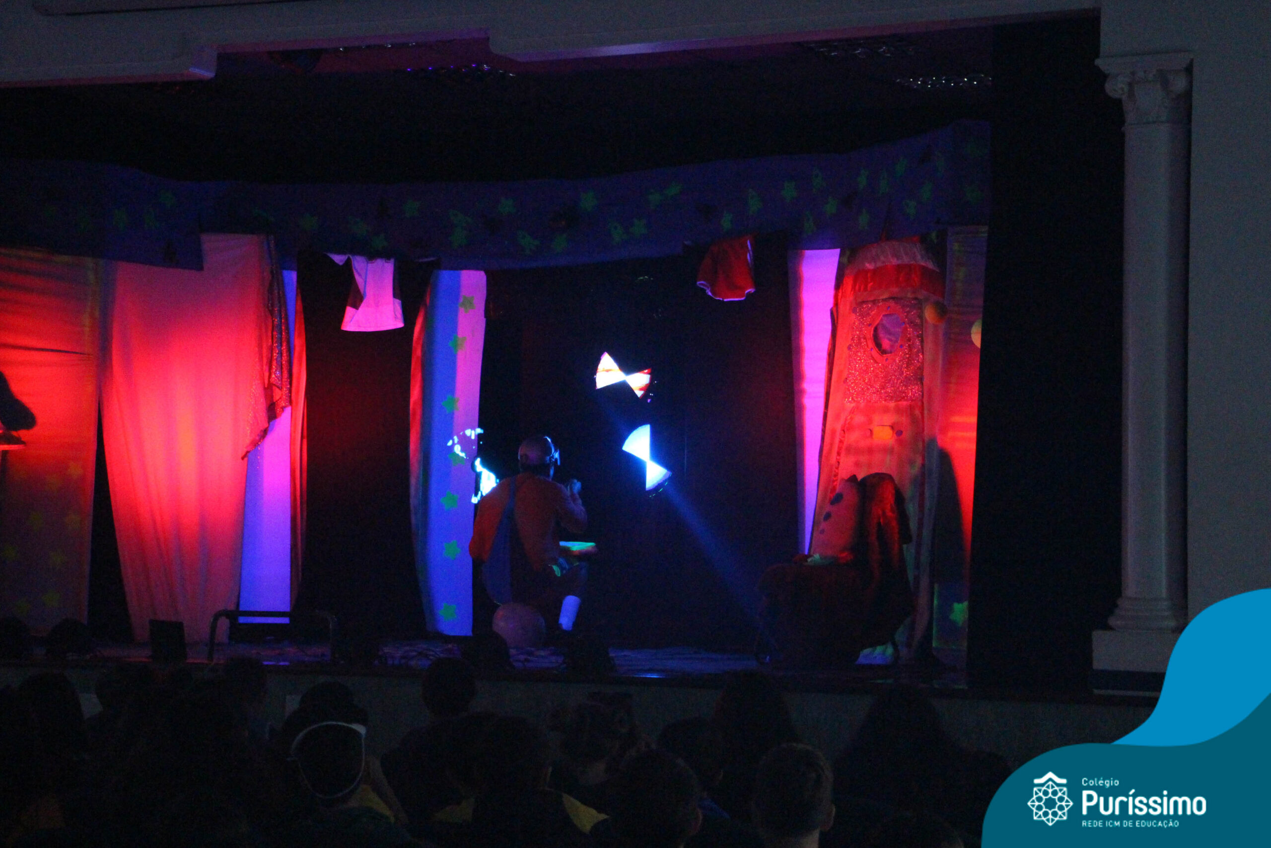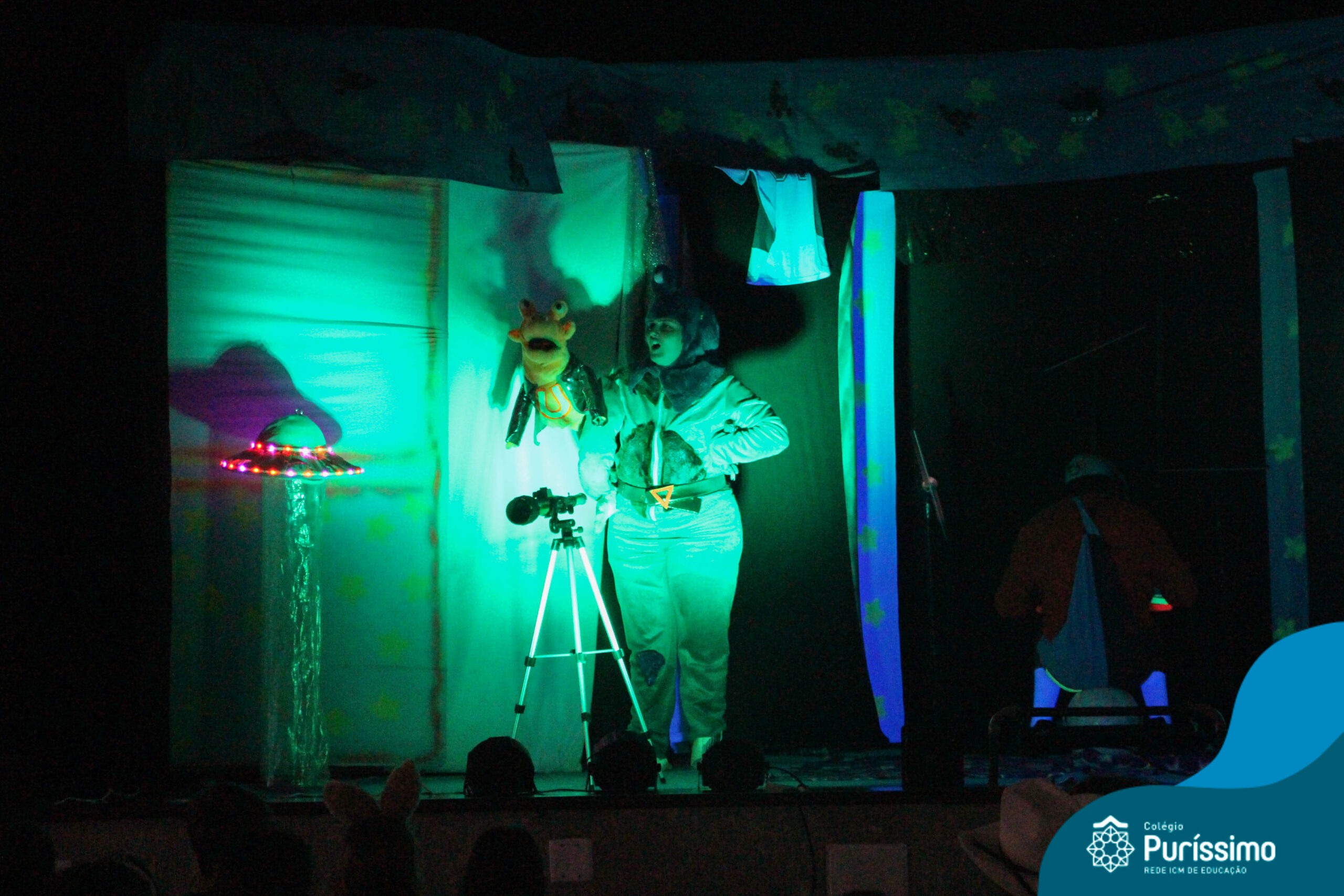 Os alunos do Berçário ao 5º ano puderam se divertir e aprender com a peça “O Menino do Quarto Azul”, que conta a história de um garoto que, ao realizar o seu trabalho escolar, descobre dentro do seu guarda-roupa um UNIVERSO!