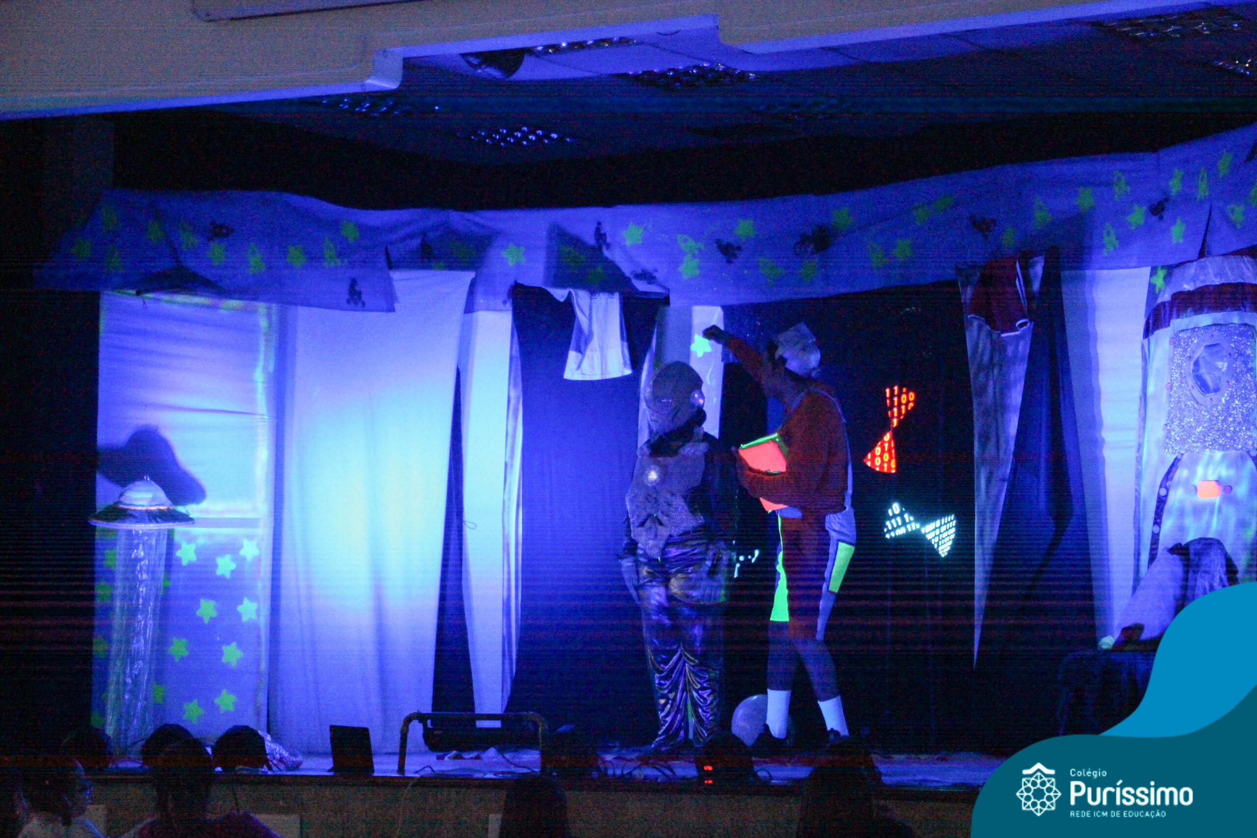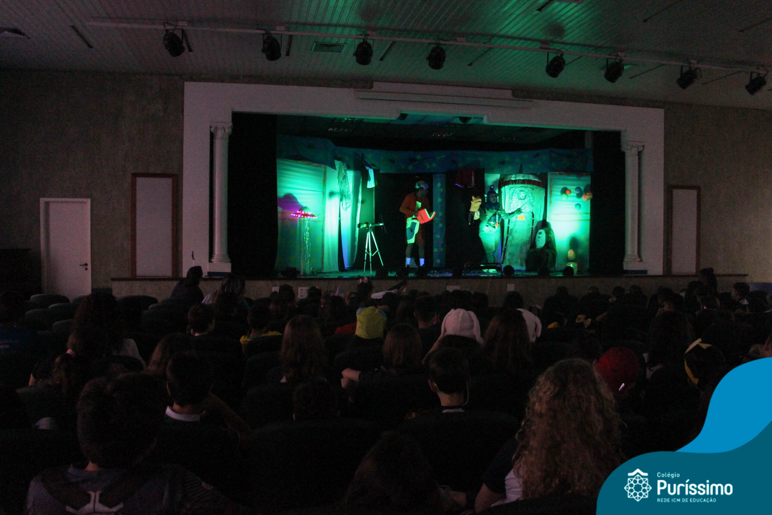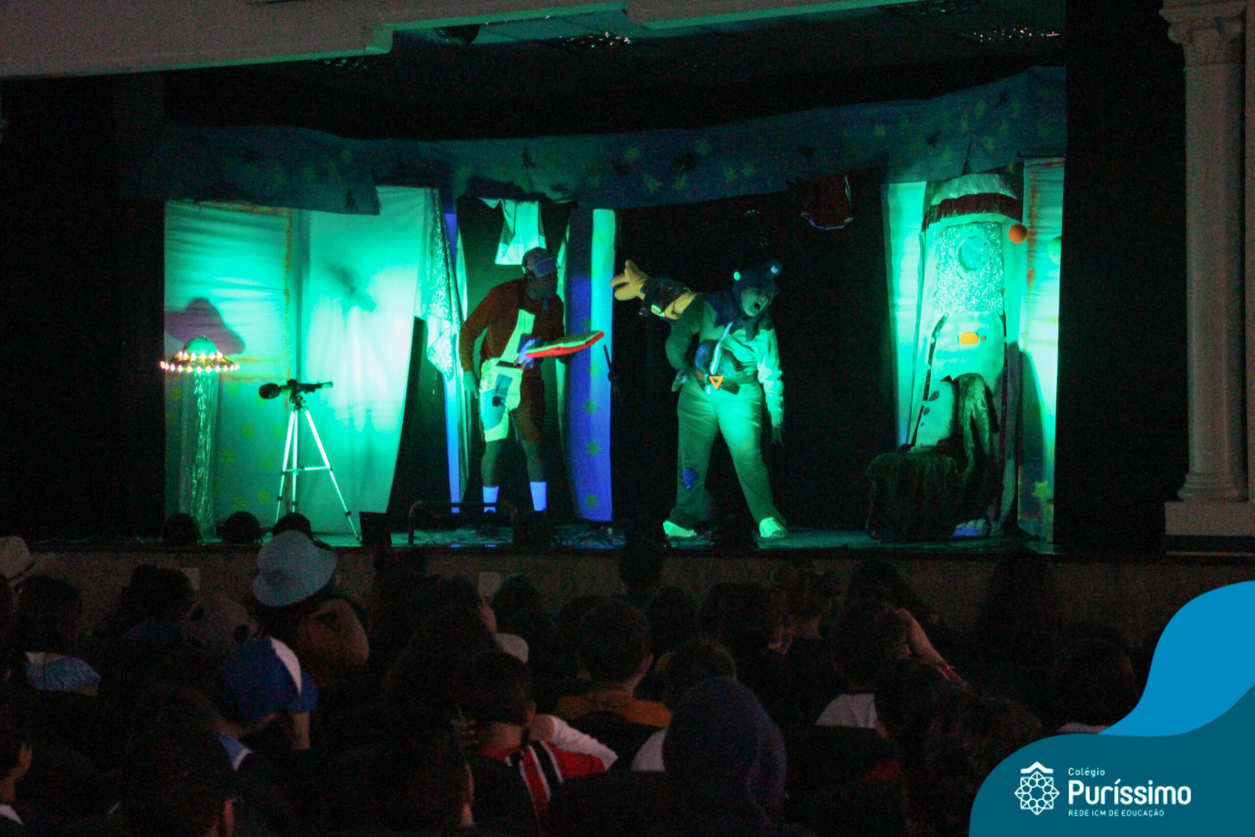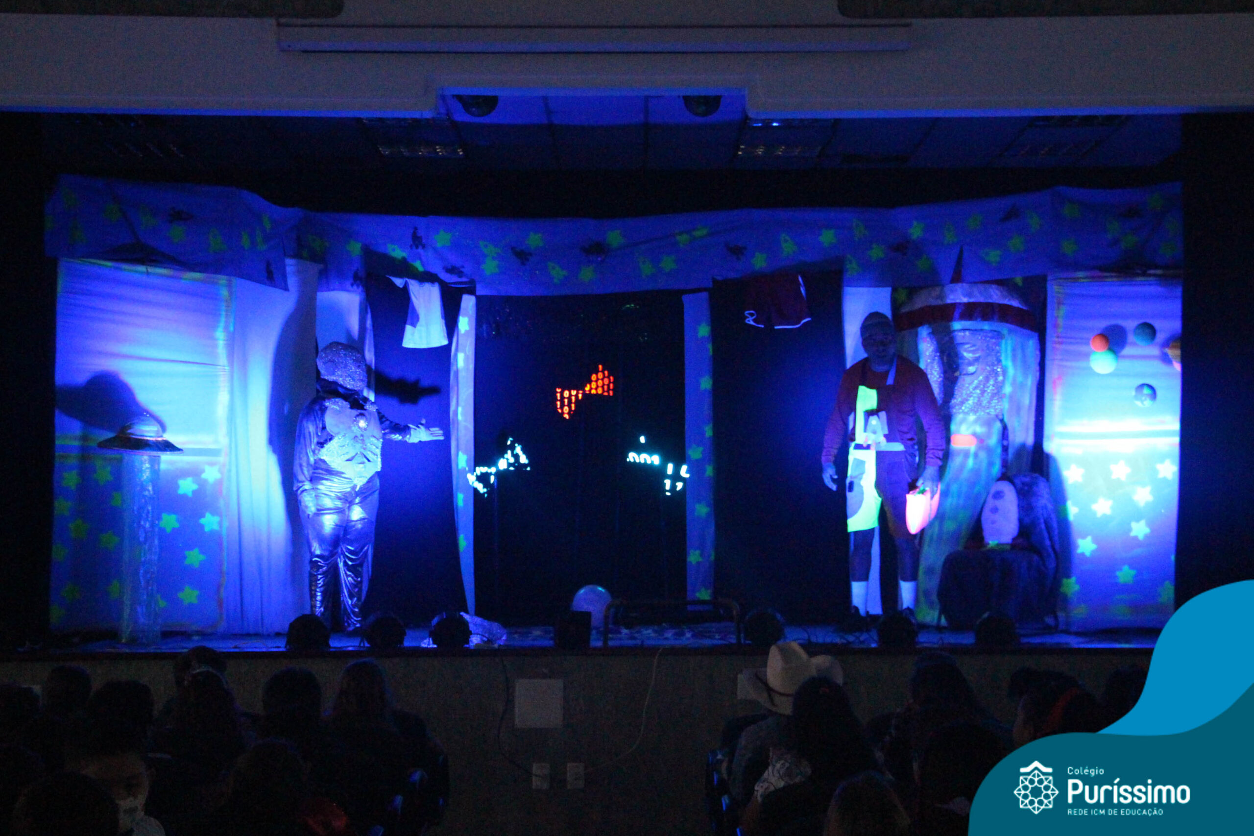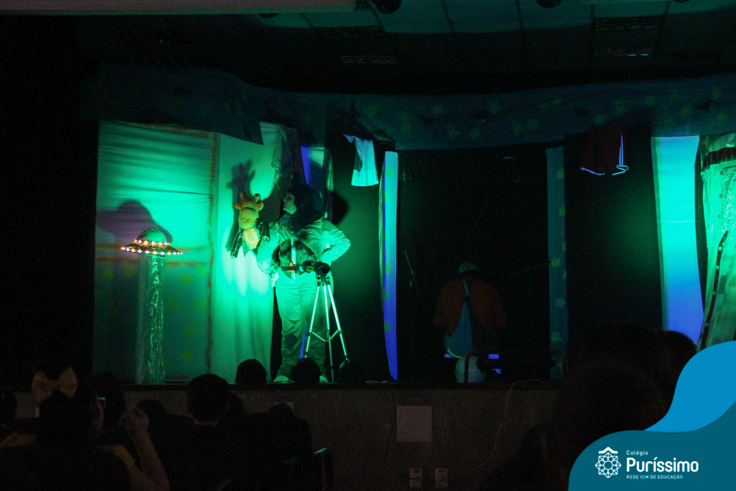 Os alunos do Berçário ao 5º ano puderam se divertir e aprender com a peça “O Menino do Quarto Azul”, que conta a história de um garoto que, ao realizar o seu trabalho escolar, descobre dentro do seu guarda-roupa um UNIVERSO!