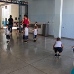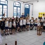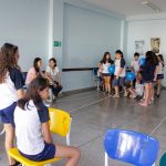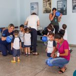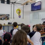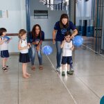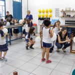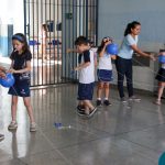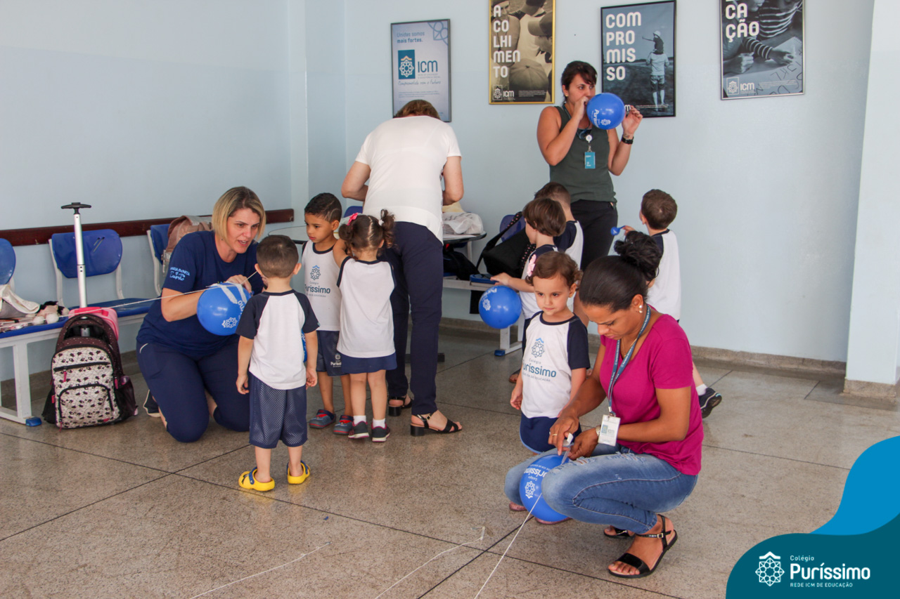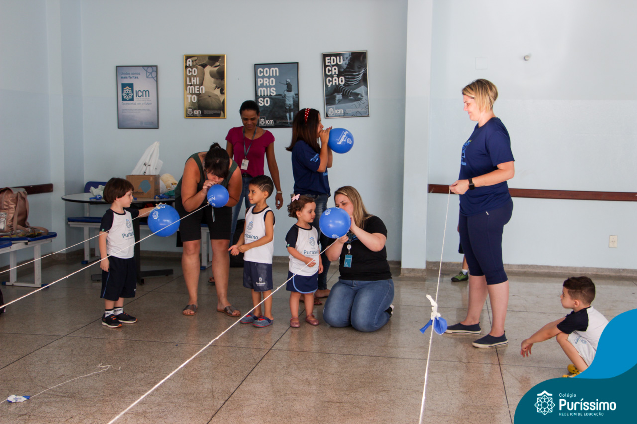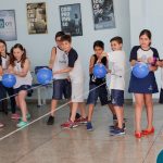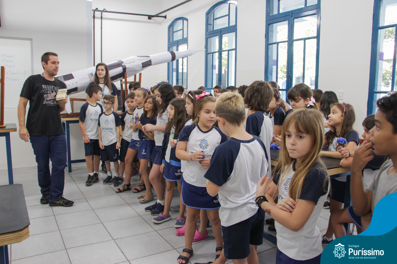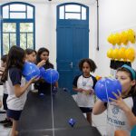 Utilizando bexiga, barbante, fita adesiva, foguete de e.v.a. e canudo, as crianças precisaram pensar em como fazer um lançamento de foguetes e, a partir daí, apostar corrida com suas criações.