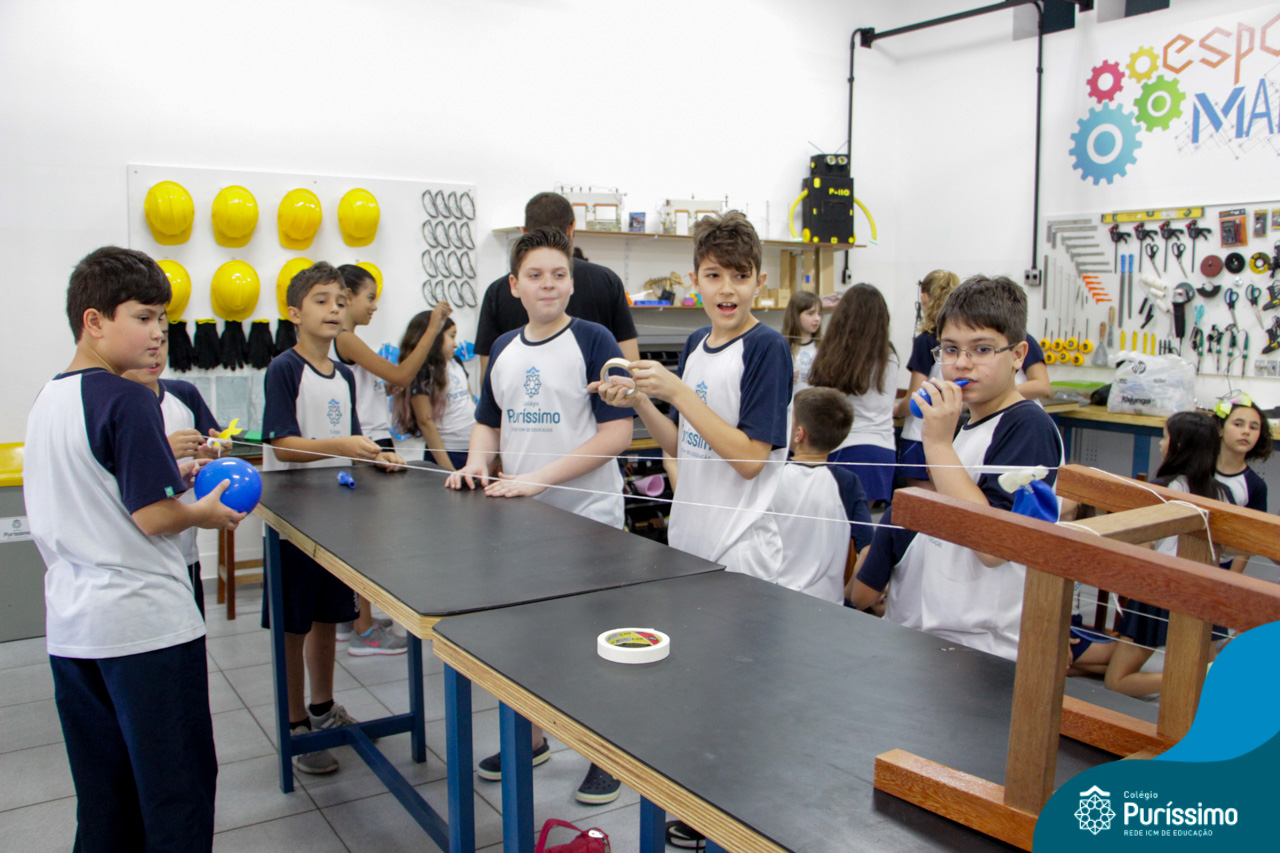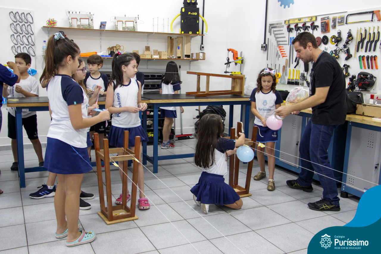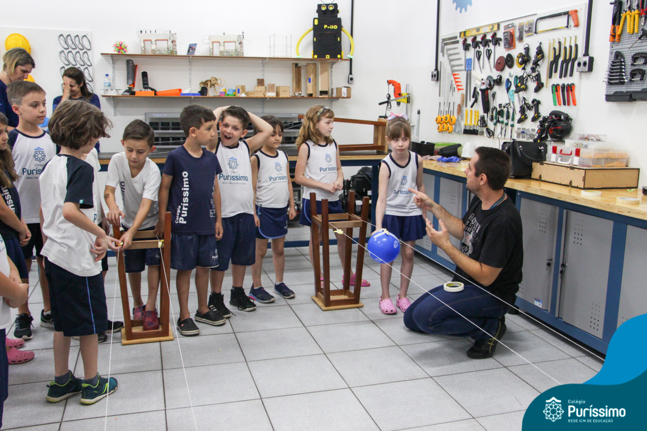 A brincadeira do professor Filippi Ongarelli, responsável pelo Espaço Maker, uniu física, raciocínio lógico e muita diversão!