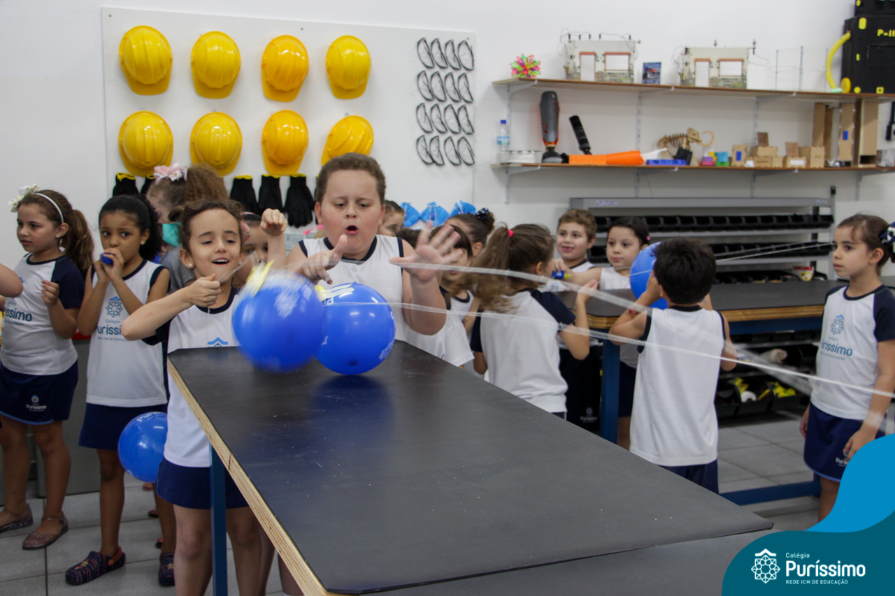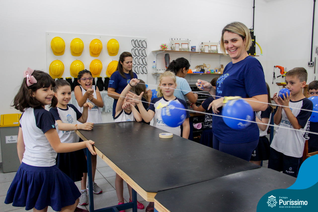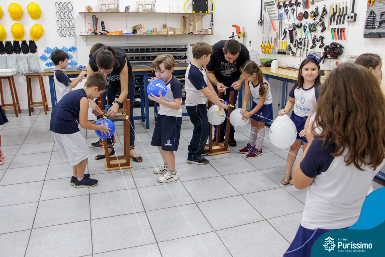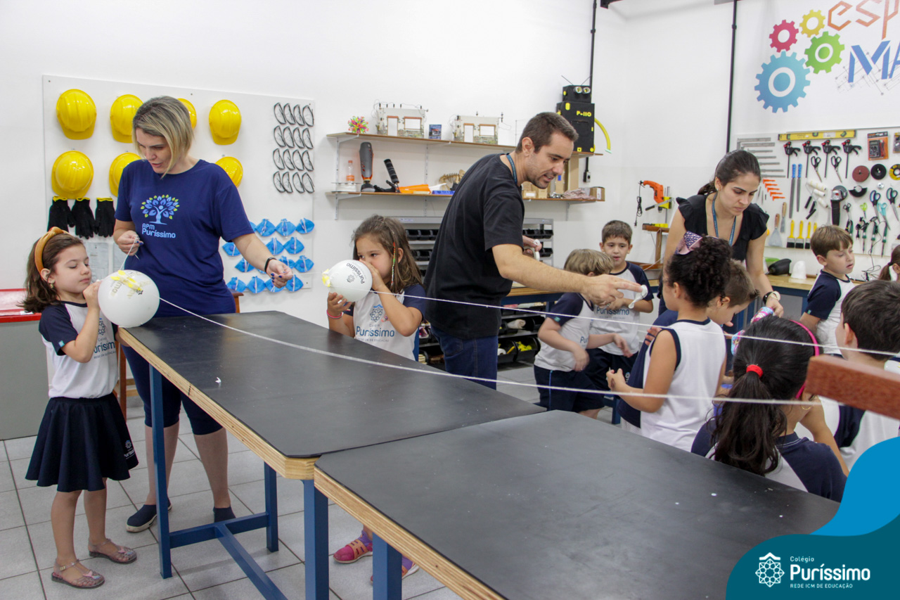 A brincadeira do professor Filippi Ongarelli, responsável pelo Espaço Maker, uniu física, raciocínio lógico e muita diversão!
