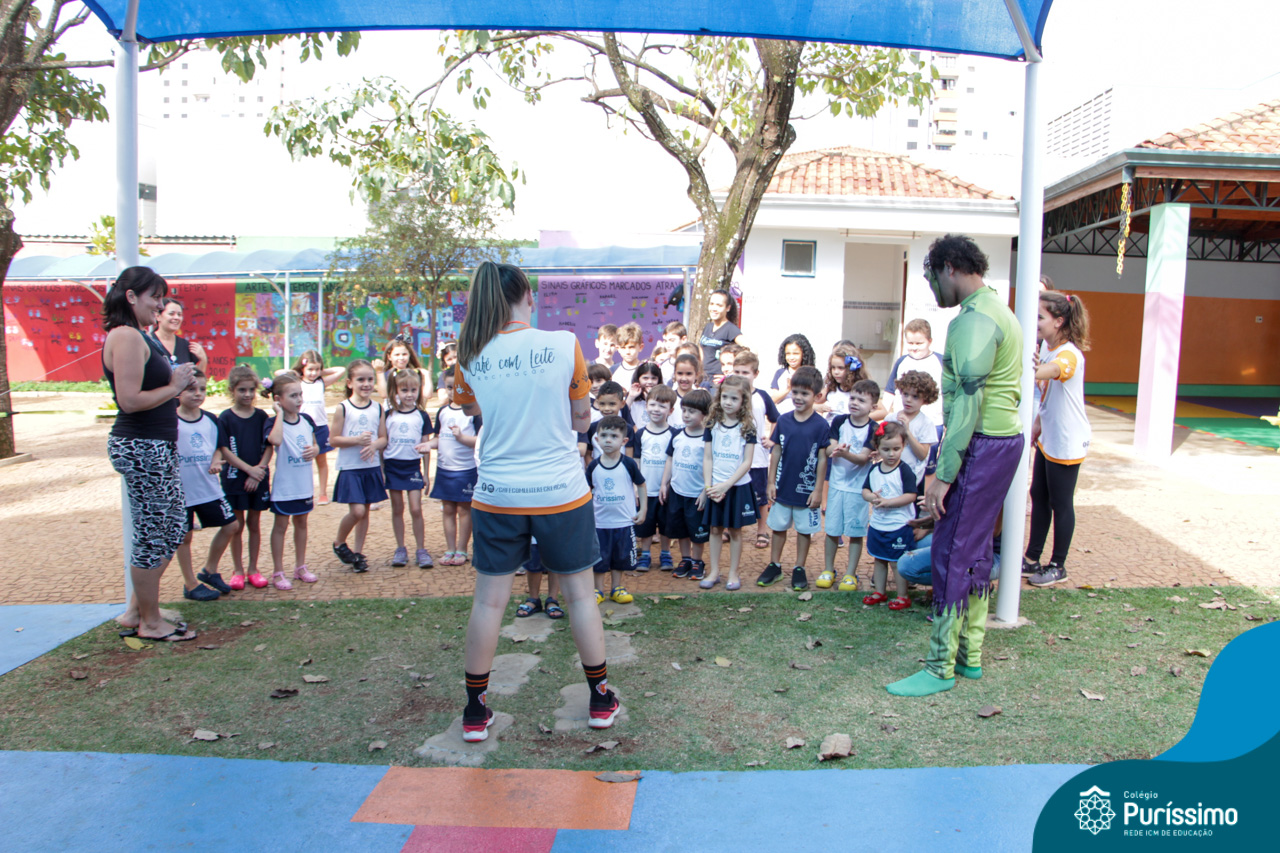 Na quinta foi dia de agitação com a equipe Café com Leite! Os monitores desenvolveram brincadeiras esportivas que trabalharam a lógica, trabalho em equipe e coordenação motora!