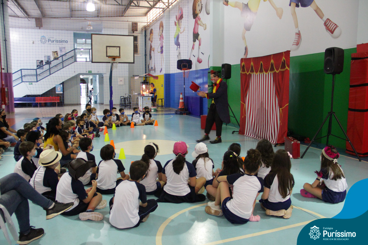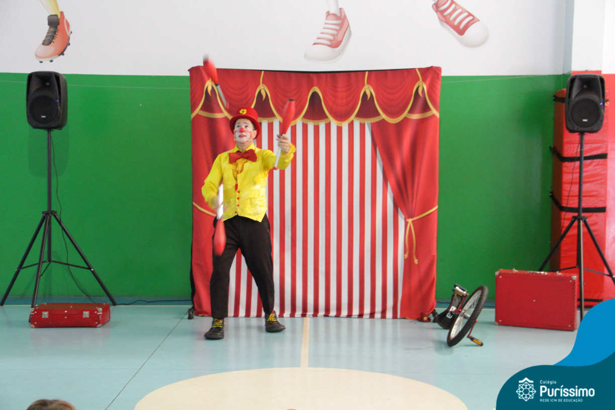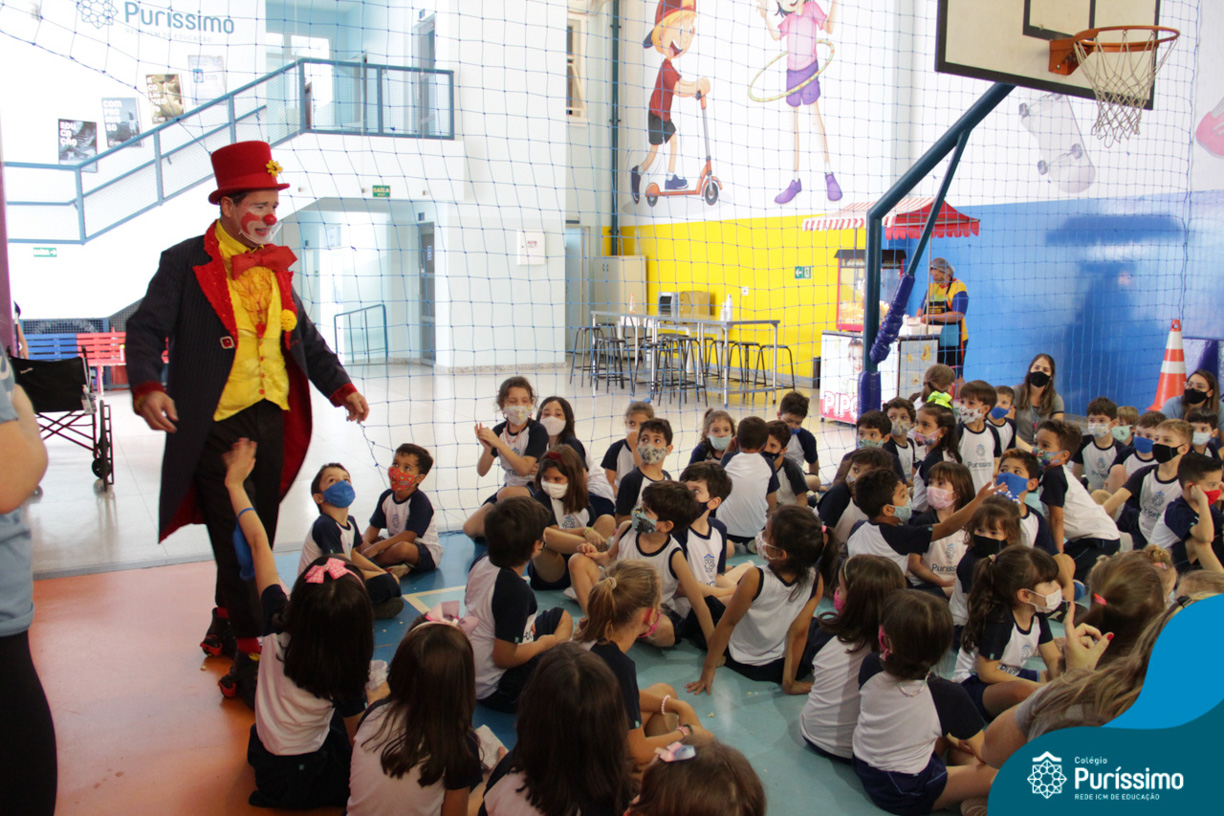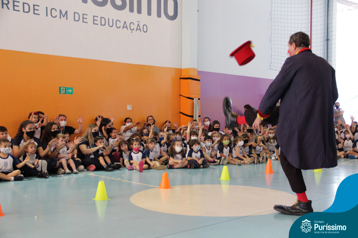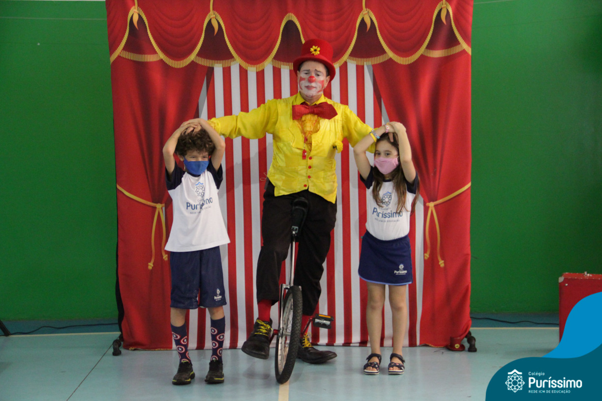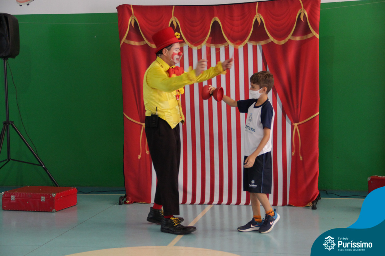 As crianças da Casa Azul receberam a visita do Palhaço Tchutchuco e se acabaram de rir com as brincadeiras, mágicas e palhaçadas! Além disso, os estudantes ganharam pipoca no intervalo ao som de músicas infantis, e os alunos do Ensino Fundamental – Anos Finais e 1º ano do Ensino Médio tiveram o “trote” de dia das crianças!