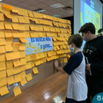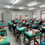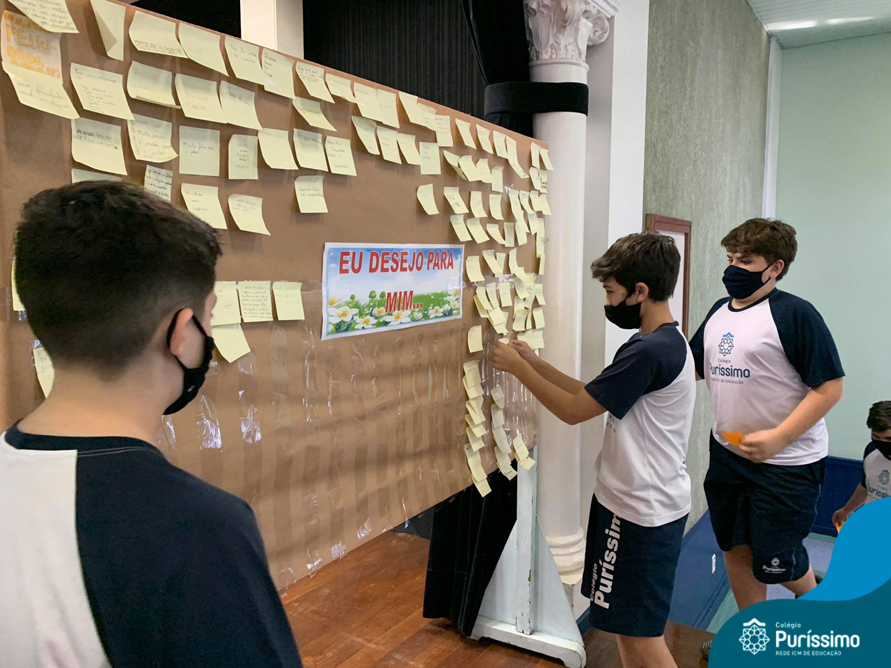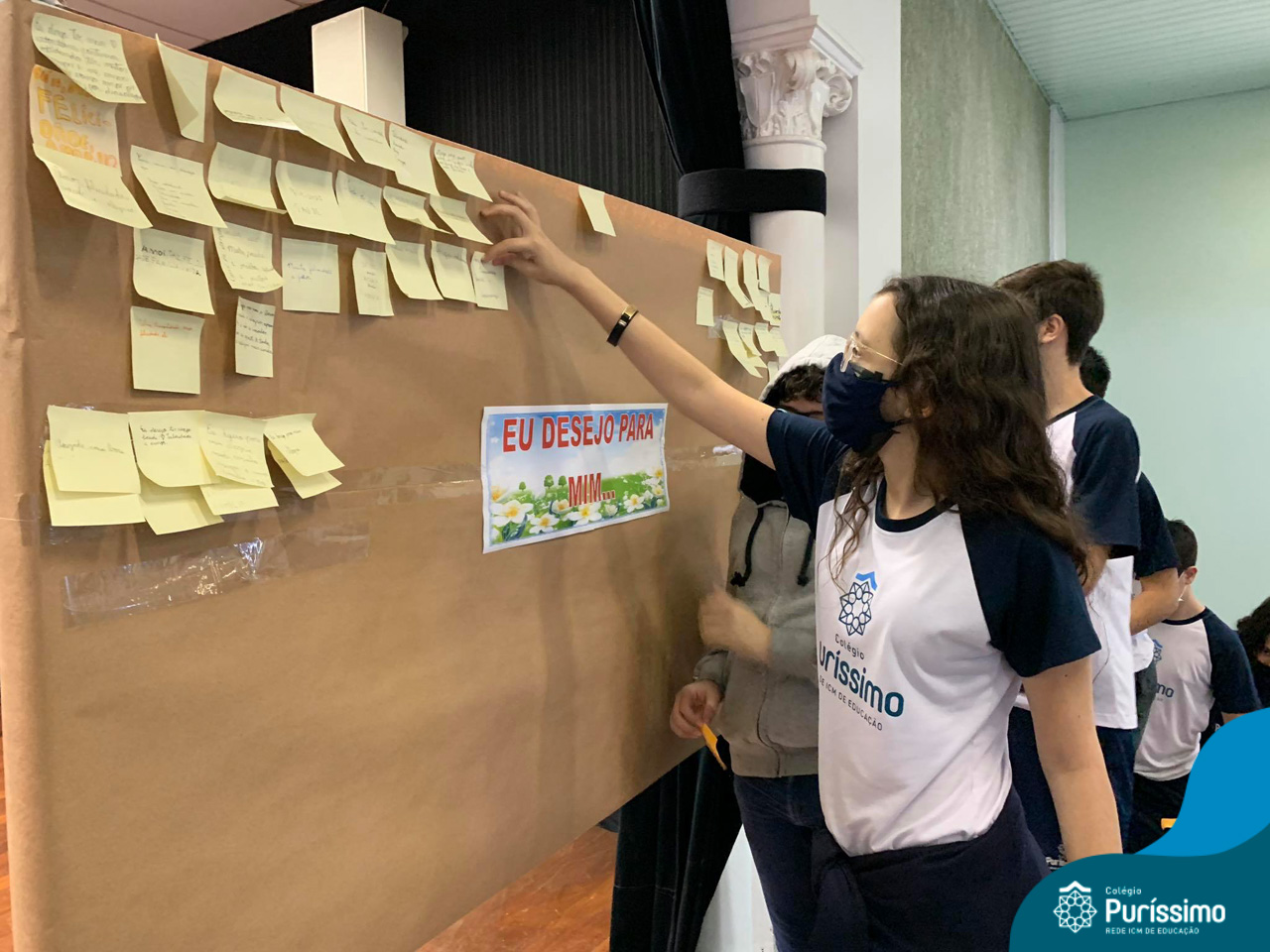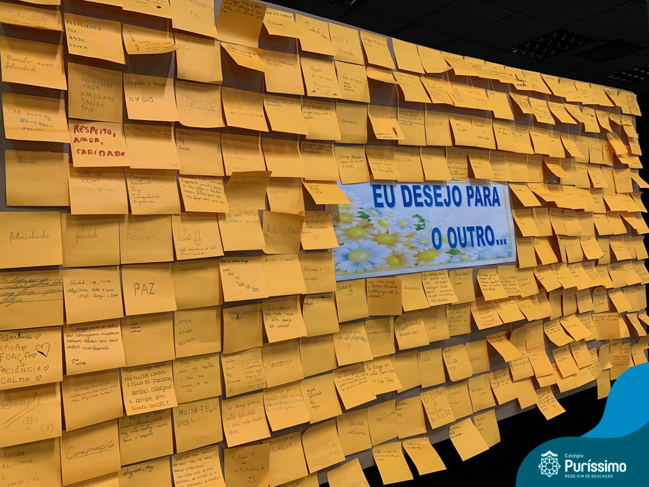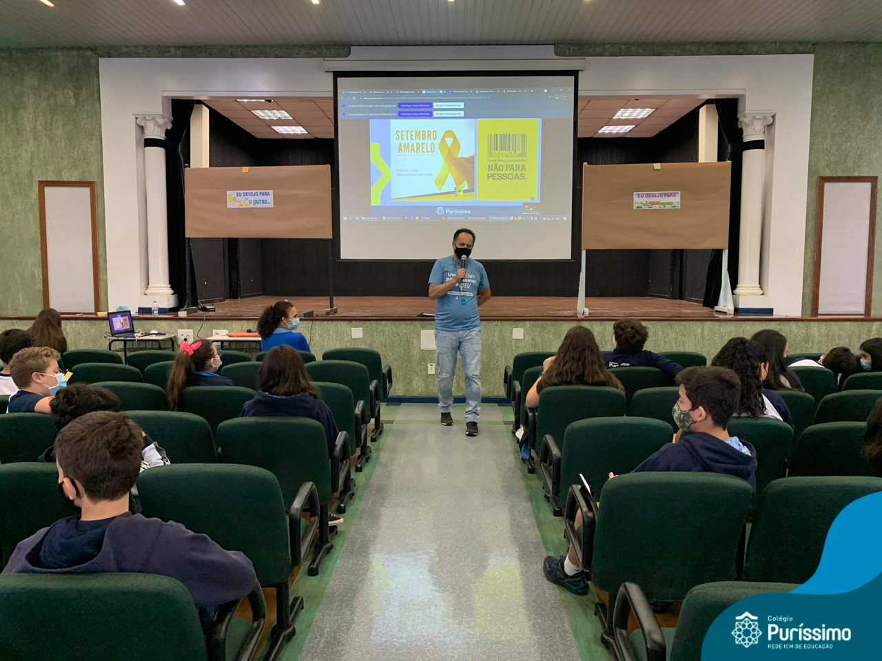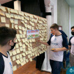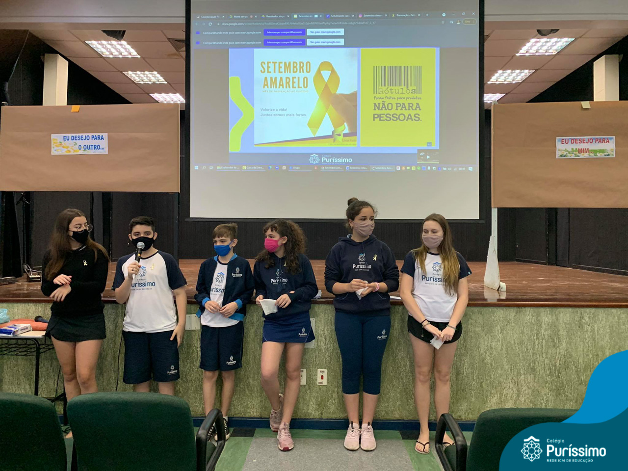 Além da explicação sobre a campanha de prevenção ao suicídio, os alunos entregaram uma fitinha amarela para os colaboradores, simbolizando a importância de estar sempre presente para o próximo. Já para os alunos do Ensino Fundamental – Anos Finais, a conversa foi junto com a coordenadora Janaina, que reiterou sobre a importância do combate ao bullying e também da depressão e, juntos, construíram dois murais: um com os desejos para si e o outro com os desejos para o próximo.
