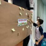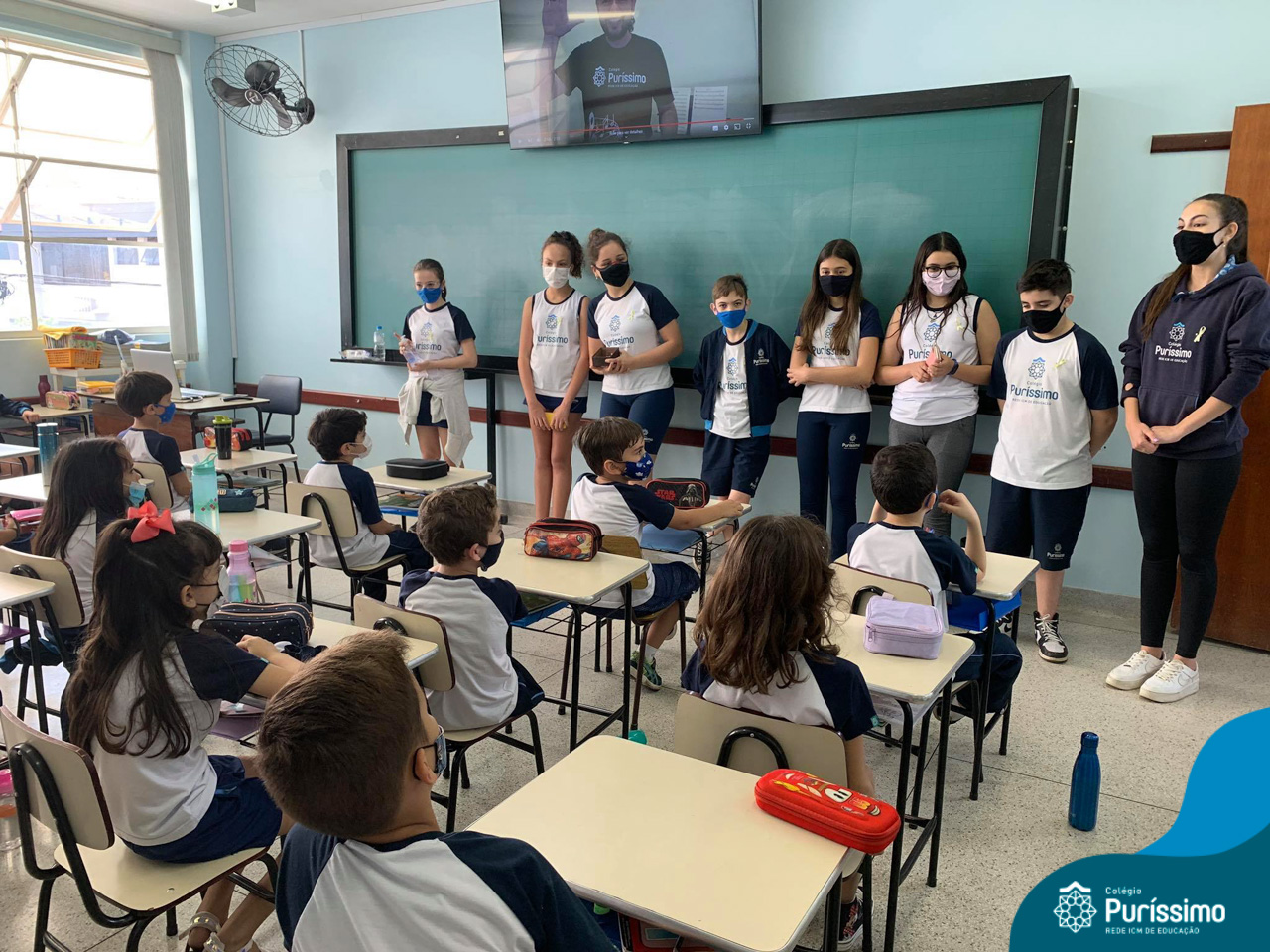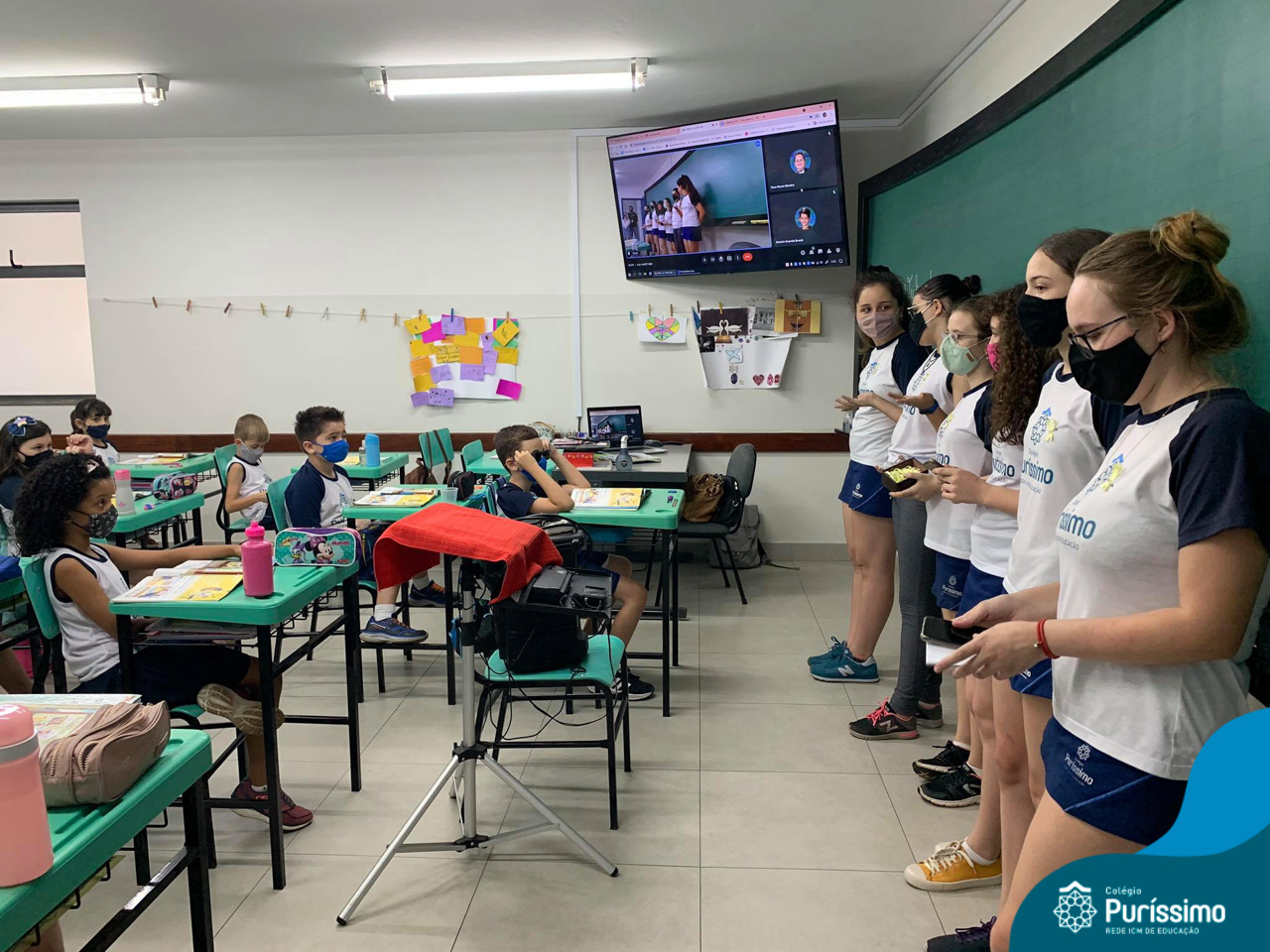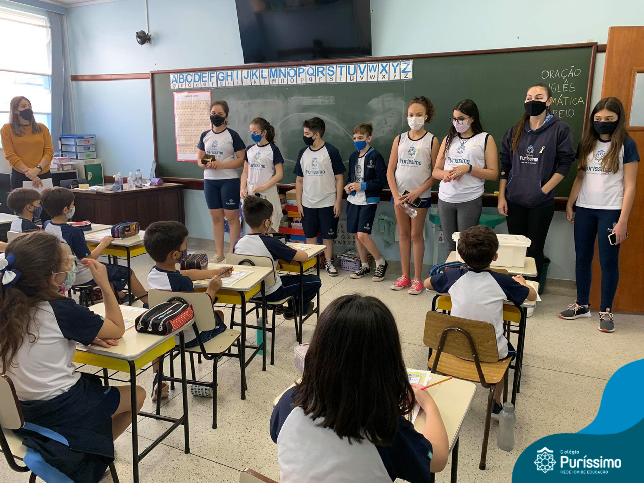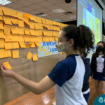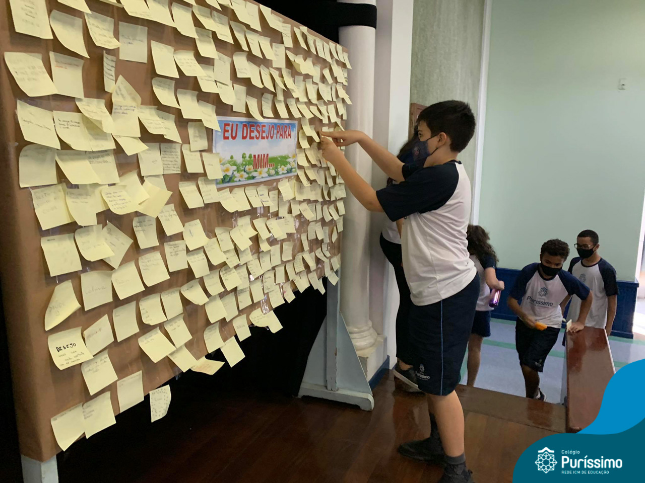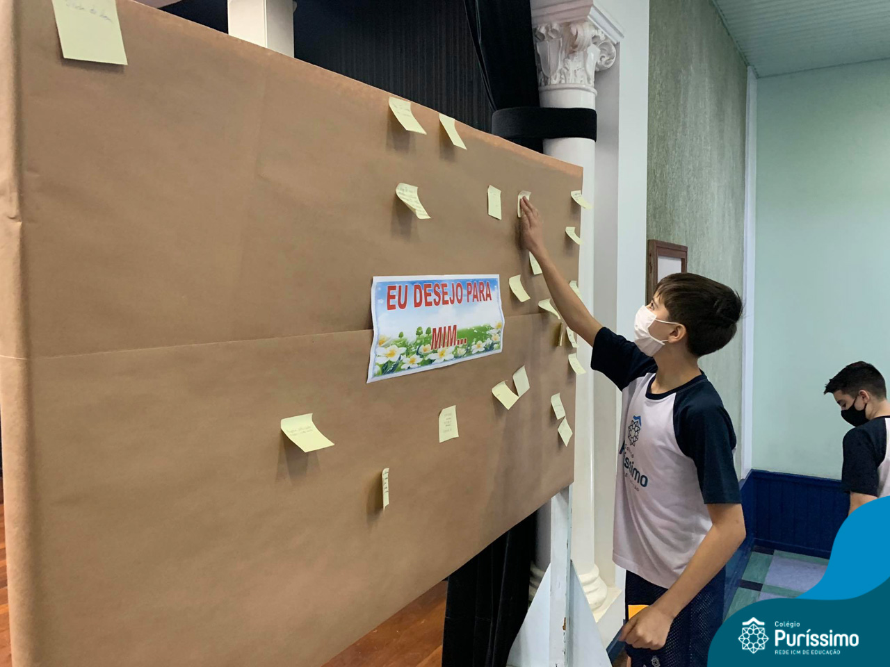 Além da explicação sobre a campanha de prevenção ao suicídio, os alunos entregaram uma fitinha amarela para os colaboradores, simbolizando a importância de estar sempre presente para o próximo. Já para os alunos do Ensino Fundamental – Anos Finais, a conversa foi junto com a coordenadora Janaina, que reiterou sobre a importância do combate ao bullying e também da depressão e, juntos, construíram dois murais: um com os desejos para si e o outro com os desejos para o próximo.