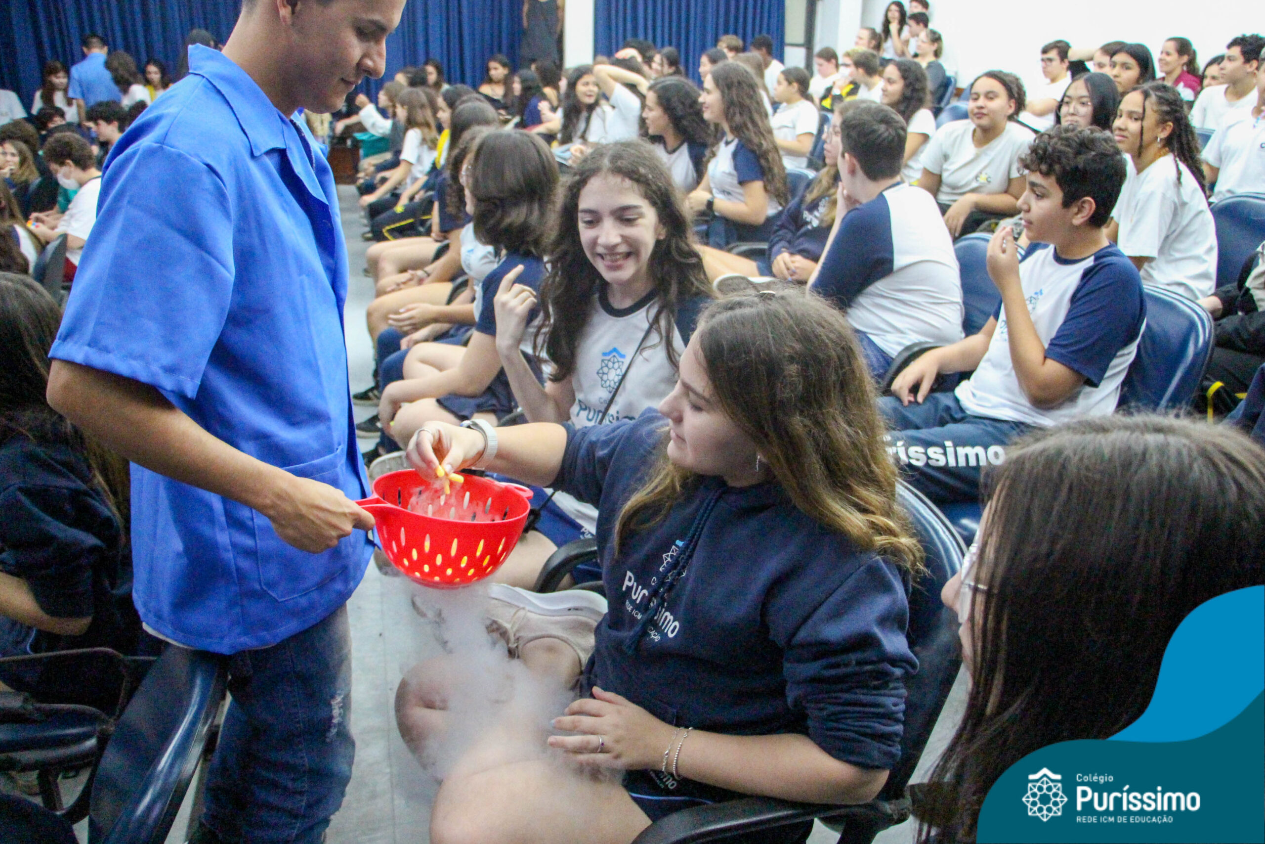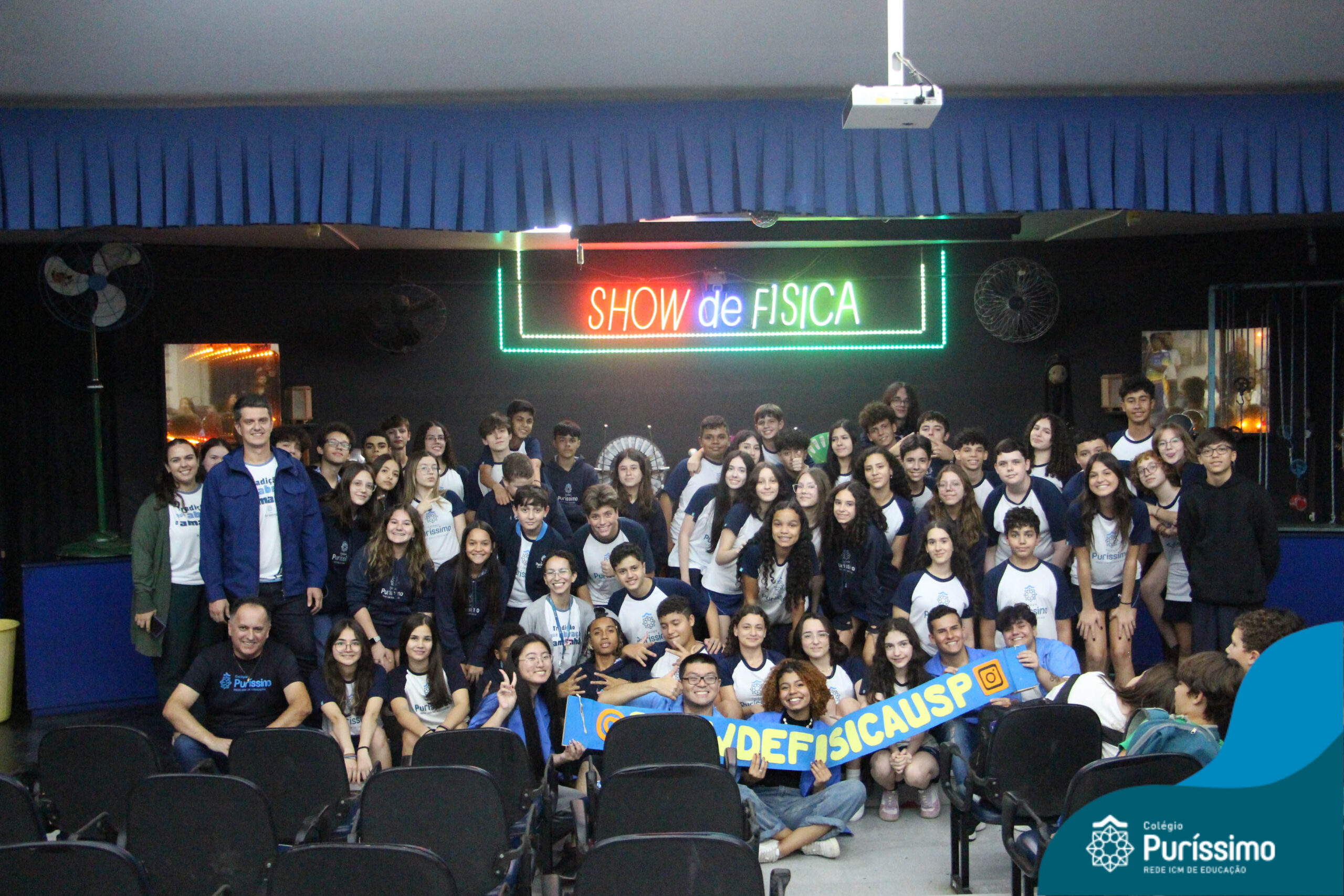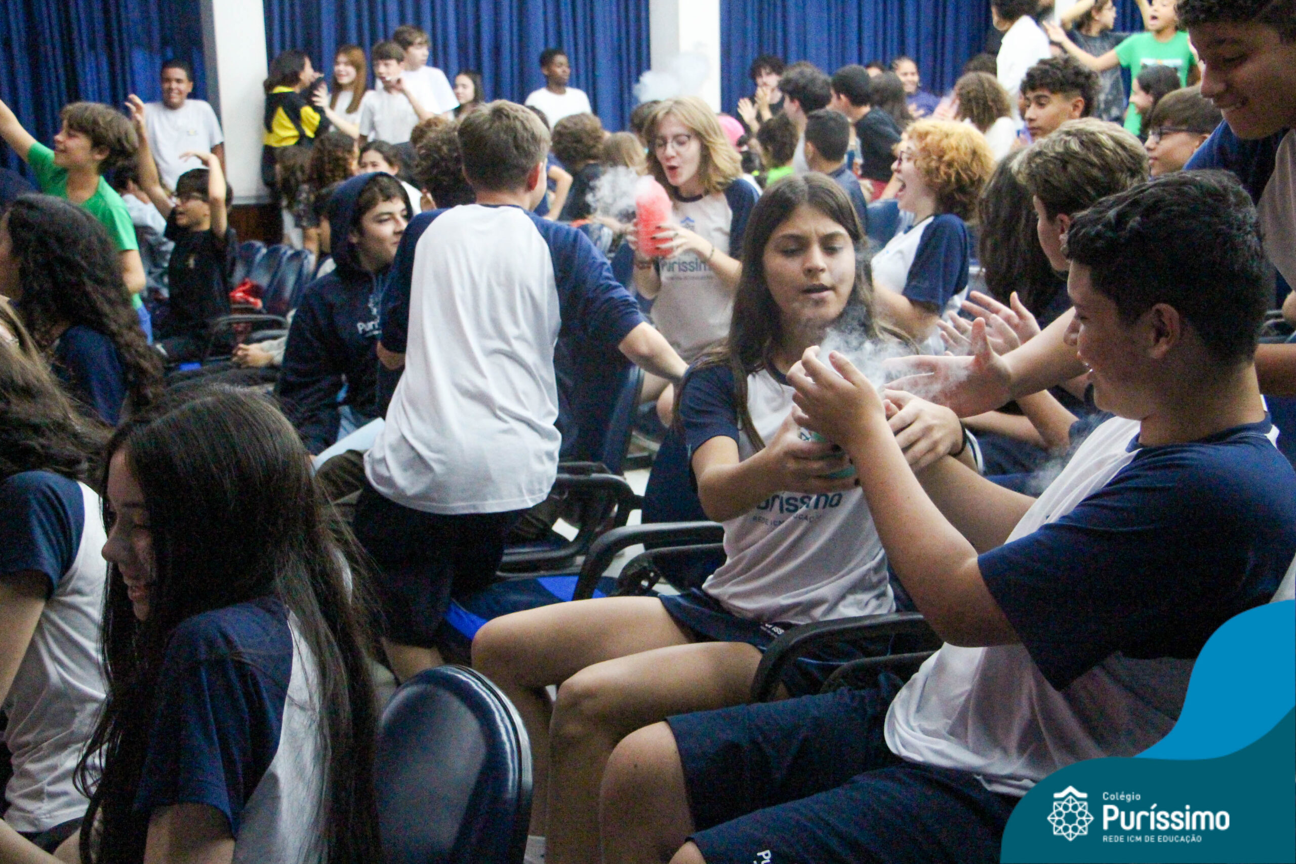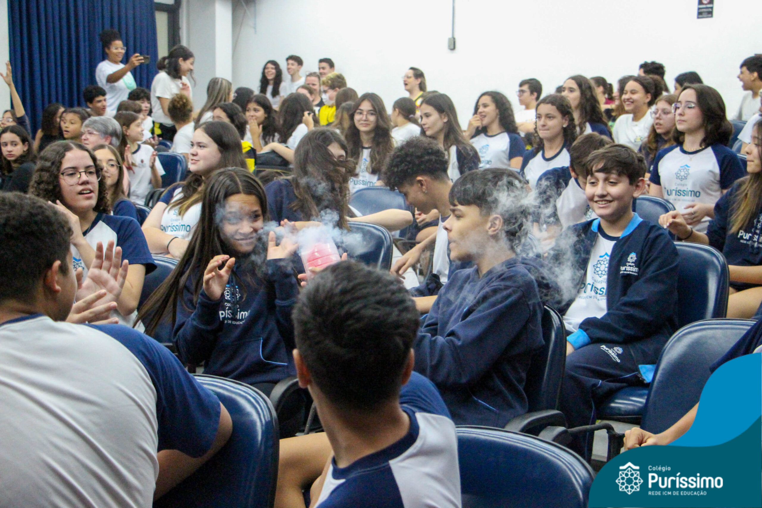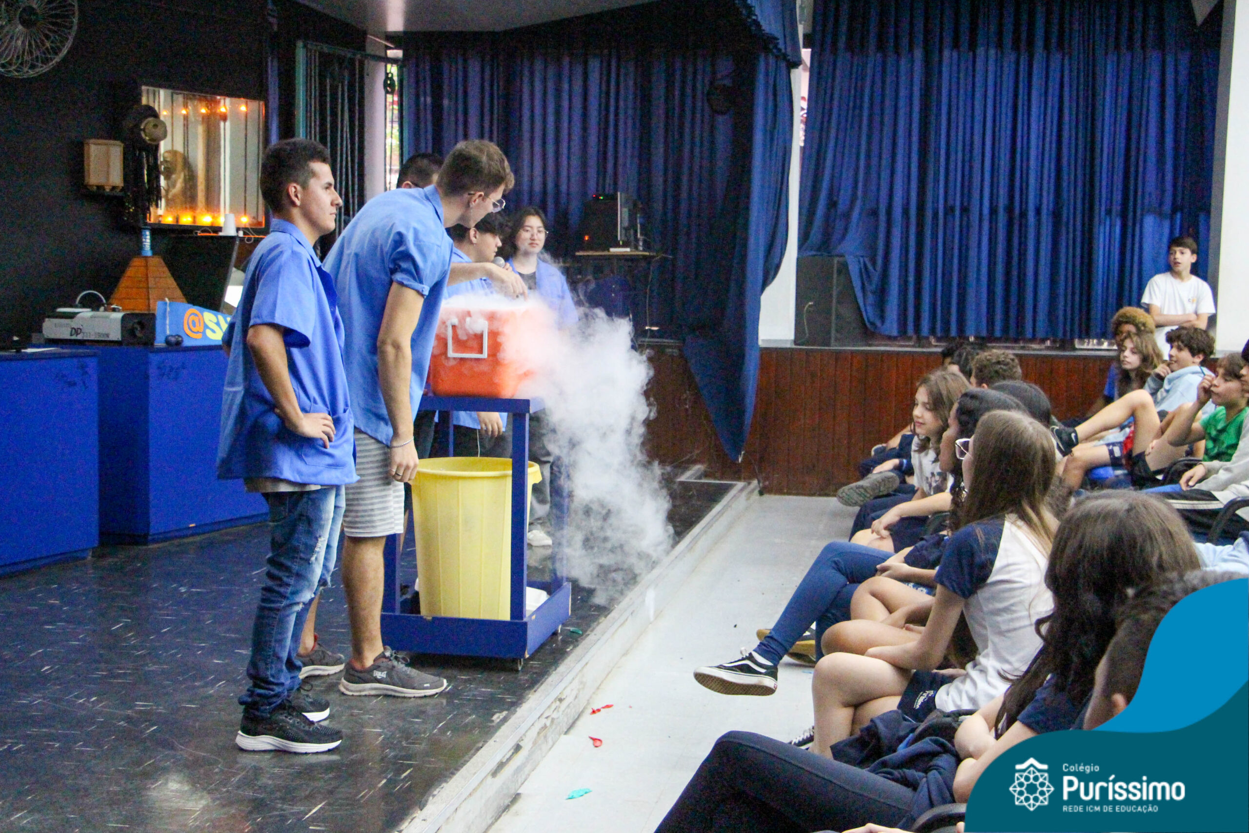 Os alunos do 8º ano participaram do incrível Show de Física da USP, o qual monitores treinados fazem uma apresentação lúdica, divertida, dinâmica, envolvente e interativa, permitindo que os alunos contextualizem, ampliem e estimulem o seu perfil científico, utilizando instrumentos do dia a dia para exemplificar a física e inclusive nitrogênio líquido para uma experiência mais imersiva.