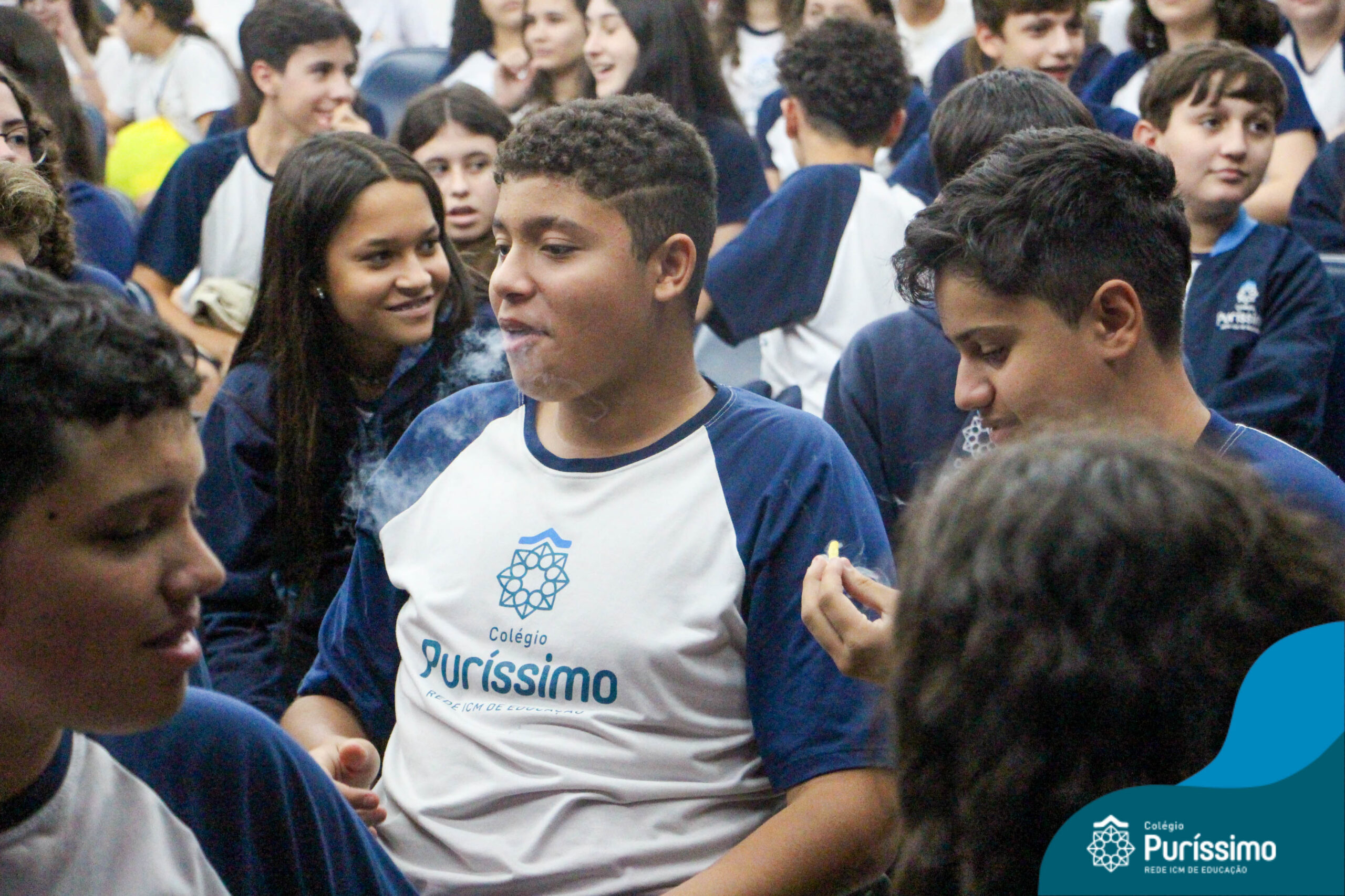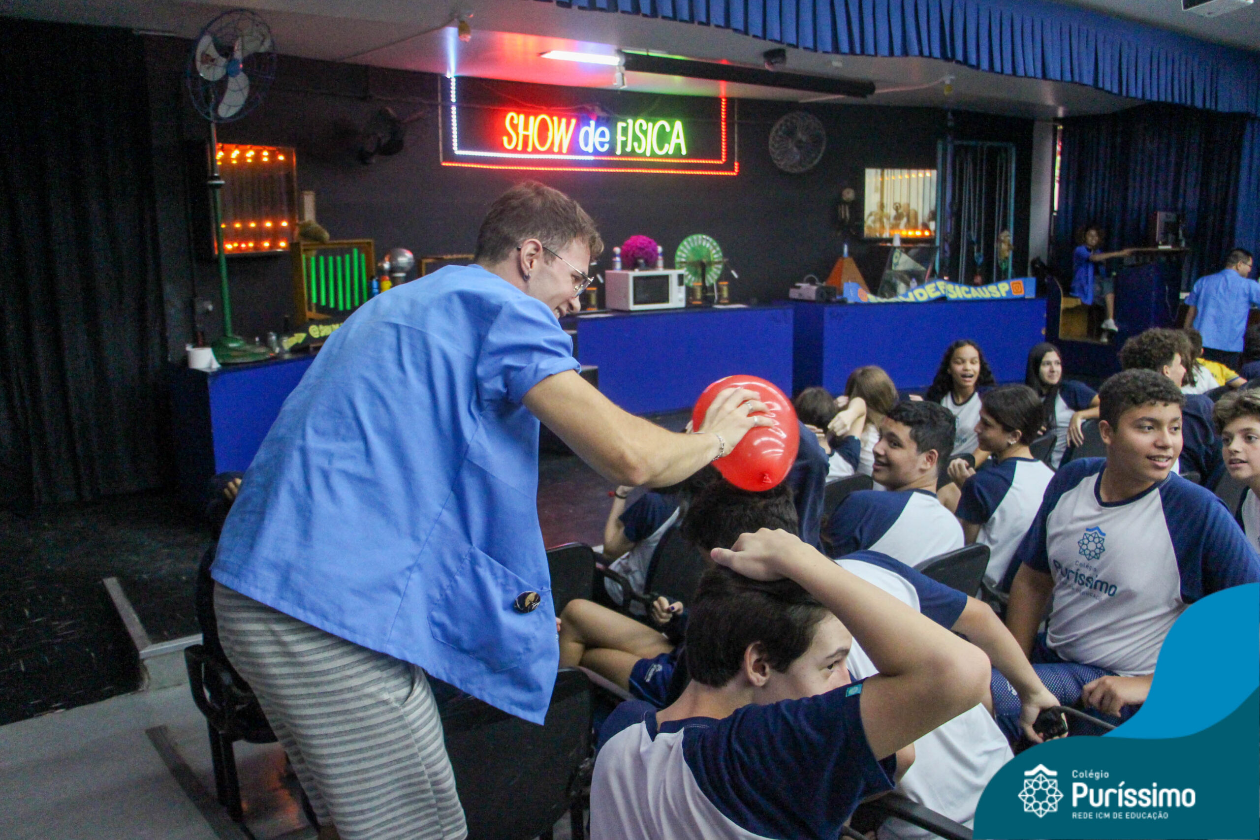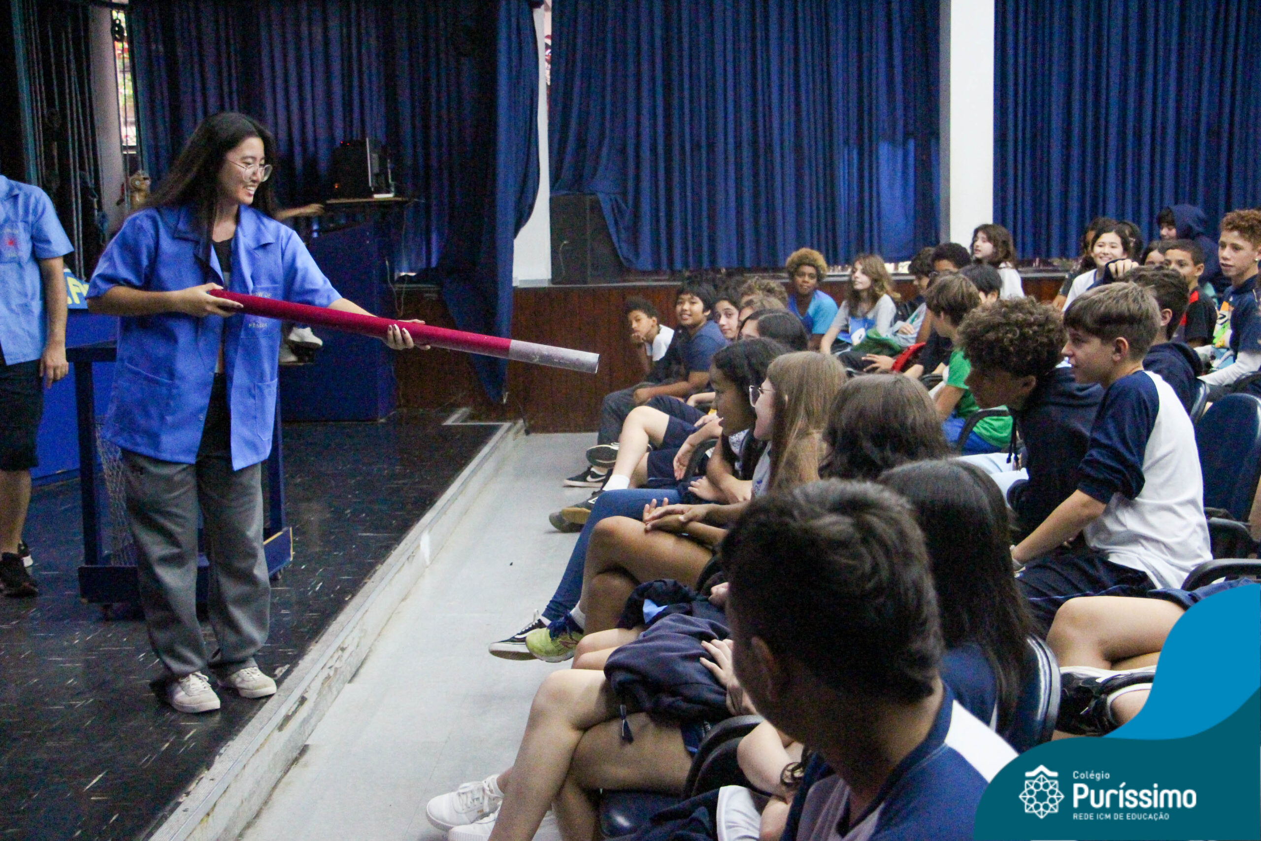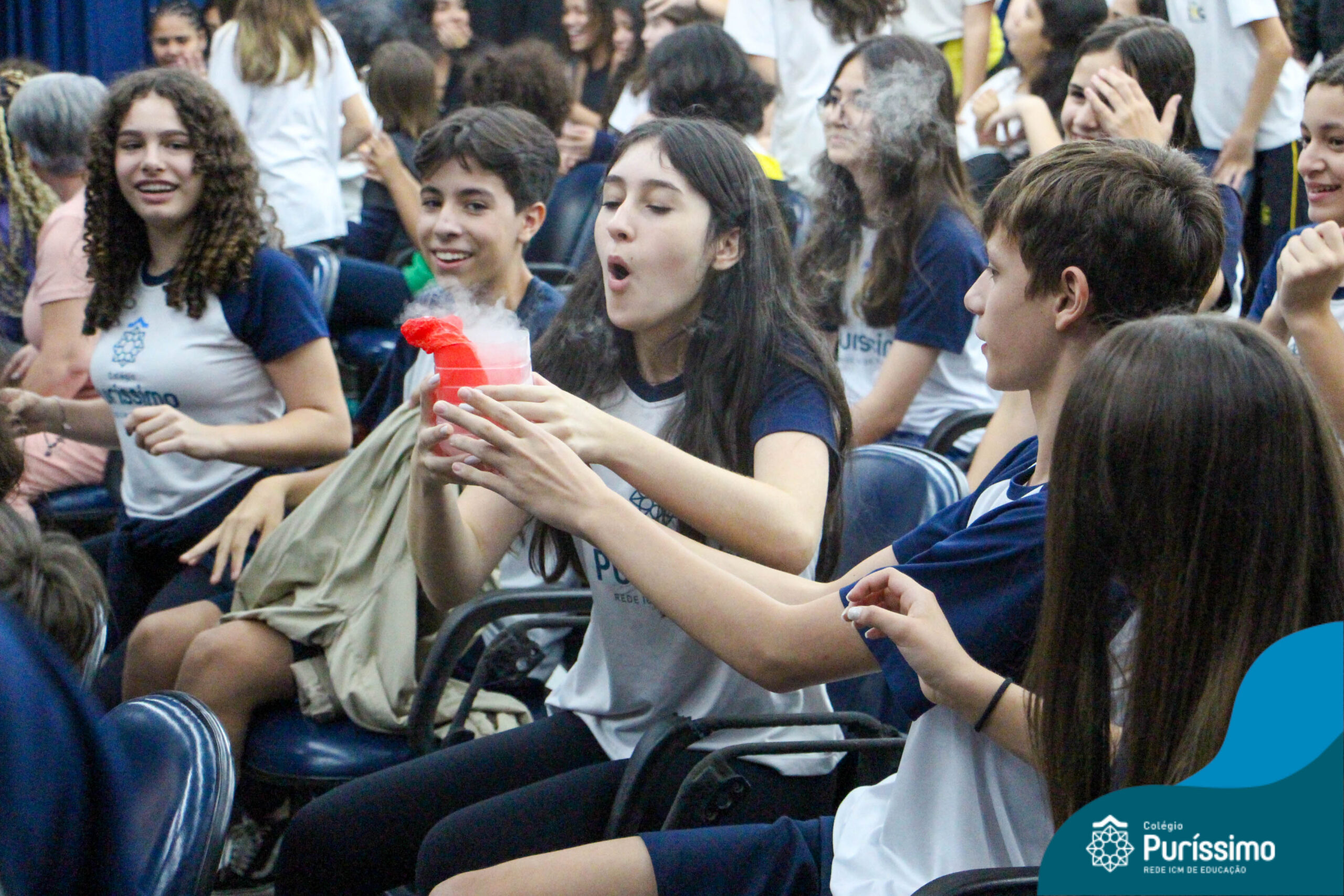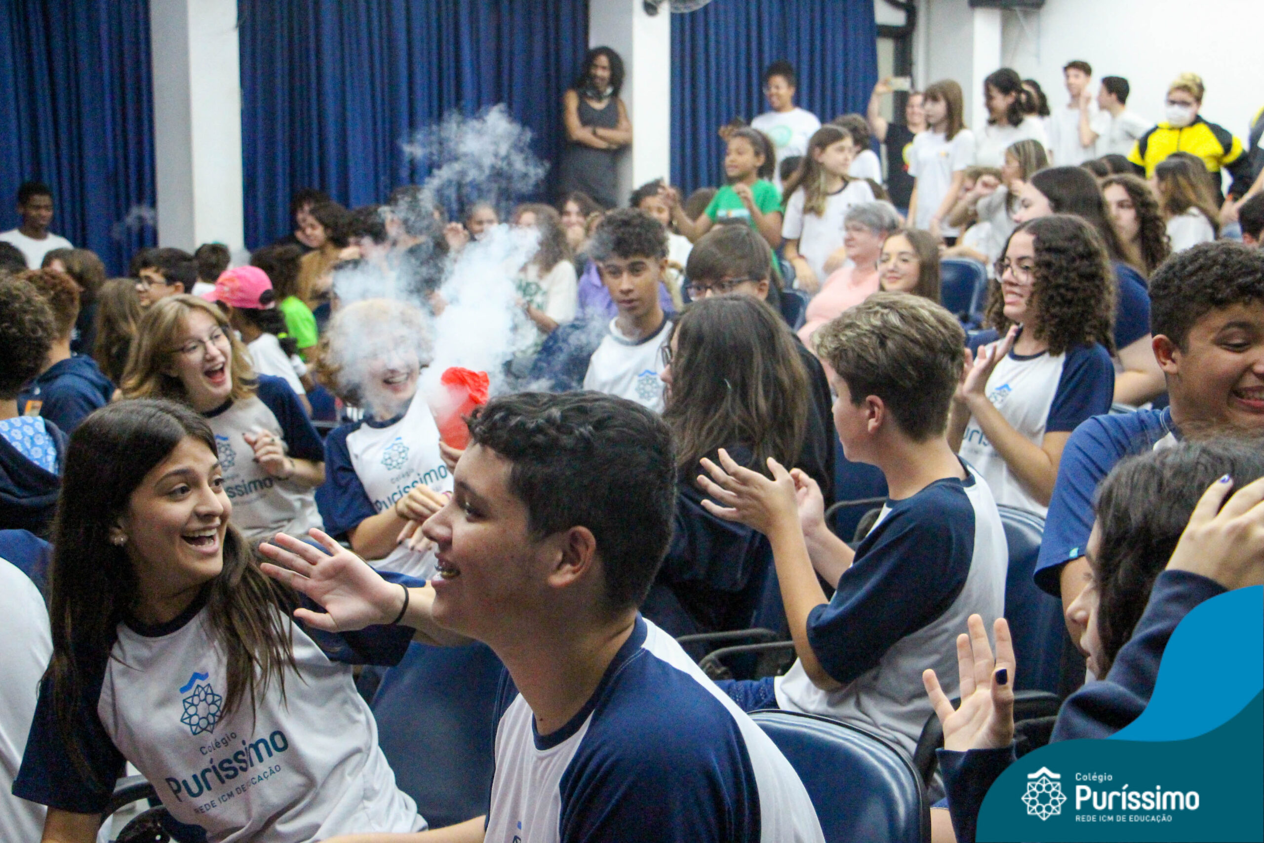 Os alunos do 8º ano participaram do incrível Show de Física da USP, o qual monitores treinados fazem uma apresentação lúdica, divertida, dinâmica, envolvente e interativa, permitindo que os alunos contextualizem, ampliem e estimulem o seu perfil científico, utilizando instrumentos do dia a dia para exemplificar a física e inclusive nitrogênio líquido para uma experiência mais imersiva.