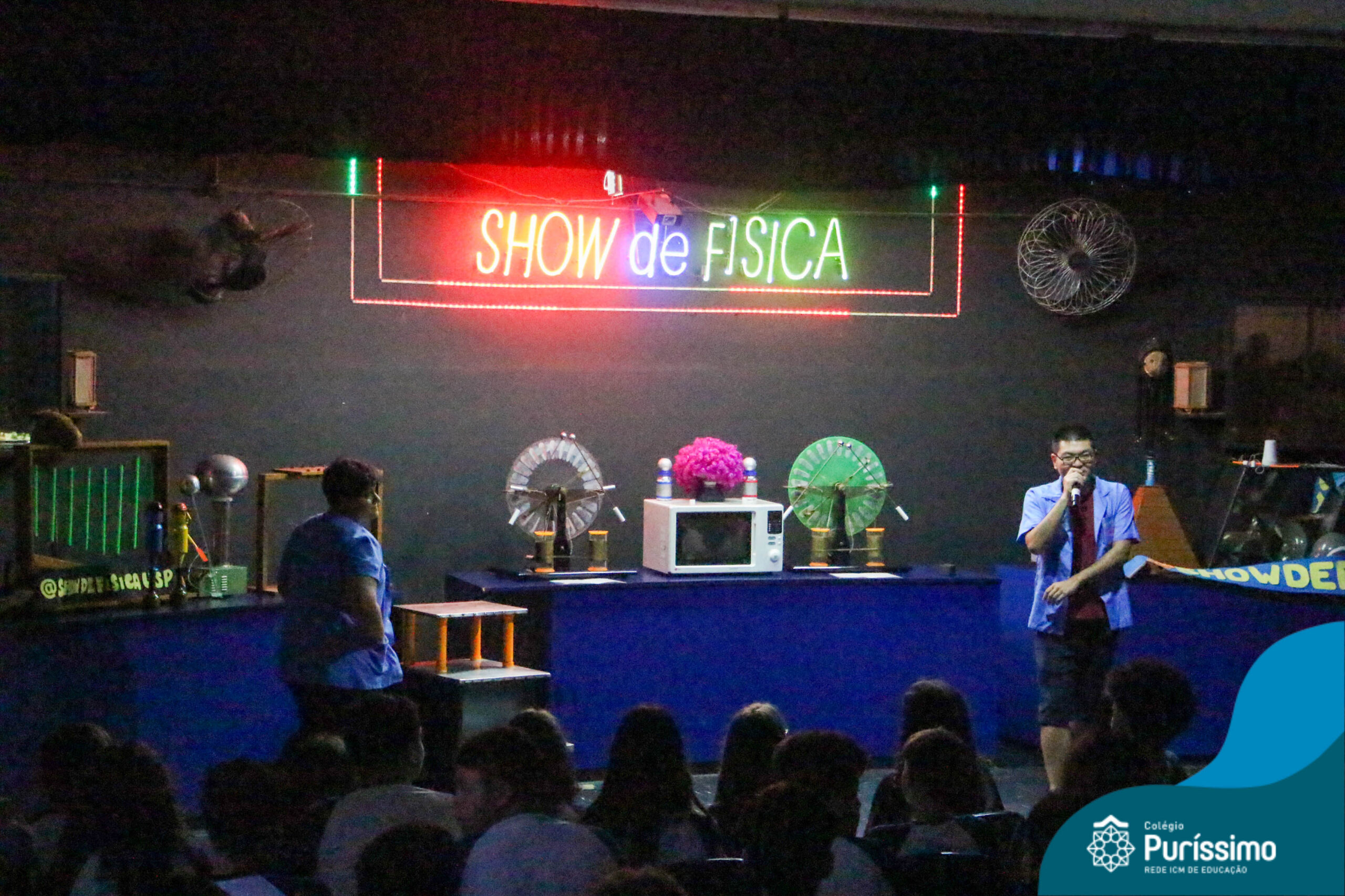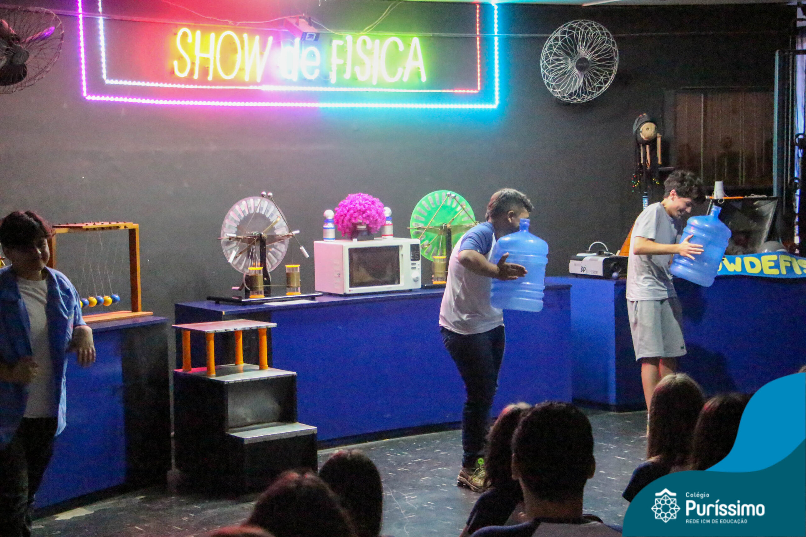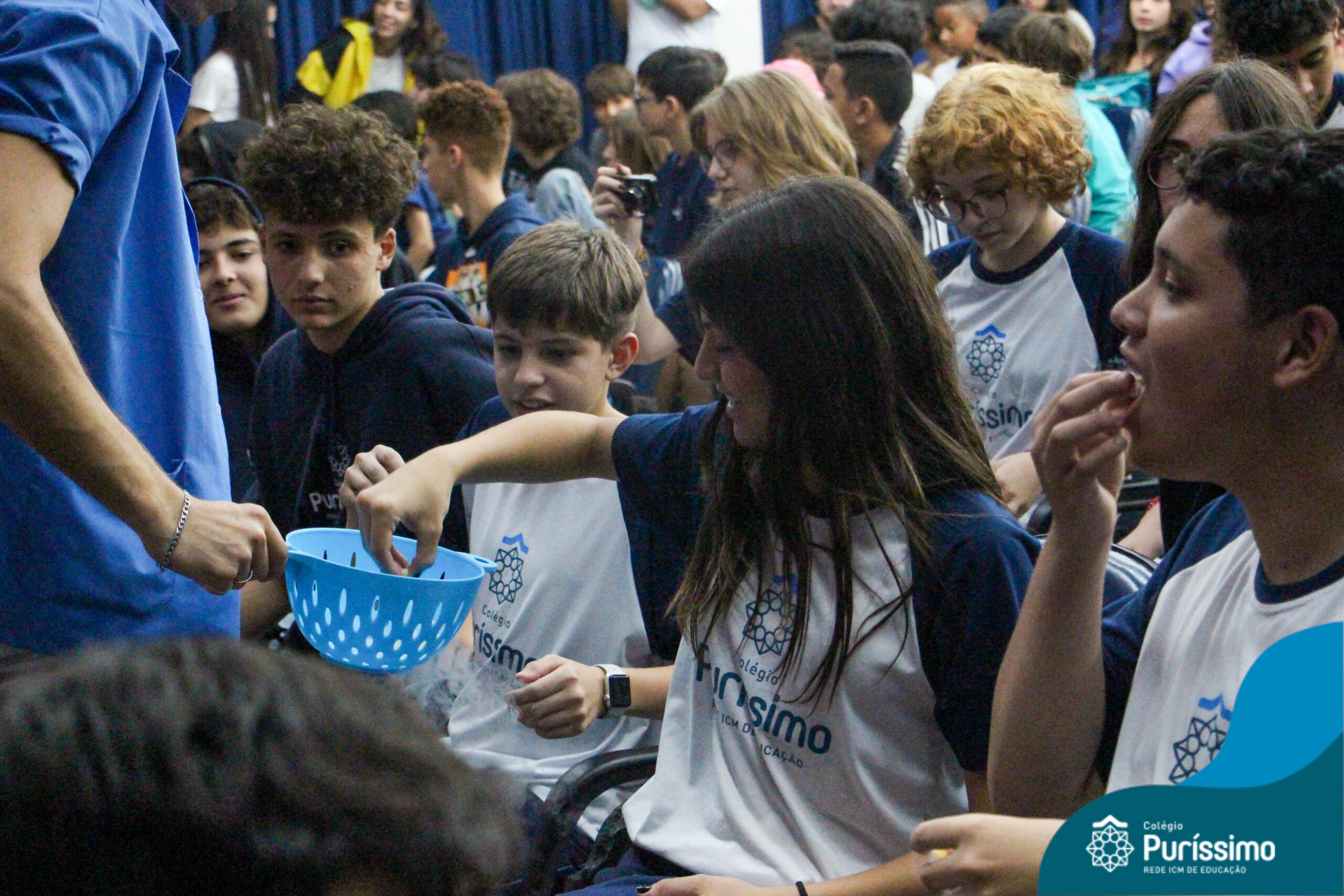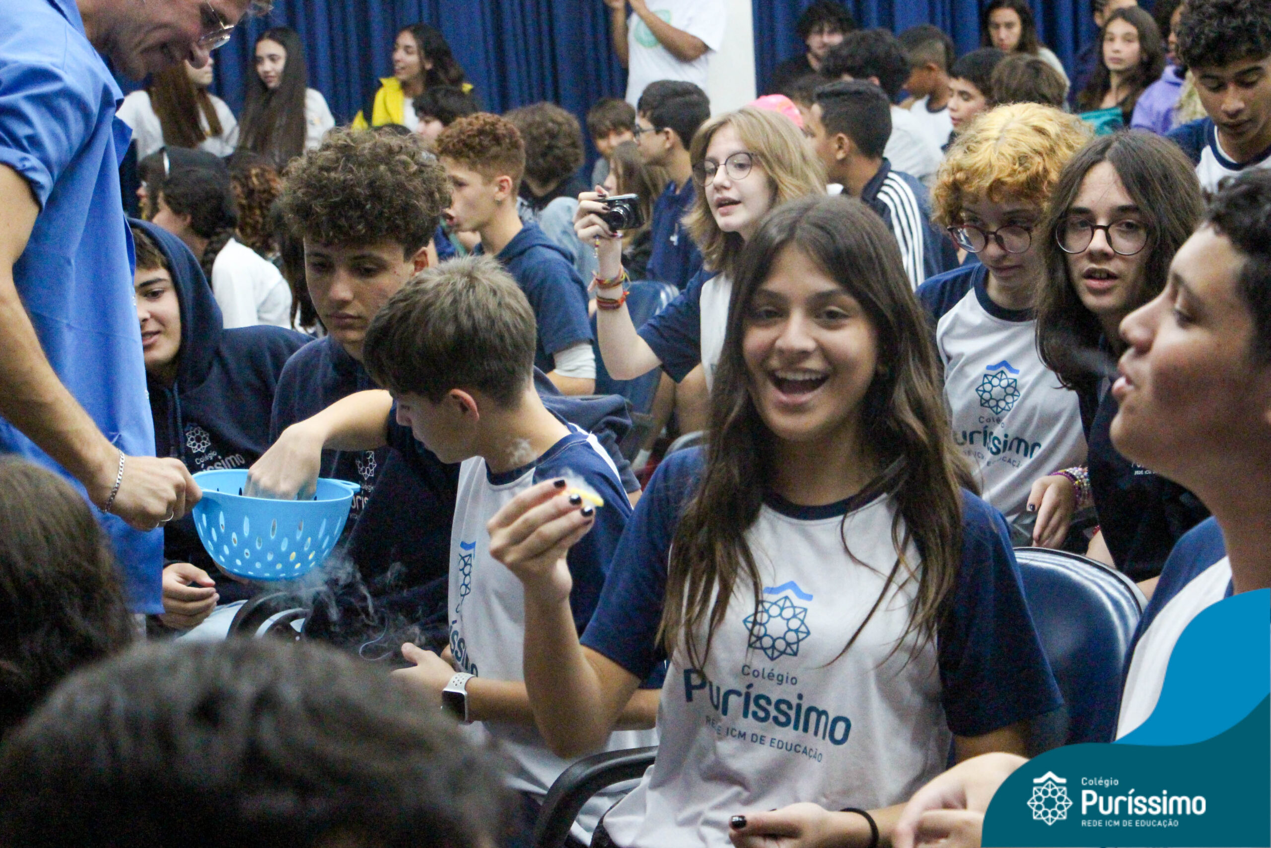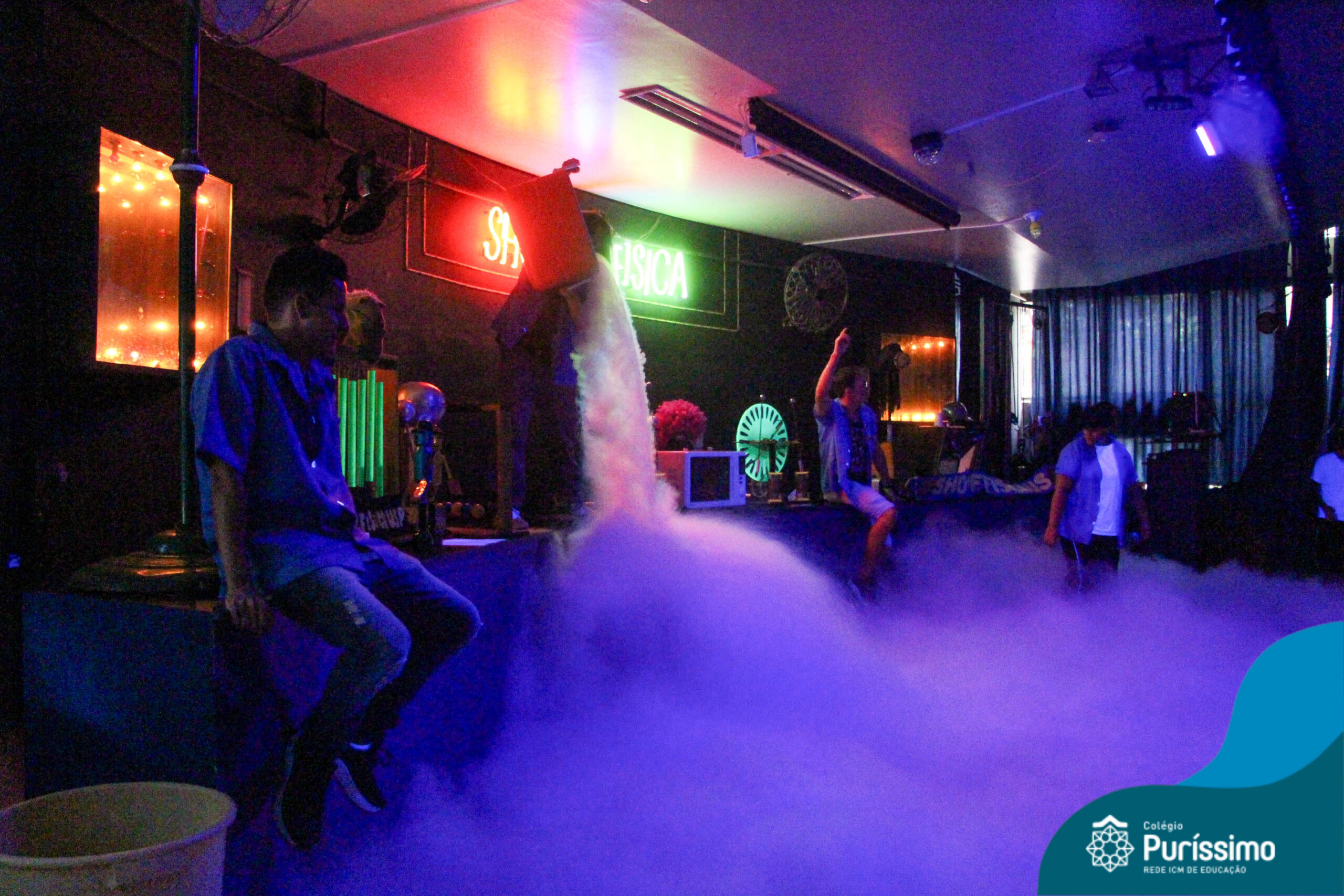 Os alunos do 8º ano participaram do incrível Show de Física da USP, o qual monitores treinados fazem uma apresentação lúdica, divertida, dinâmica, envolvente e interativa, permitindo que os alunos contextualizem, ampliem e estimulem o seu perfil científico, utilizando instrumentos do dia a dia para exemplificar a física e inclusive nitrogênio líquido para uma experiência mais imersiva.