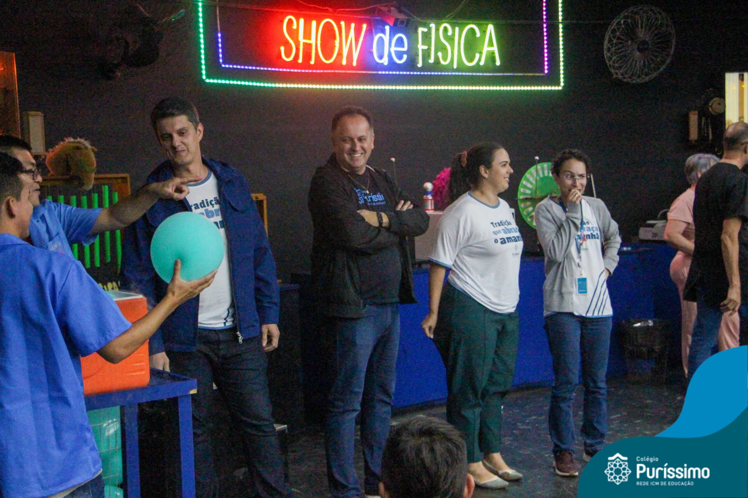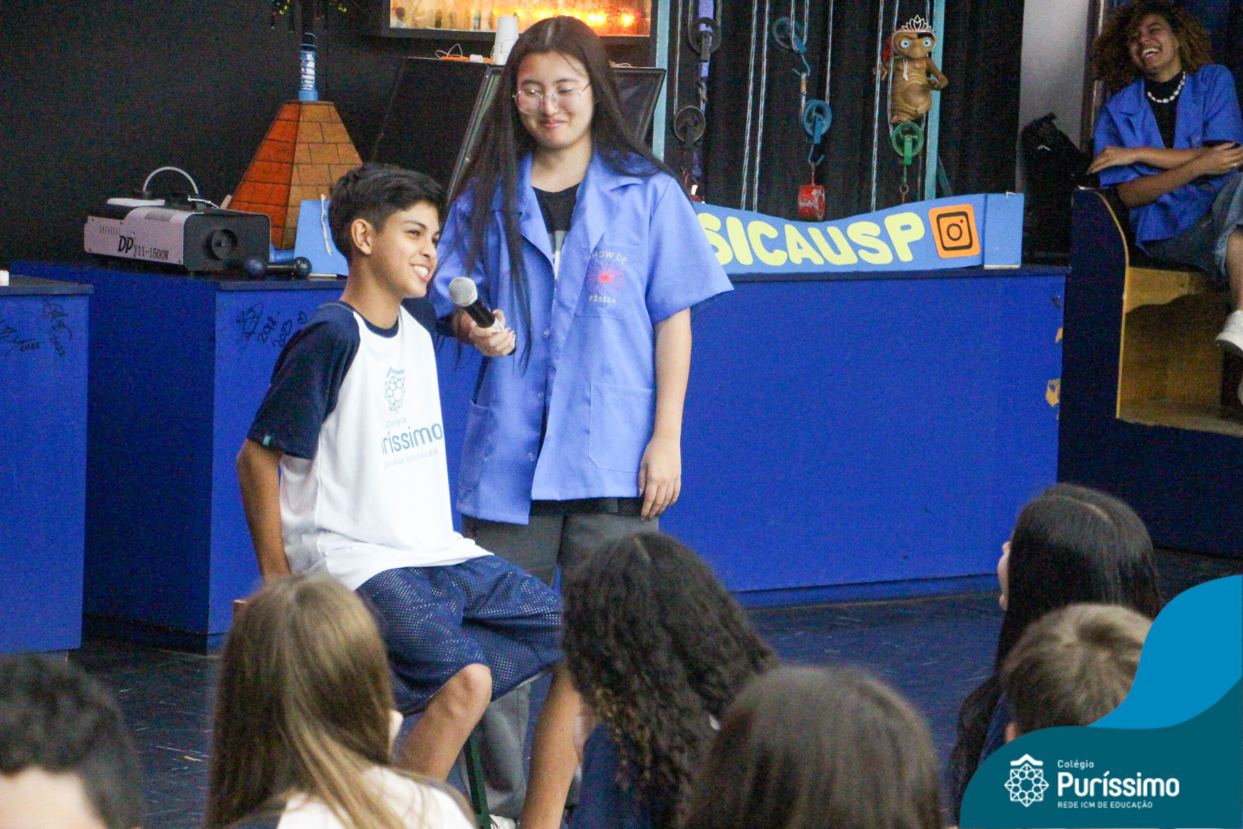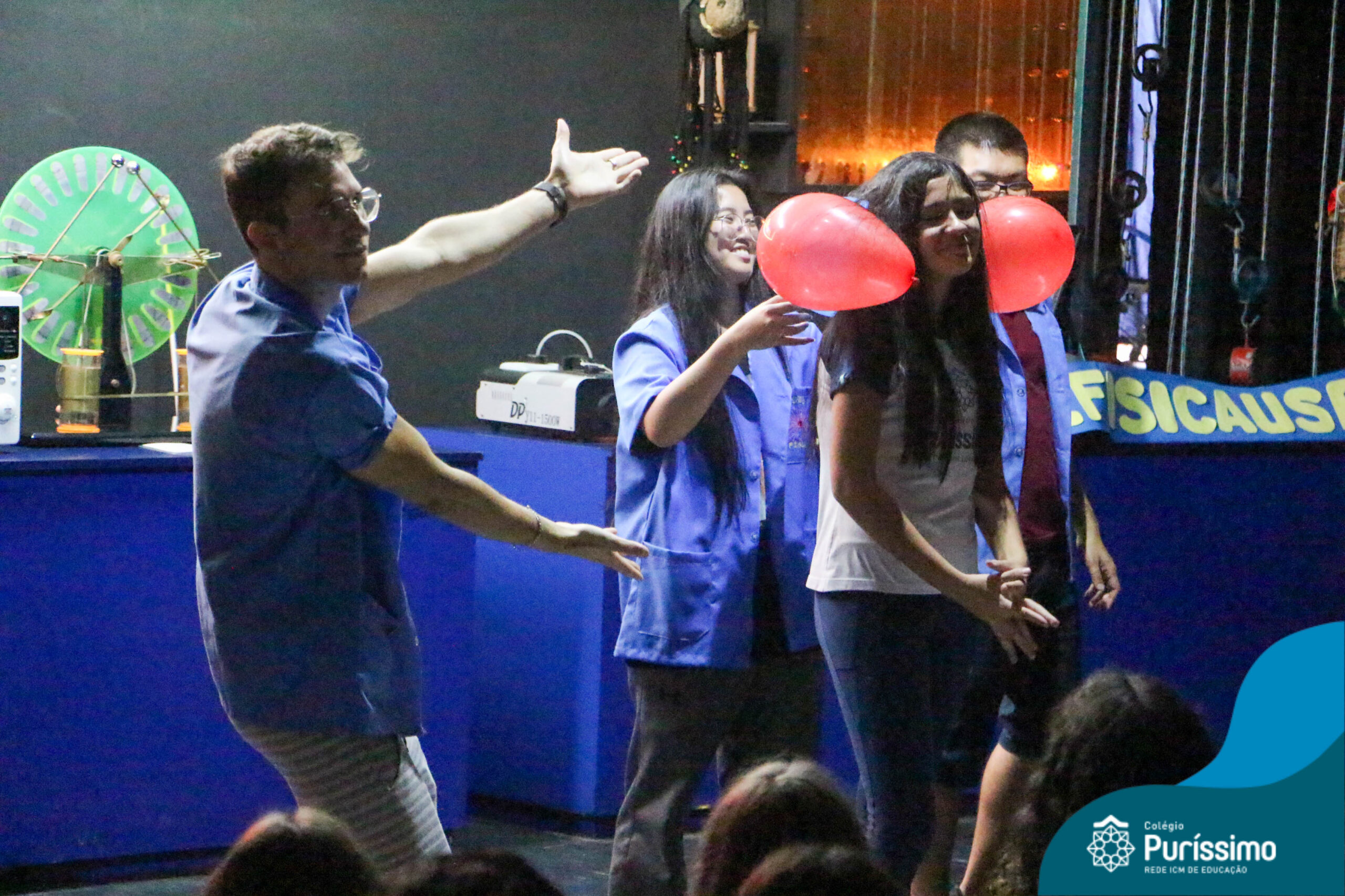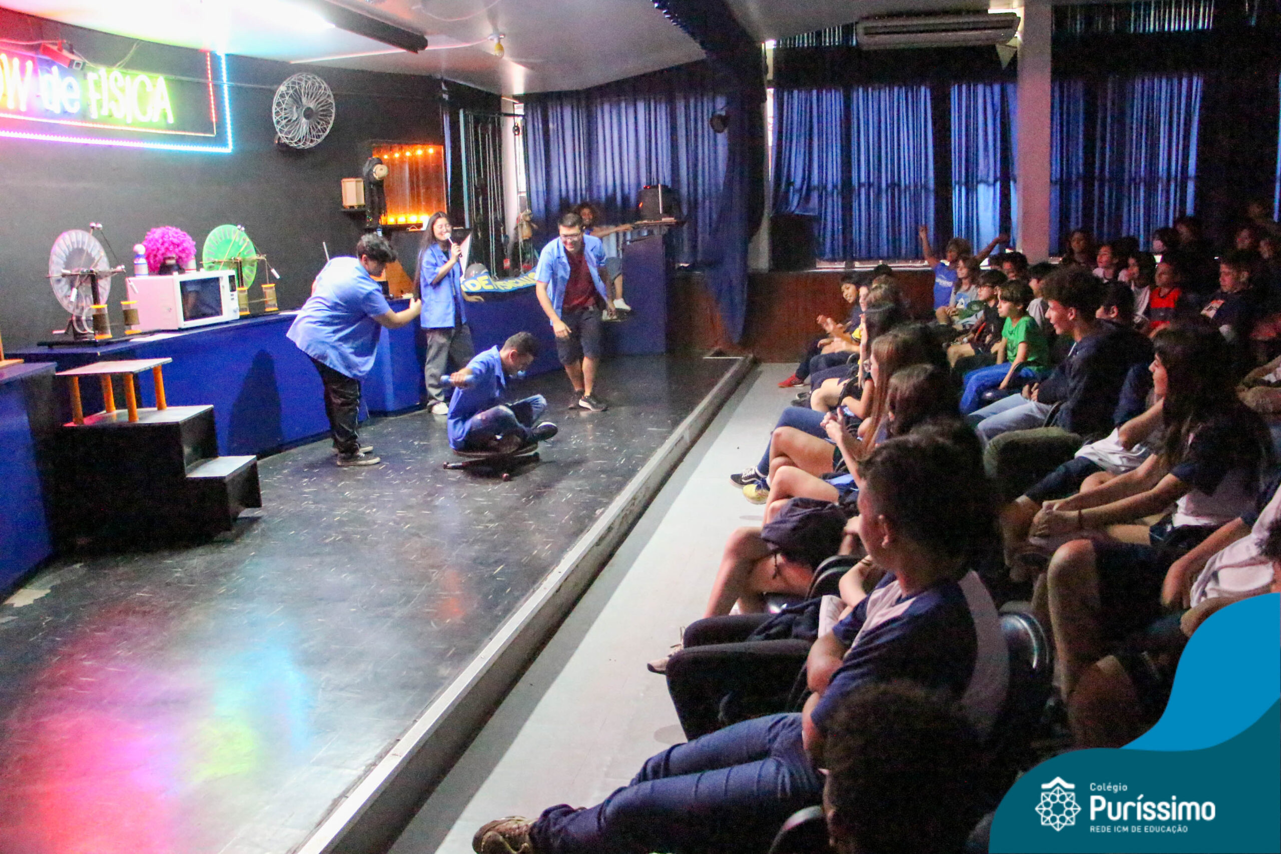 Os alunos do 8º ano participaram do incrível Show de Física da USP, o qual monitores treinados fazem uma apresentação lúdica, divertida, dinâmica, envolvente e interativa, permitindo que os alunos contextualizem, ampliem e estimulem o seu perfil científico, utilizando instrumentos do dia a dia para exemplificar a física e inclusive nitrogênio líquido para uma experiência mais imersiva.