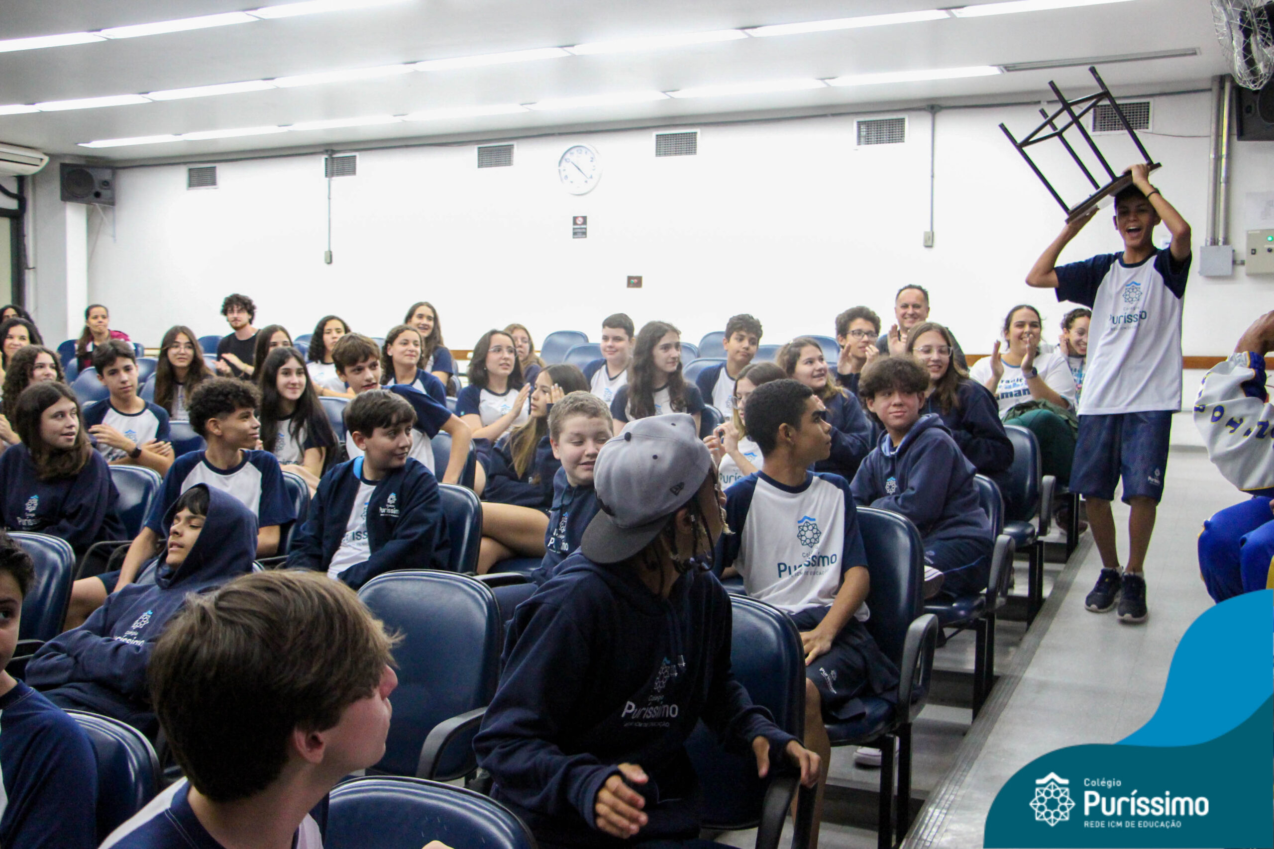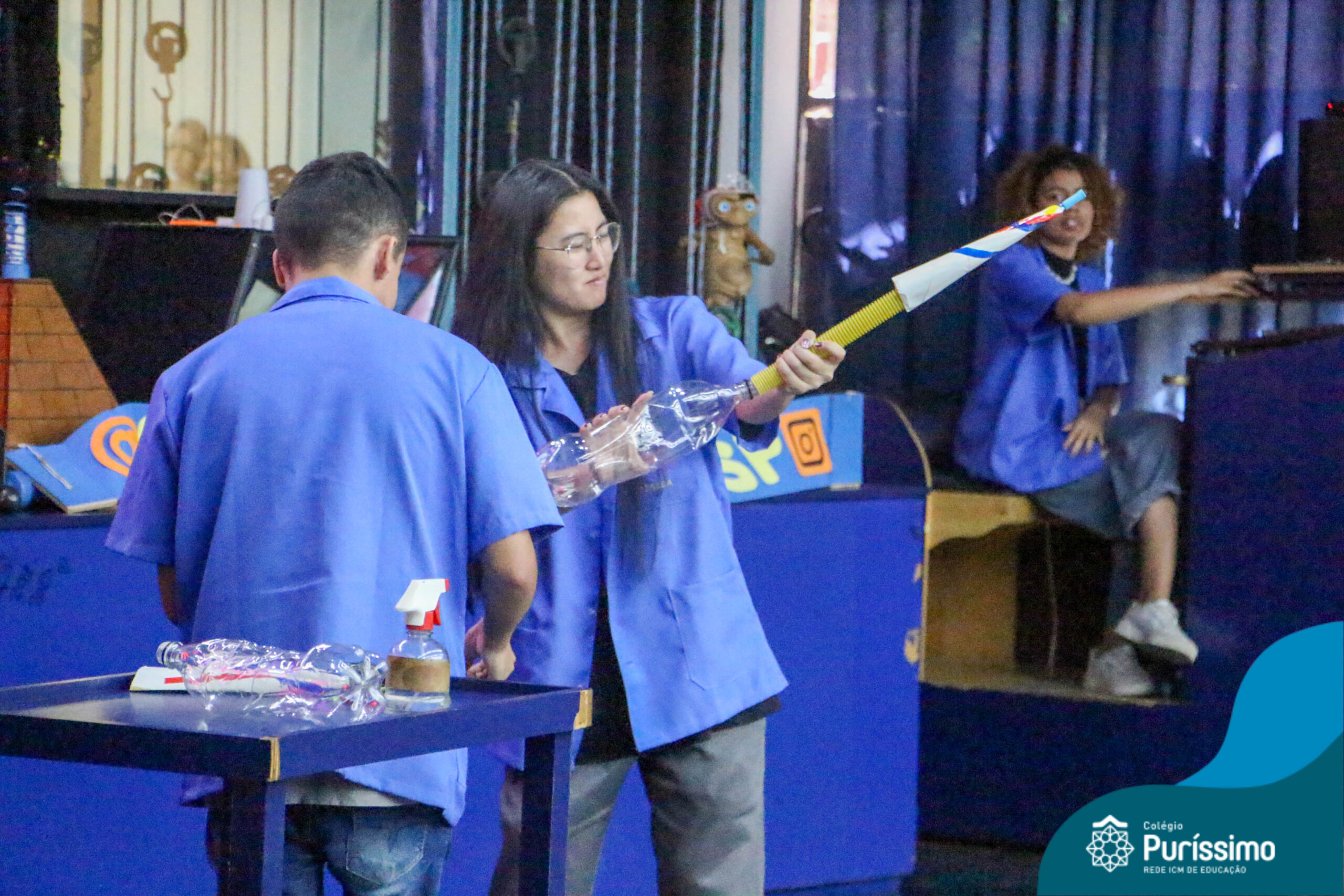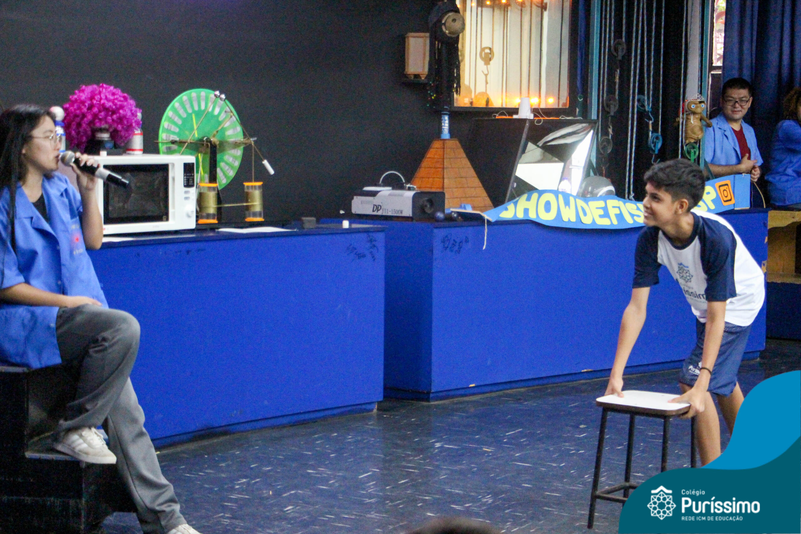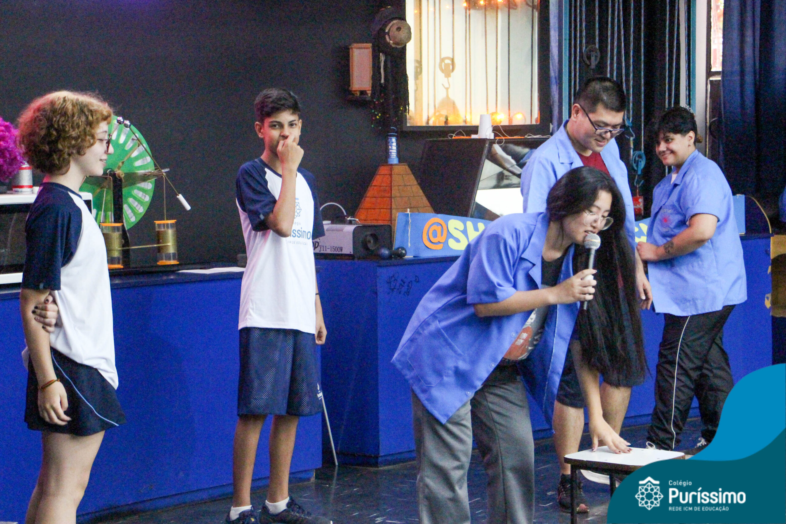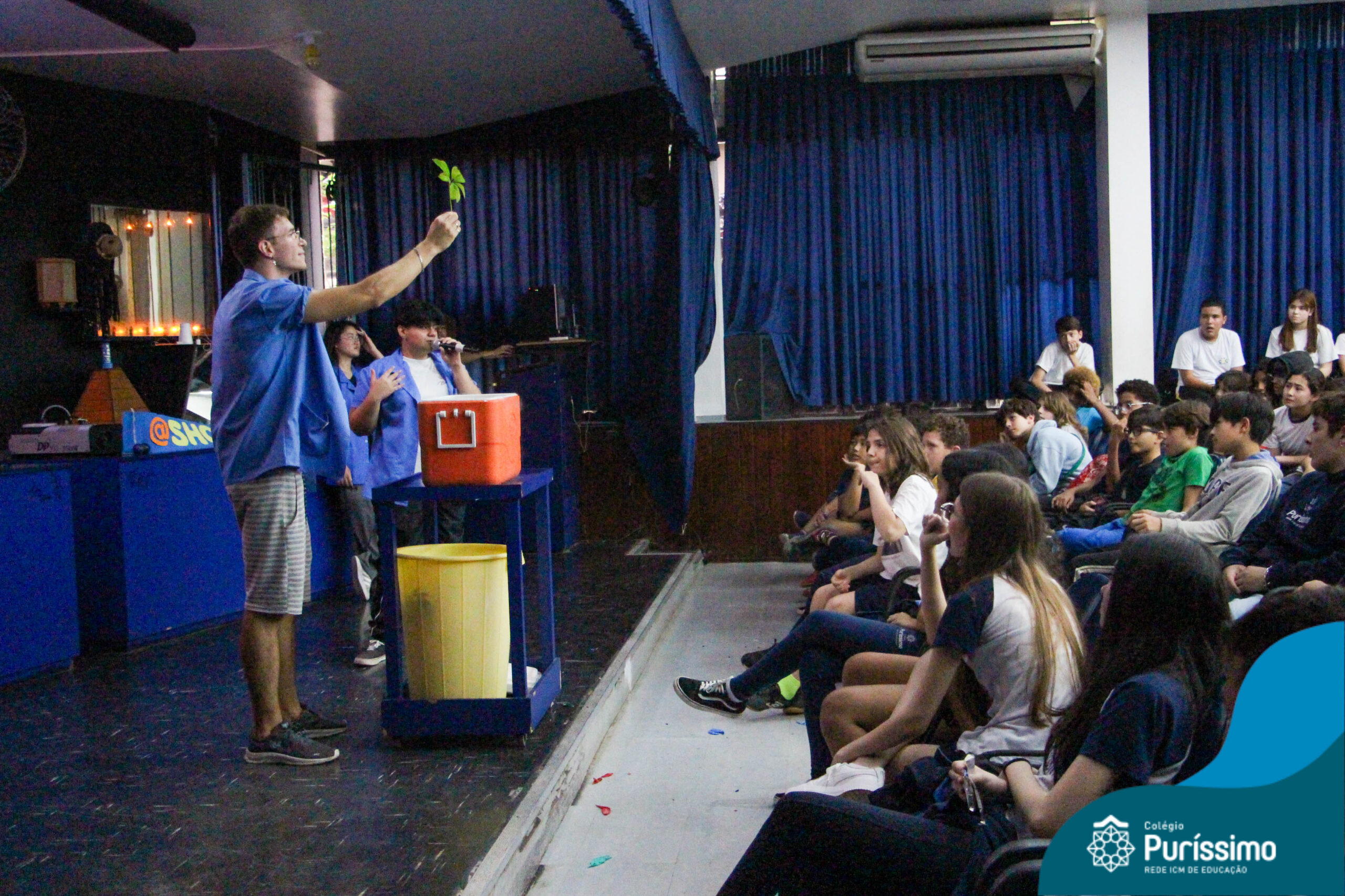 Os alunos do 8º ano participaram do incrível Show de Física da USP, o qual monitores treinados fazem uma apresentação lúdica, divertida, dinâmica, envolvente e interativa, permitindo que os alunos contextualizem, ampliem e estimulem o seu perfil científico, utilizando instrumentos do dia a dia para exemplificar a física e inclusive nitrogênio líquido para uma experiência mais imersiva.