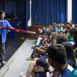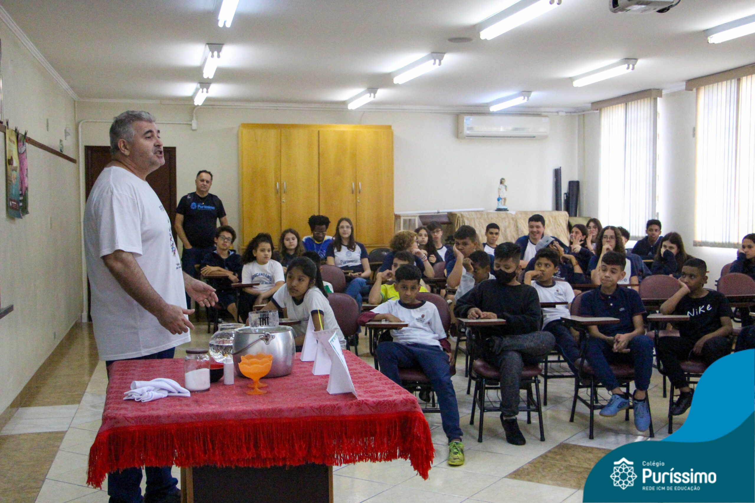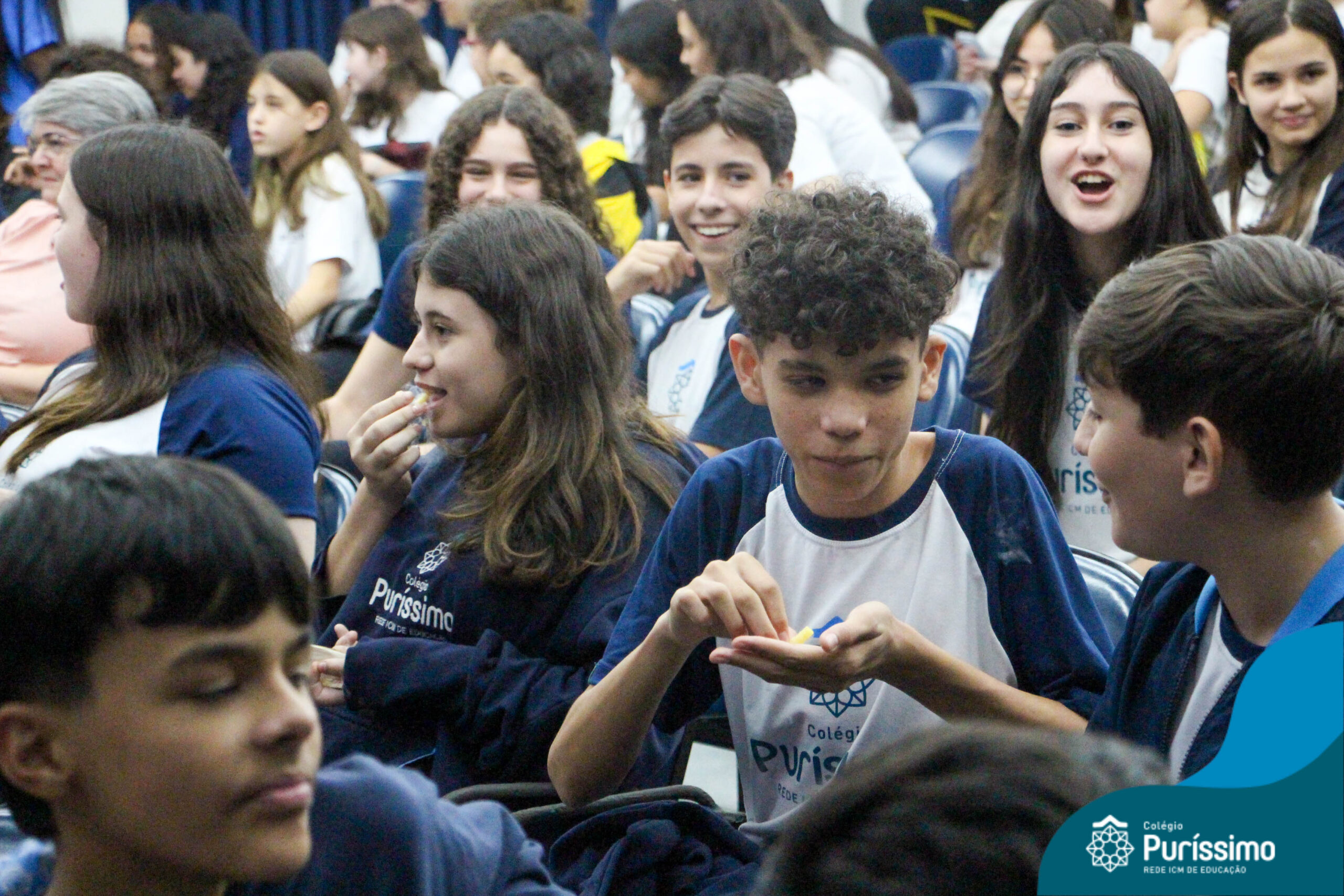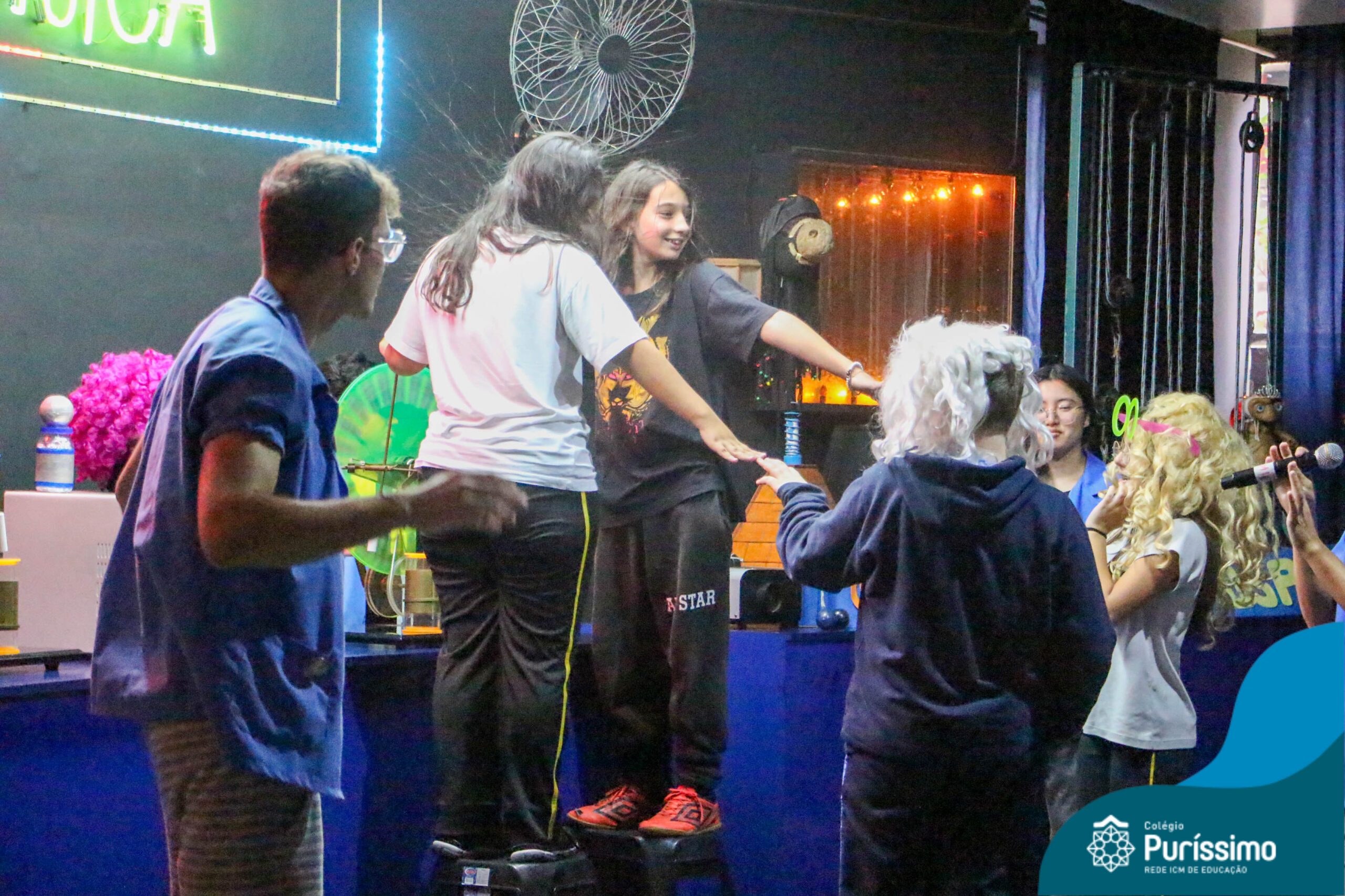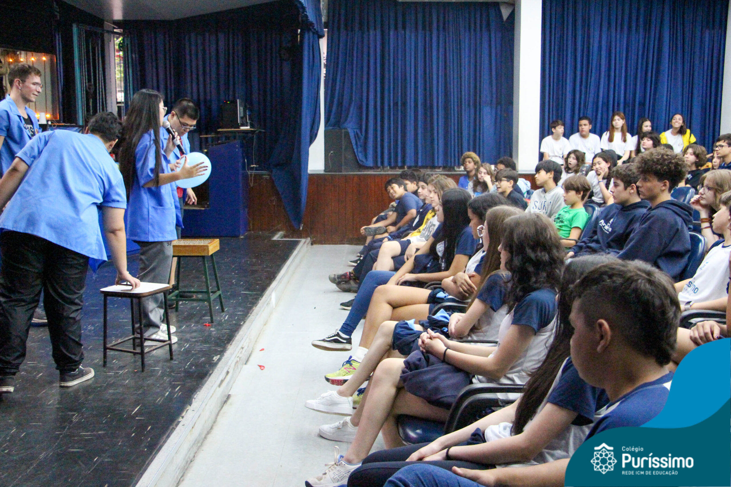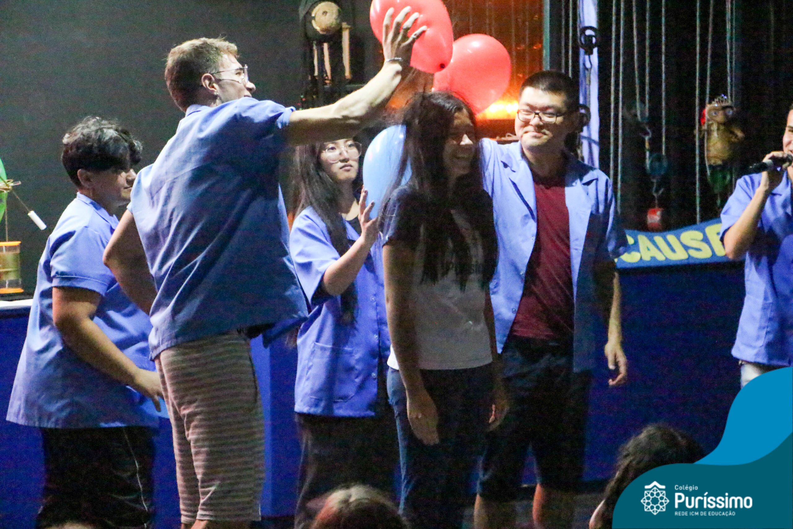 Os alunos do 8º ano participaram do incrível Show de Física da USP, o qual monitores treinados fazem uma apresentação lúdica, divertida, dinâmica, envolvente e interativa, permitindo que os alunos contextualizem, ampliem e estimulem o seu perfil científico, utilizando instrumentos do dia a dia para exemplificar a física e inclusive nitrogênio líquido para uma experiência mais imersiva.