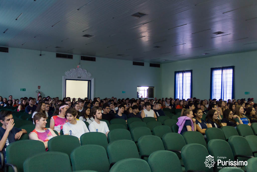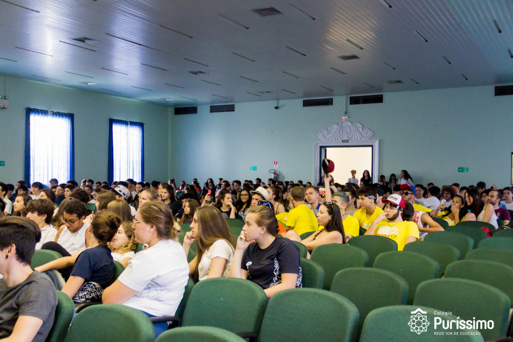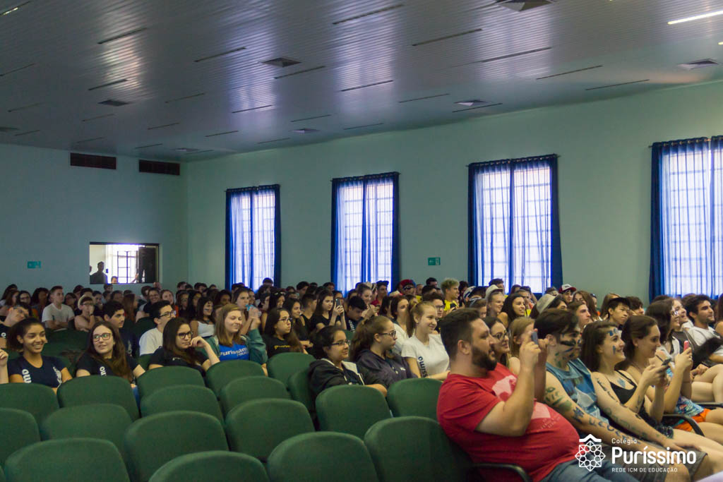 Na sexta-feira, 10, a Coordenação preparou um momento de descontração para os alunos do Ensino Médio que prestaram ENEM no domingo. Na última aula, eles foram contemplados com um show de alunos, professores e coordenadores, que animaram a plateia do começo ao fim da apresentação.