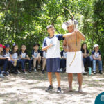 O destino foi o Sítio do Sol, local onde os alunos puderam entrar em contato e aprender mais sobre uma das culturas indígenas que compõe o nosso país.