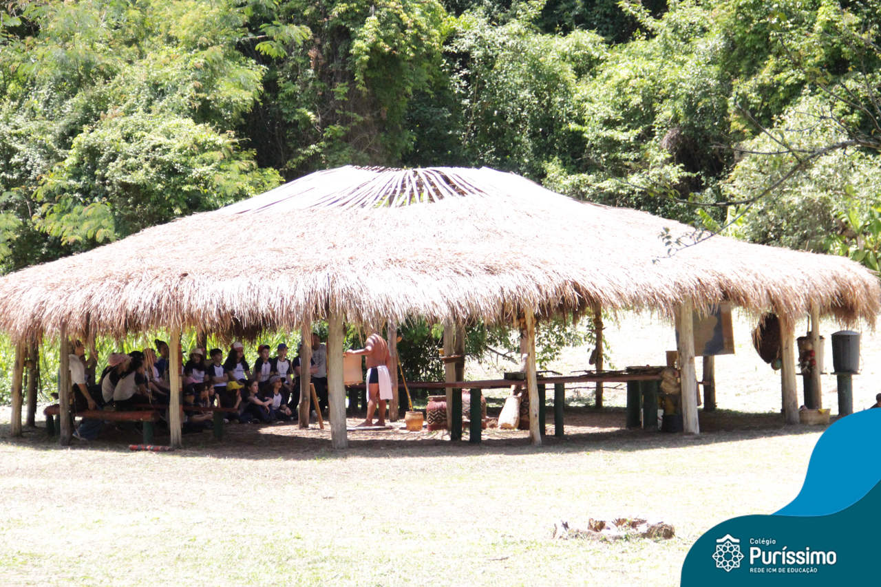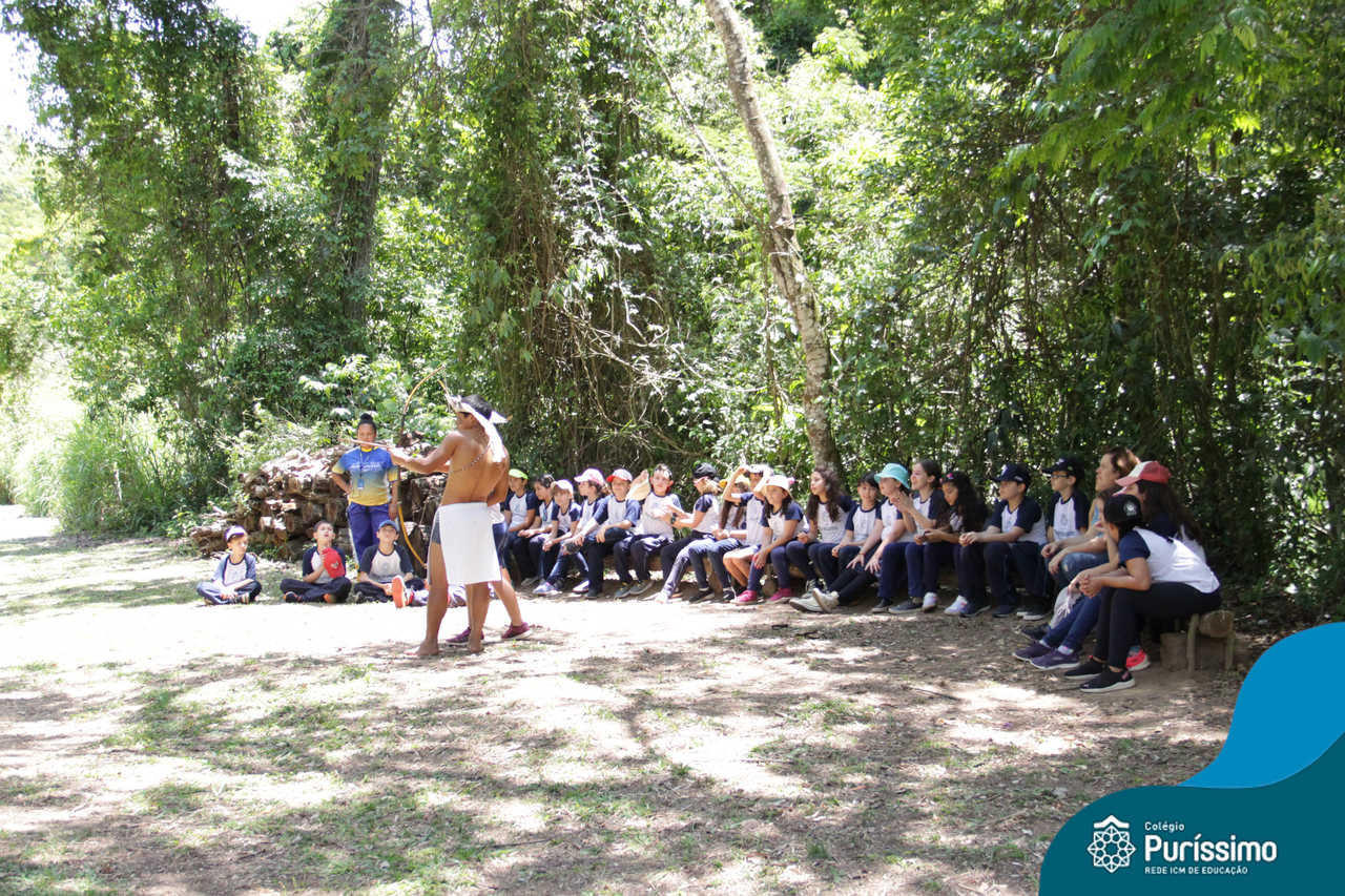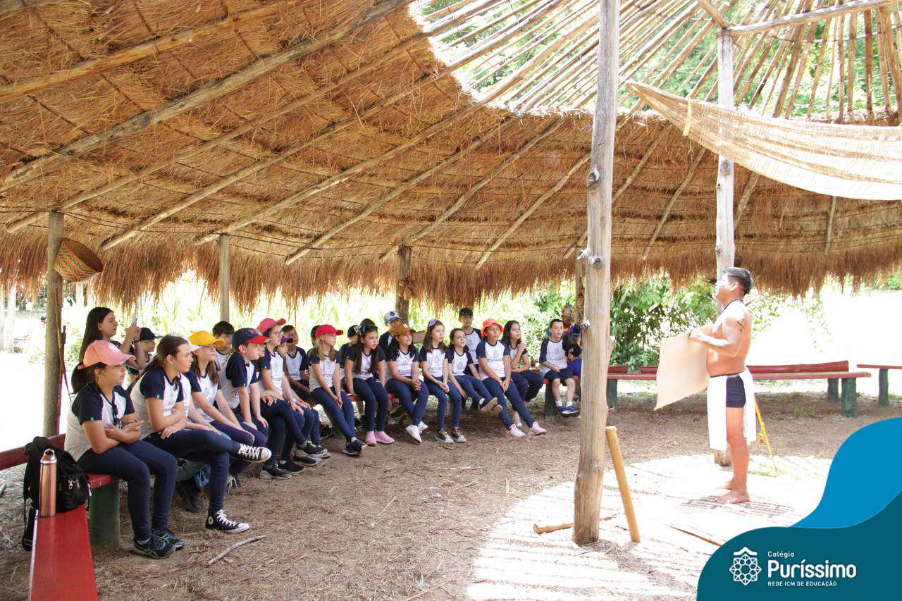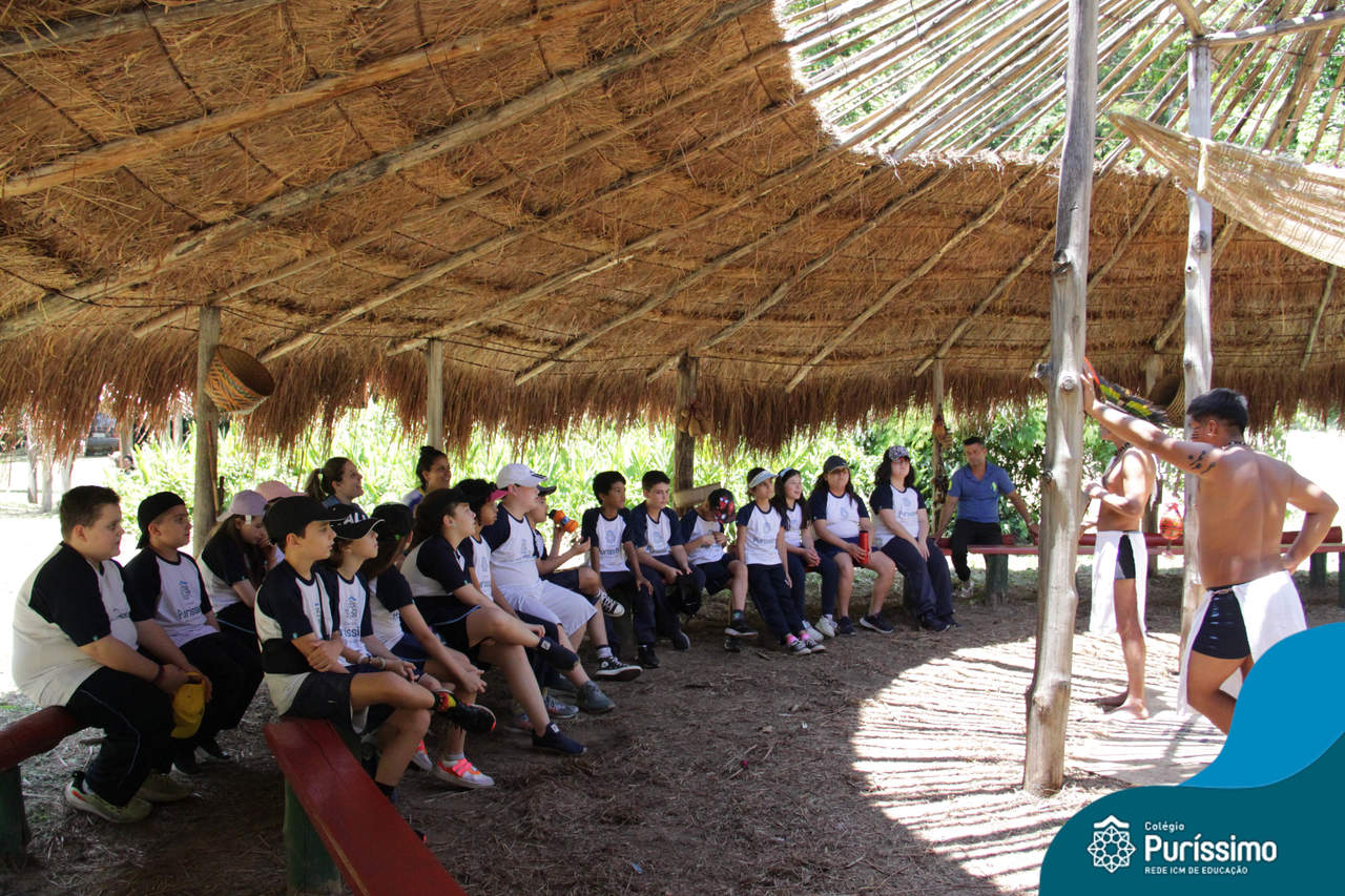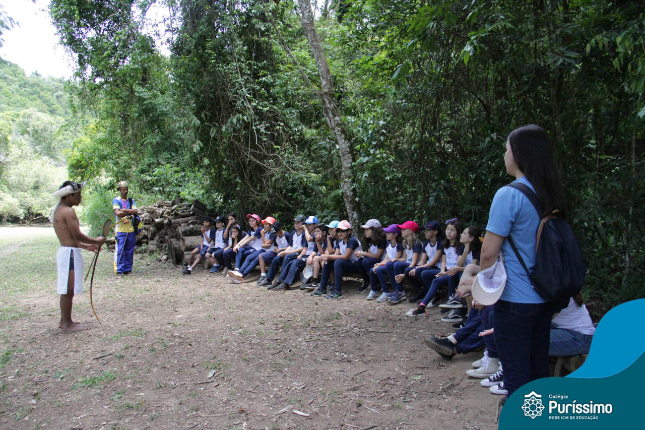 O destino foi o Sítio do Sol, local onde os alunos puderam entrar em contato e aprender mais sobre uma das culturas indígenas que compõe o nosso país.