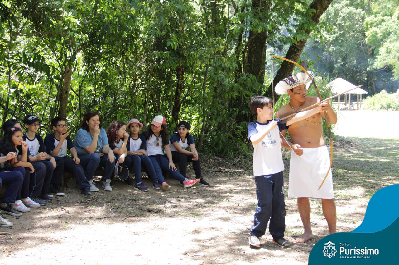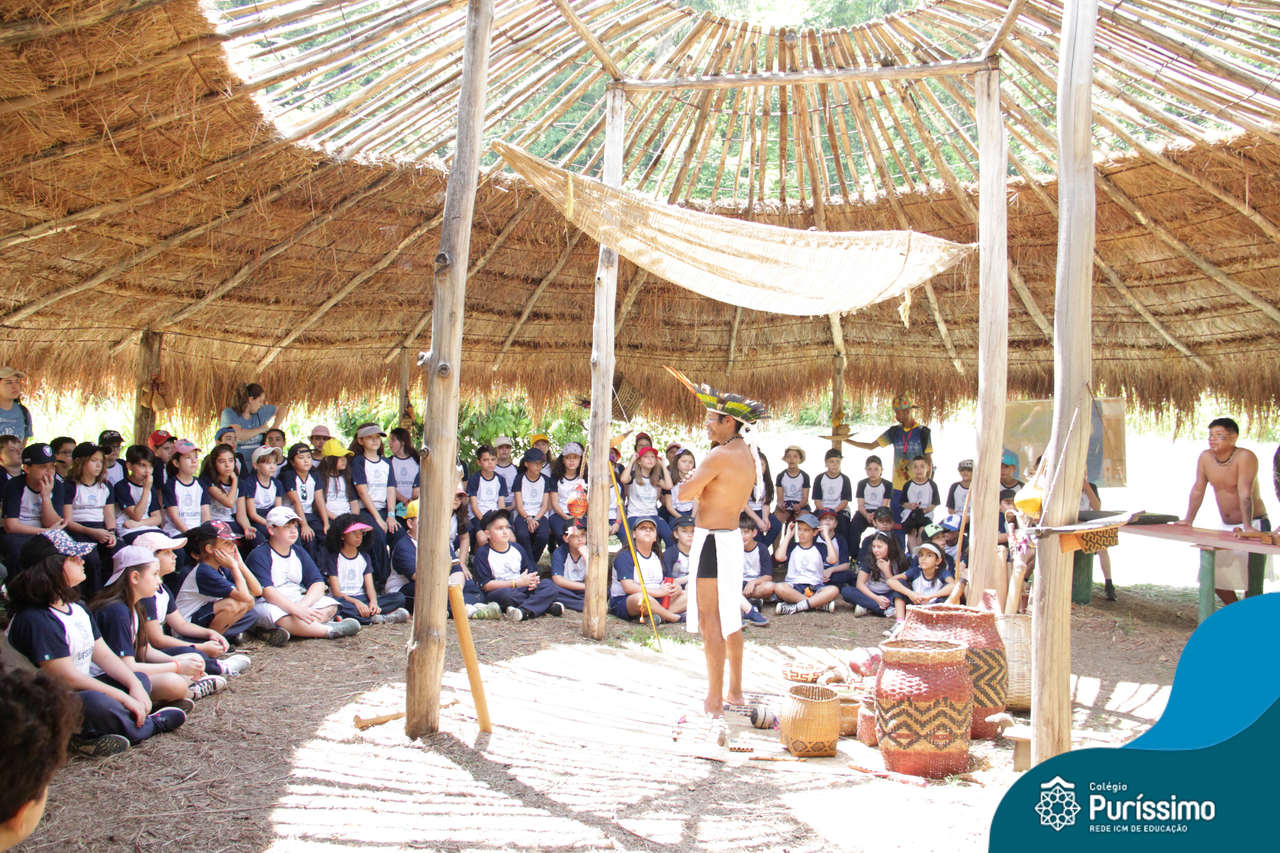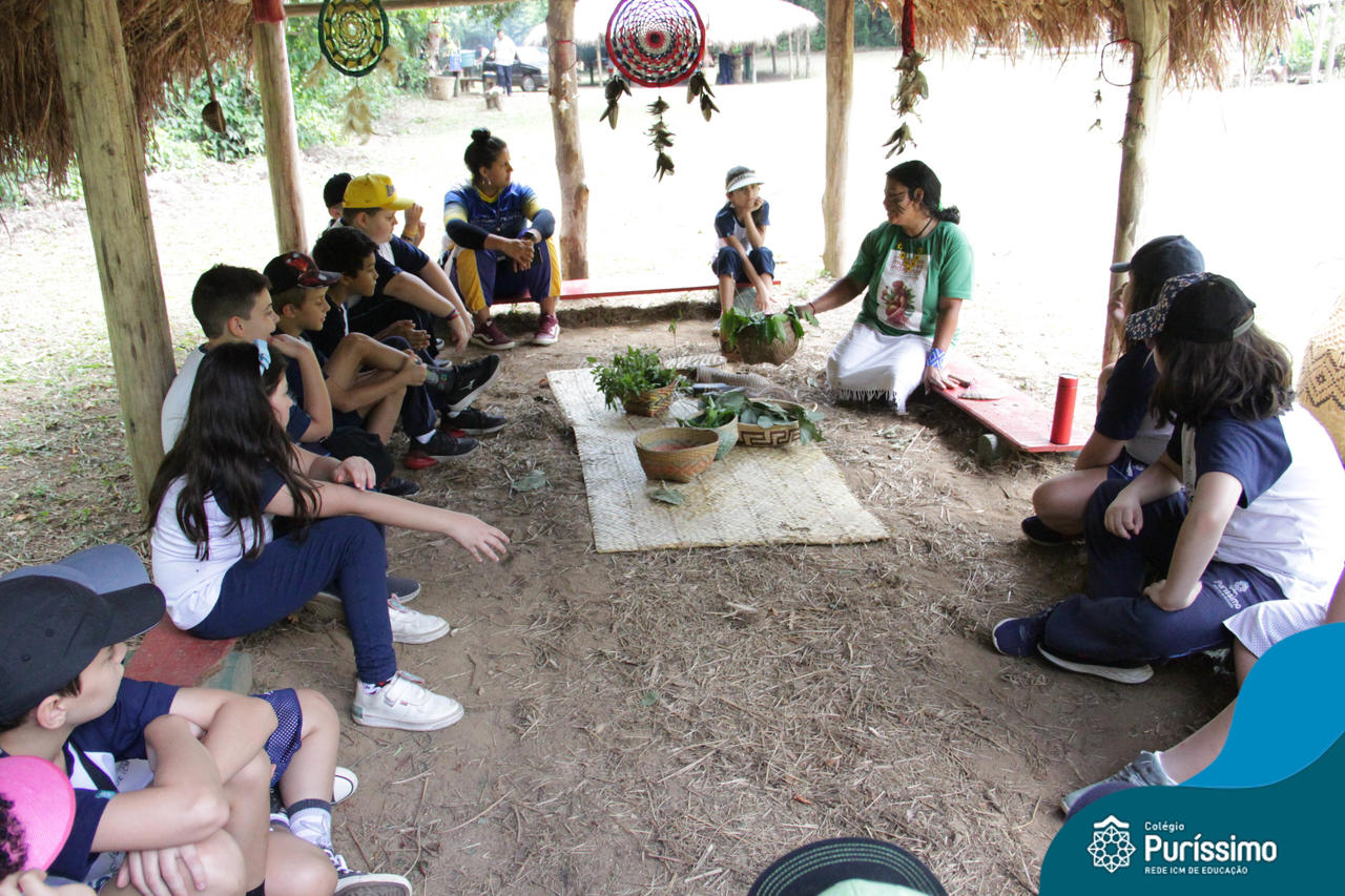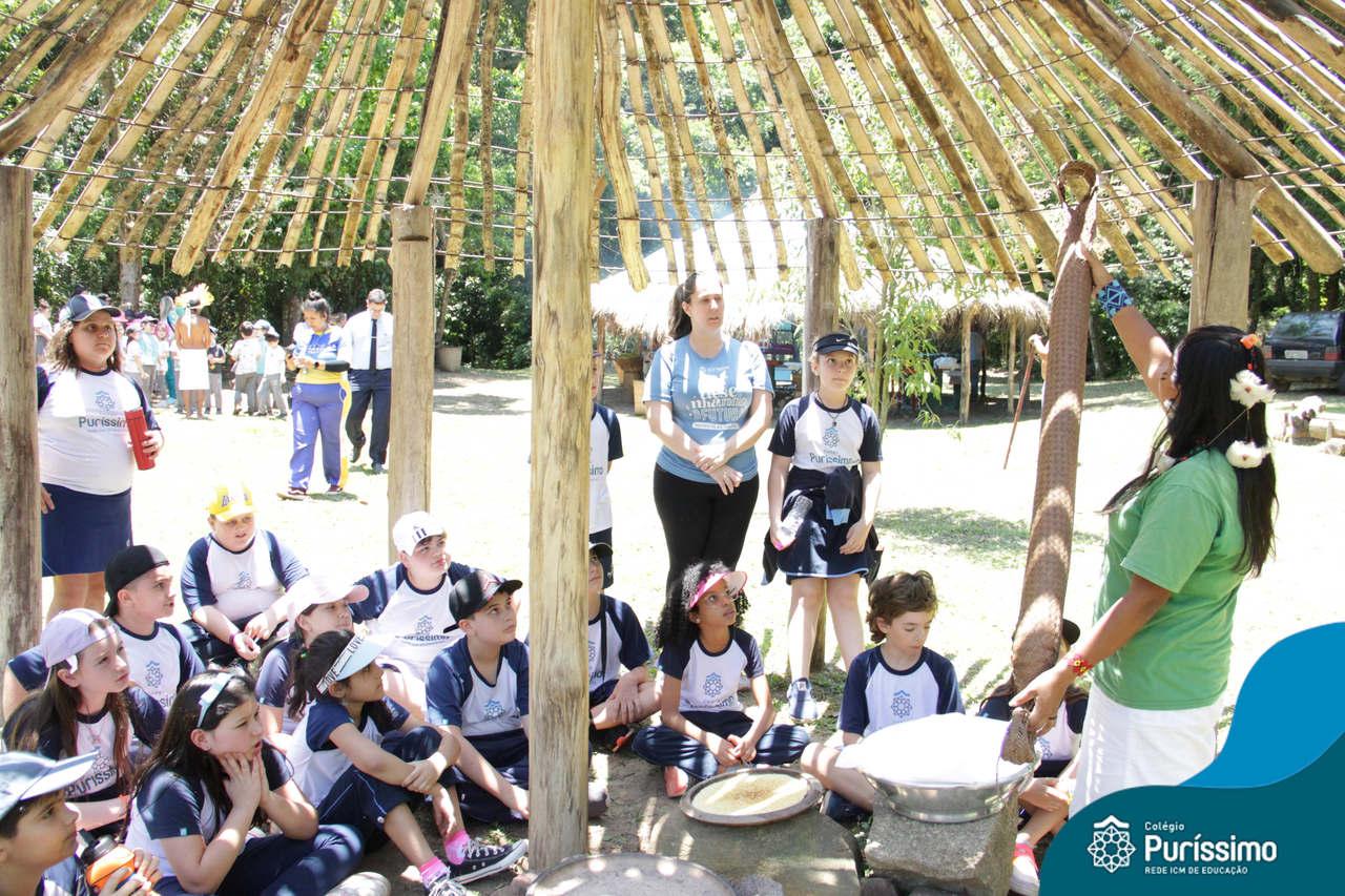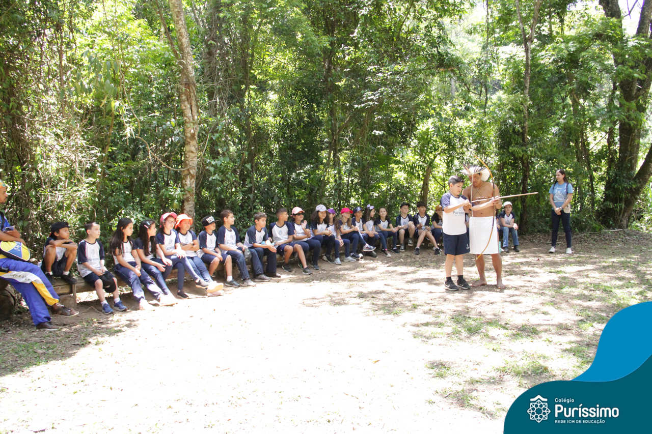 O destino foi o Sítio do Sol, local onde os alunos puderam entrar em contato e aprender mais sobre uma das culturas indígenas que compõe o nosso país.