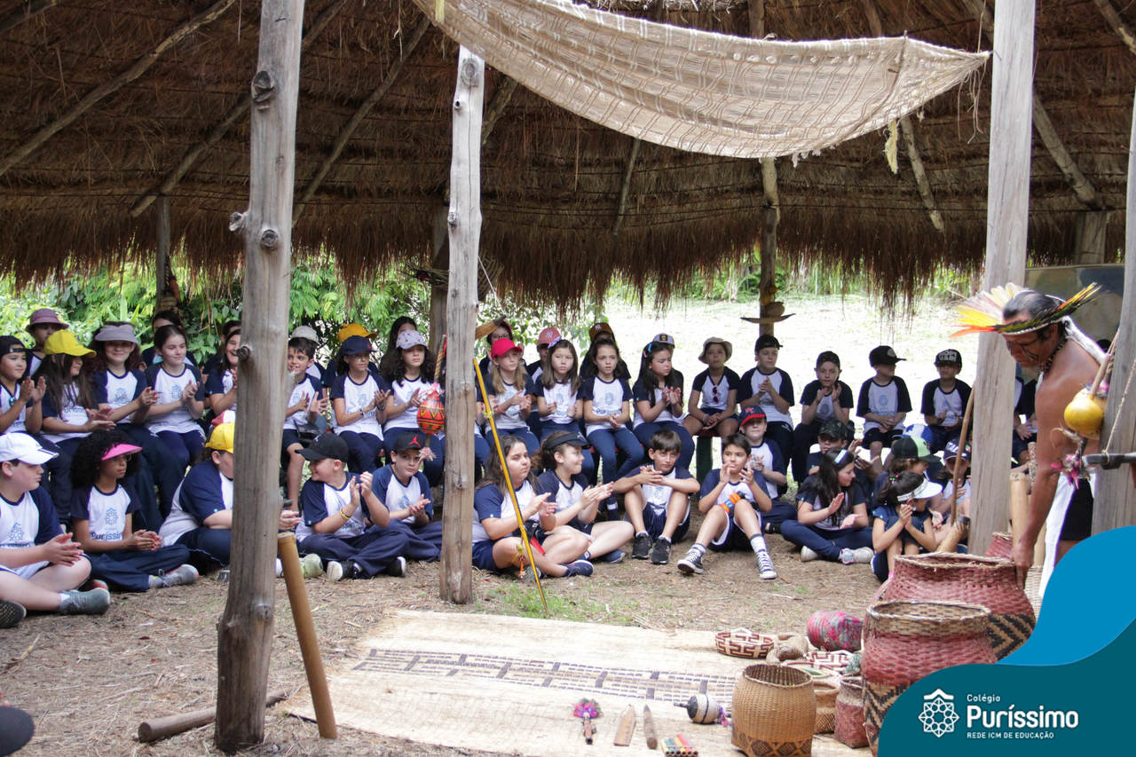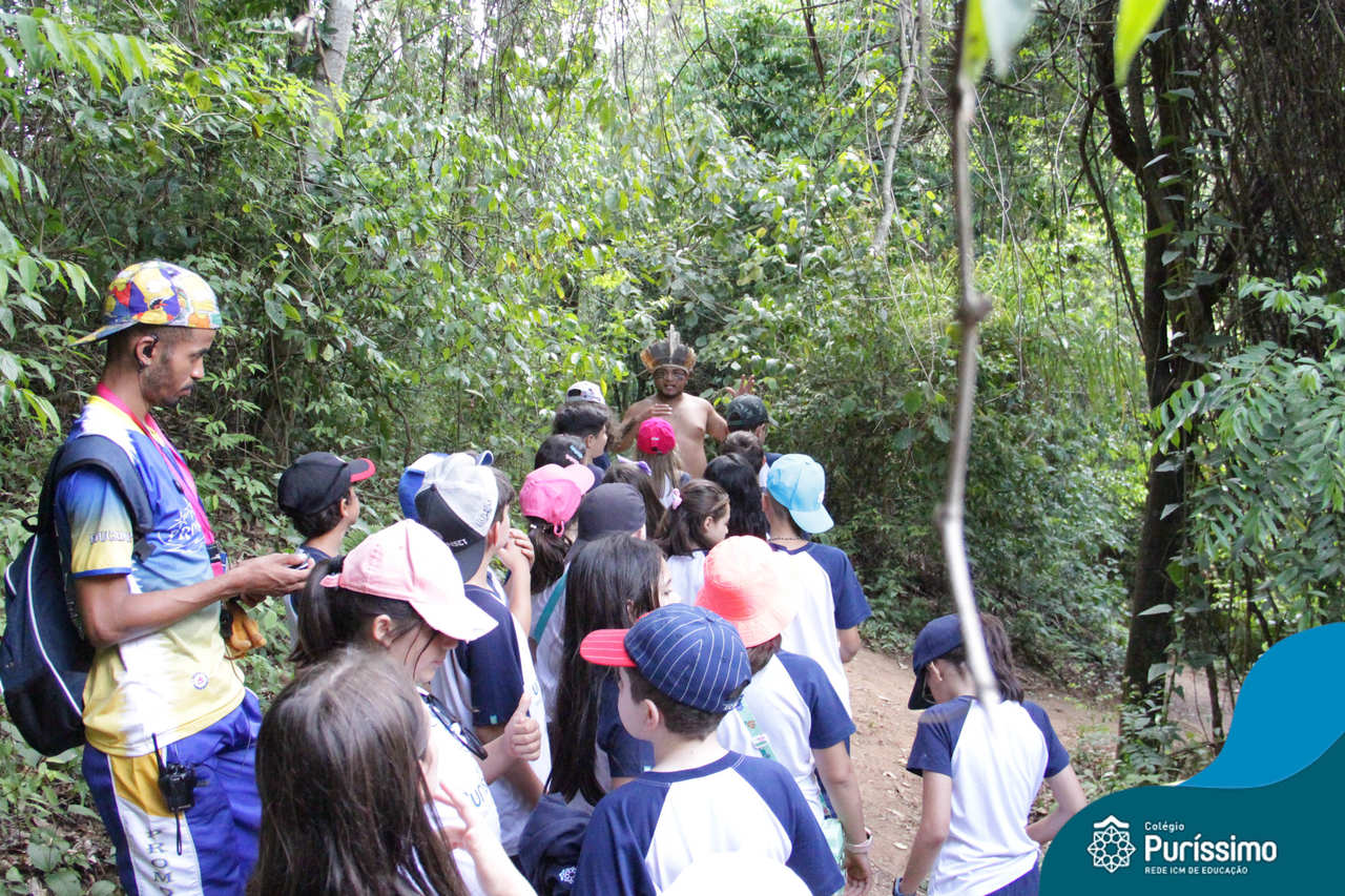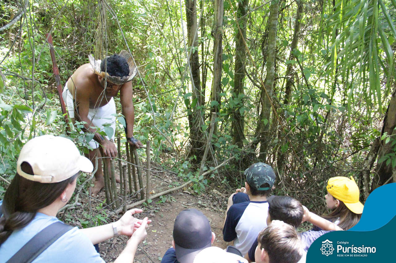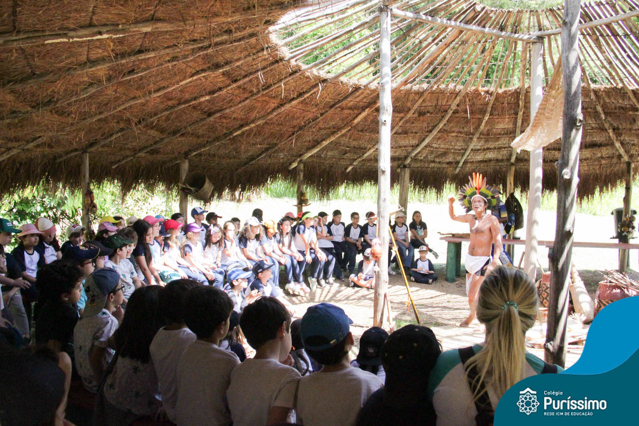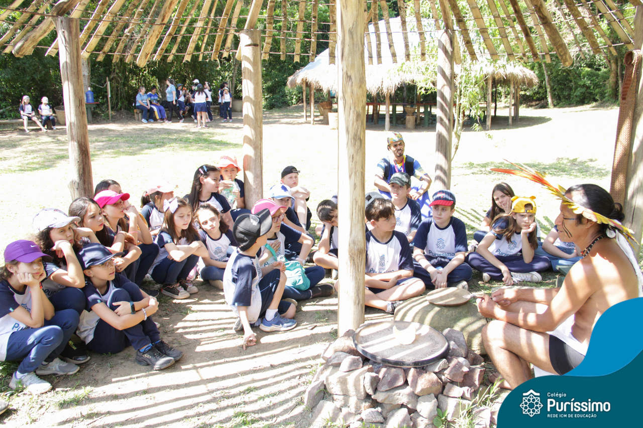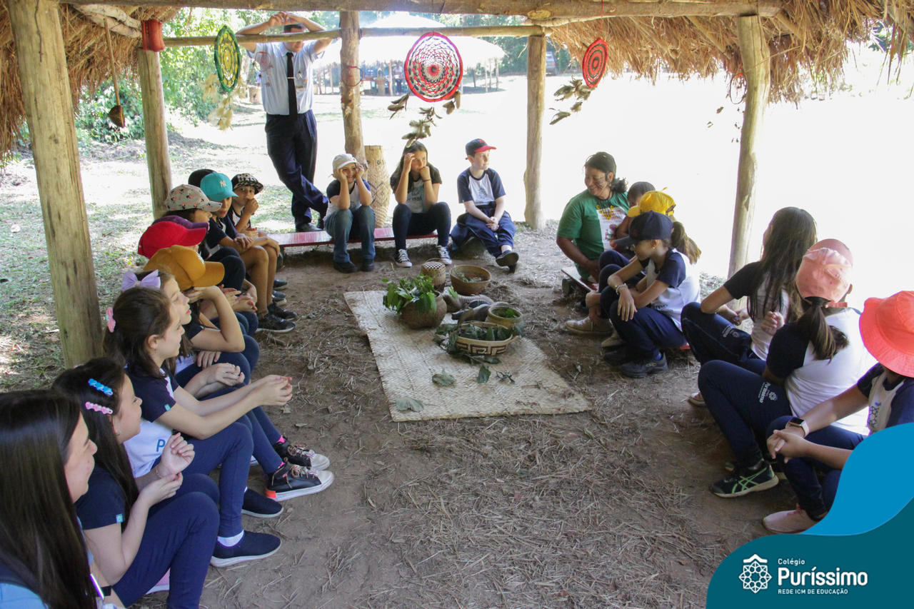 O destino foi o Sítio do Sol, local onde os alunos puderam entrar em contato e aprender mais sobre uma das culturas indígenas que compõe o nosso país.