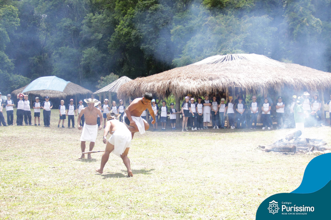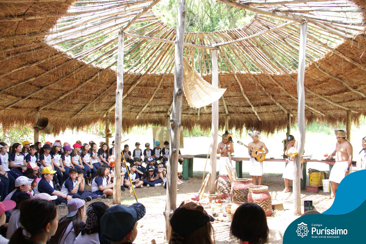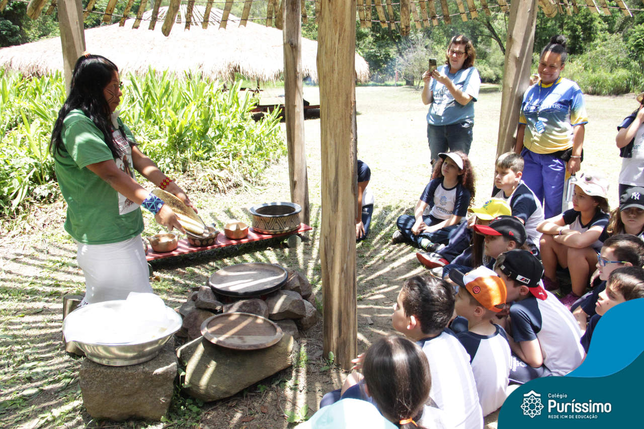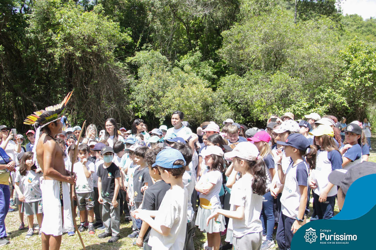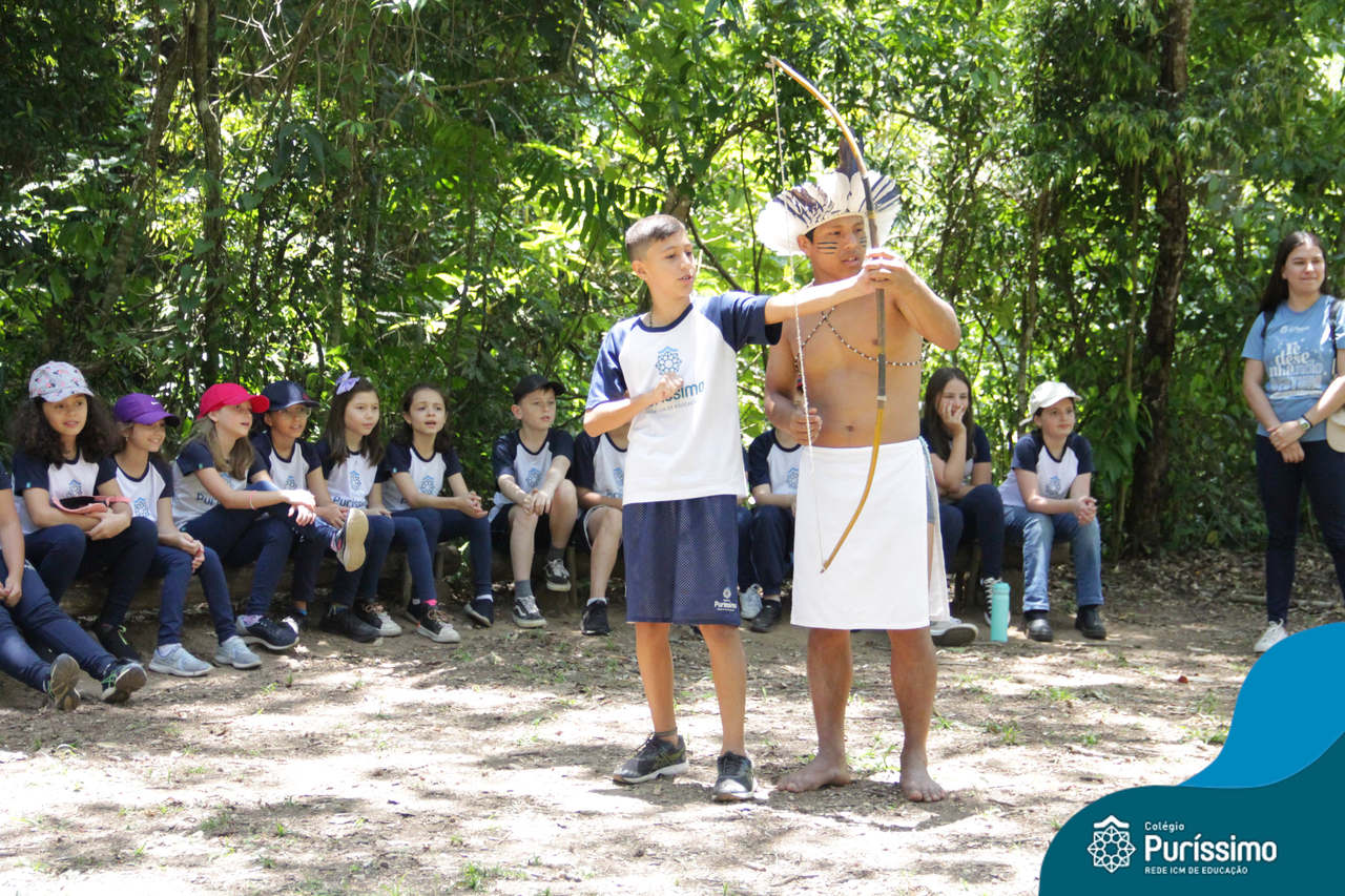 O destino foi o Sítio do Sol, local onde os alunos puderam entrar em contato e aprender mais sobre uma das culturas indígenas que compõe o nosso país.