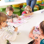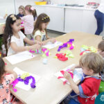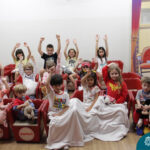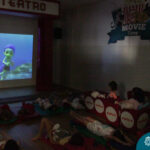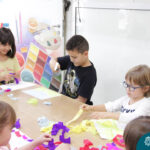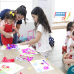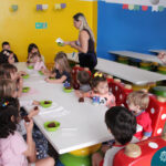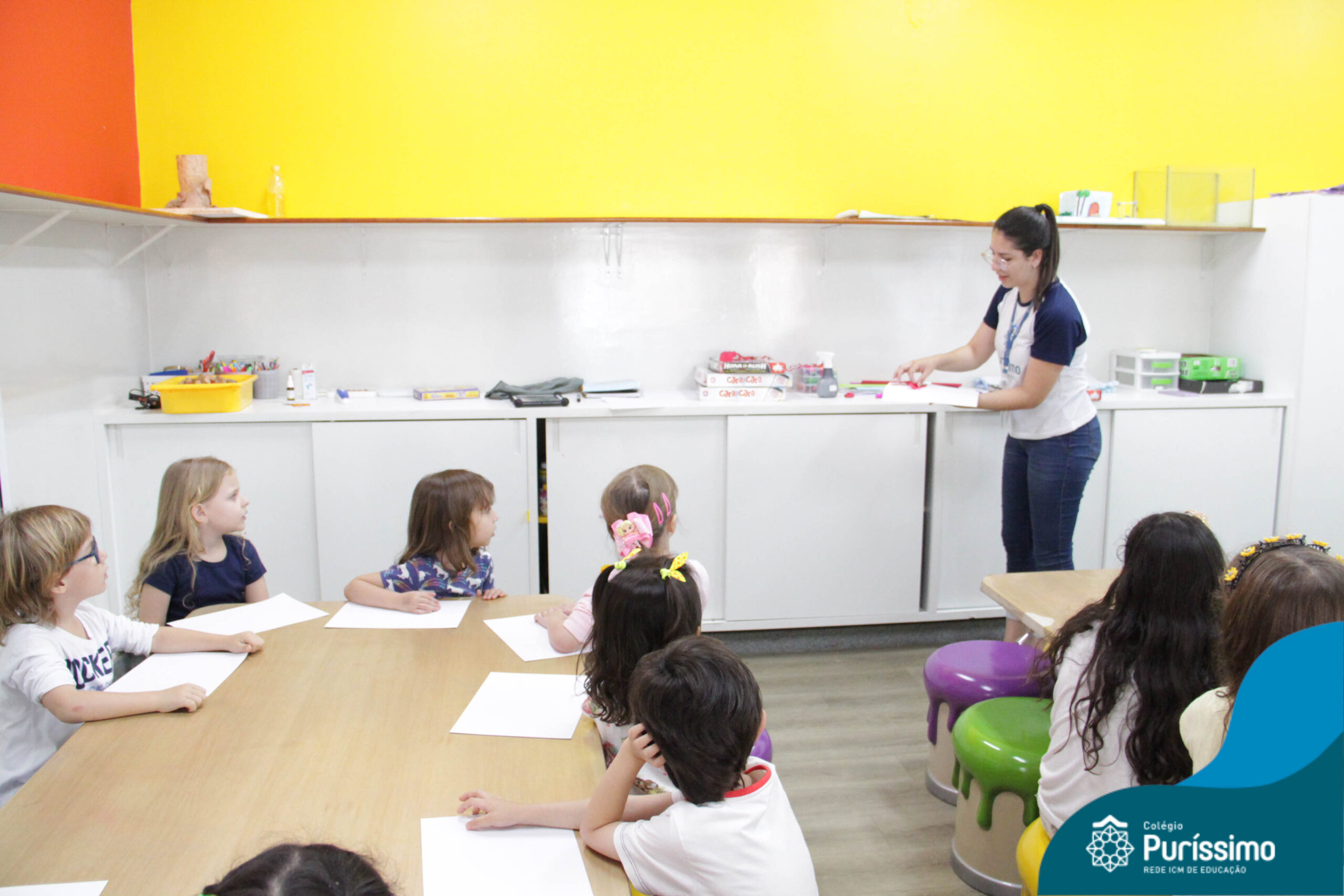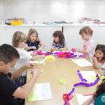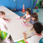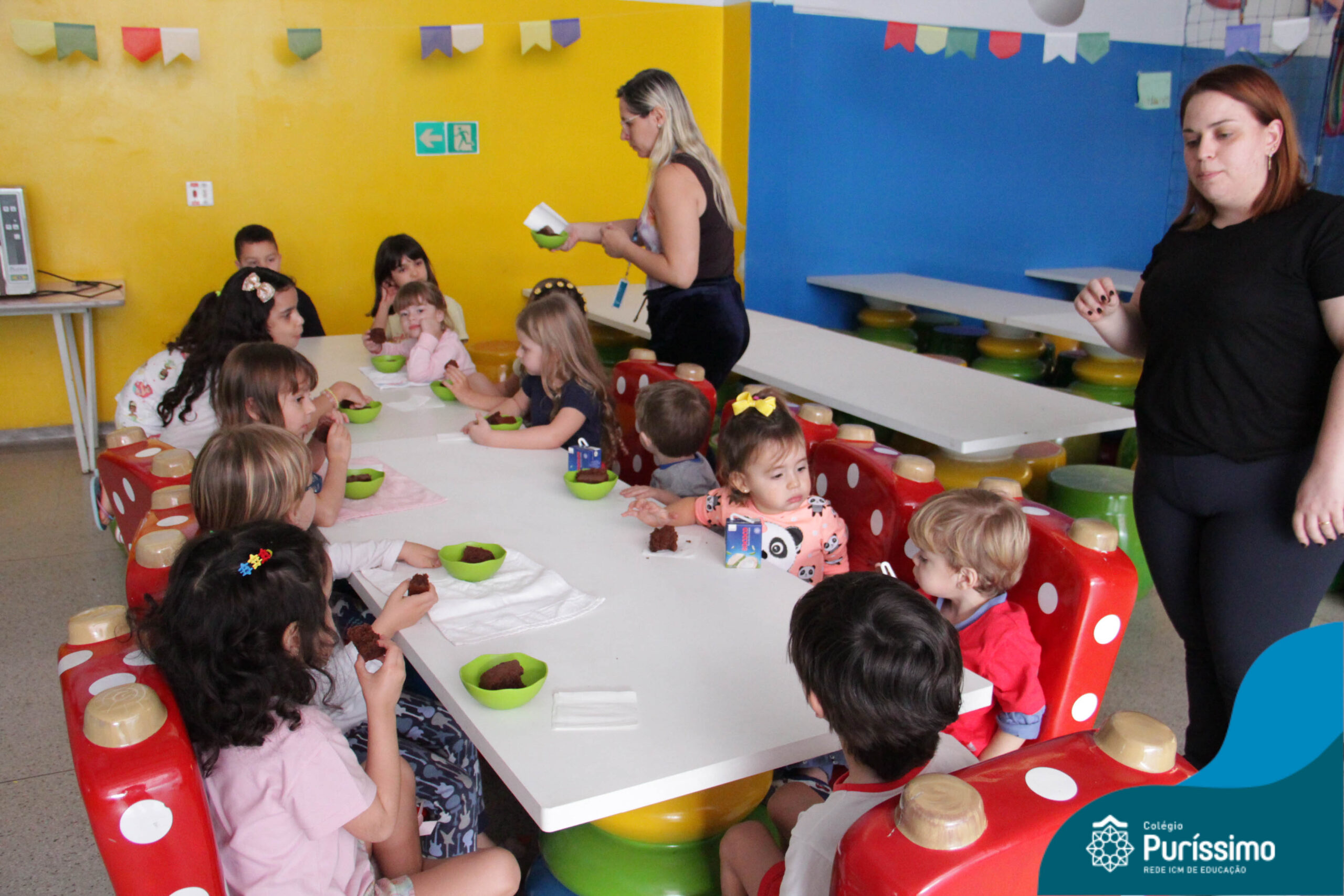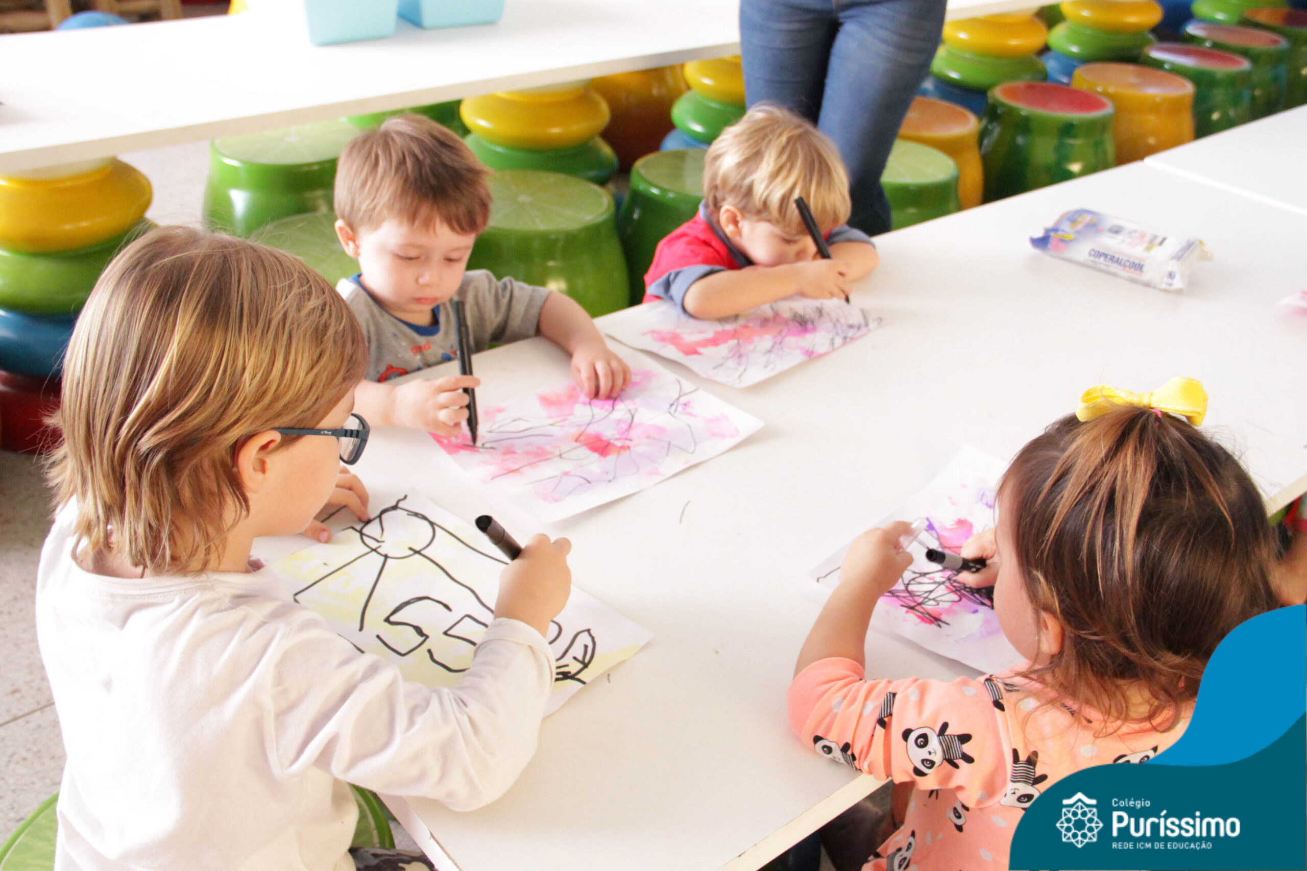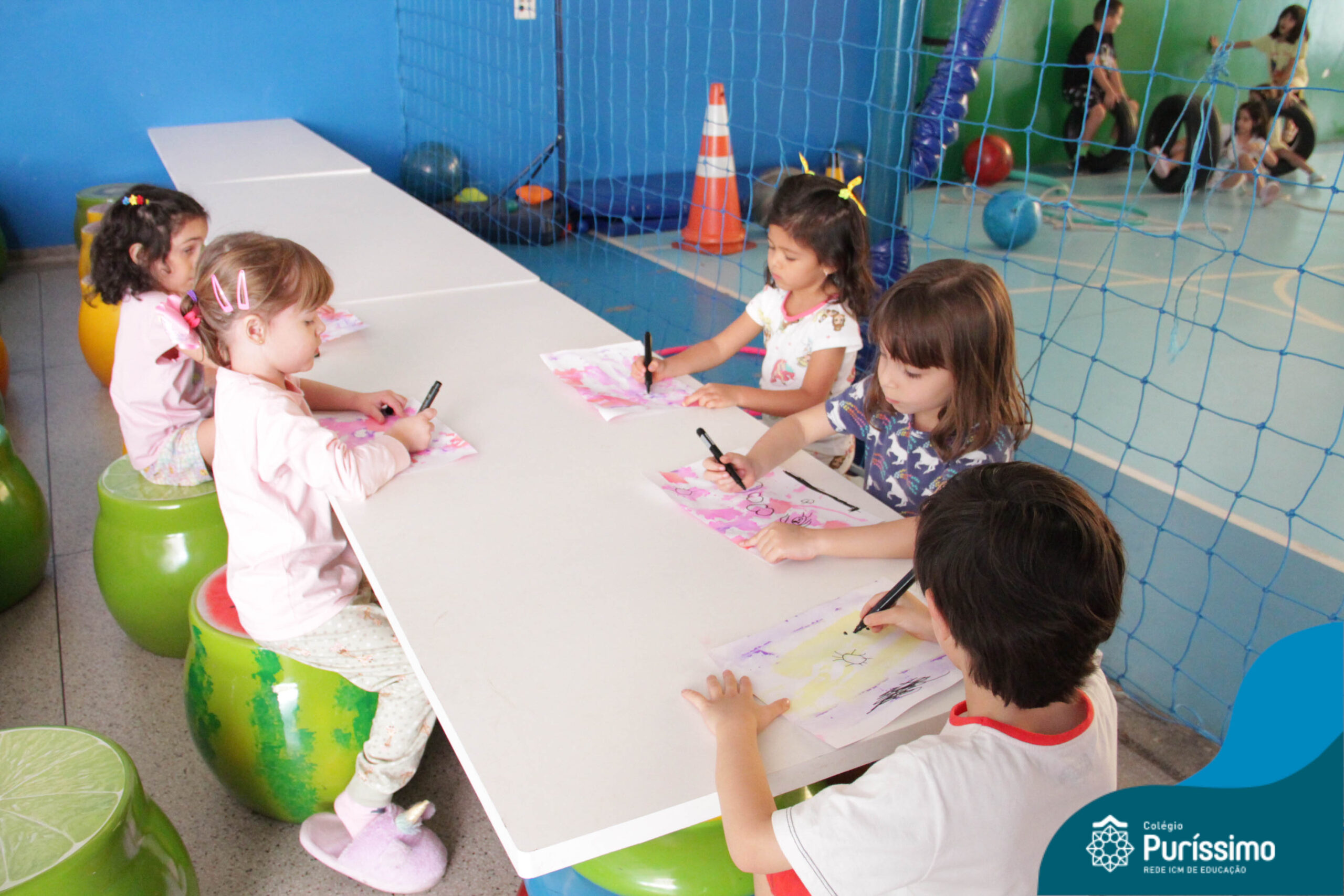 Hoje as crianças aprenderam a pintar com papel crepom, brincaram de pega-pega e terminaram o dia com um filme super legal.
