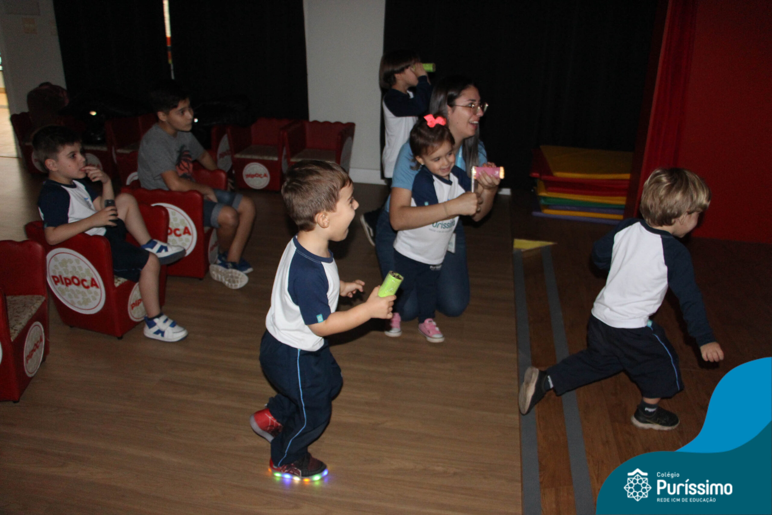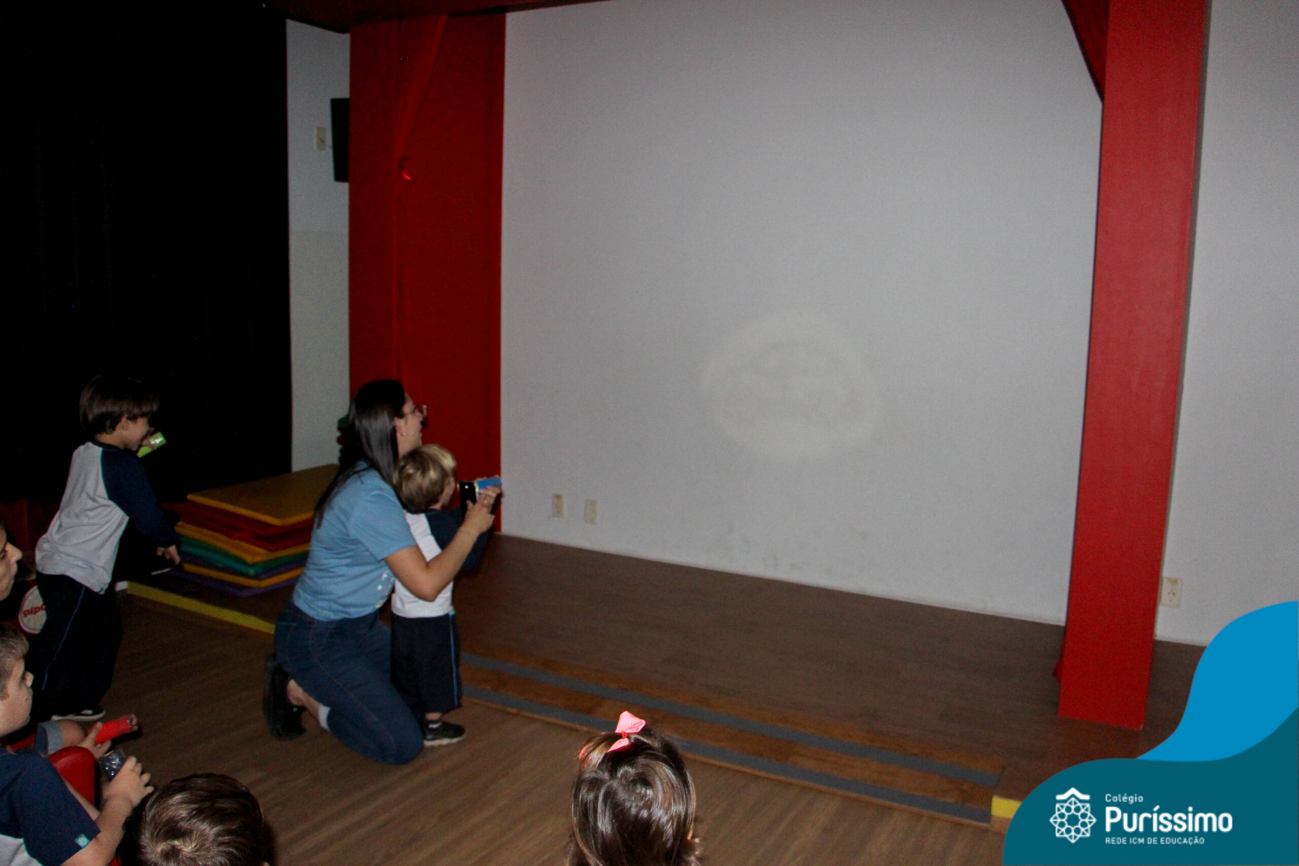 As crianças aprenderam como fazer neve, refletir formas e objetos utilizando apenas rolo de papel, um desenho e lanterna e, por fim, terminaram esse dia cheio de diversão e aprendizado no parque.